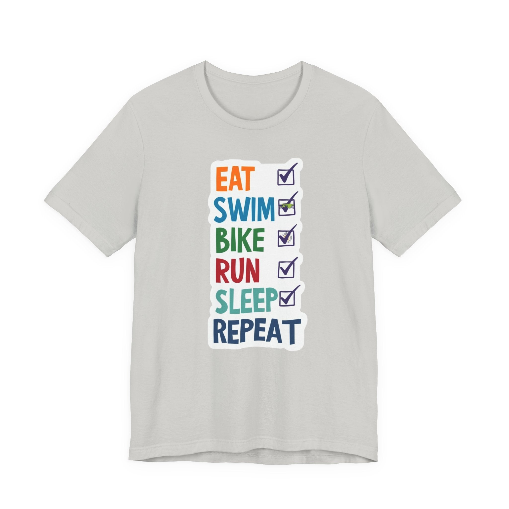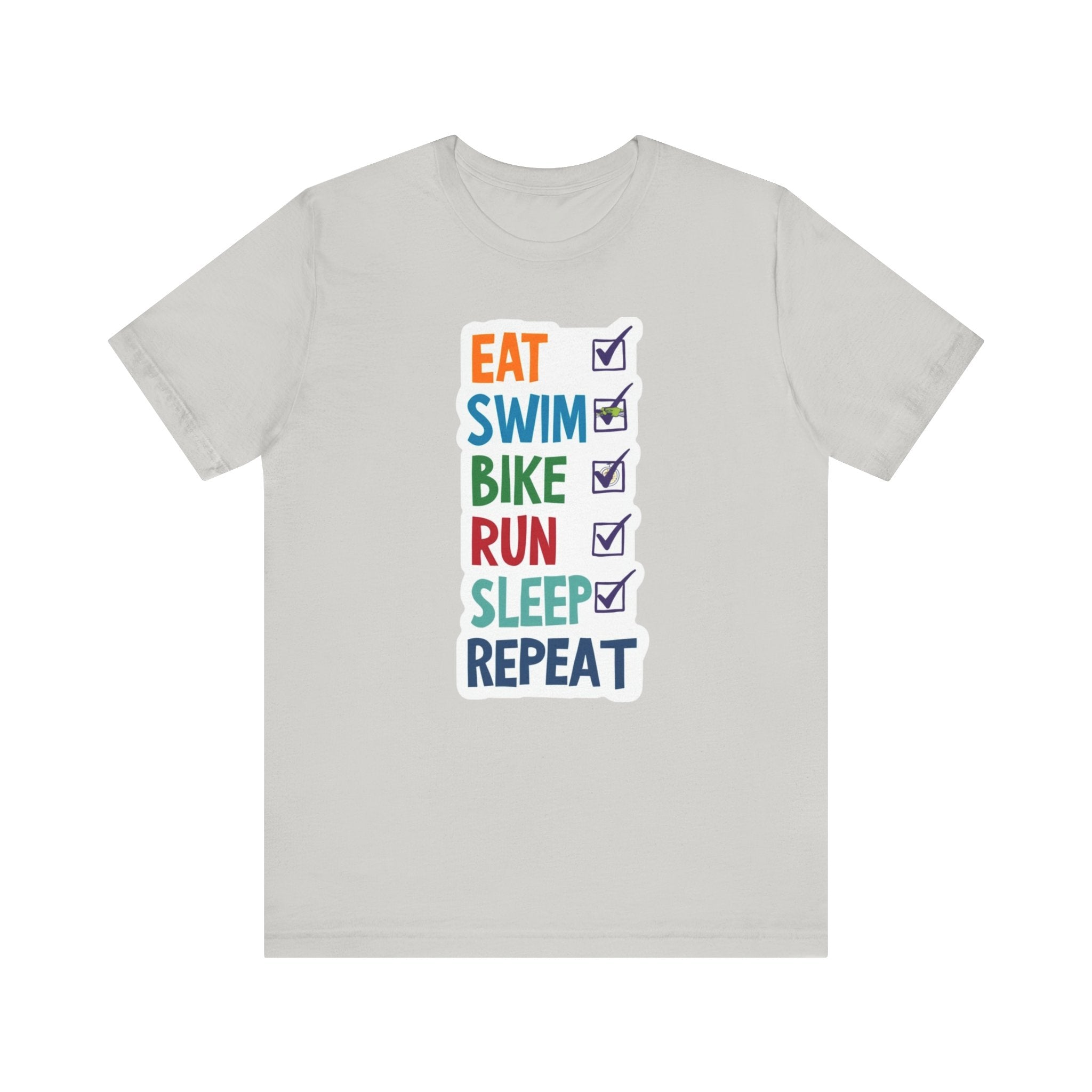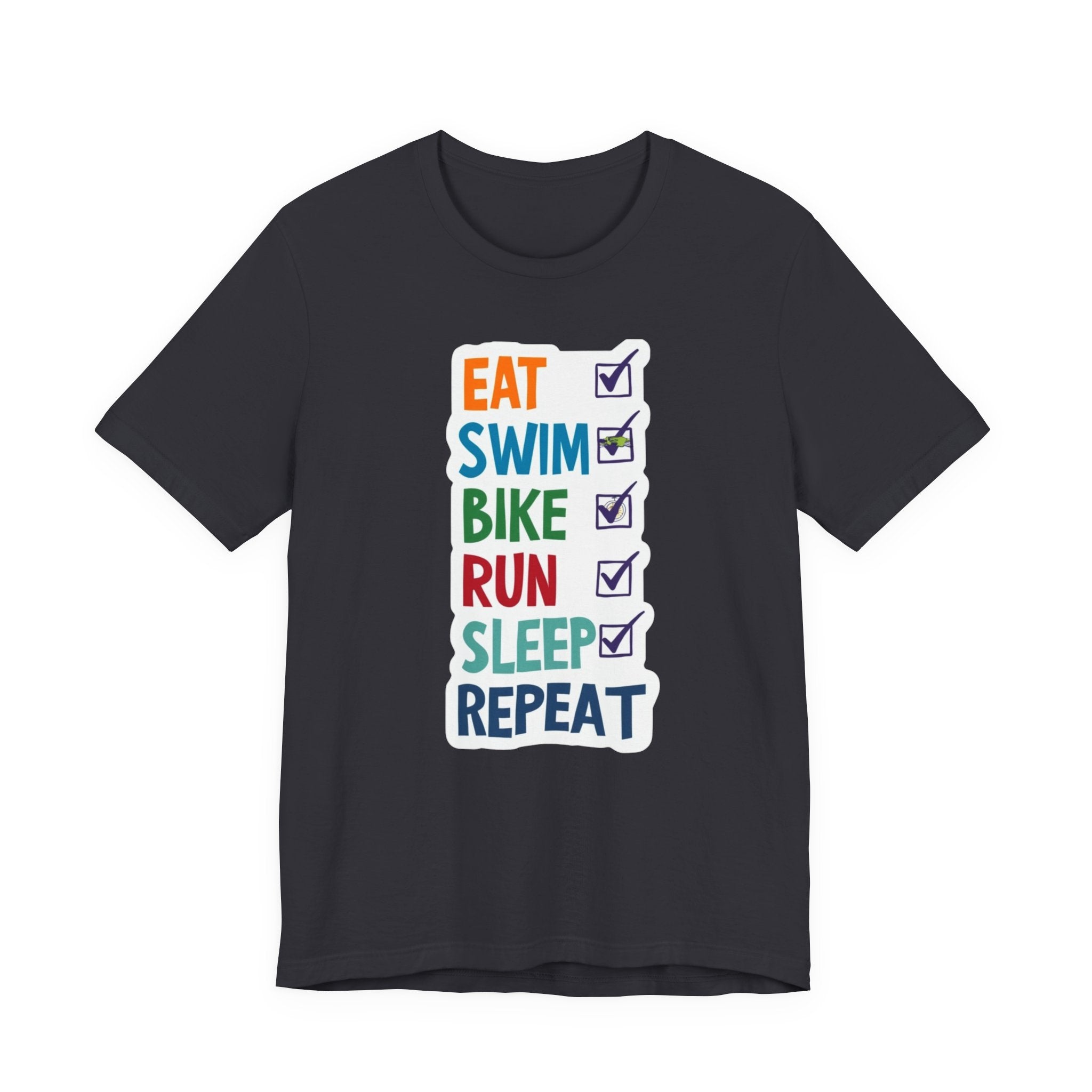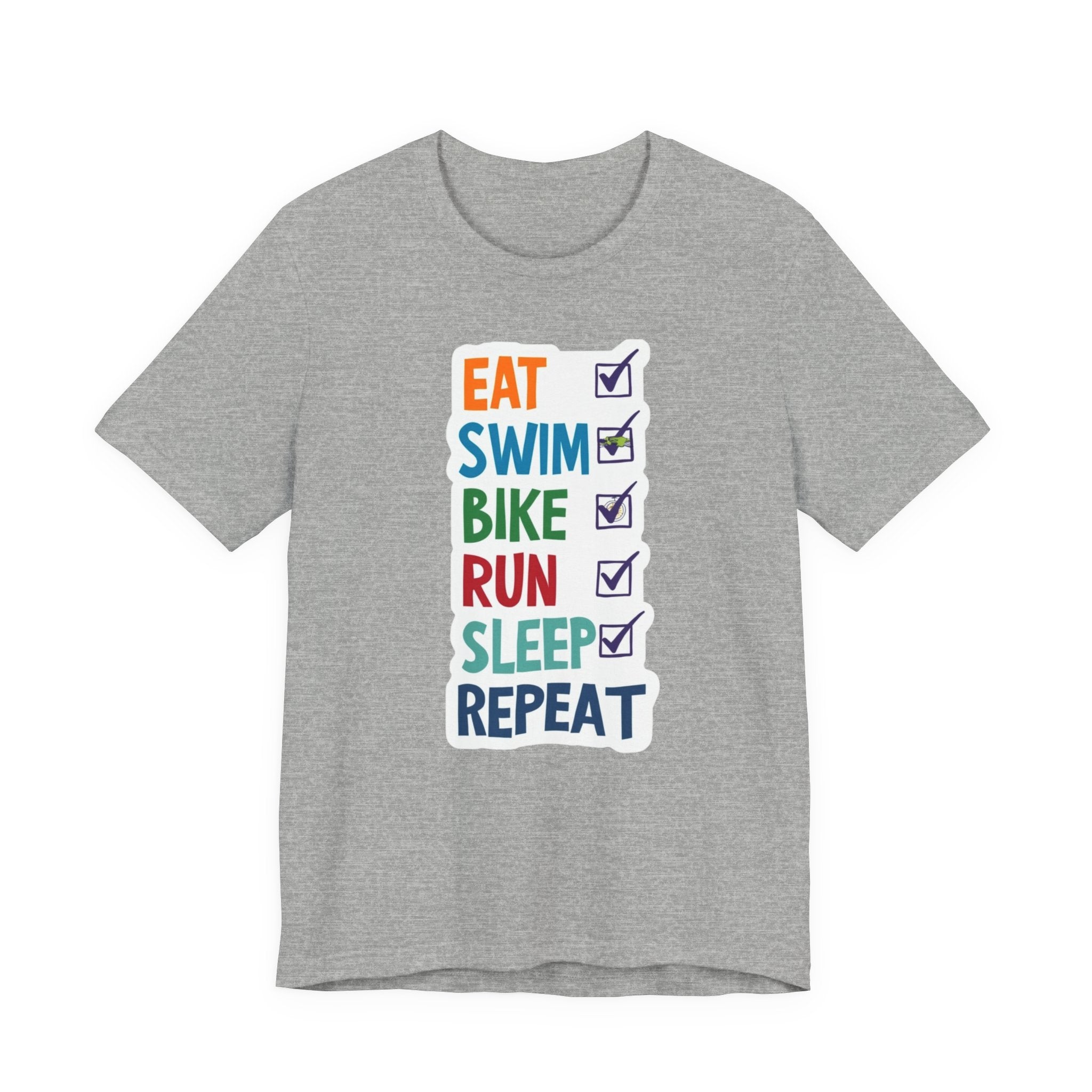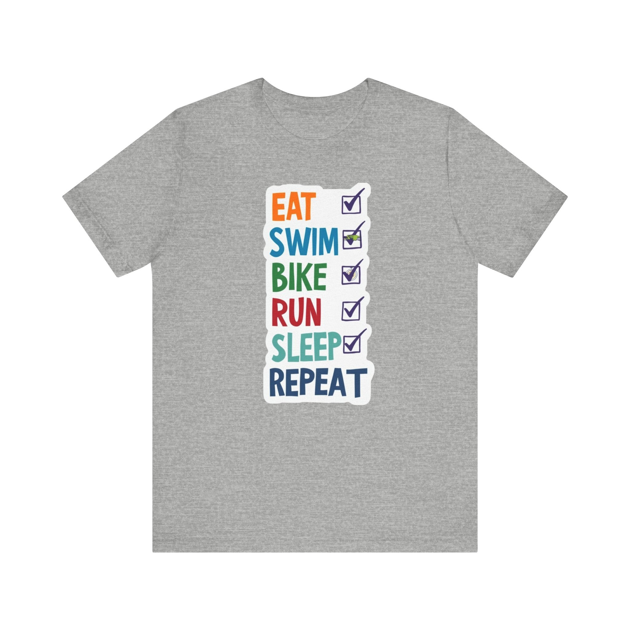Unisex Active Lifestyle Tee - Eat Swim Bike Run Sleep, Premium Bella+Canvas Cotton, Lightweight Fitness Apparel, Motivational T-Shirt for Triathletes, Casual Training Wear