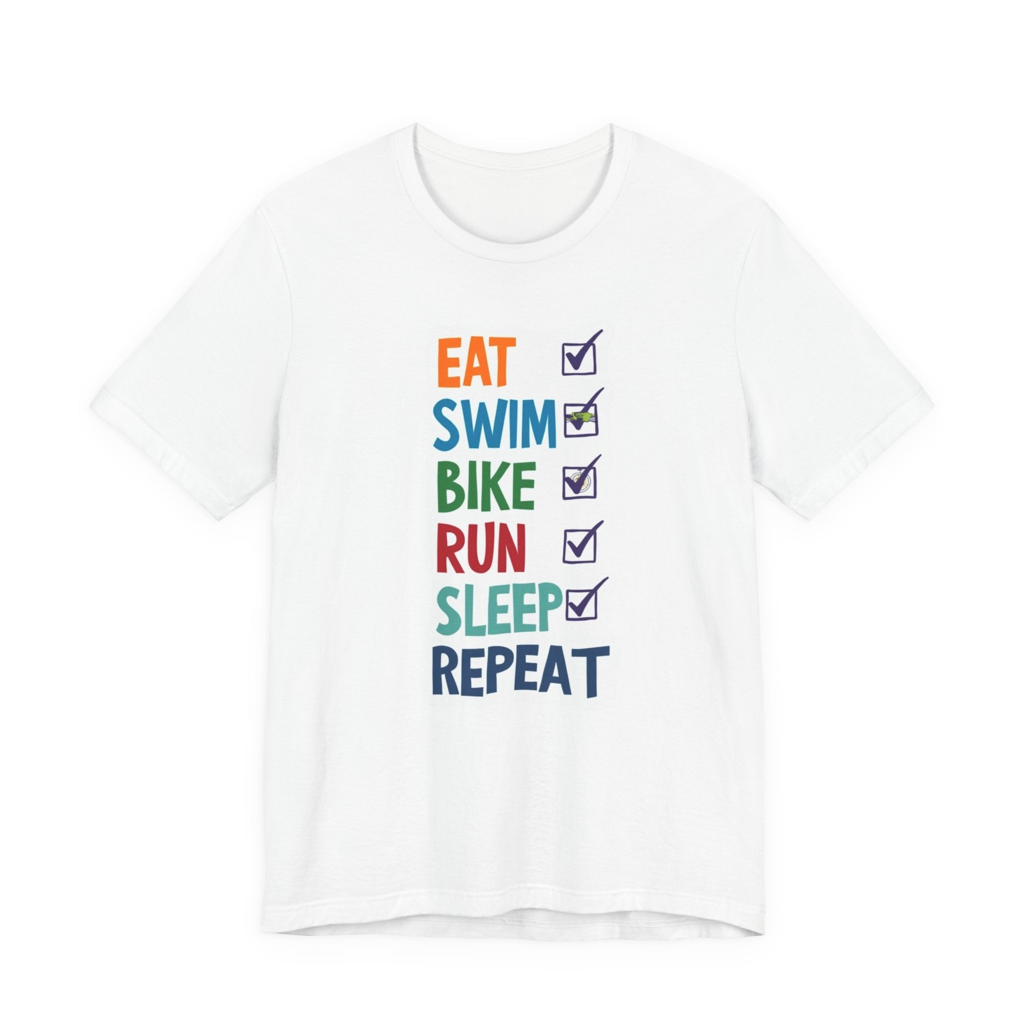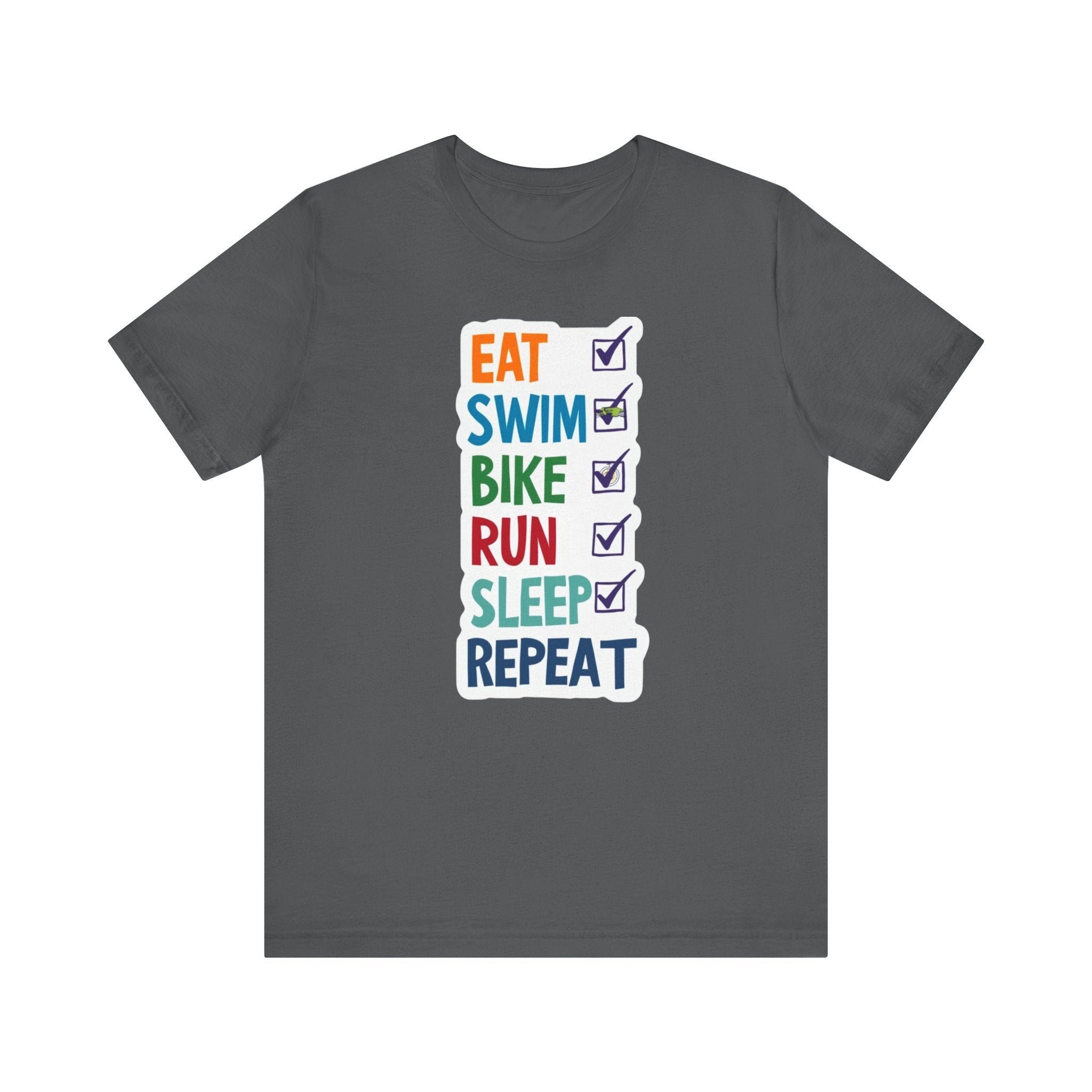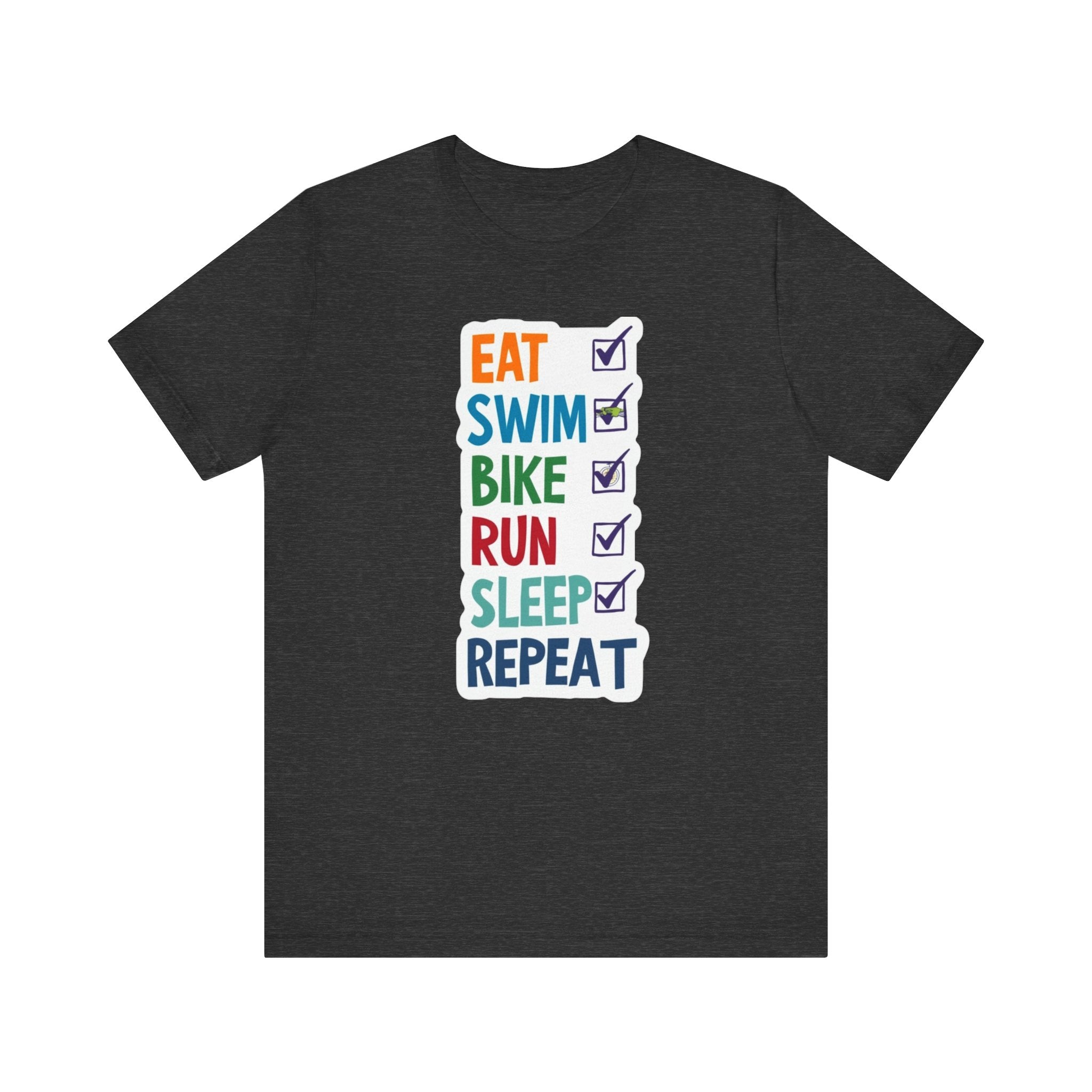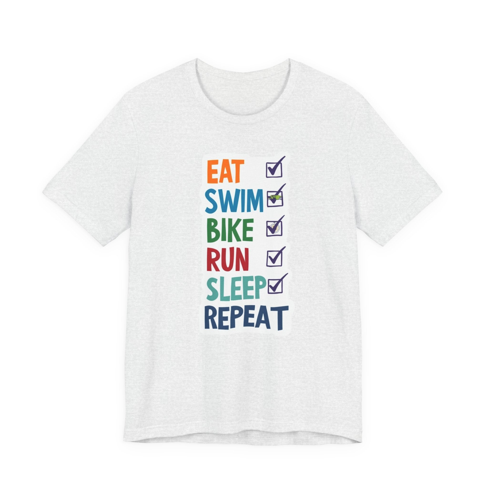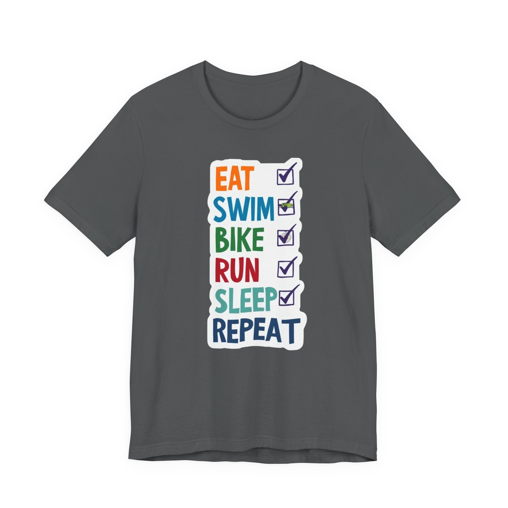 Unisex Active Lifestyle Tee - Eat Swim Bike Run Sleep, Premium Bella+Canvas Cotton, Lightweight Fitness Apparel, Motivational T-Shirt for Triathletes, Casual Training Wear