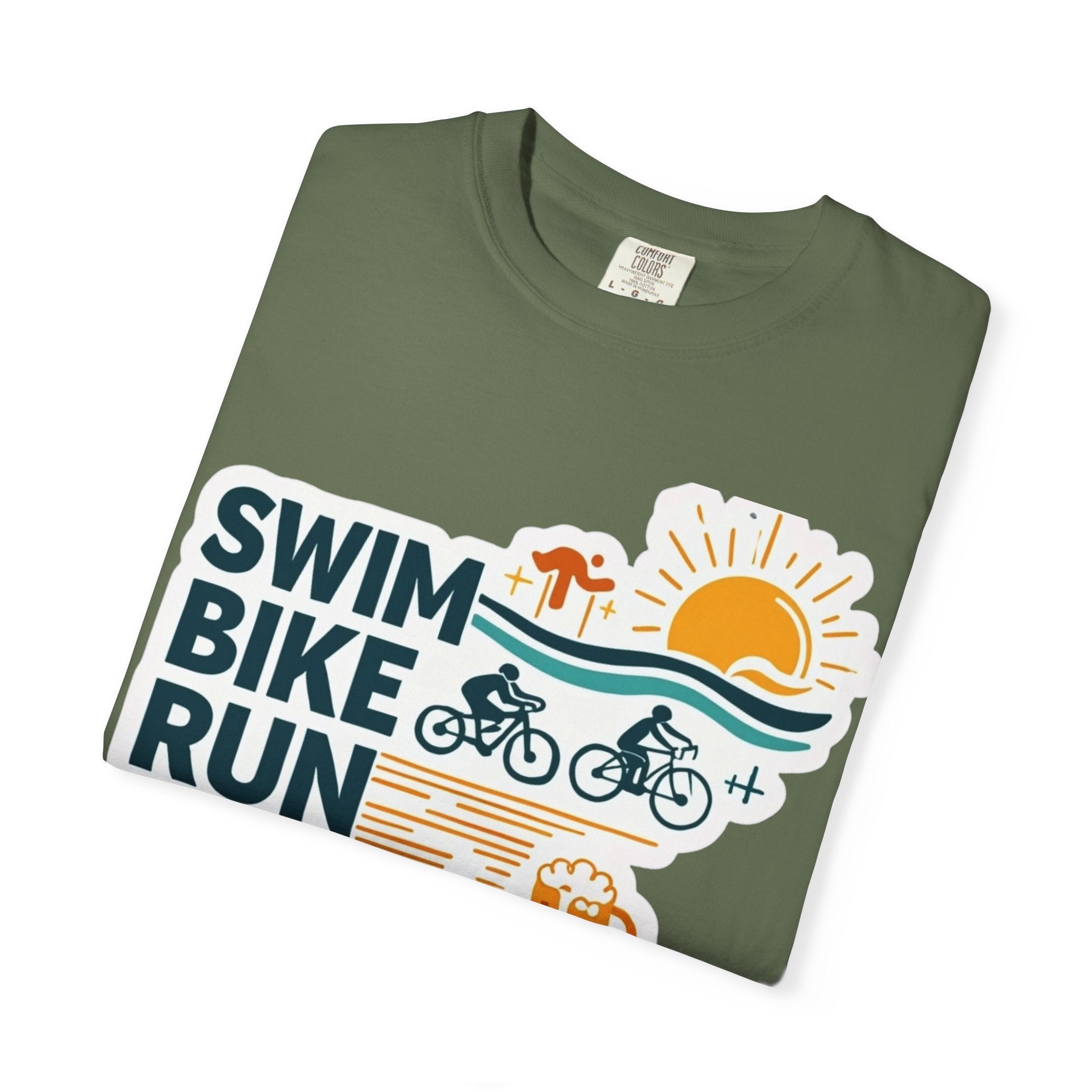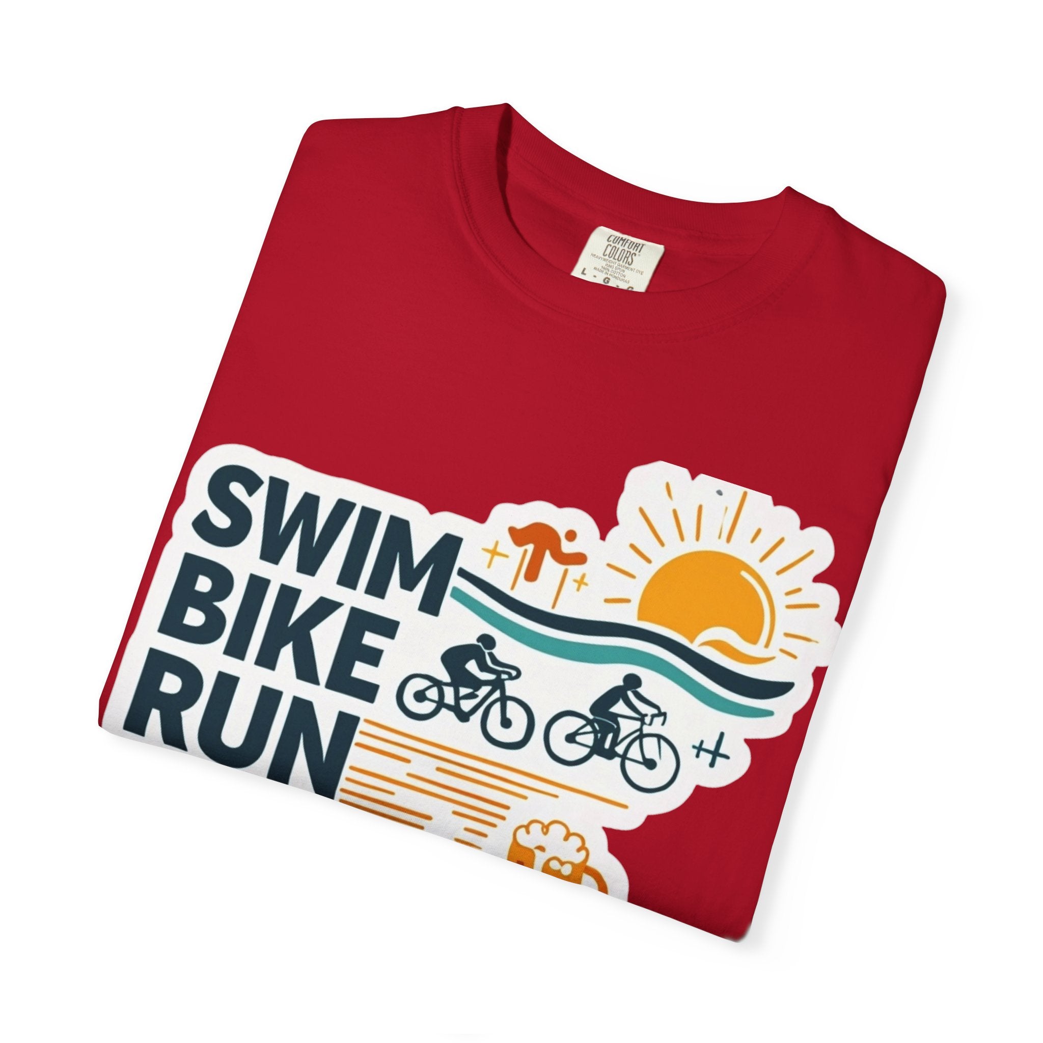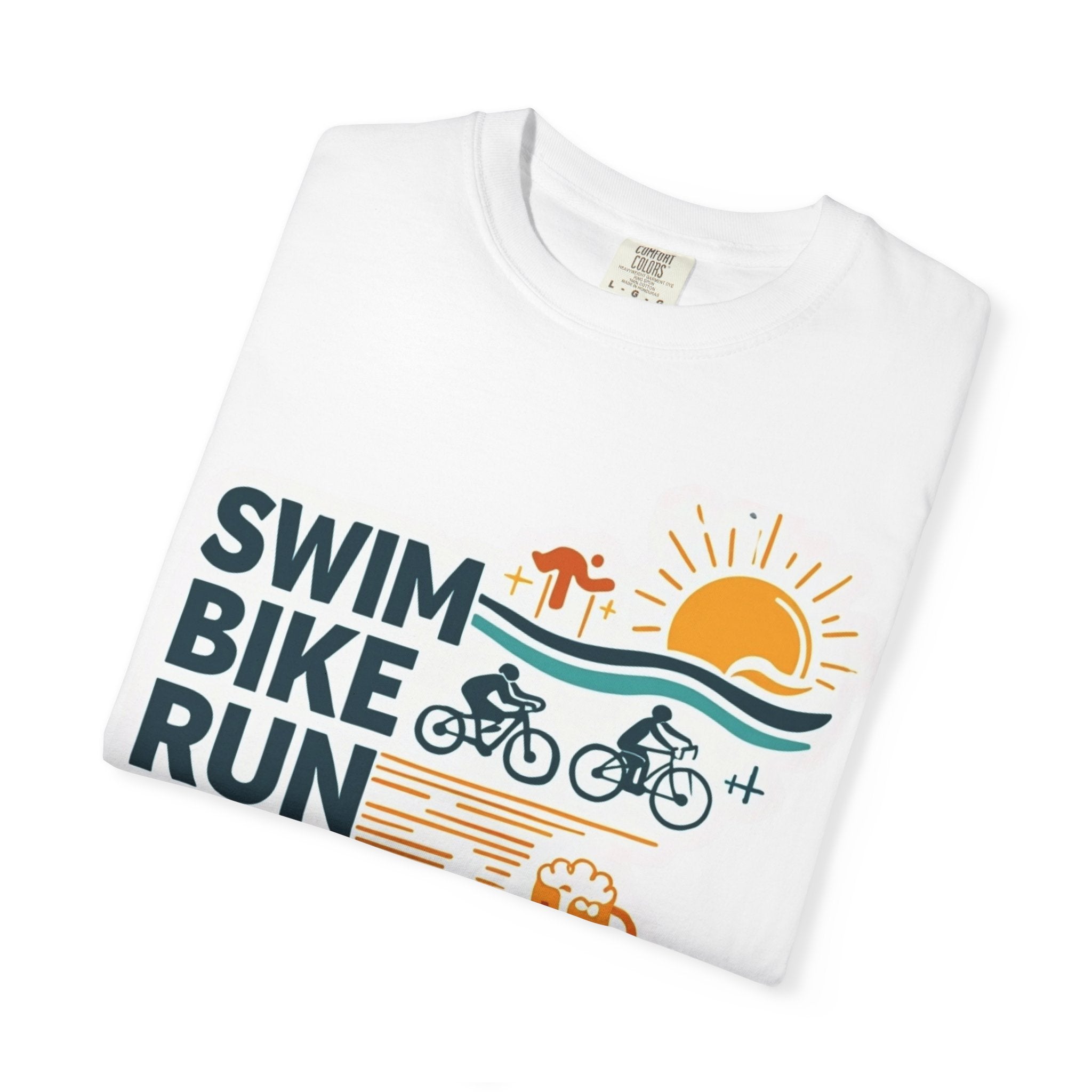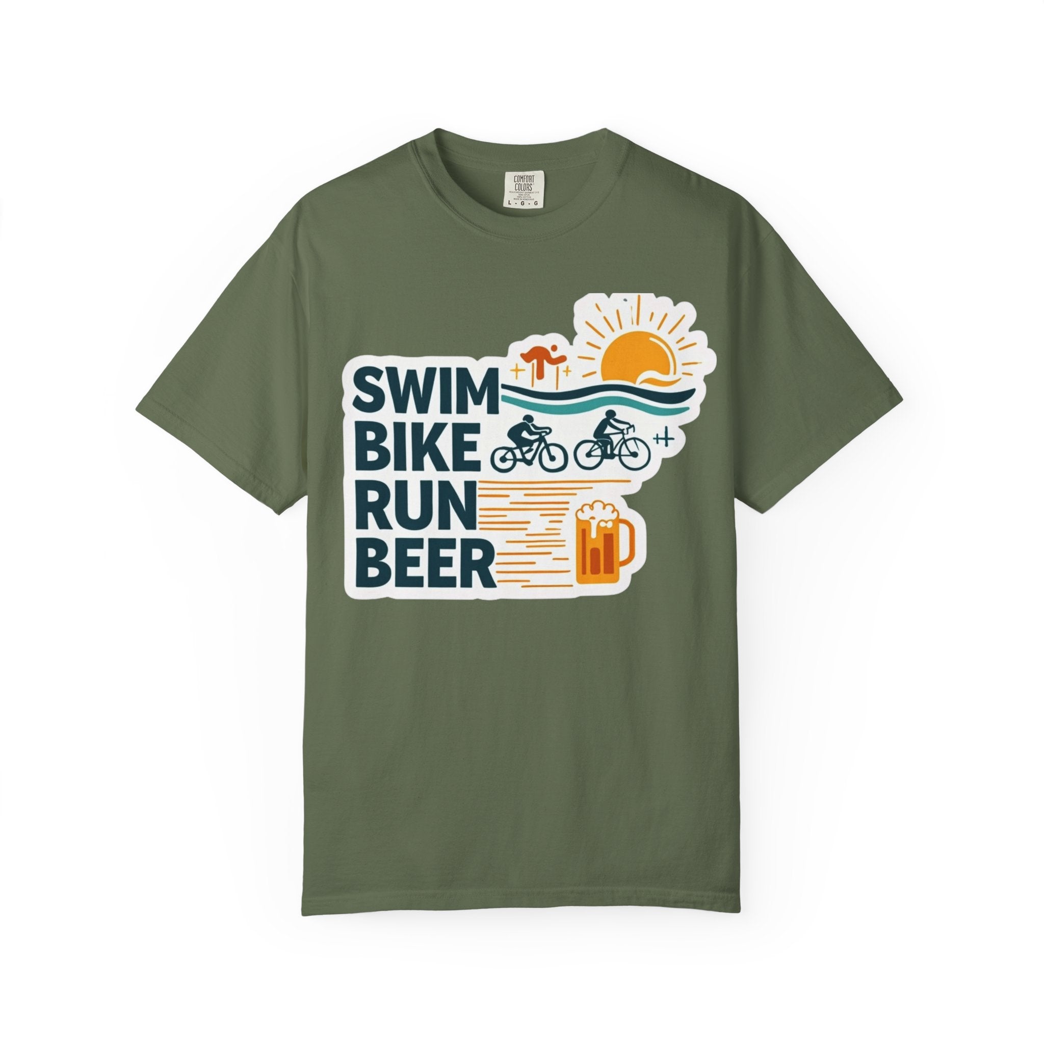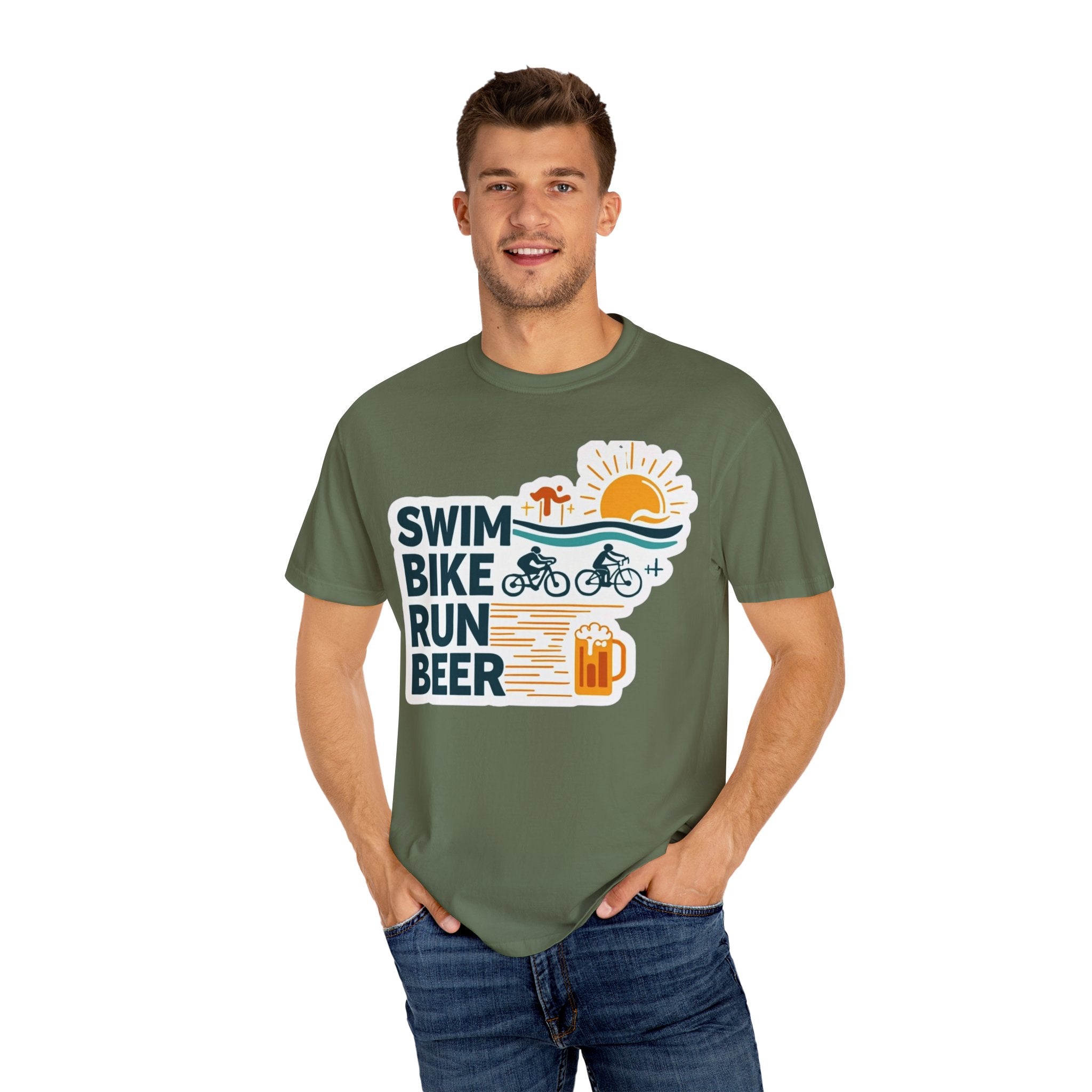 Unisex Triathlon Adventure T-Shirt Swim Bike Run Beer 100% Cotton Relaxed Fit Casual Summer Tee for Athletes