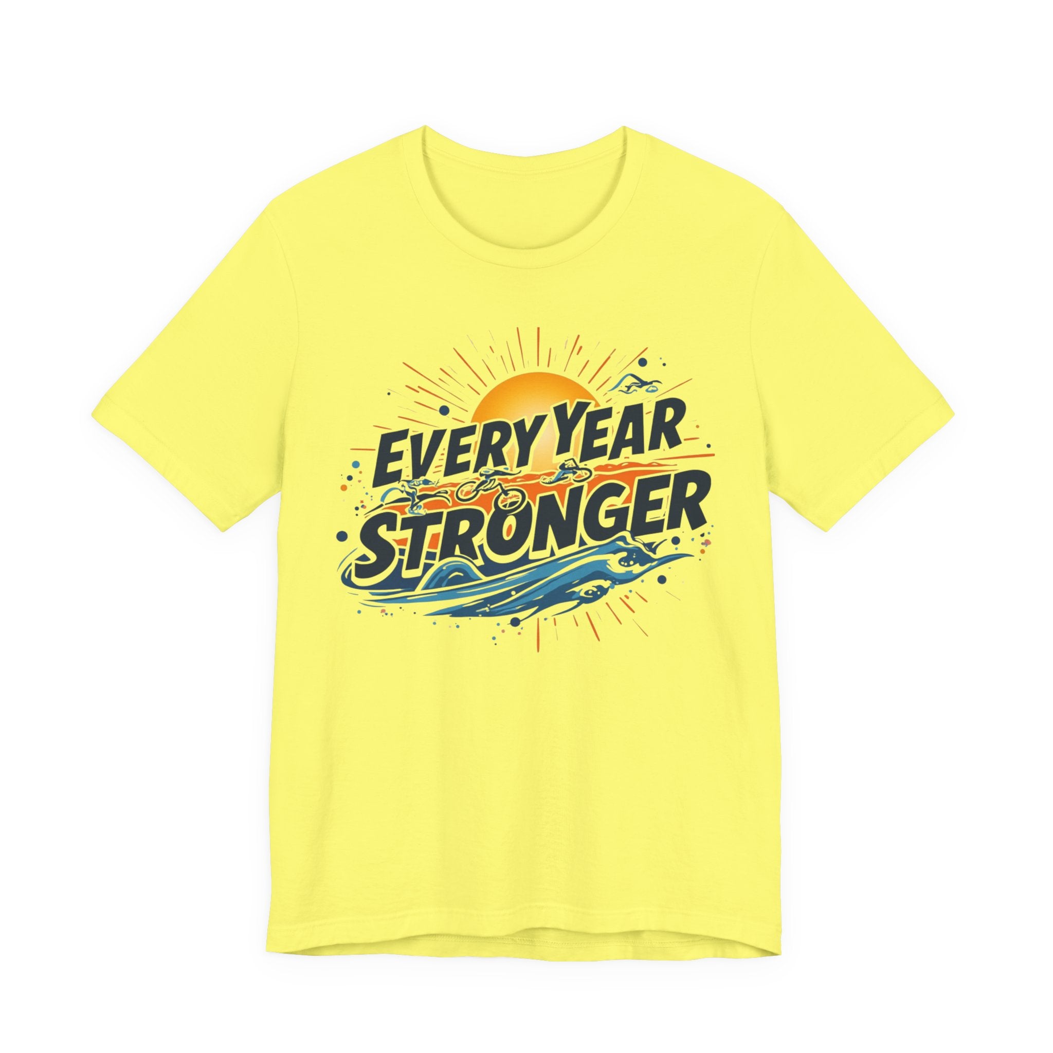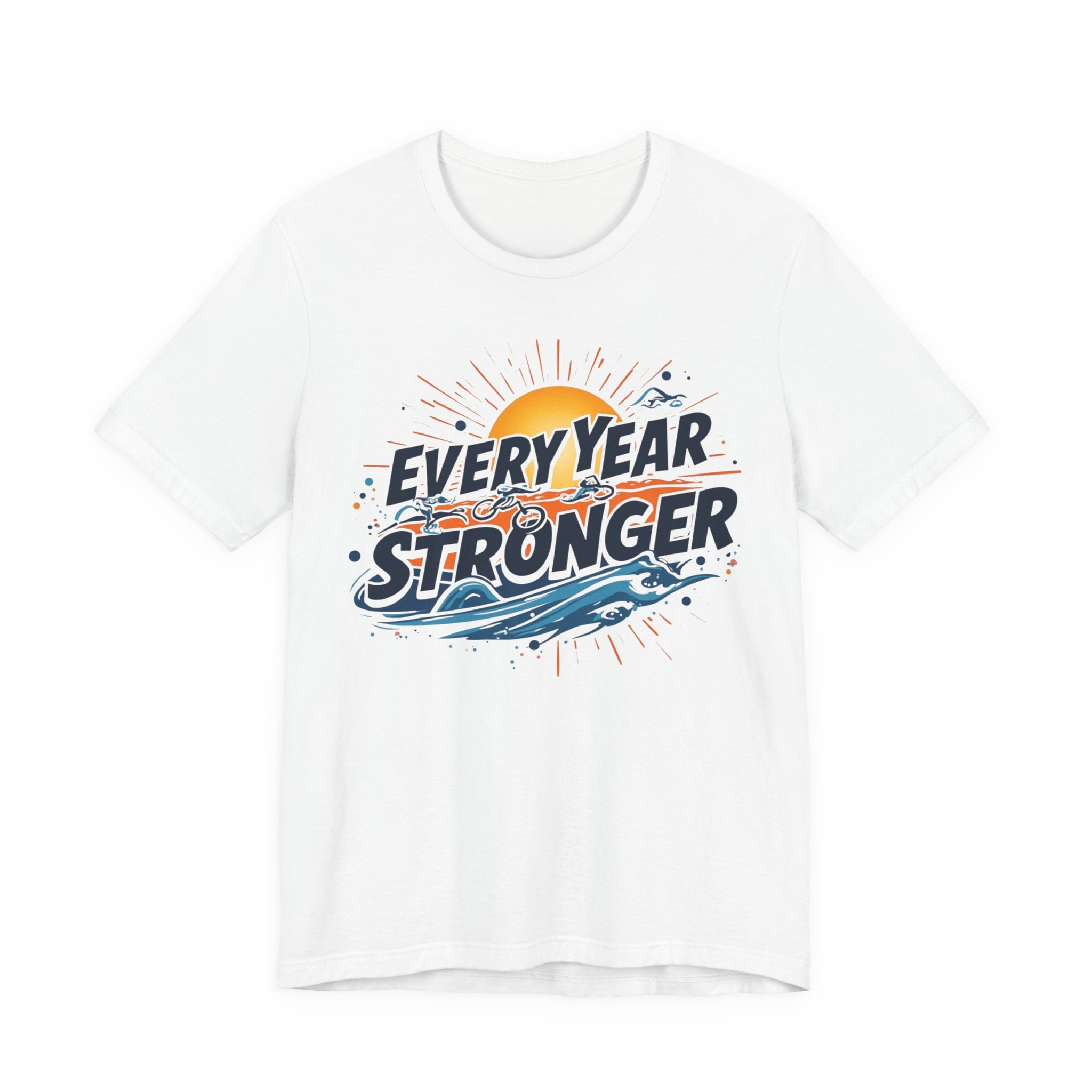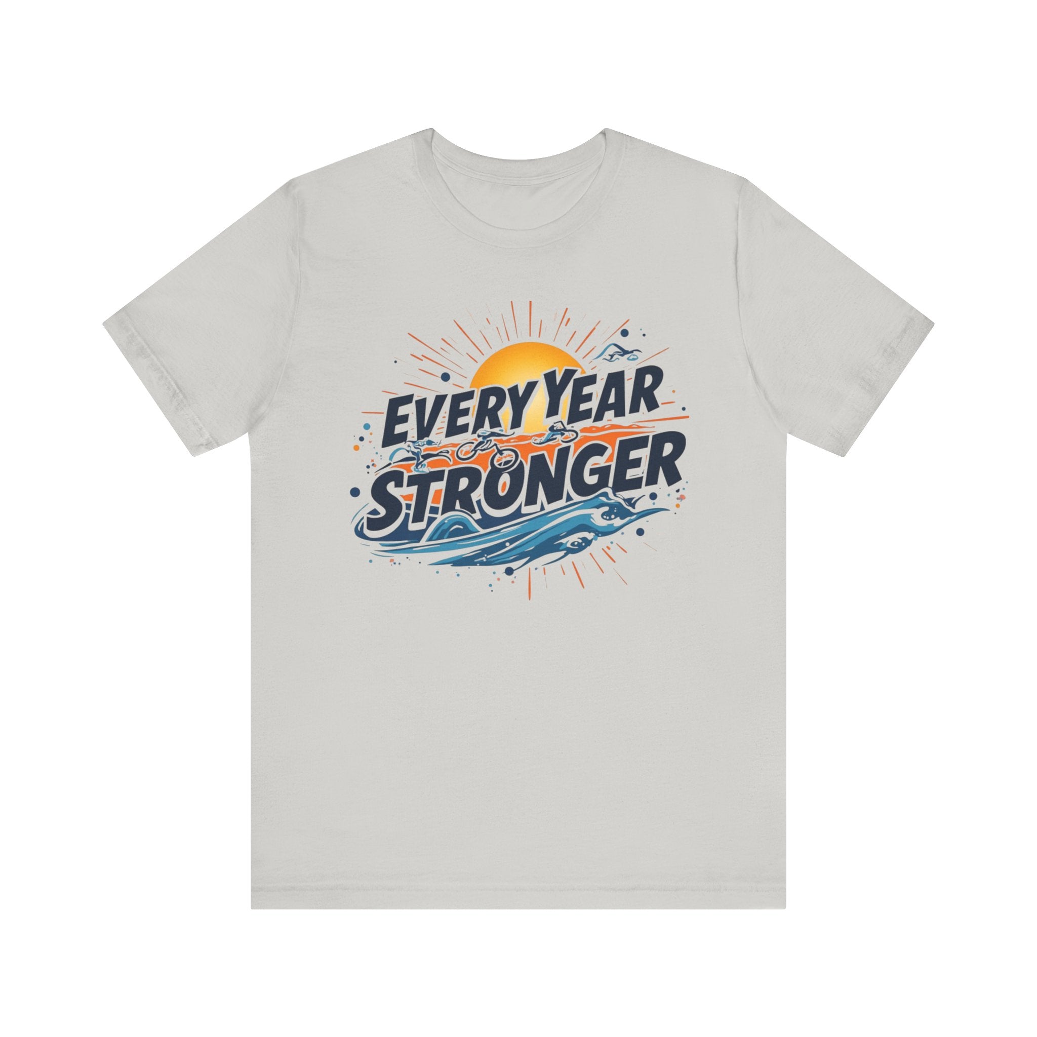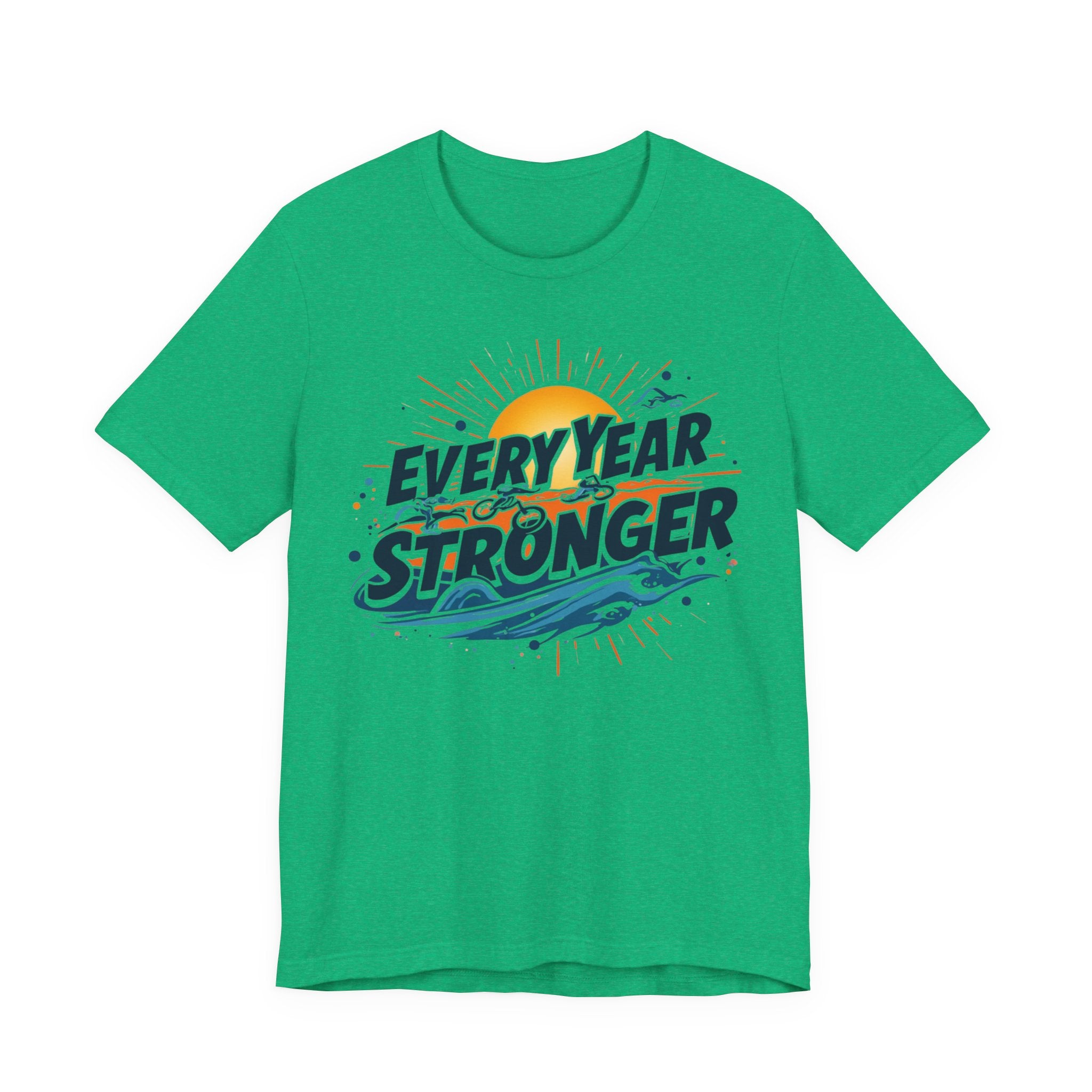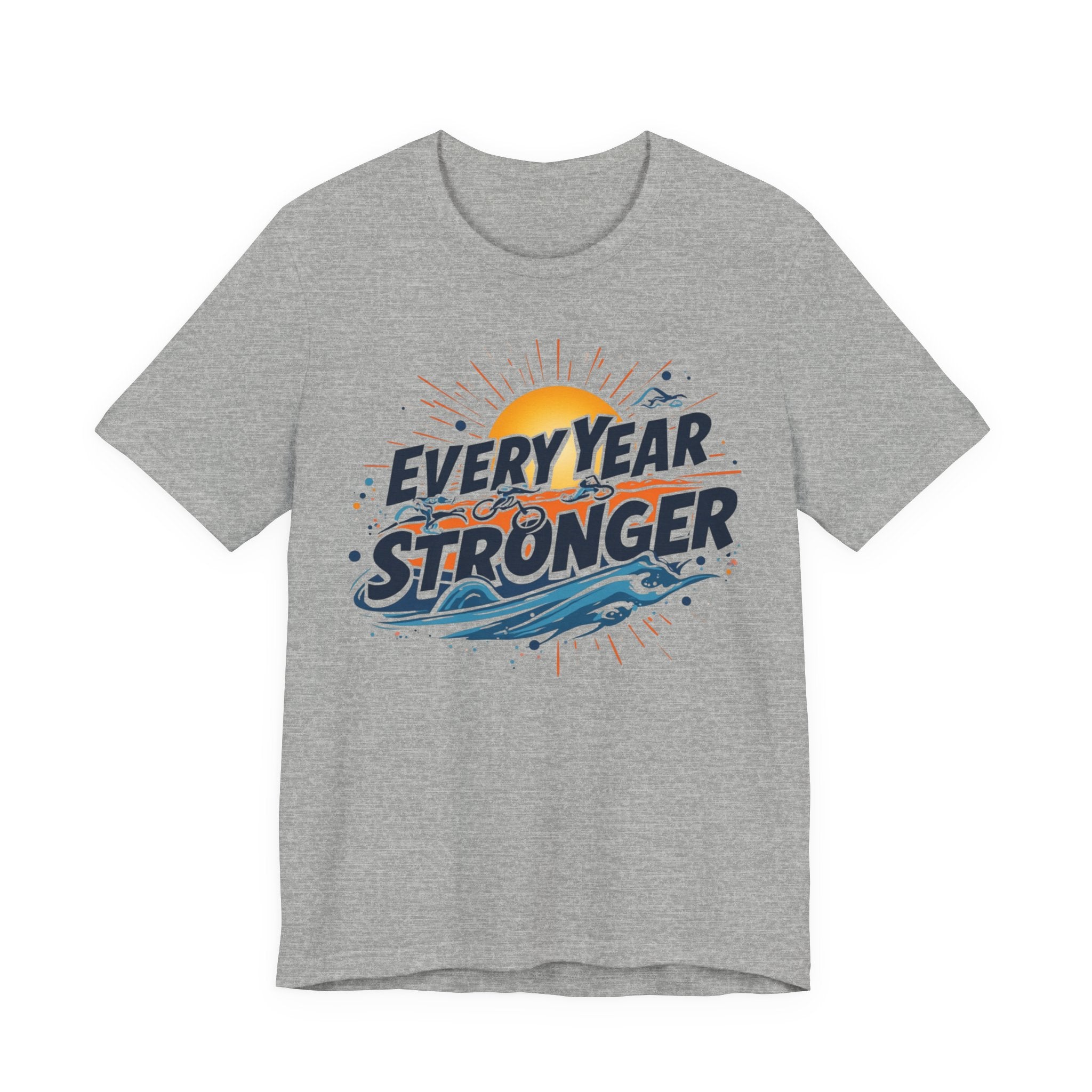Every Year Stronger Tee - Motivational Unisex Jersey Short Sleeve Shirt, Workout Apparel, Inspirational Gift, Casual Wear, Birthday Gift