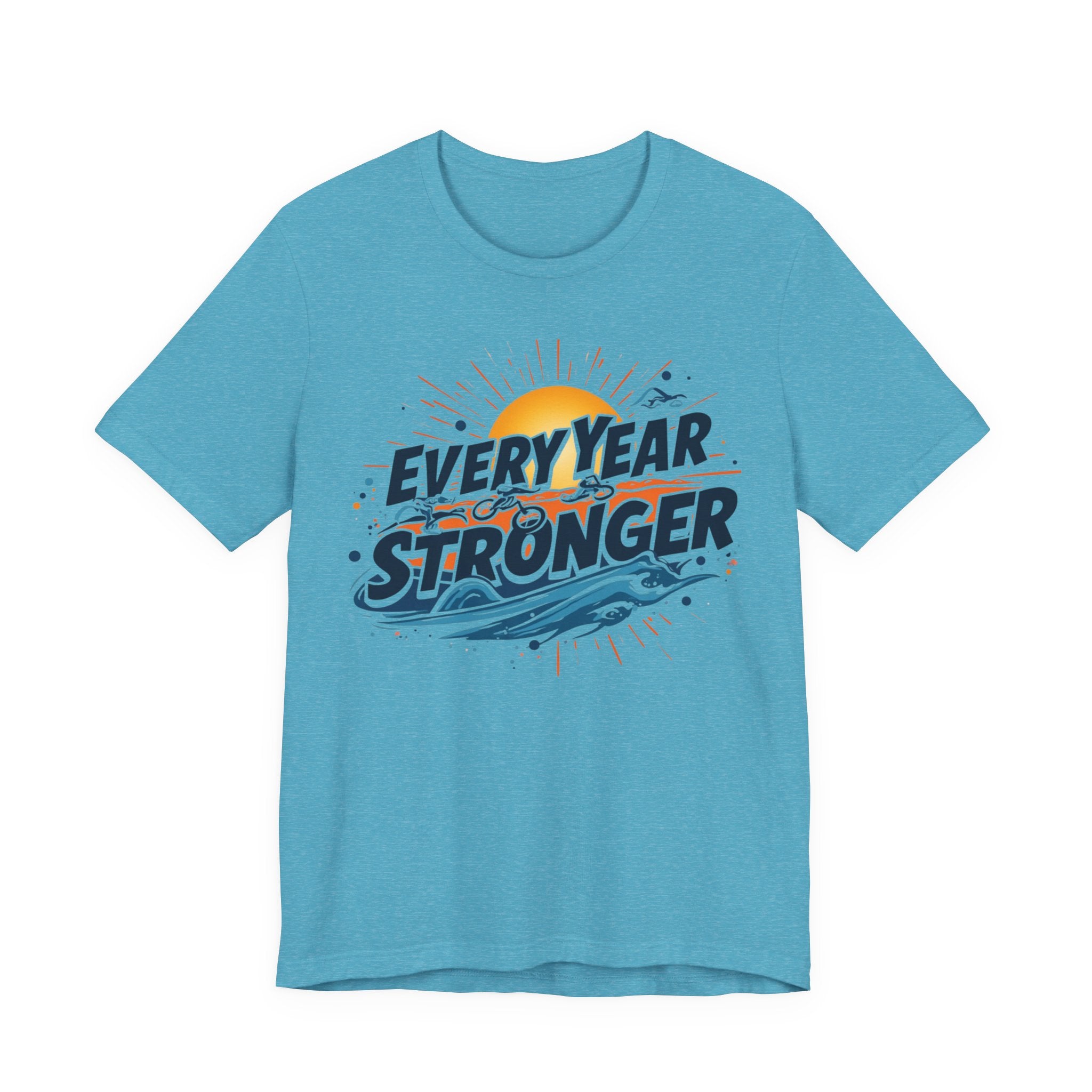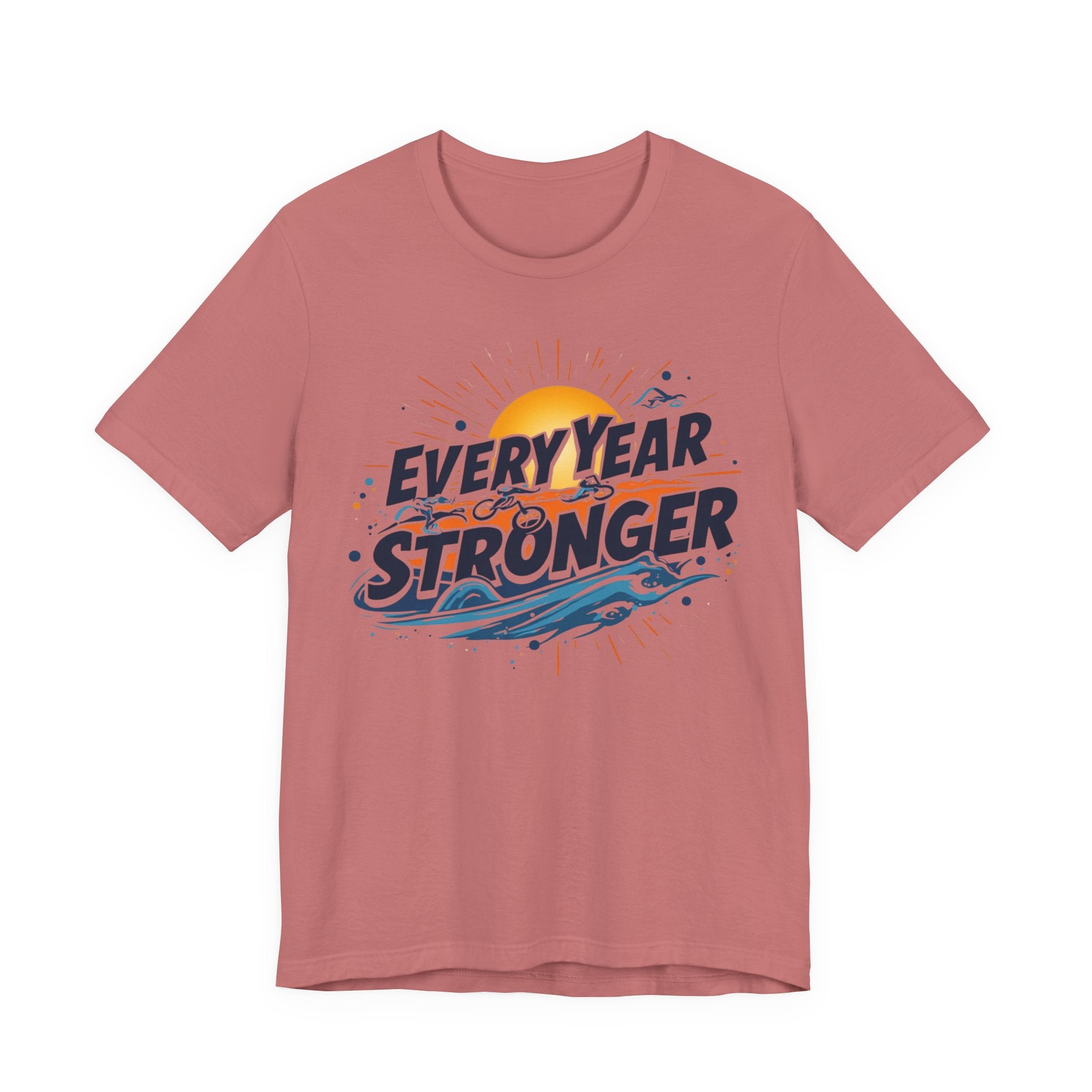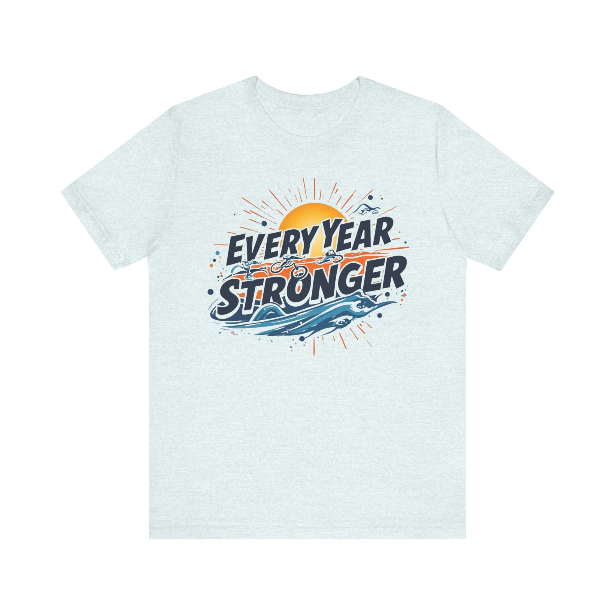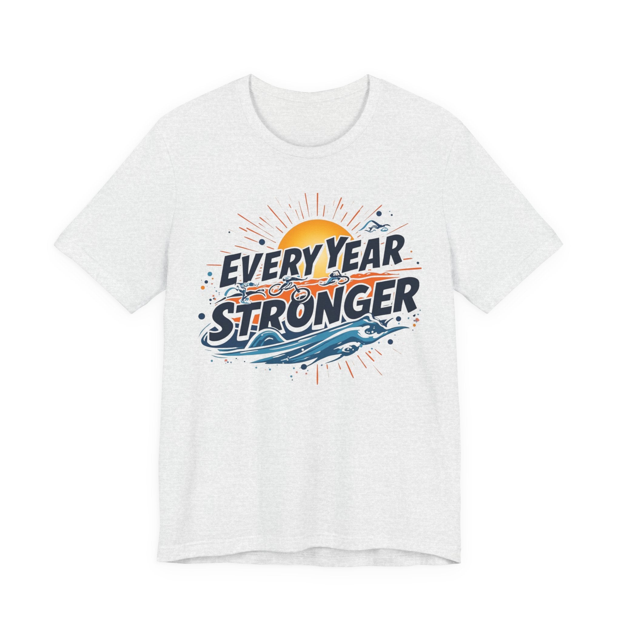Every Year Stronger Tee - Motivational Unisex Jersey Short Sleeve Shirt, Workout Apparel, Inspirational Gift, Casual Wear, Birthday Gift