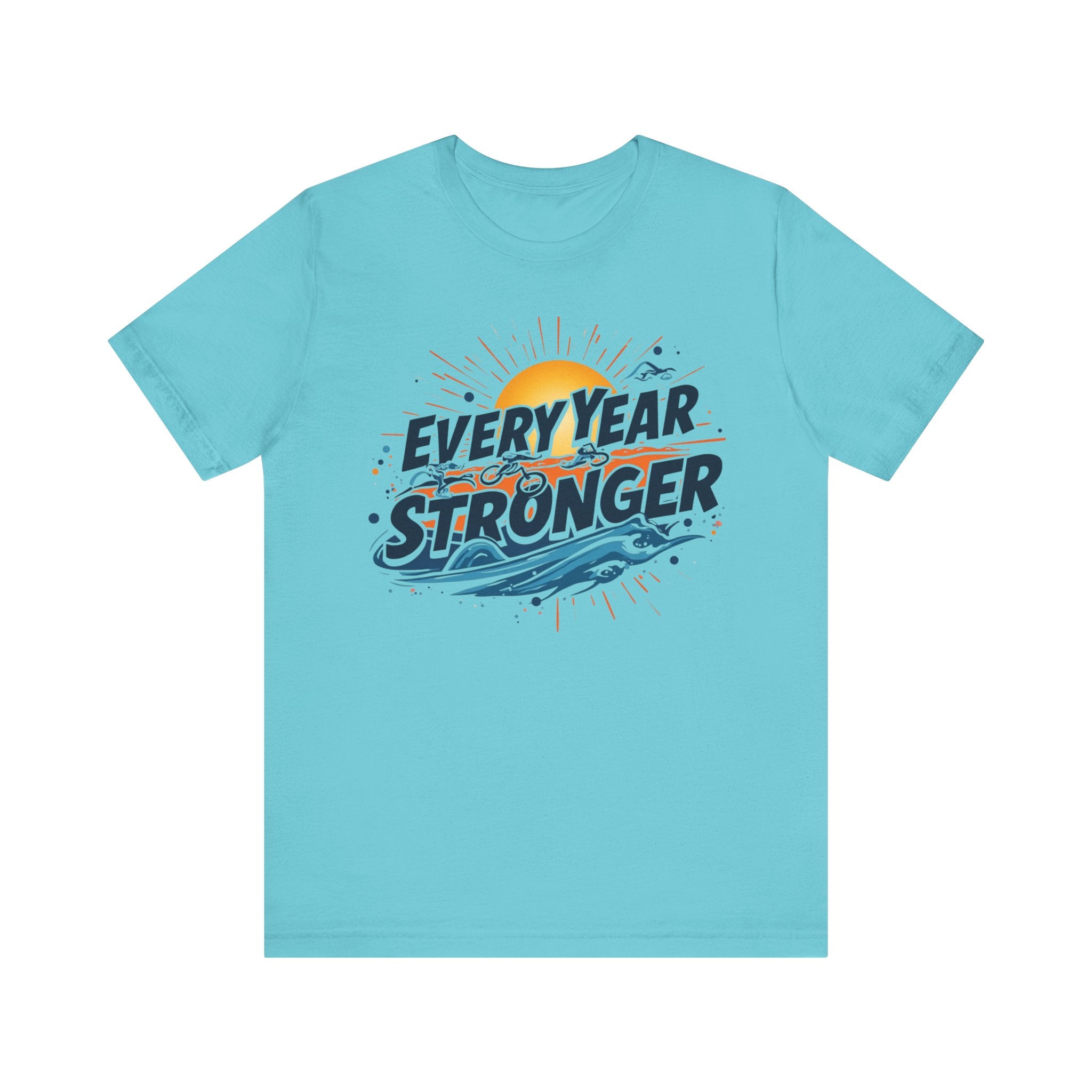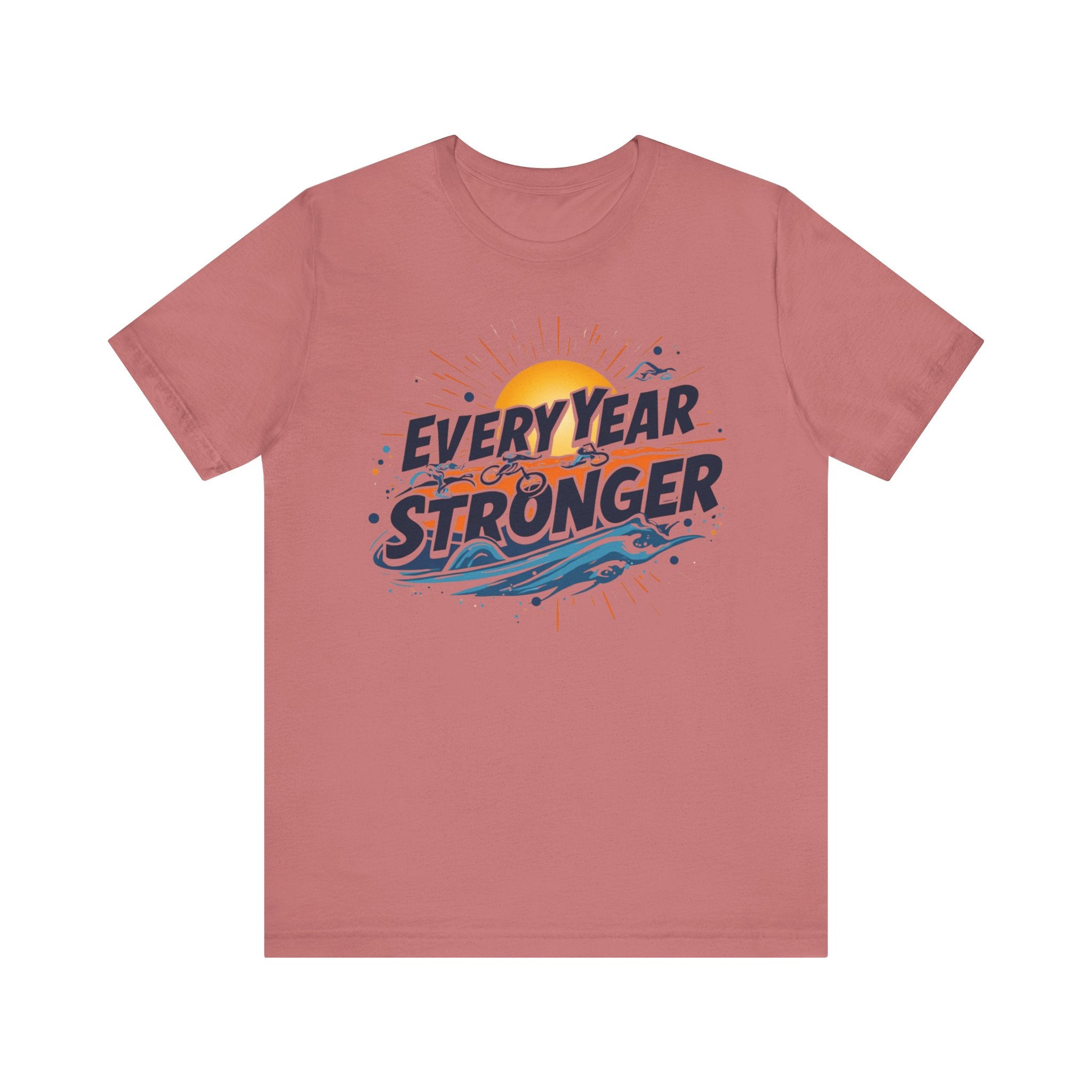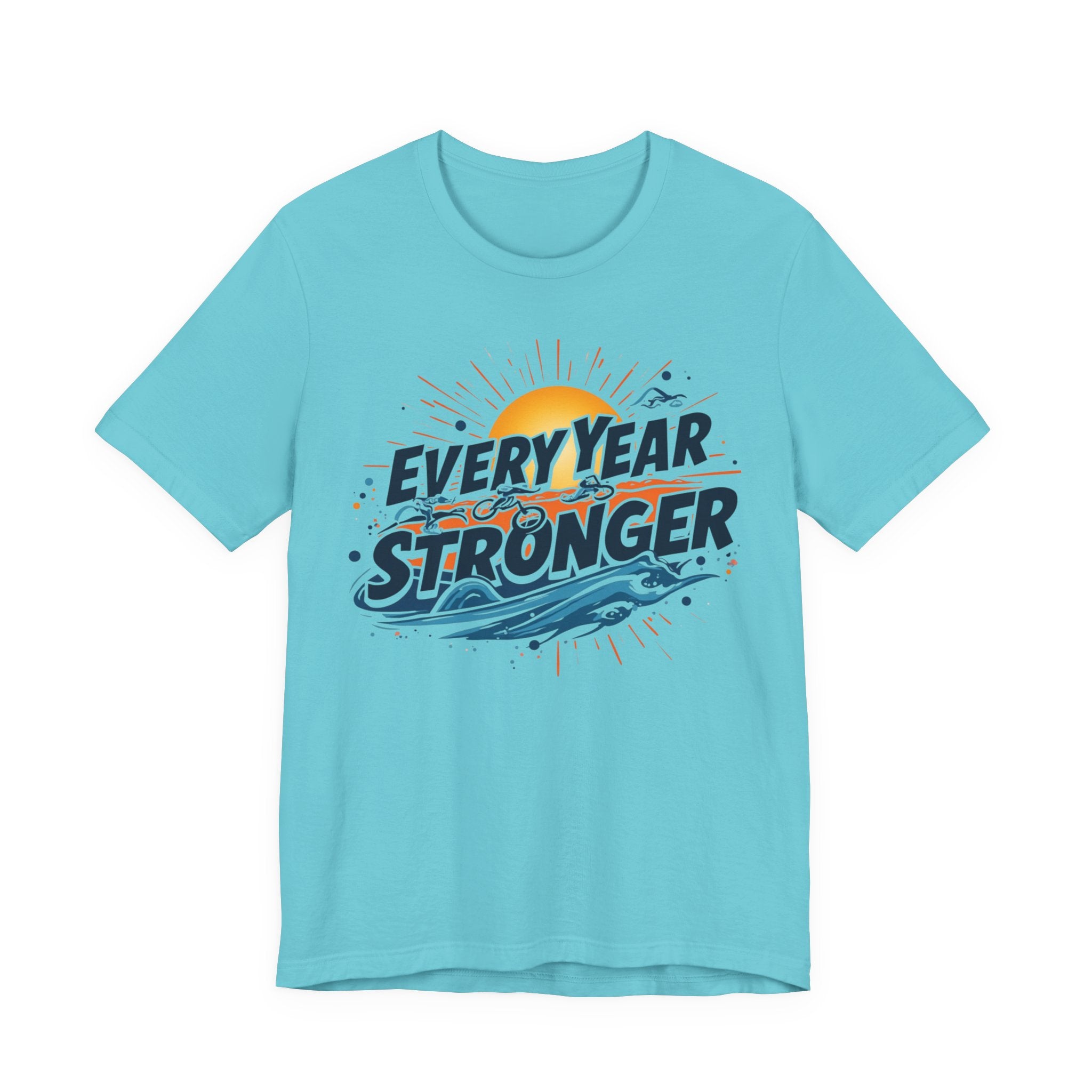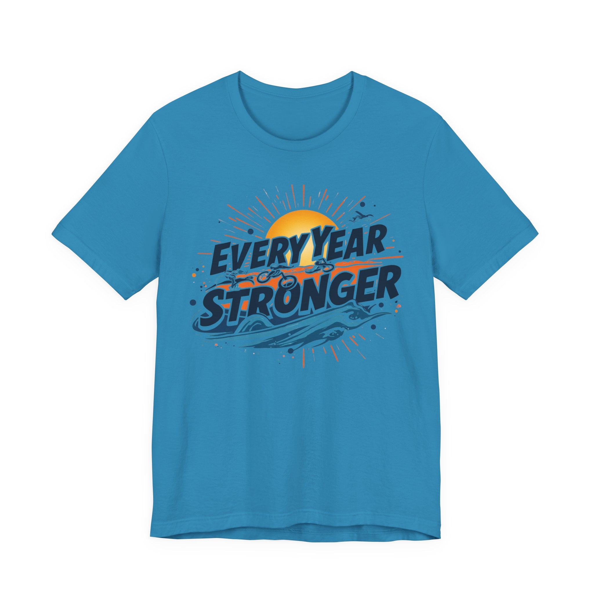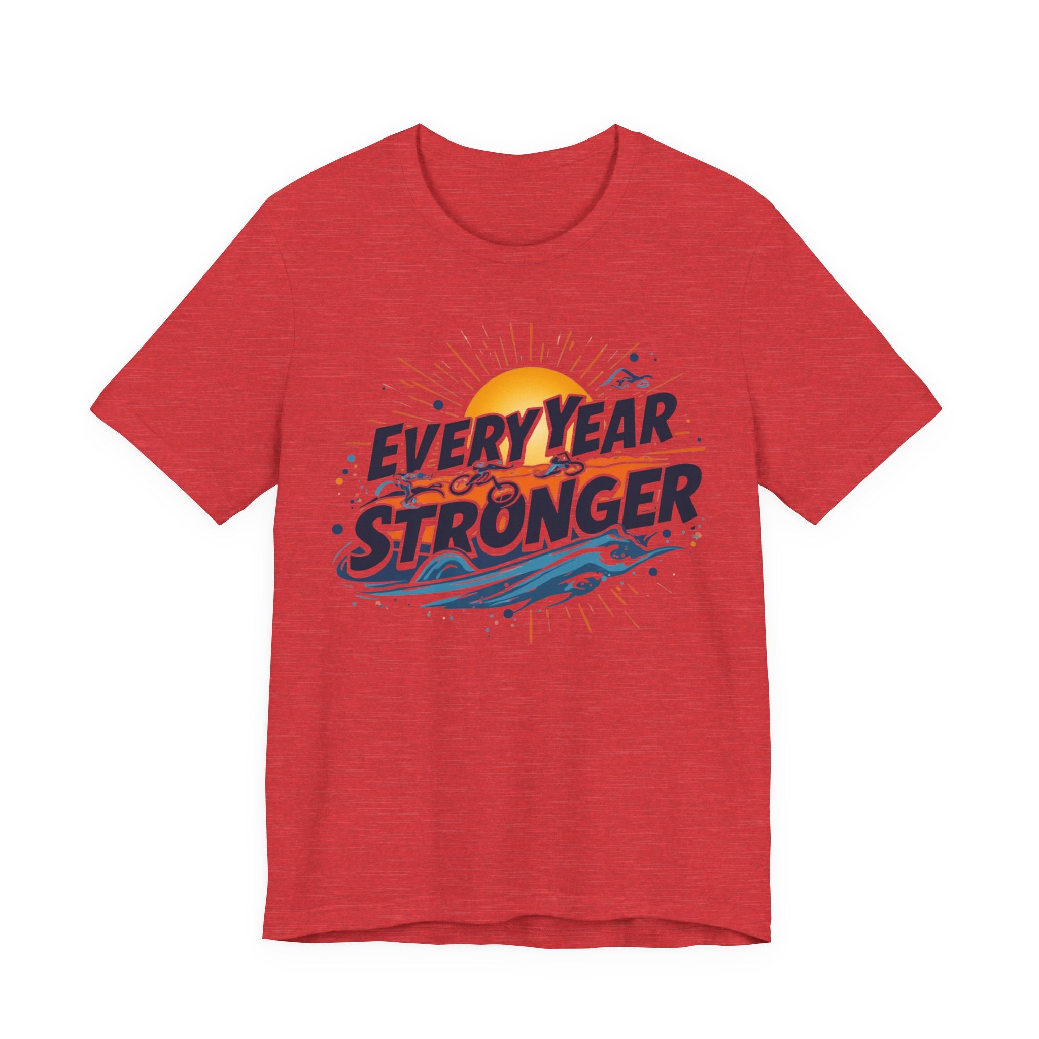 Every Year Stronger Tee - Motivational Unisex Jersey Short Sleeve Shirt, Workout Apparel, Inspirational Gift, Casual Wear, Birthday Gift