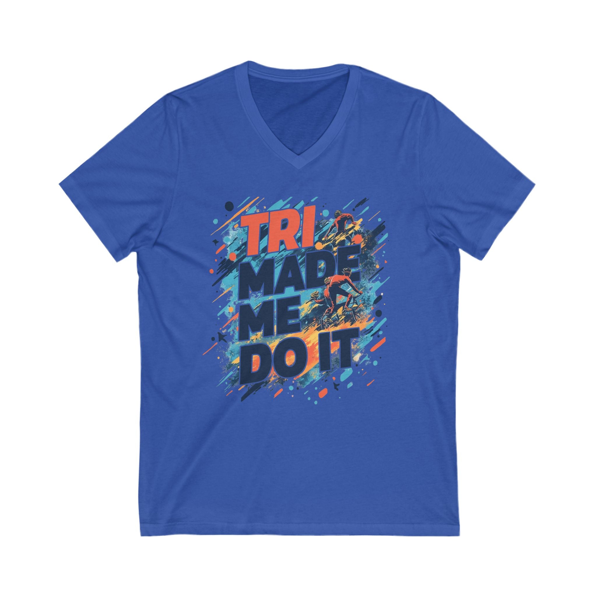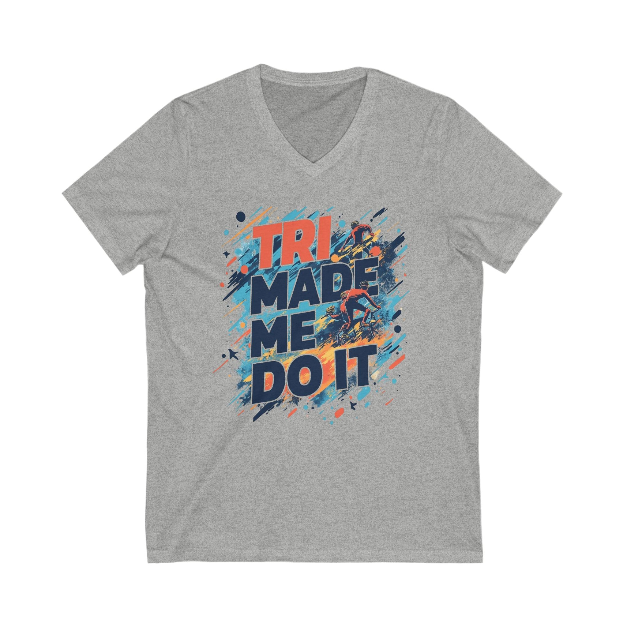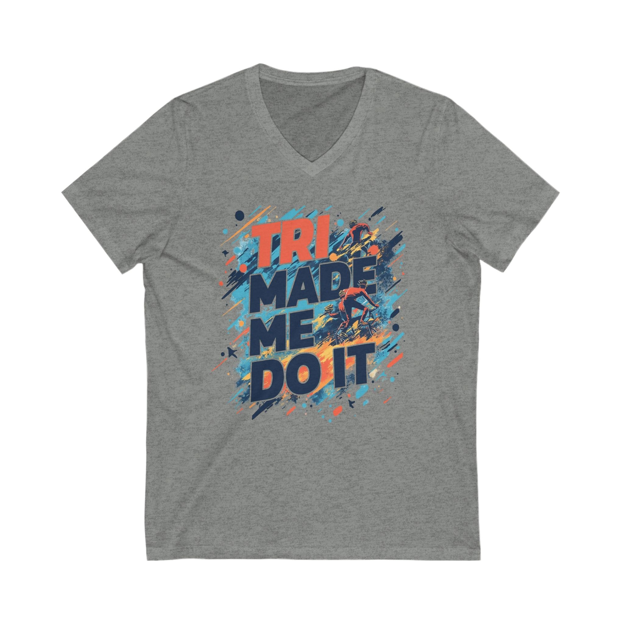 TriSpirit "Tri Made Me Do It" Unisex Jersey Short Sleeve V-Neck Tee