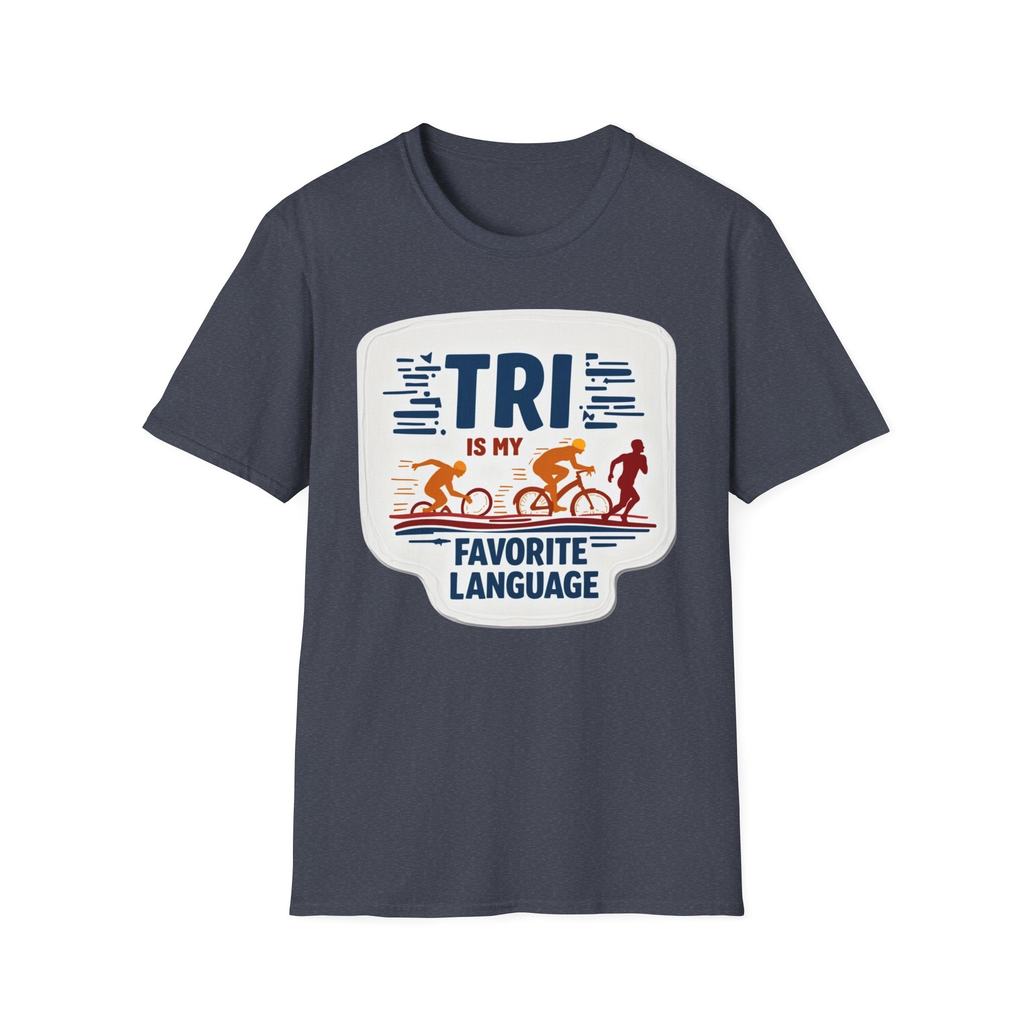 Unisex Triathlon Language T-Shirt - Athletic Wear for Fitness Enthusiasts, Soft Ring-Spun Cotton, Summer Running Apparel, Gildan 64000, Breathable Exercise Top