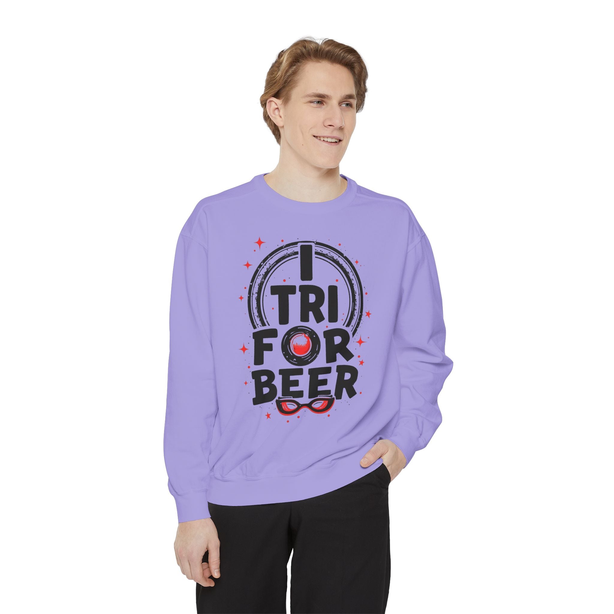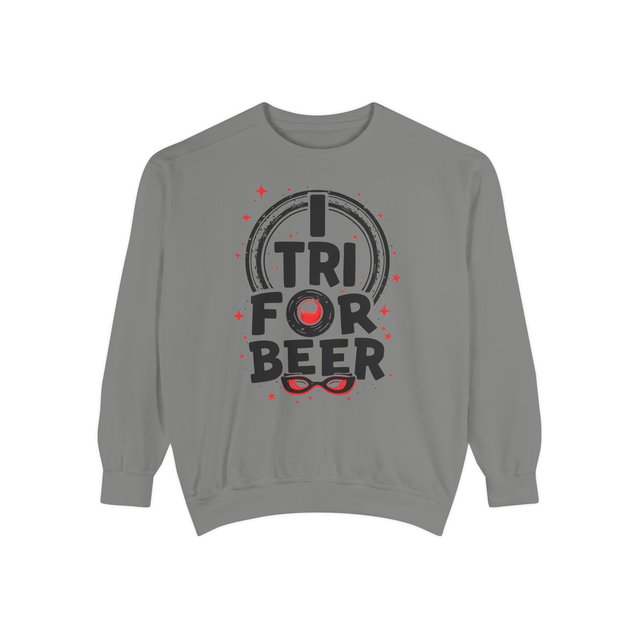 Triathlon Sweatshirt - Relaxed-Fit Ring-Spun Cotton (80/20) I TRI FOR BEER Vintage Distressed Graphic | OEKO-TEX