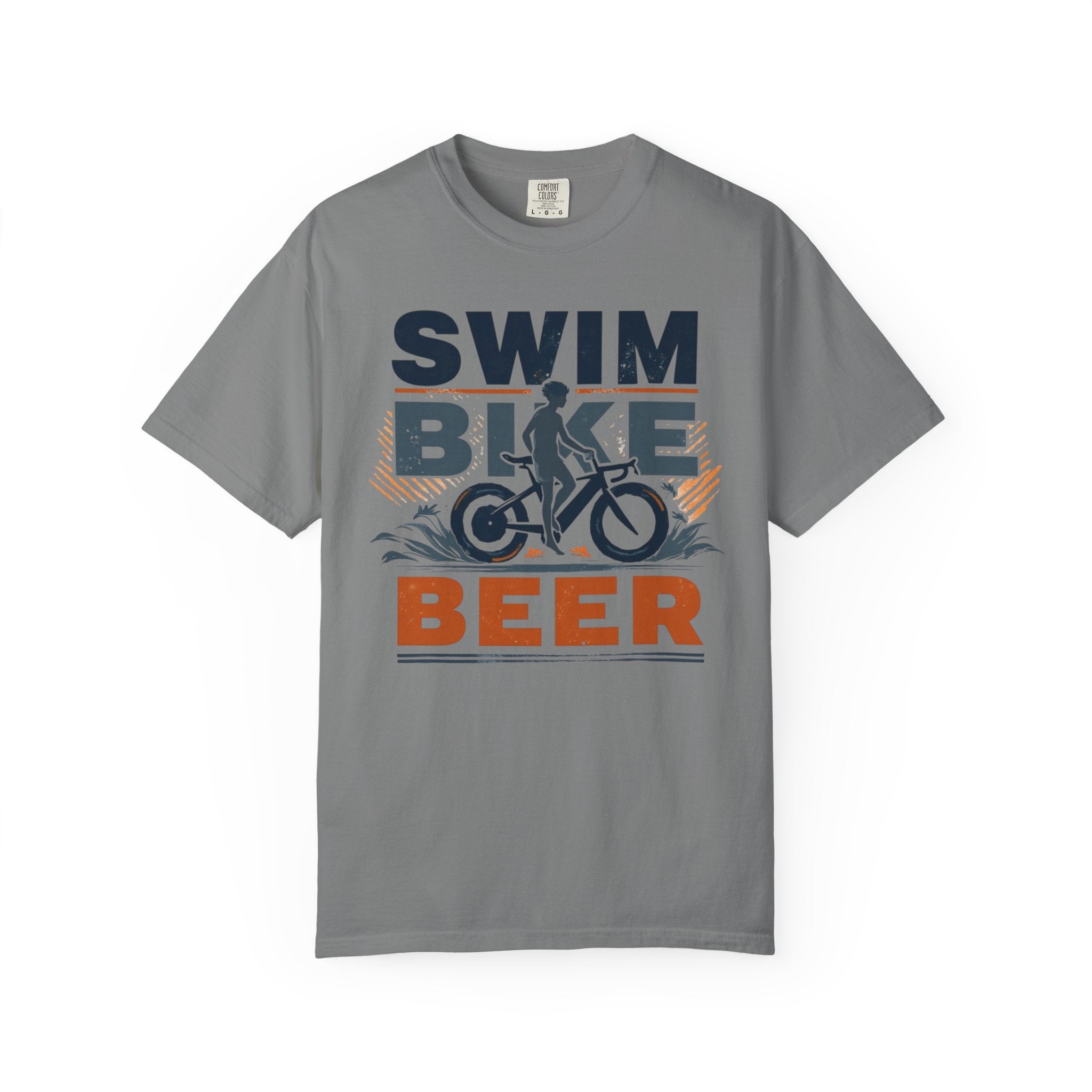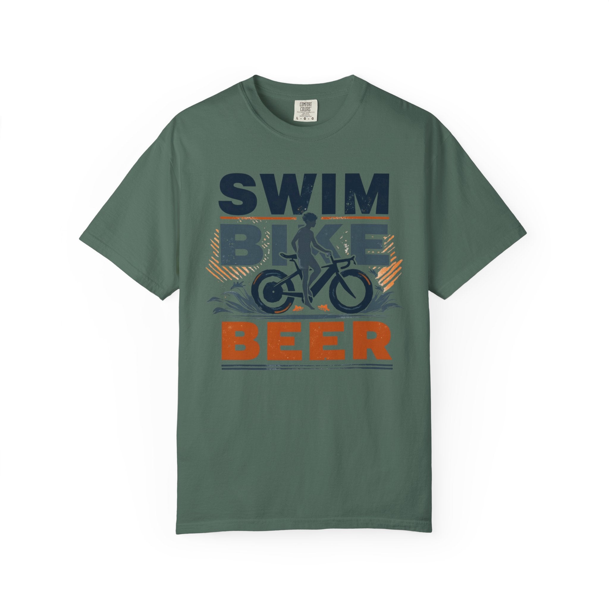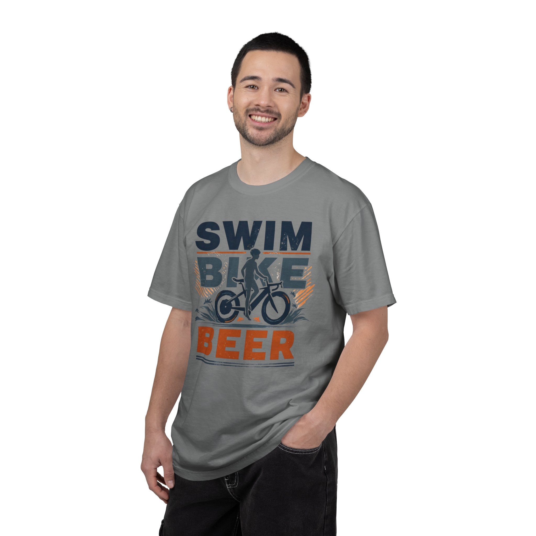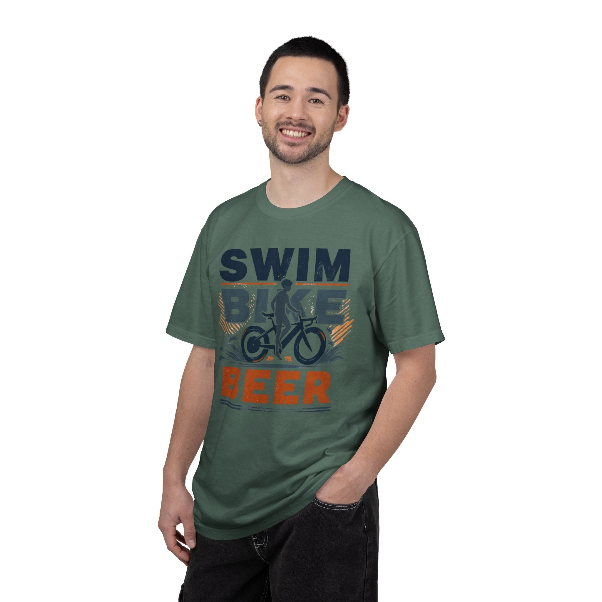 Triathlon Tee - Heavyweight Ring-Spun Cotton (100%) Garment-Dyed Vintage Look - Relaxed Fit Swim-Bike-Beer Graphic