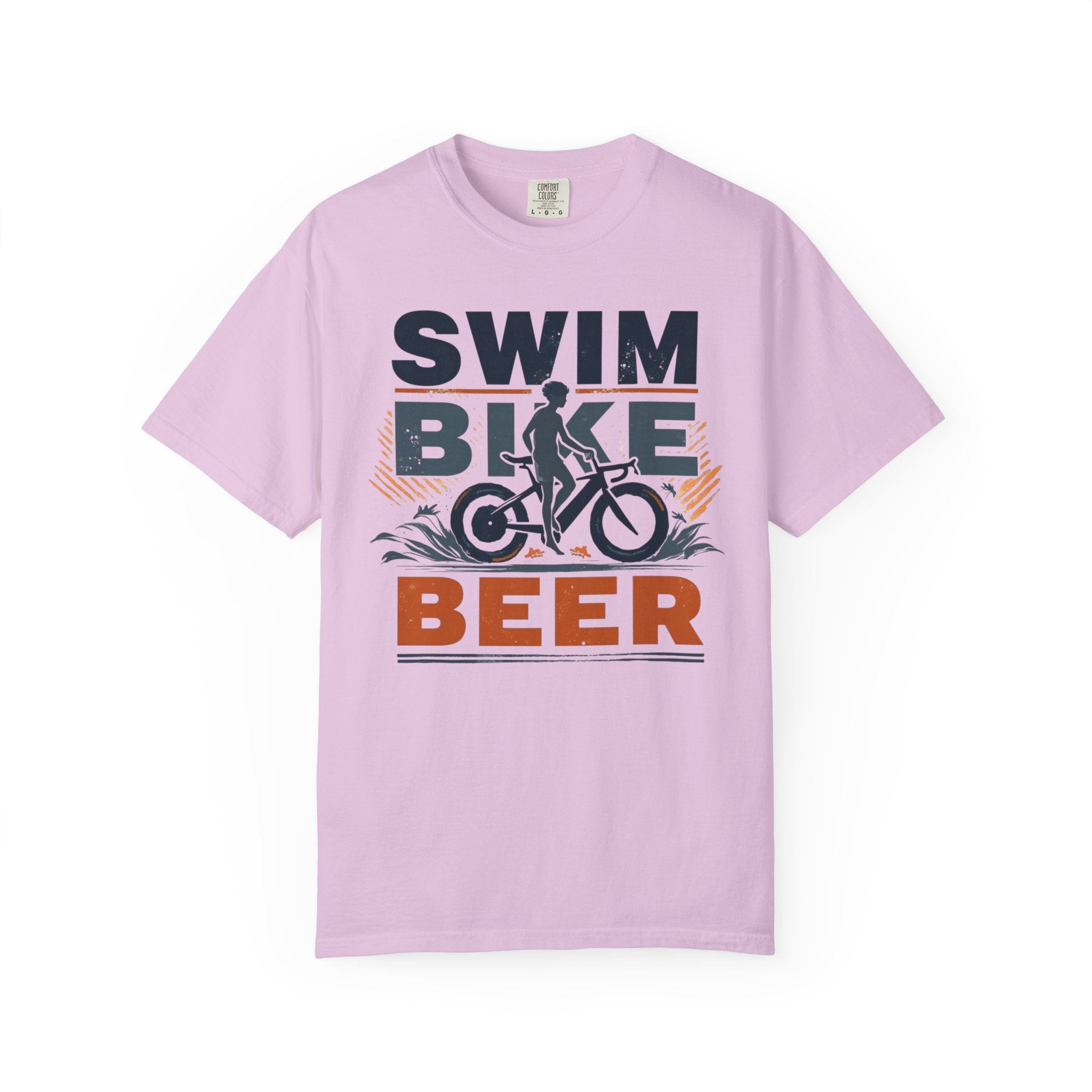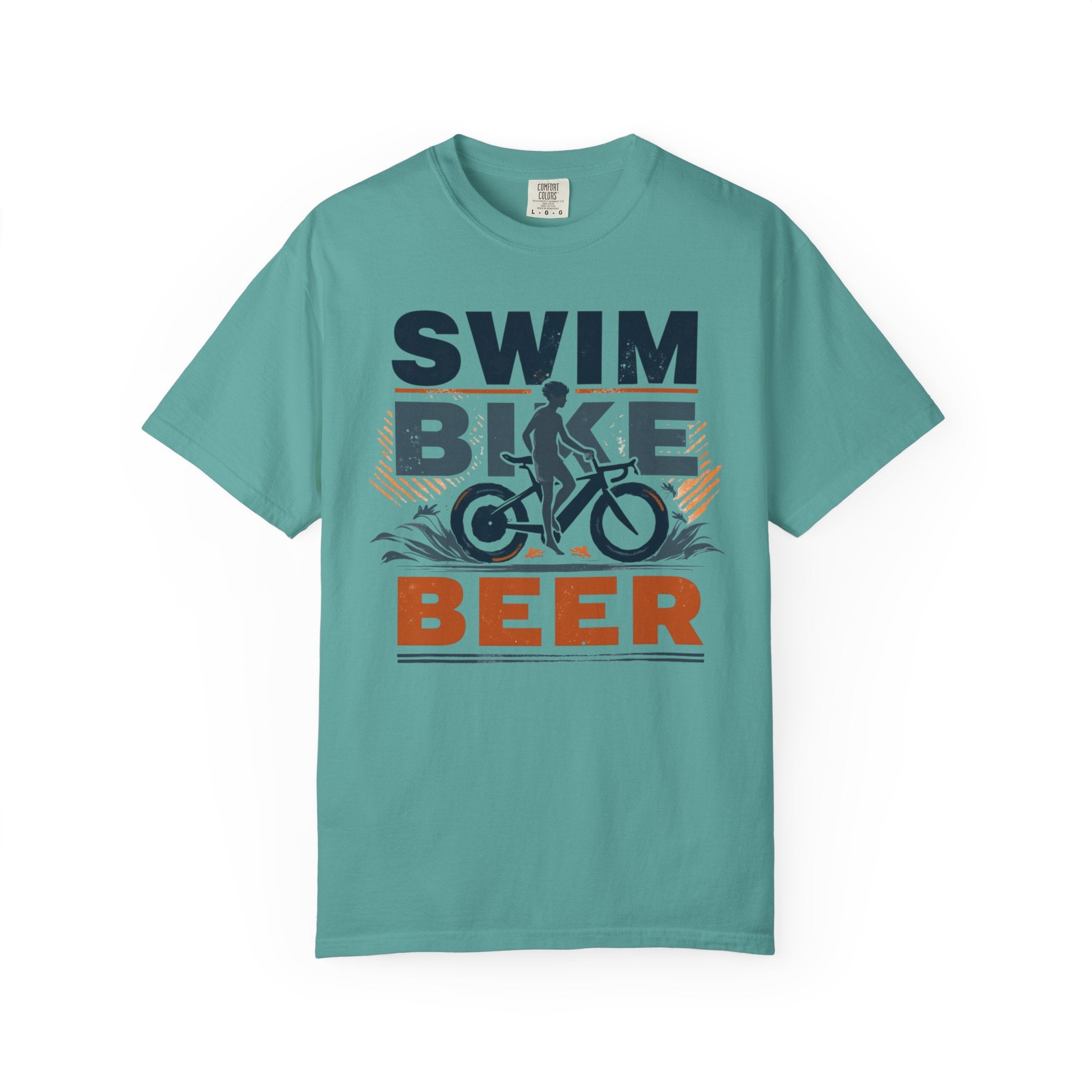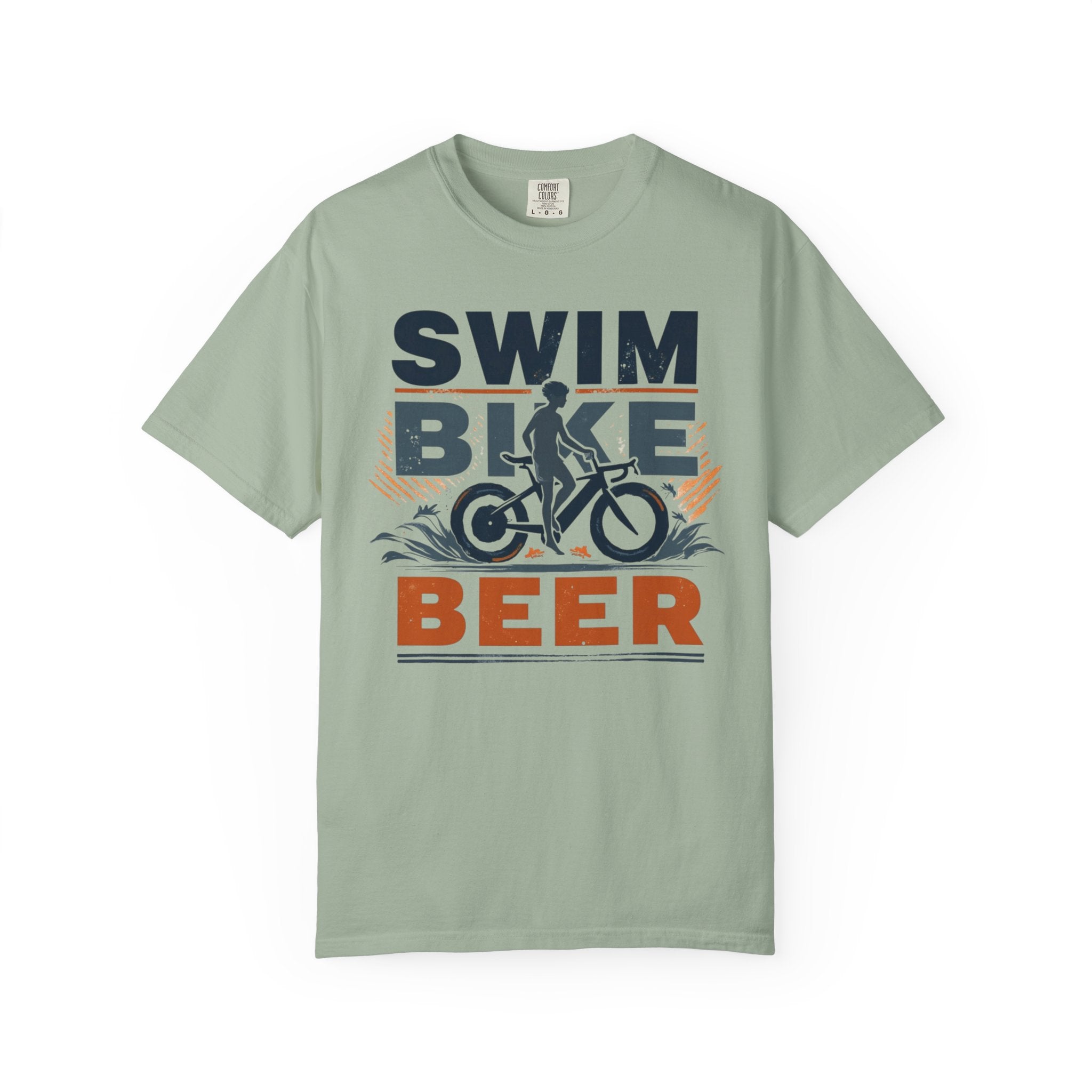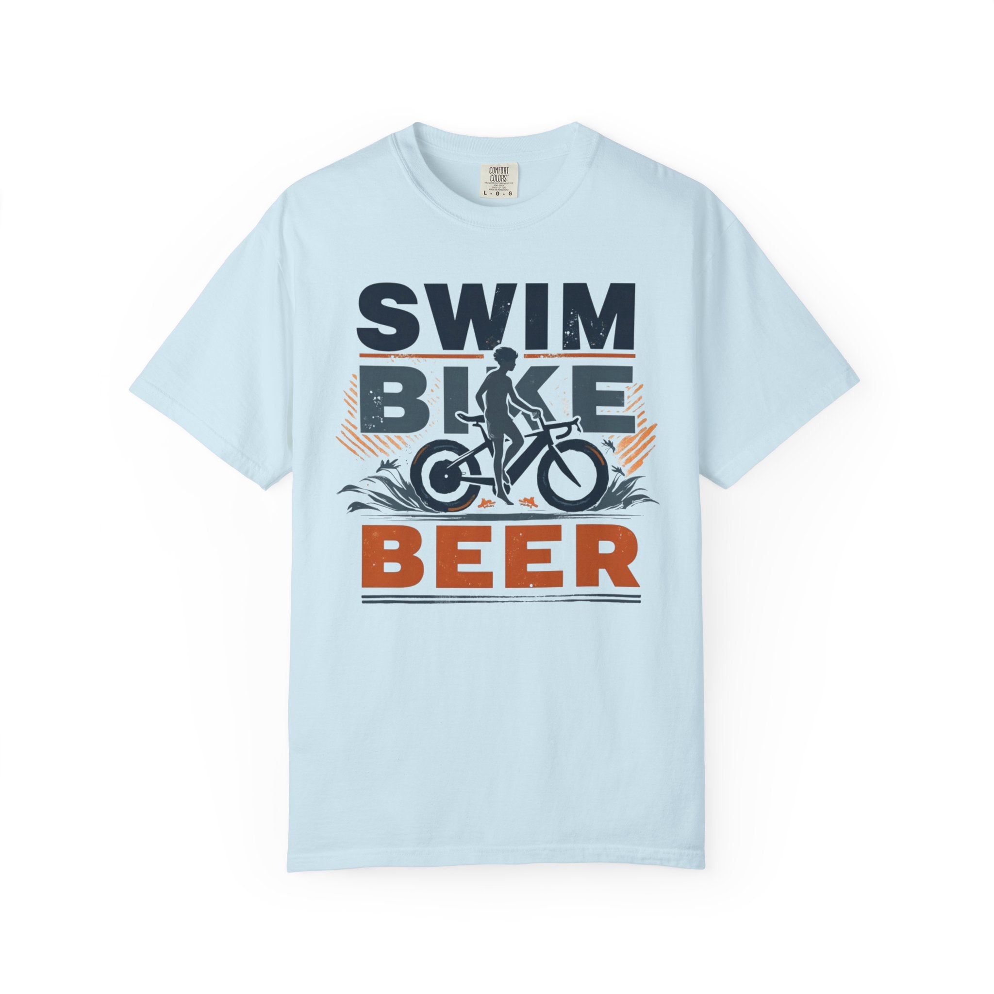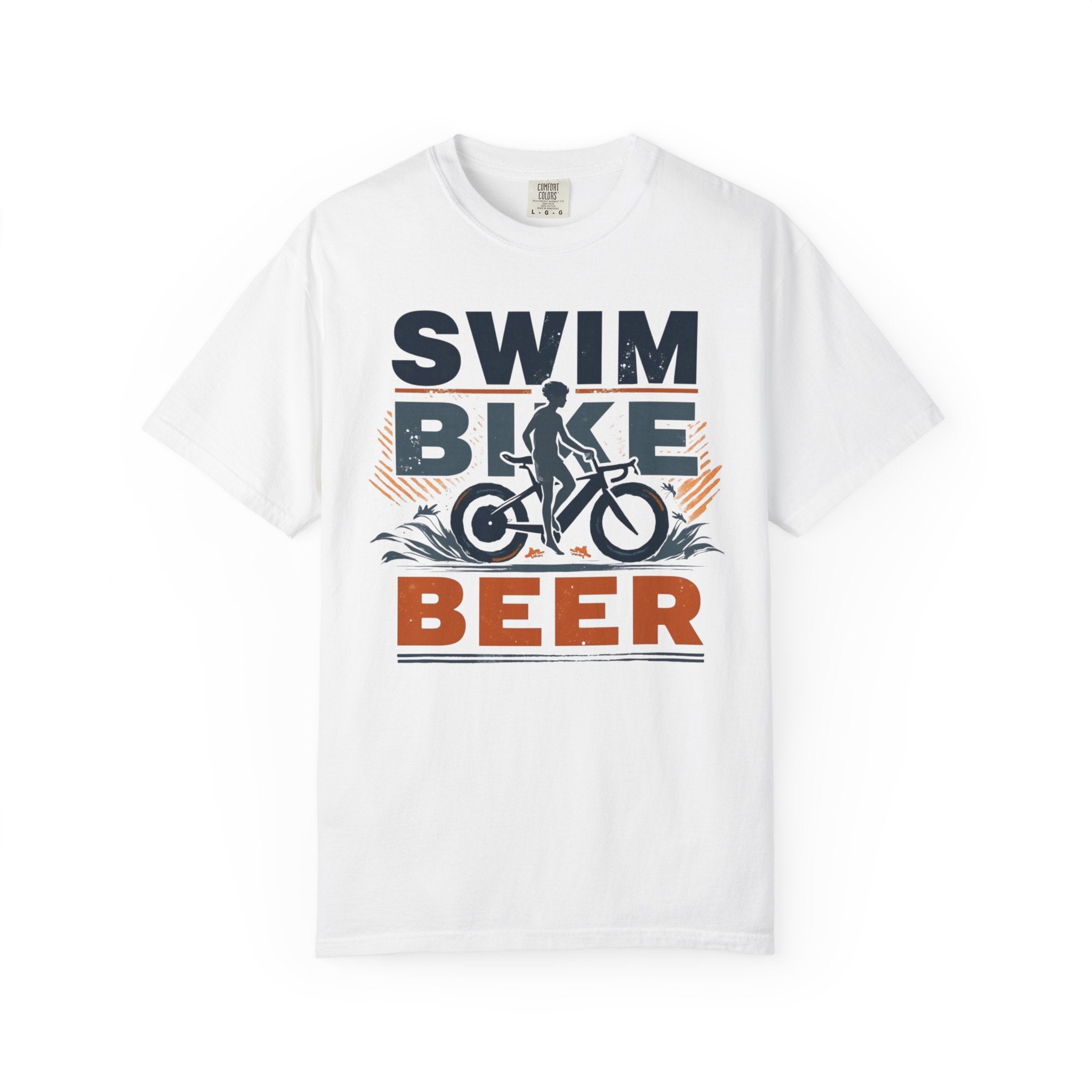 Triathlon Tee - Heavyweight Ring-Spun Cotton (100%) Garment-Dyed Vintage Look - Relaxed Fit Swim-Bike-Beer Graphic