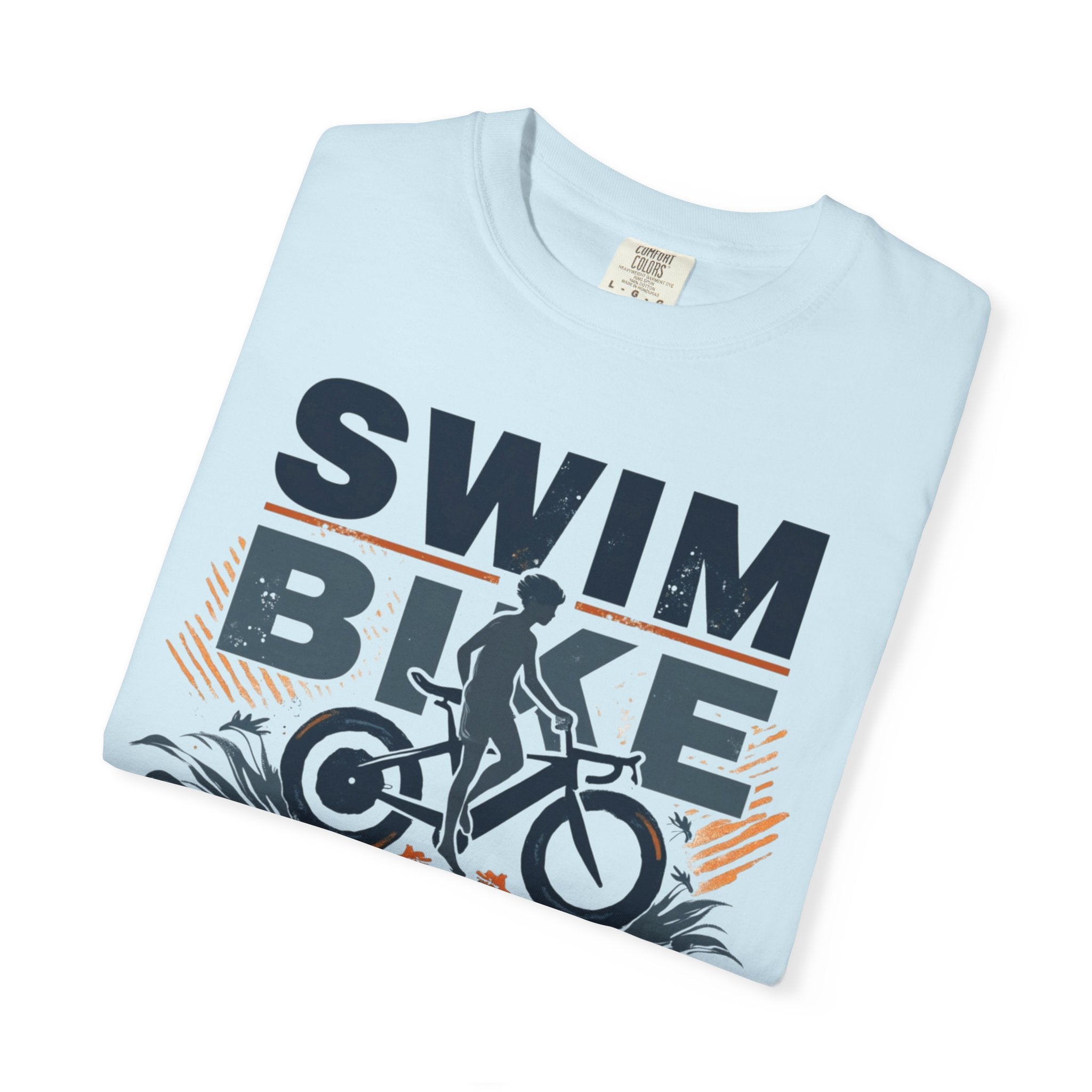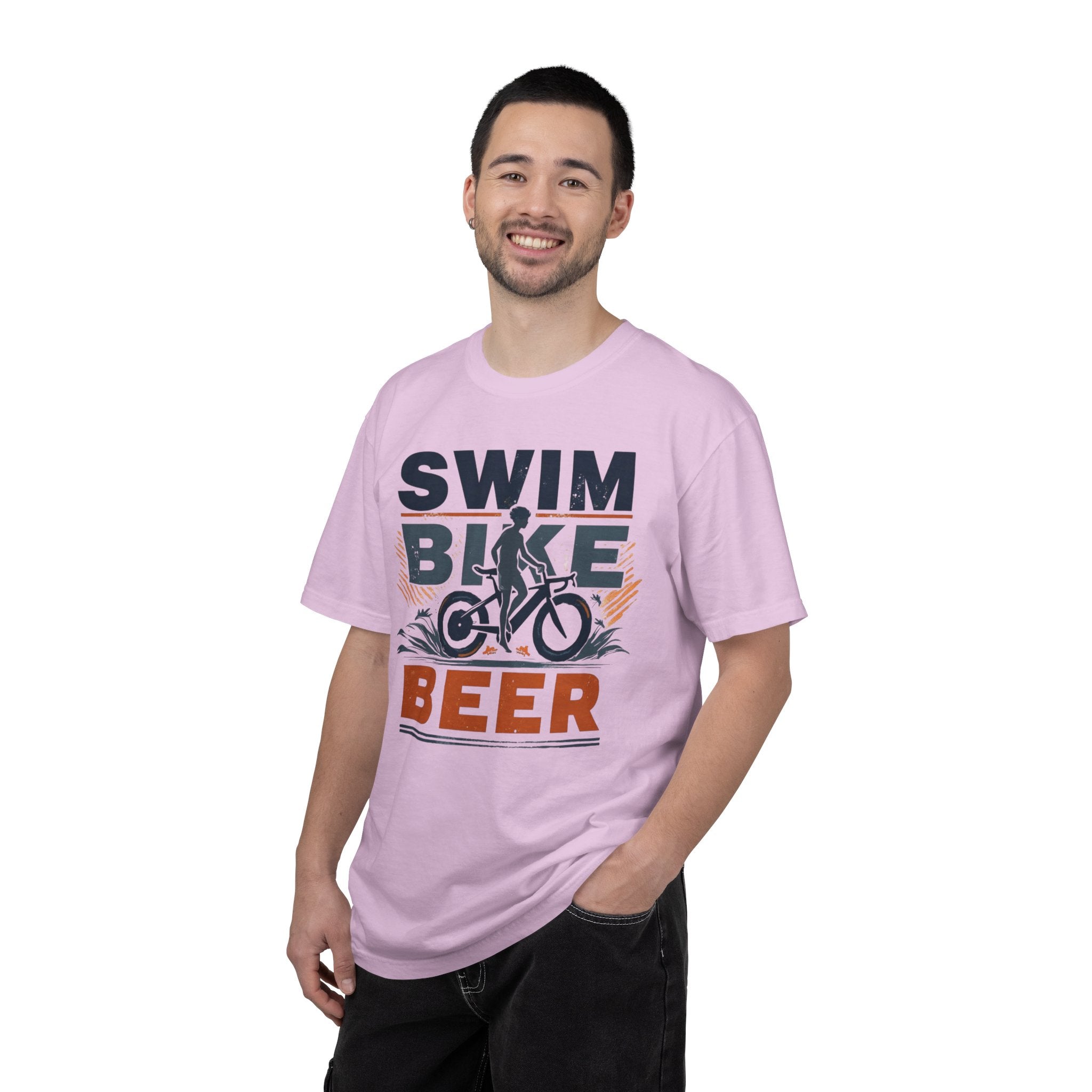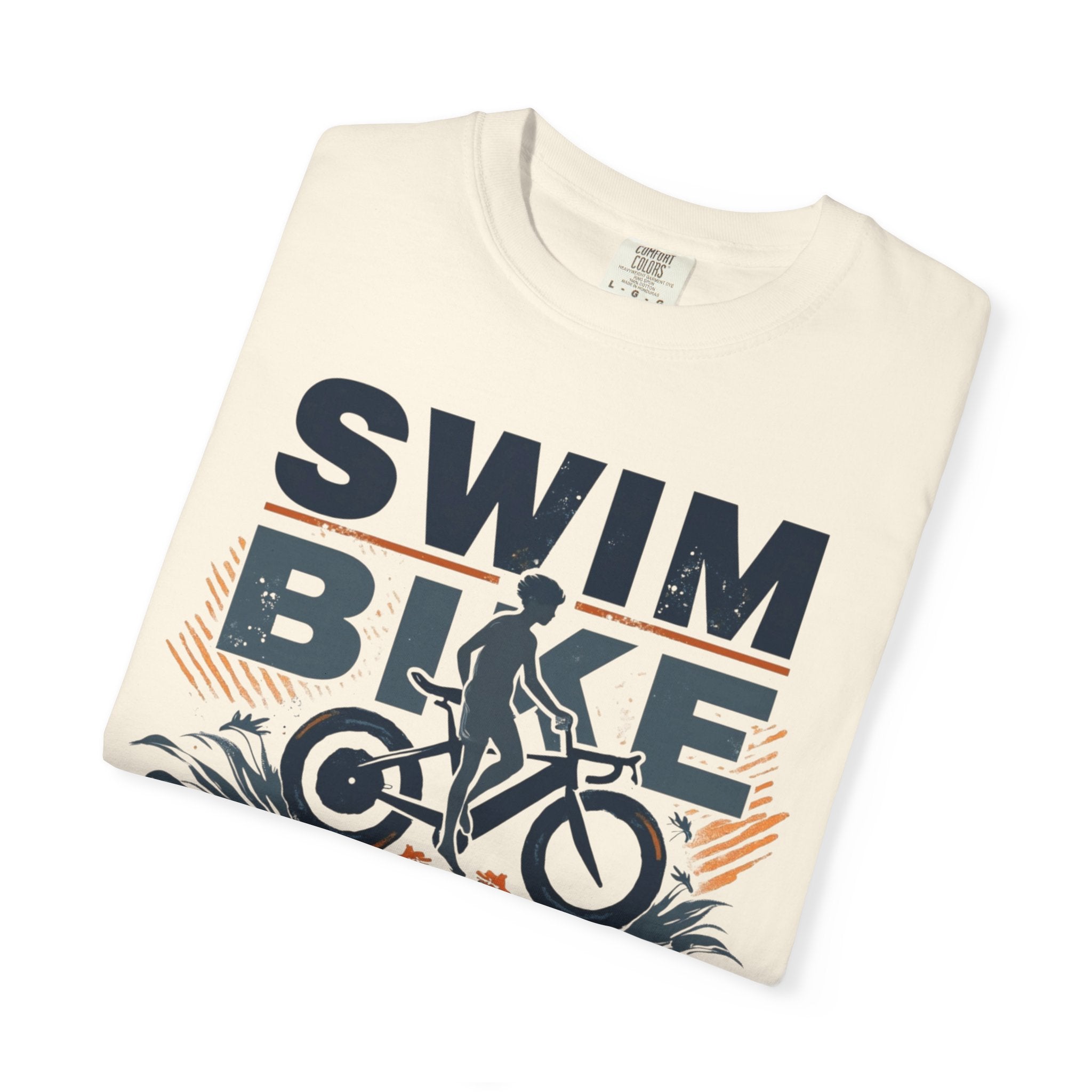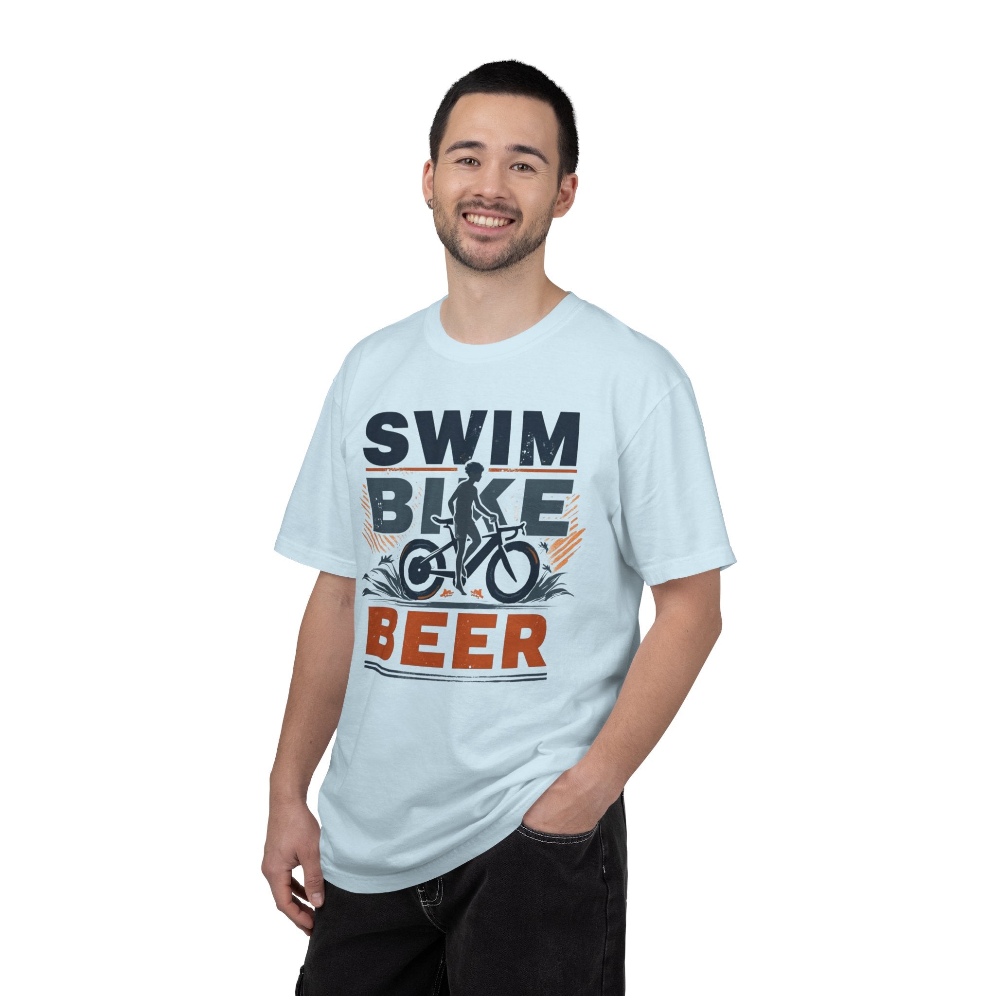Triathlon Tee - Heavyweight Ring-Spun Cotton (100%) Garment-Dyed Vintage Look - Relaxed Fit Swim-Bike-Beer Graphic