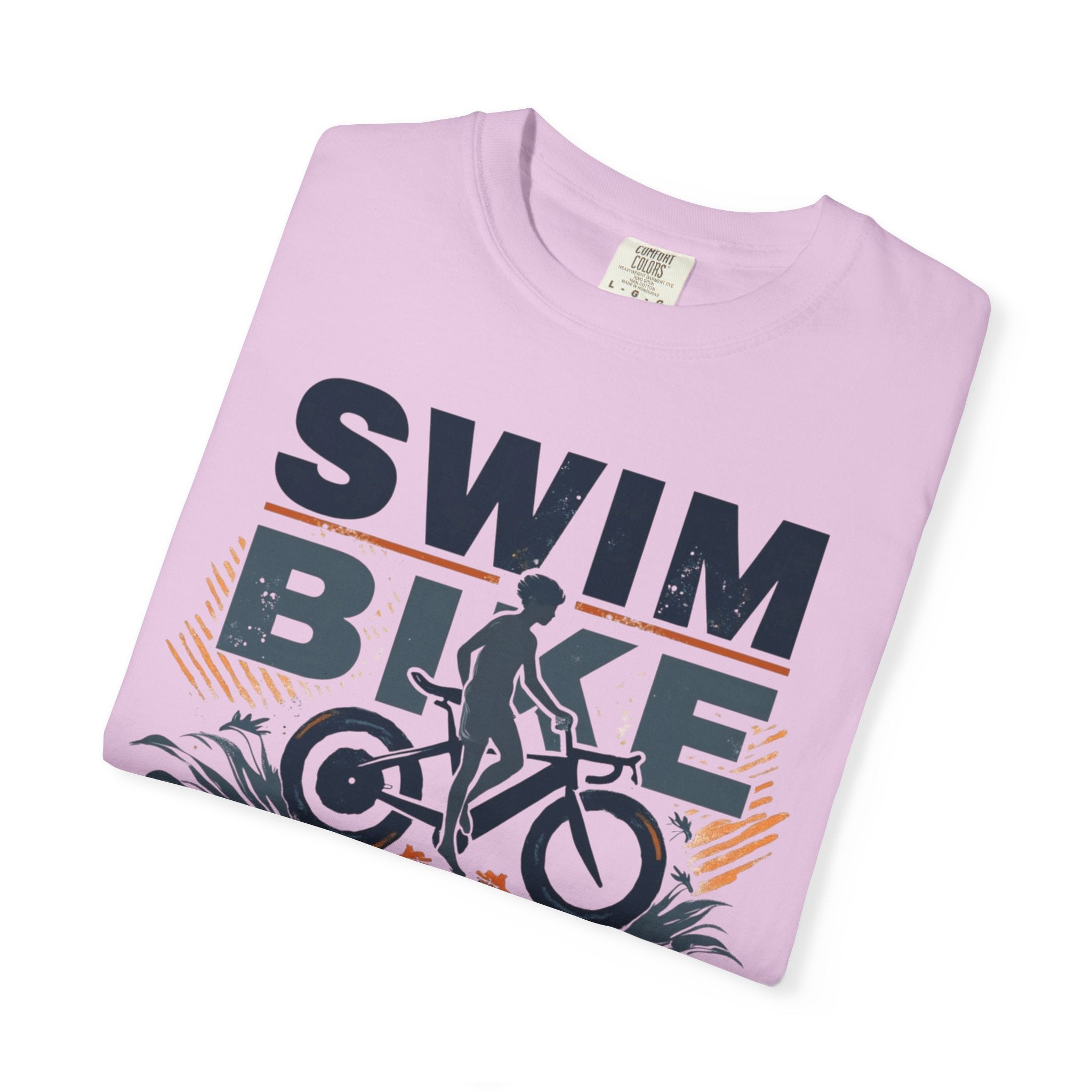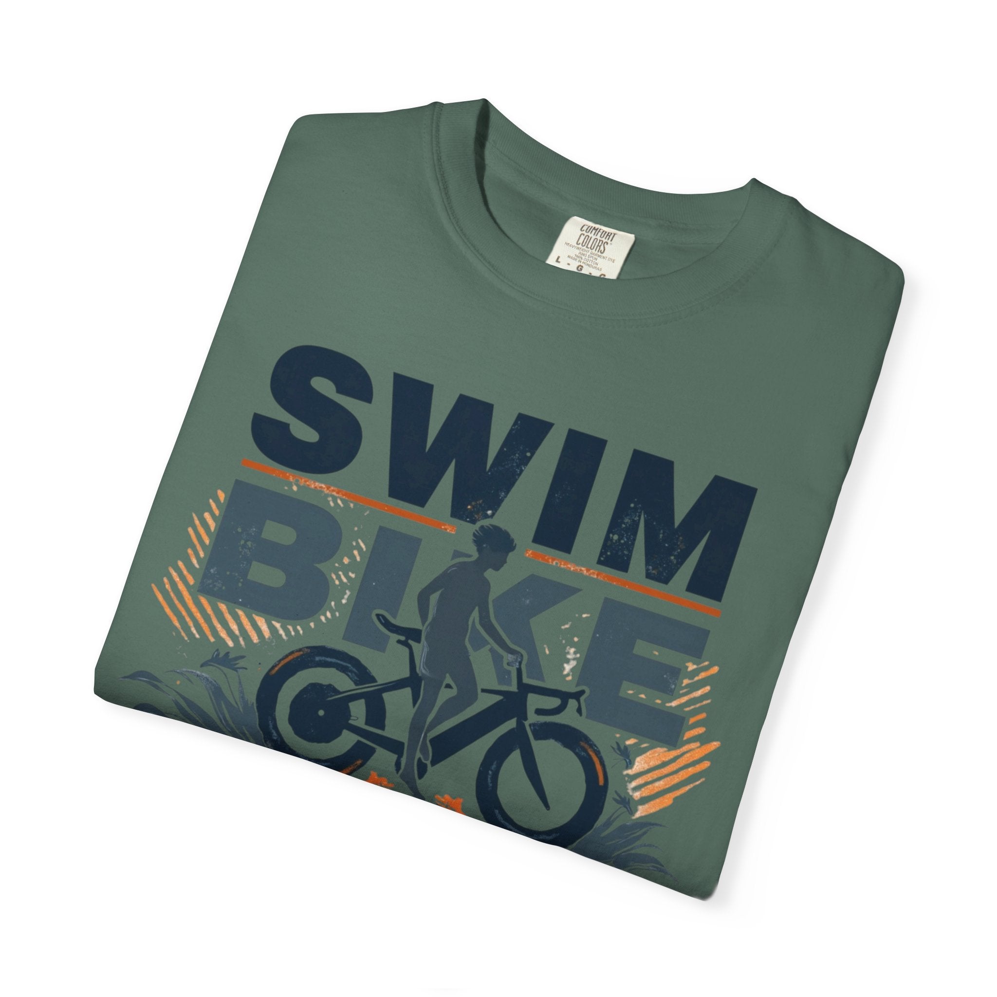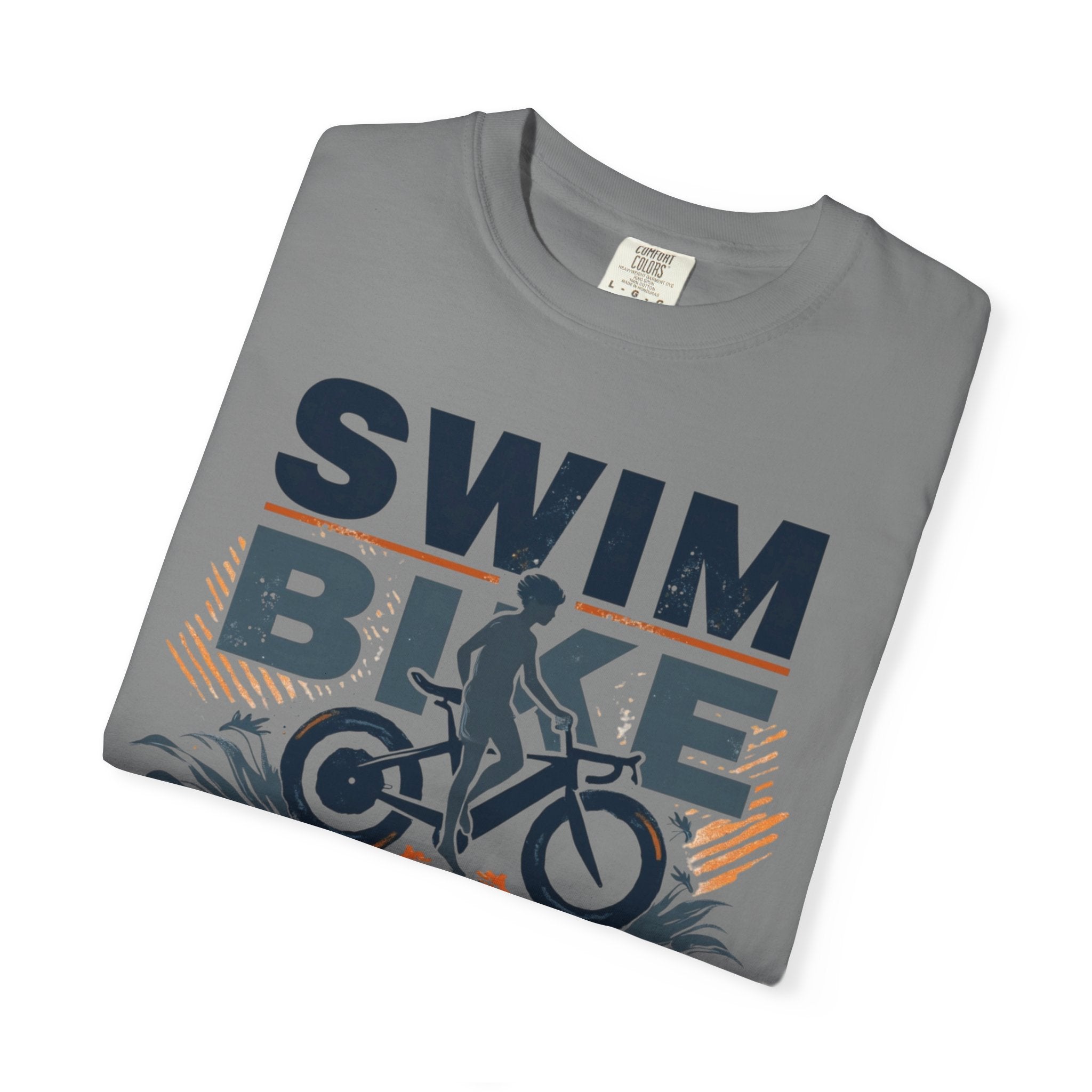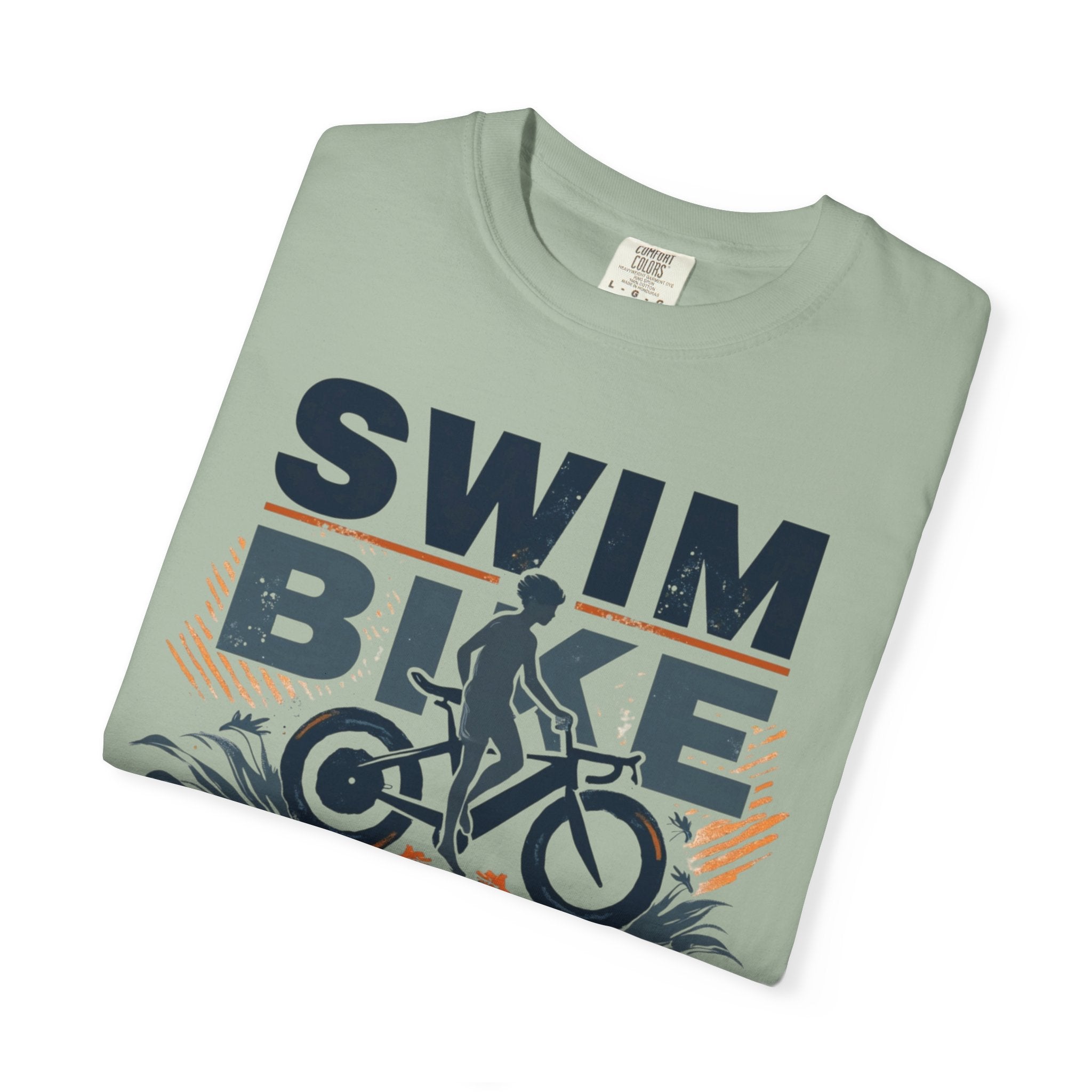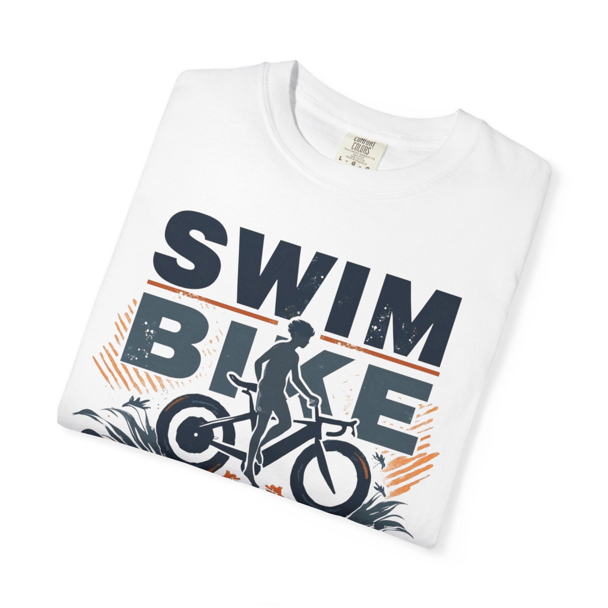 Triathlon Tee - Heavyweight Ring-Spun Cotton (100%) Garment-Dyed Vintage Look - Relaxed Fit Swim-Bike-Beer Graphic
