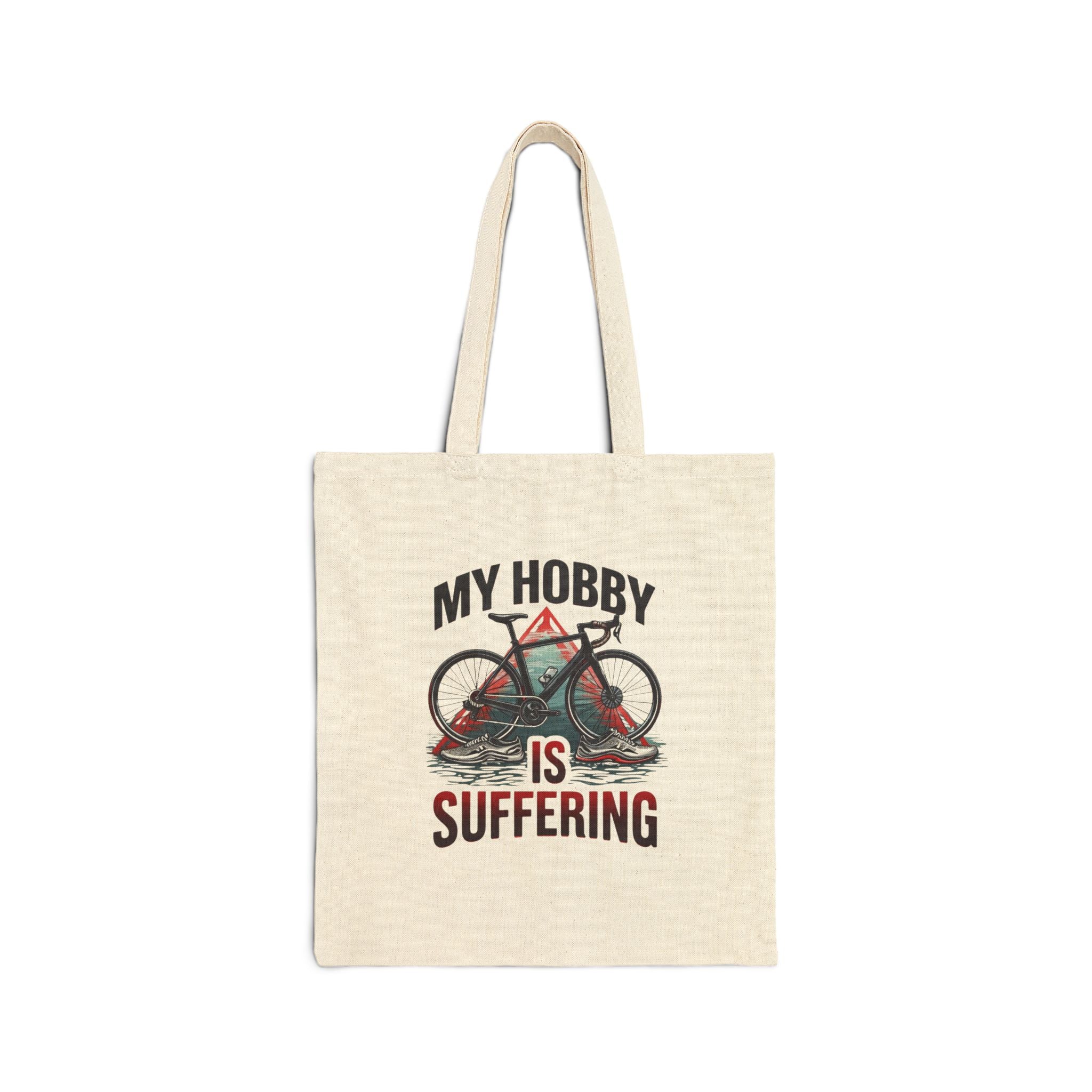Canvas Tote Bag - My Hobby Is Suffering Bicycle Design, Heavy 12 Oz Cotton, Reinforced Stitching, Cycling Gift