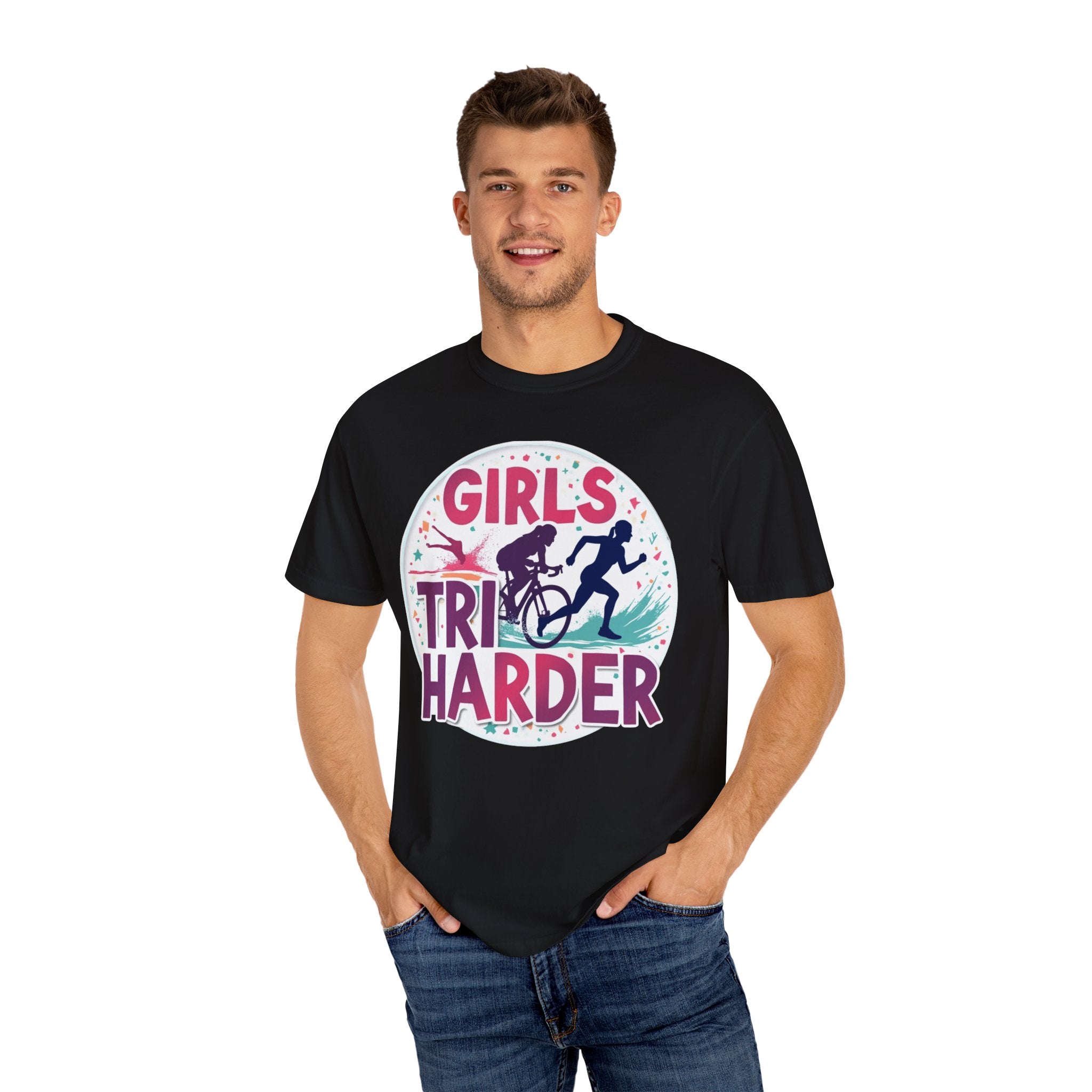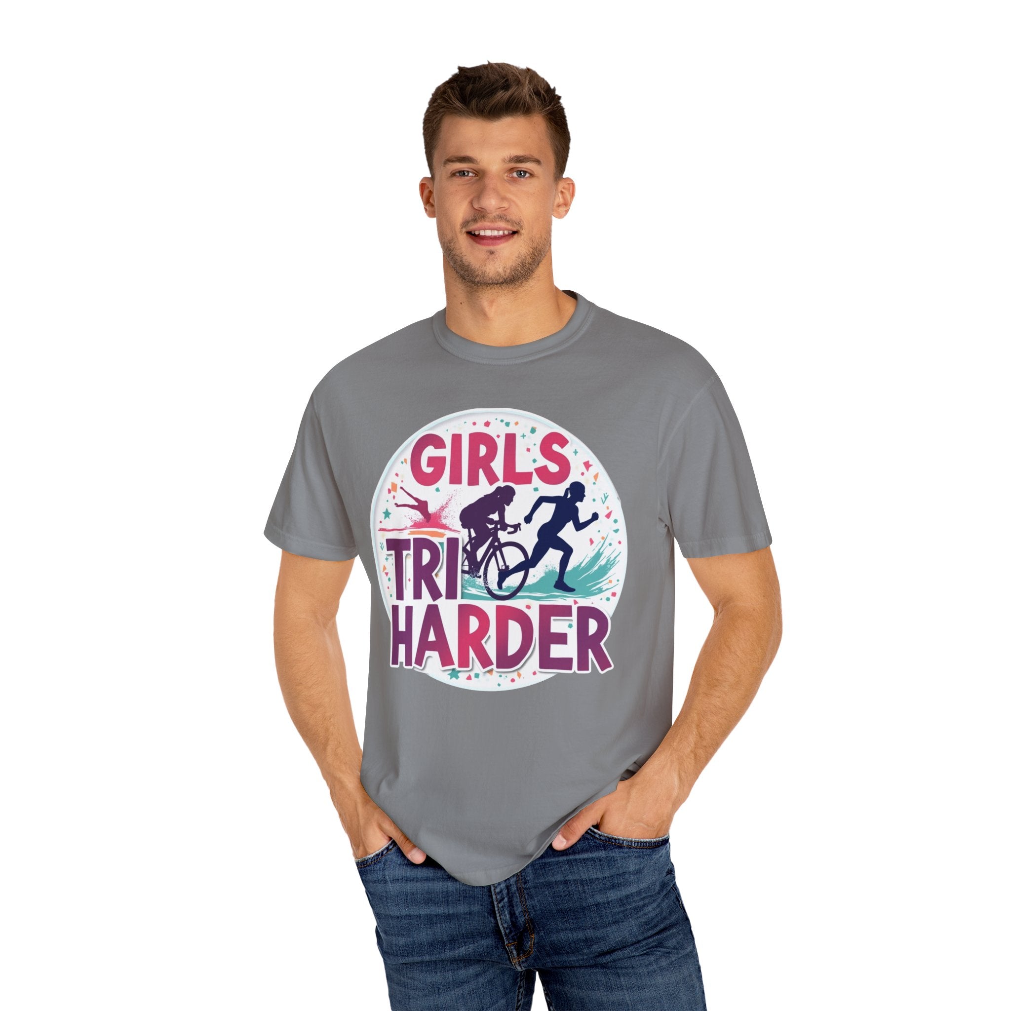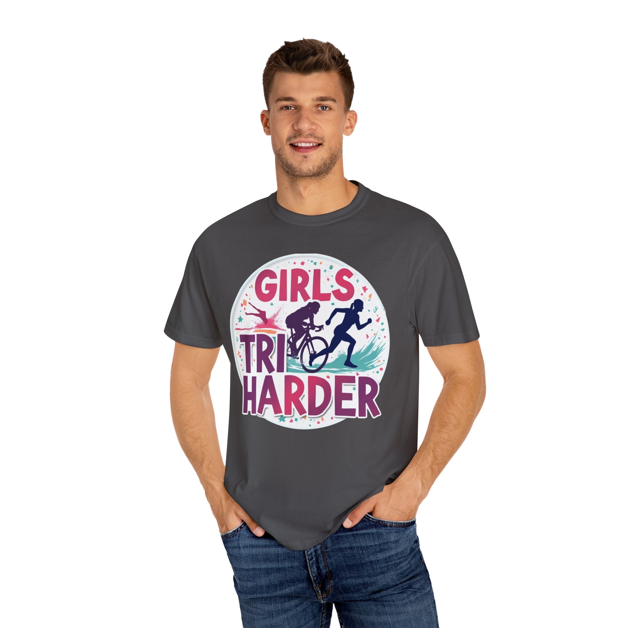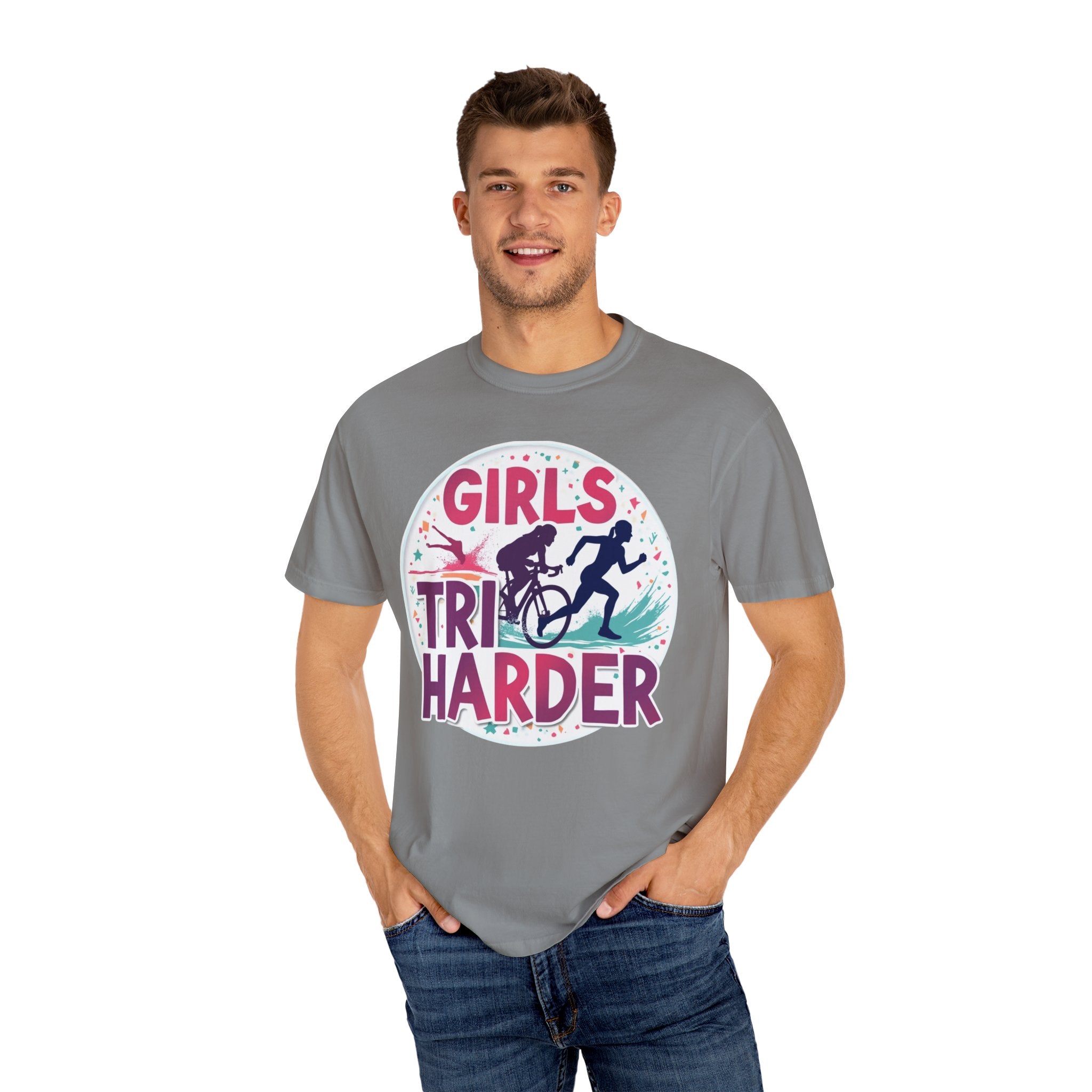 Unisex Garment-Dyed "Girls Tri Harder" T-Shirt