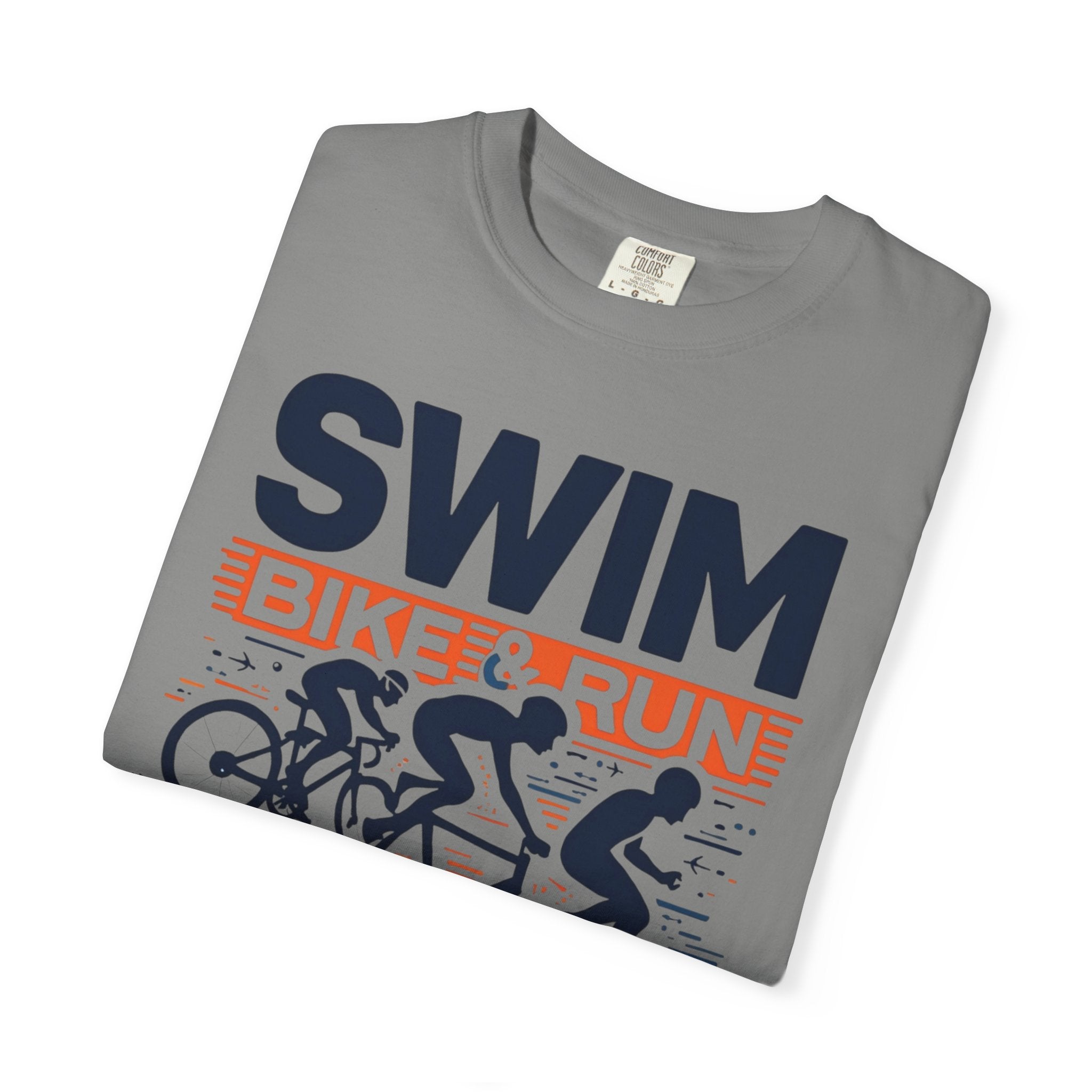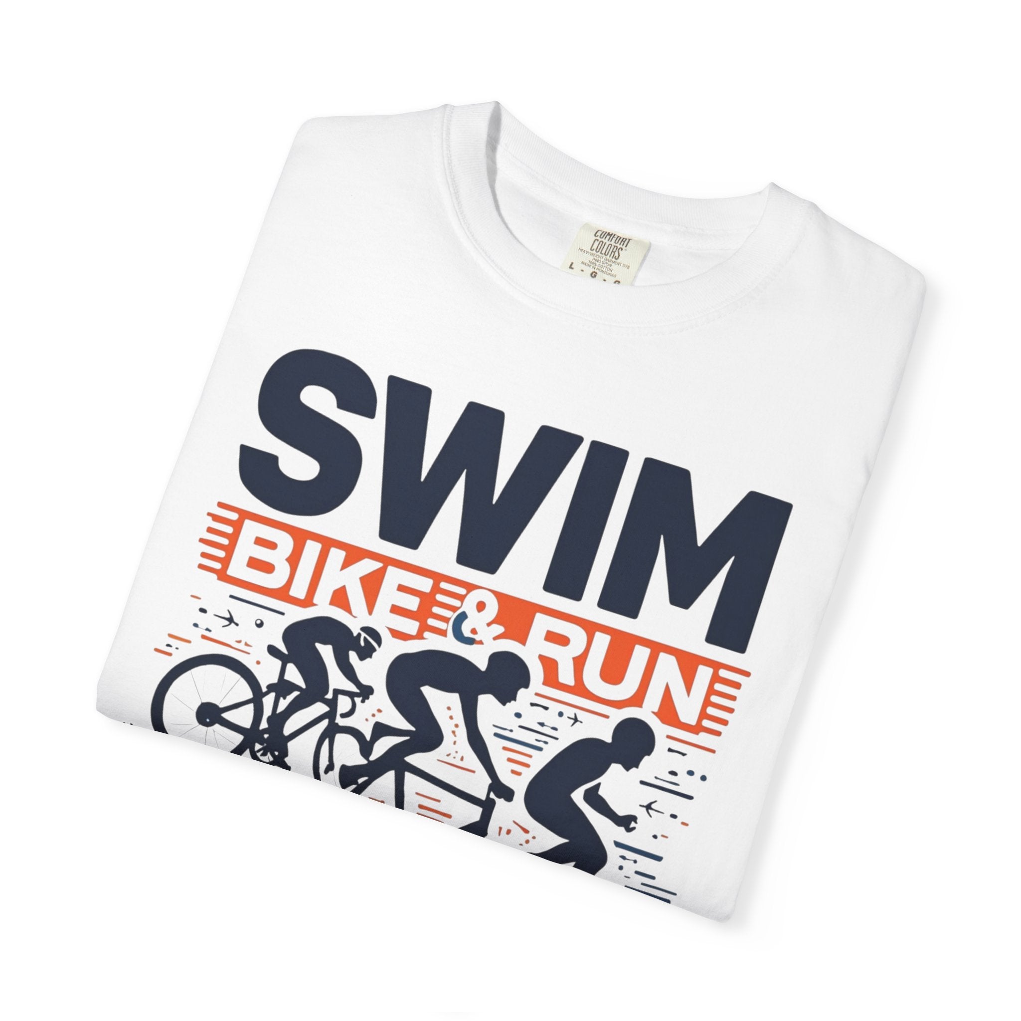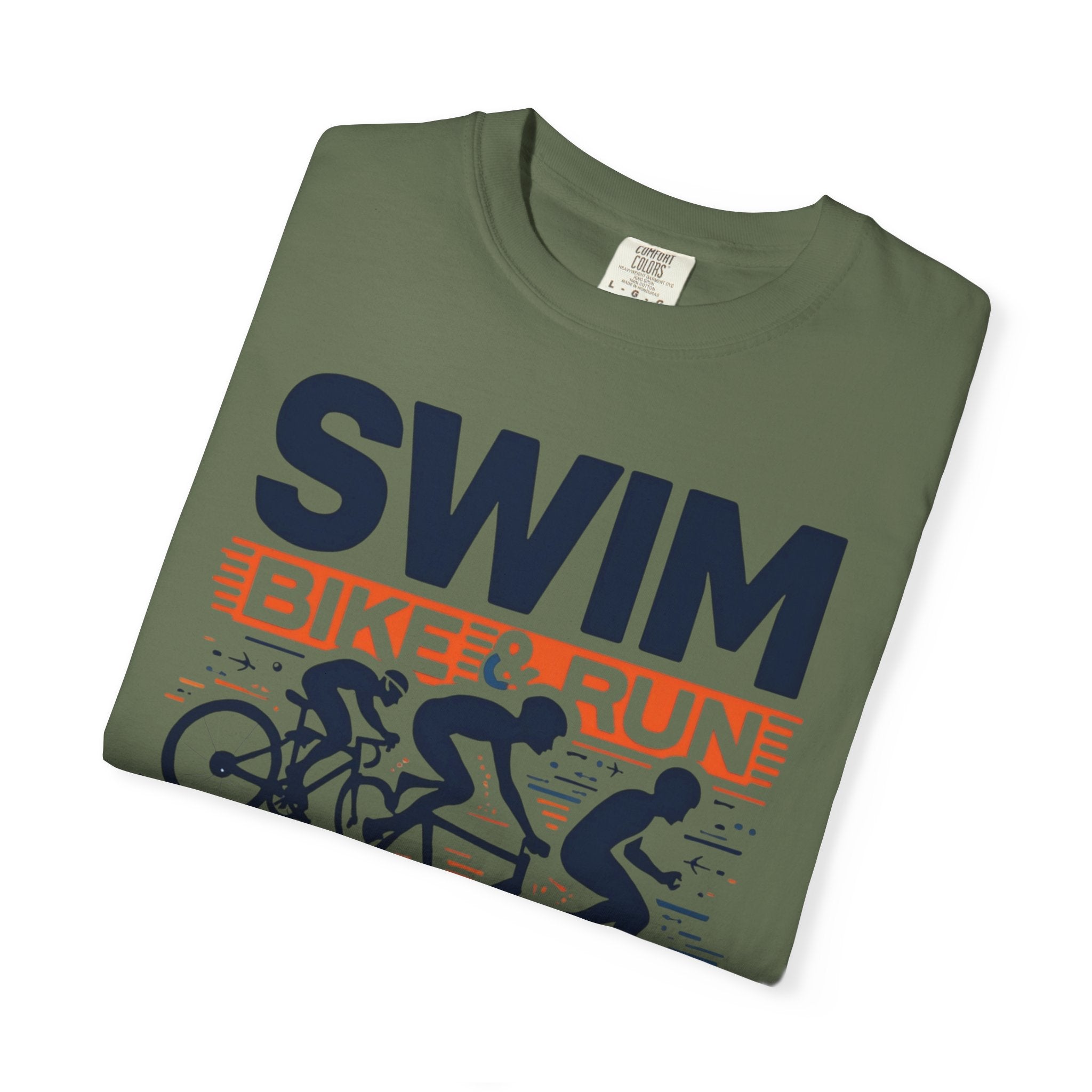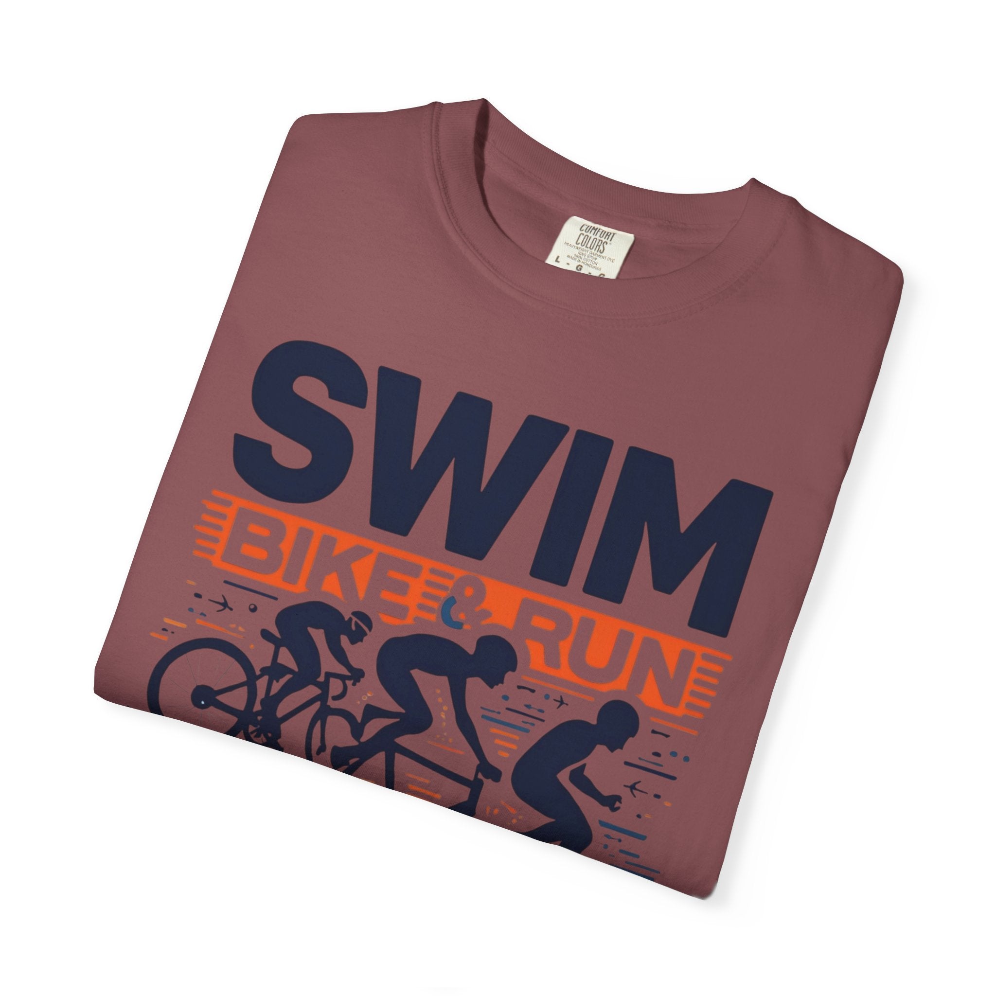 Swim Bike Run Unisex Garment-Dyed T-Shirt, Sports Tee, Activewear, Fitness Apparel, Athletes Gift, Outdoor Enthusiasts