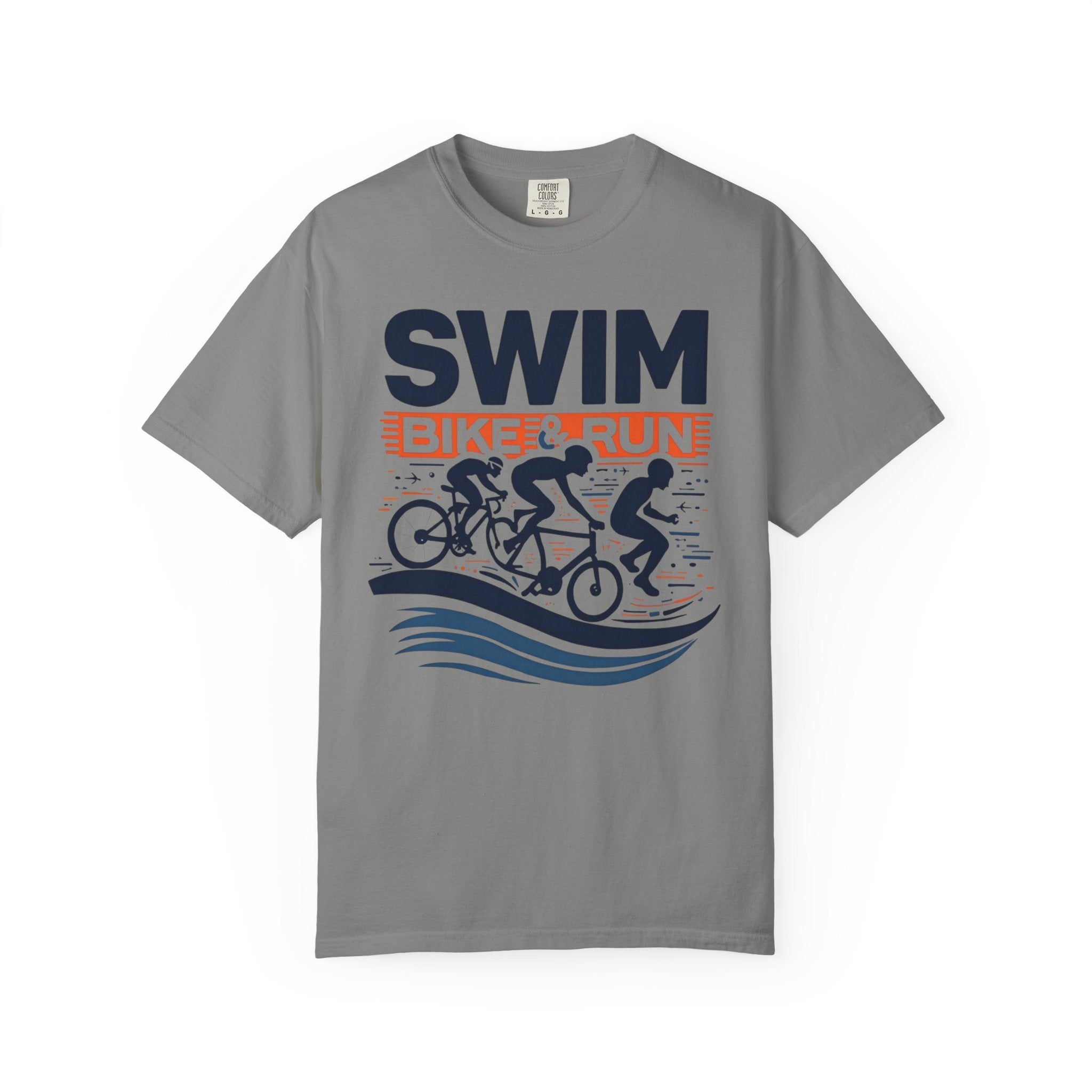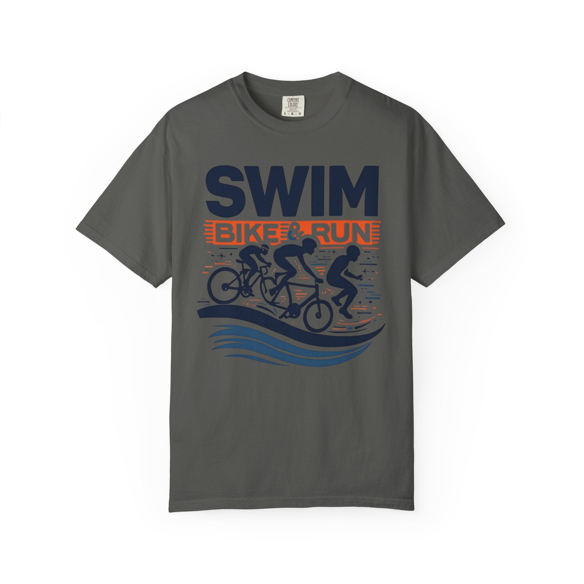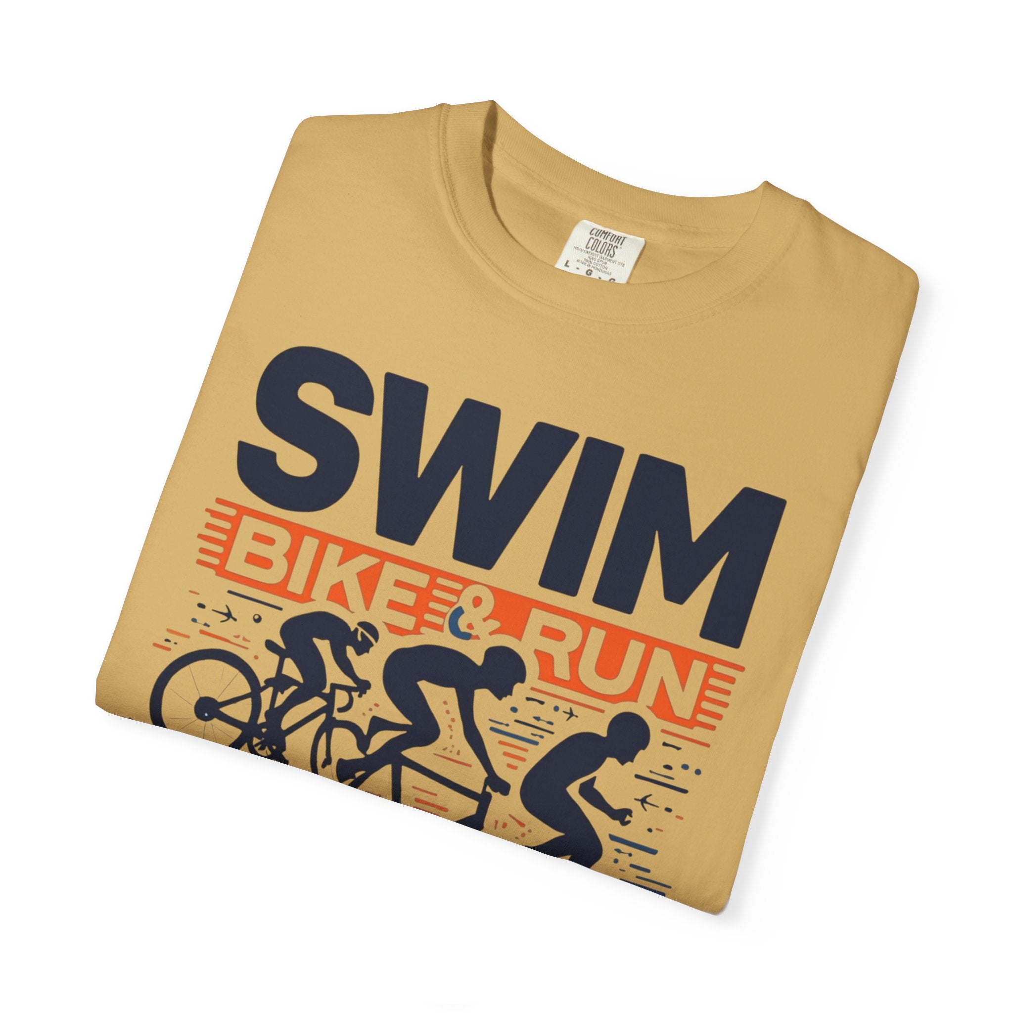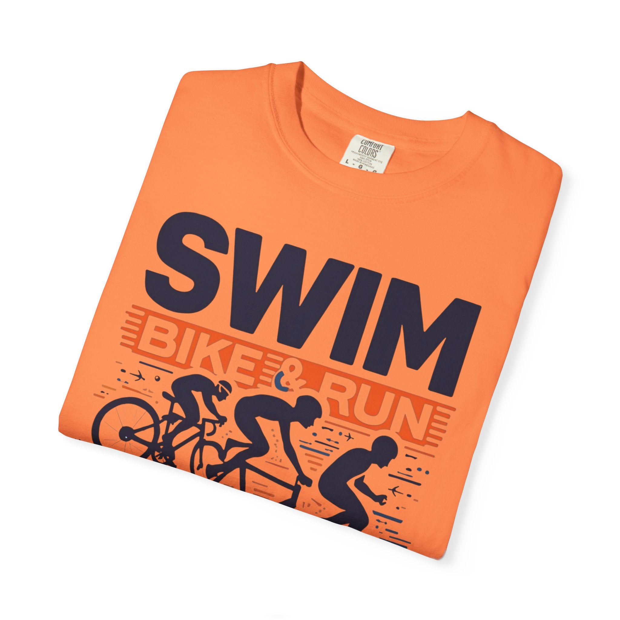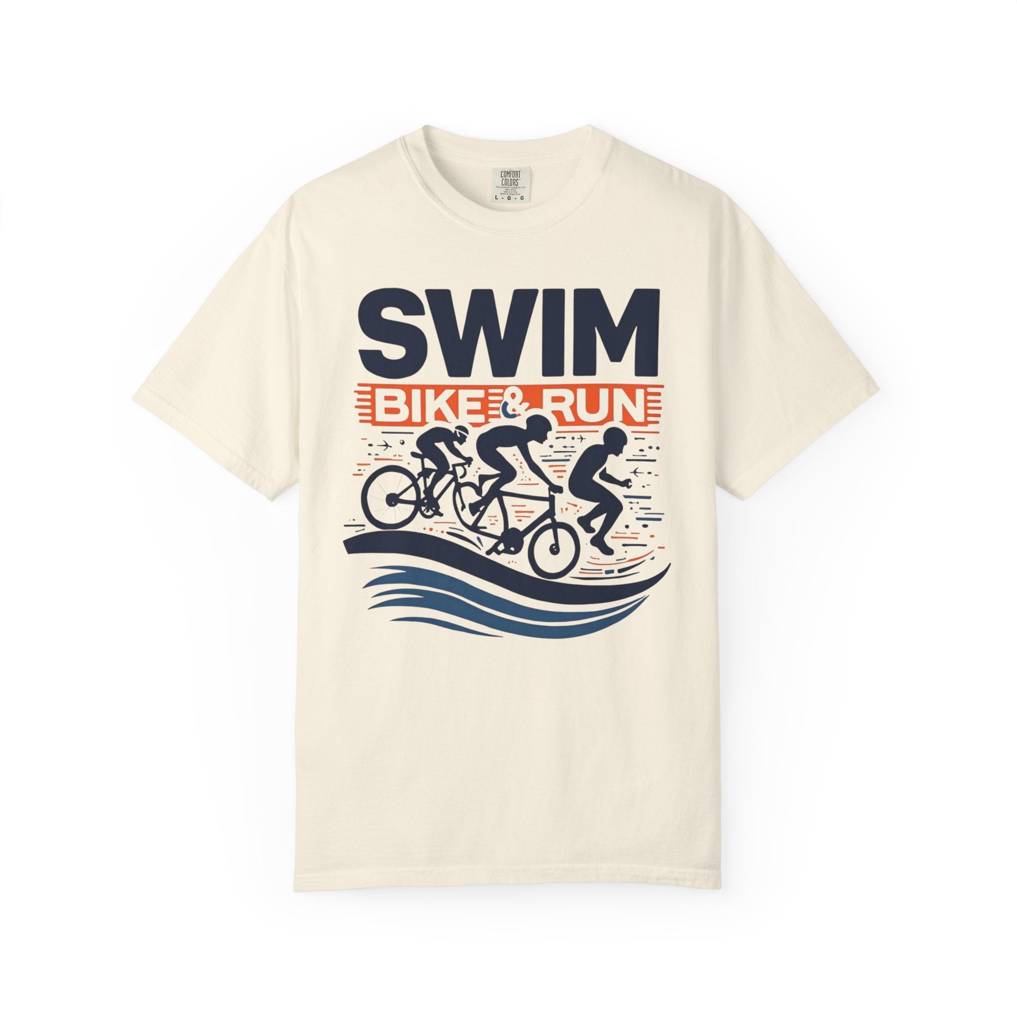 Swim Bike Run Unisex Garment-Dyed T-Shirt, Sports Tee, Activewear, Fitness Apparel, Athletes Gift, Outdoor Enthusiasts