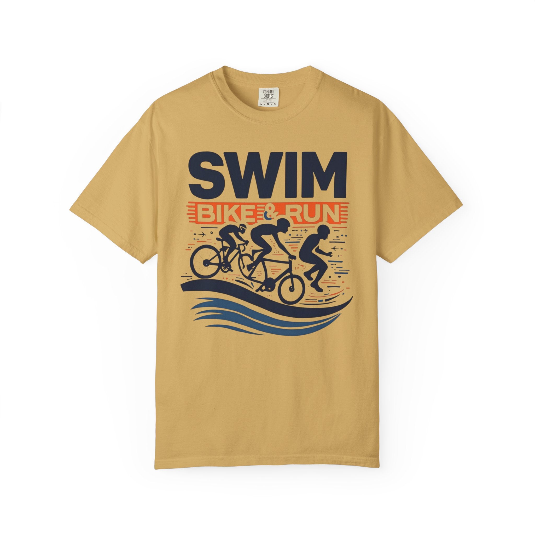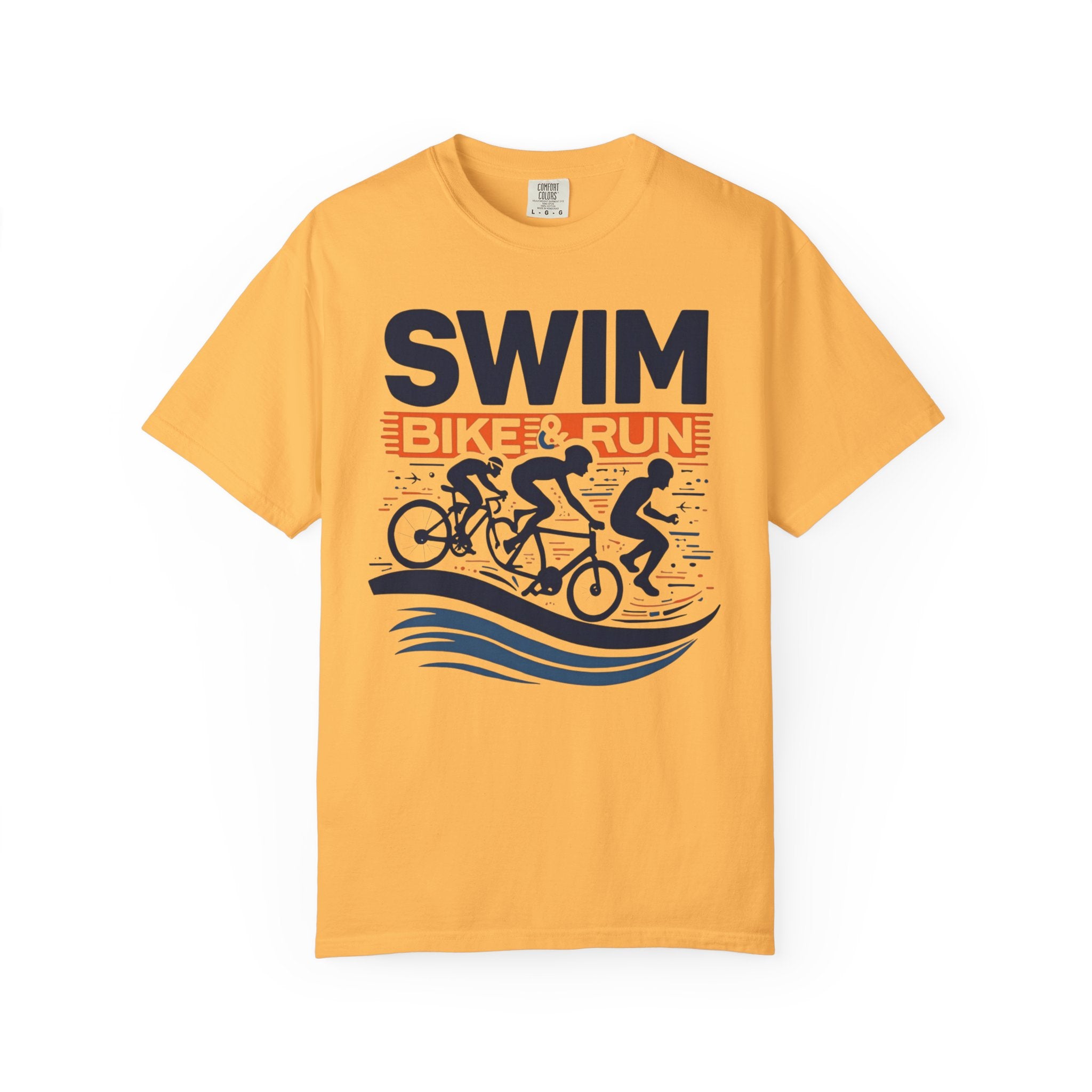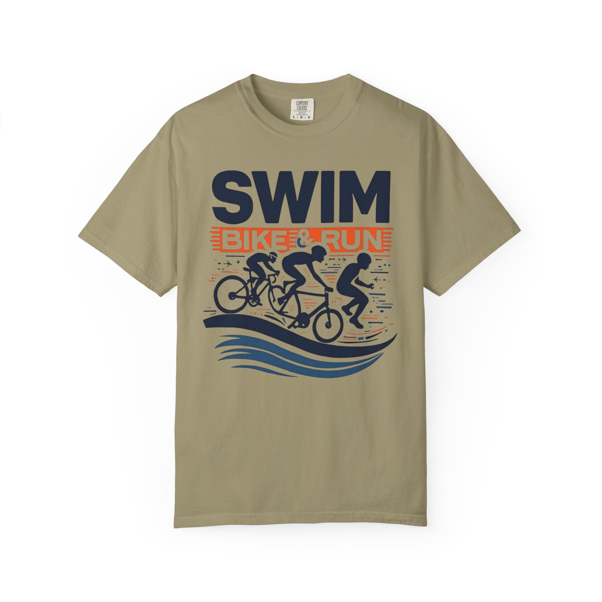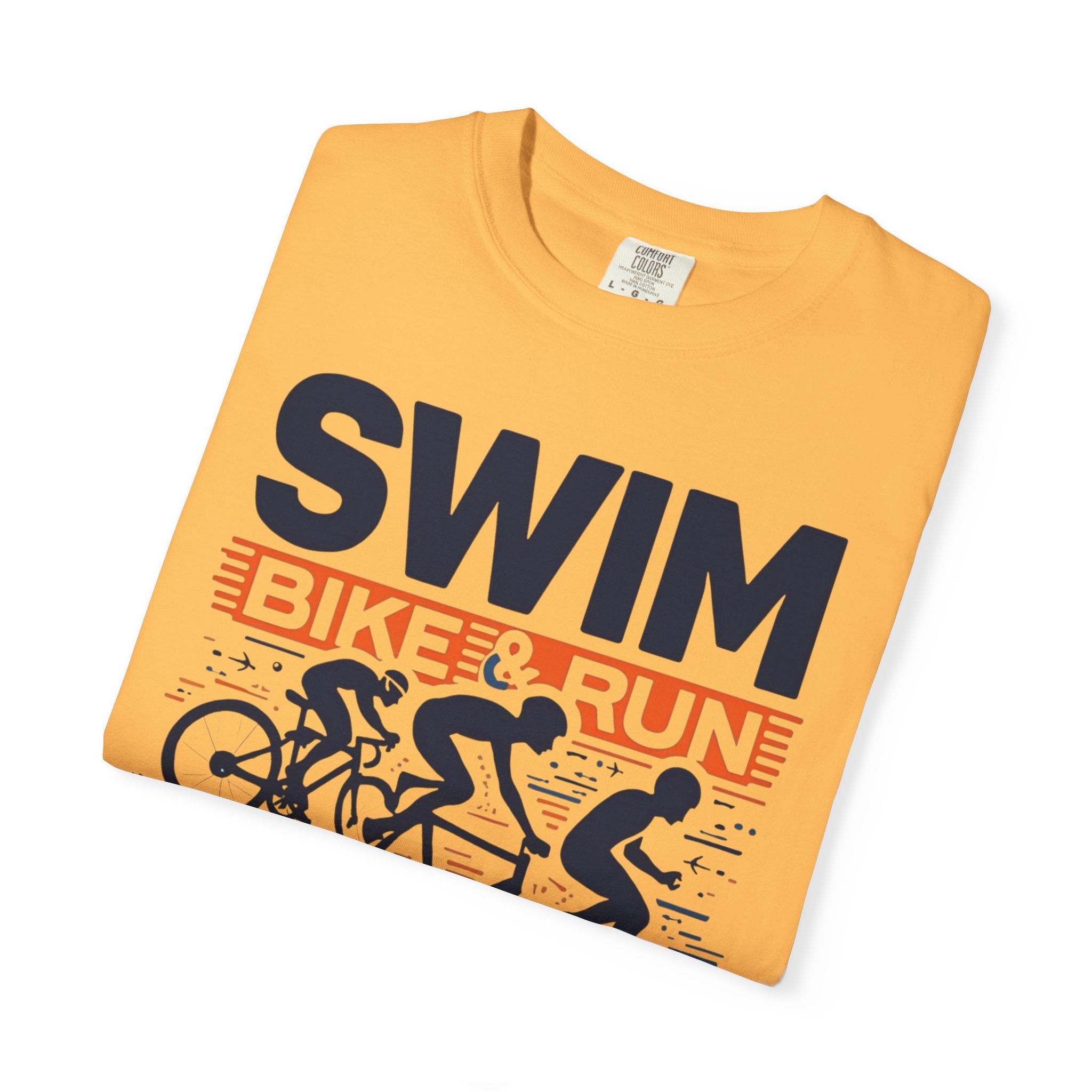 Swim Bike Run Unisex Garment-Dyed T-Shirt, Sports Tee, Activewear, Fitness Apparel, Athletes Gift, Outdoor Enthusiasts
