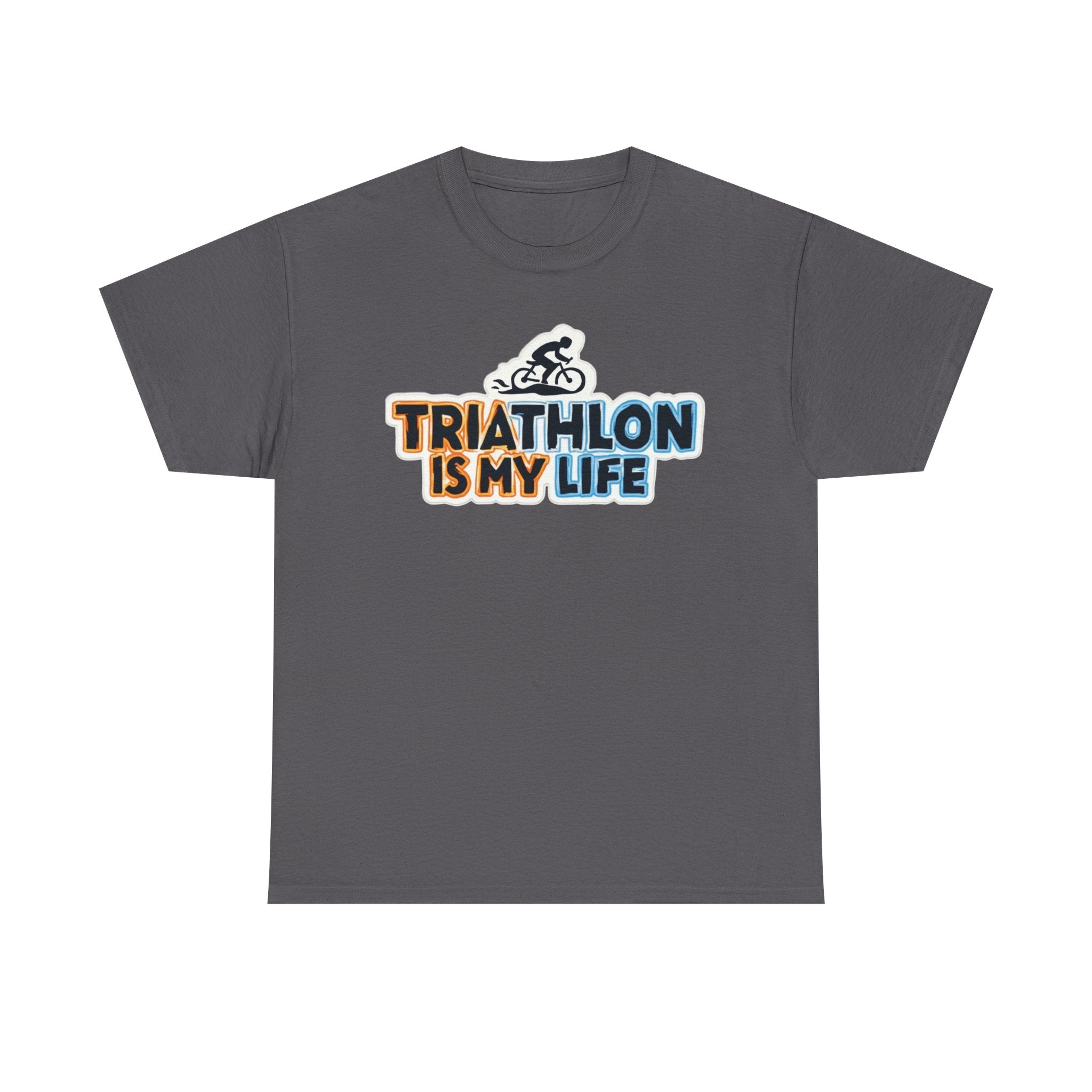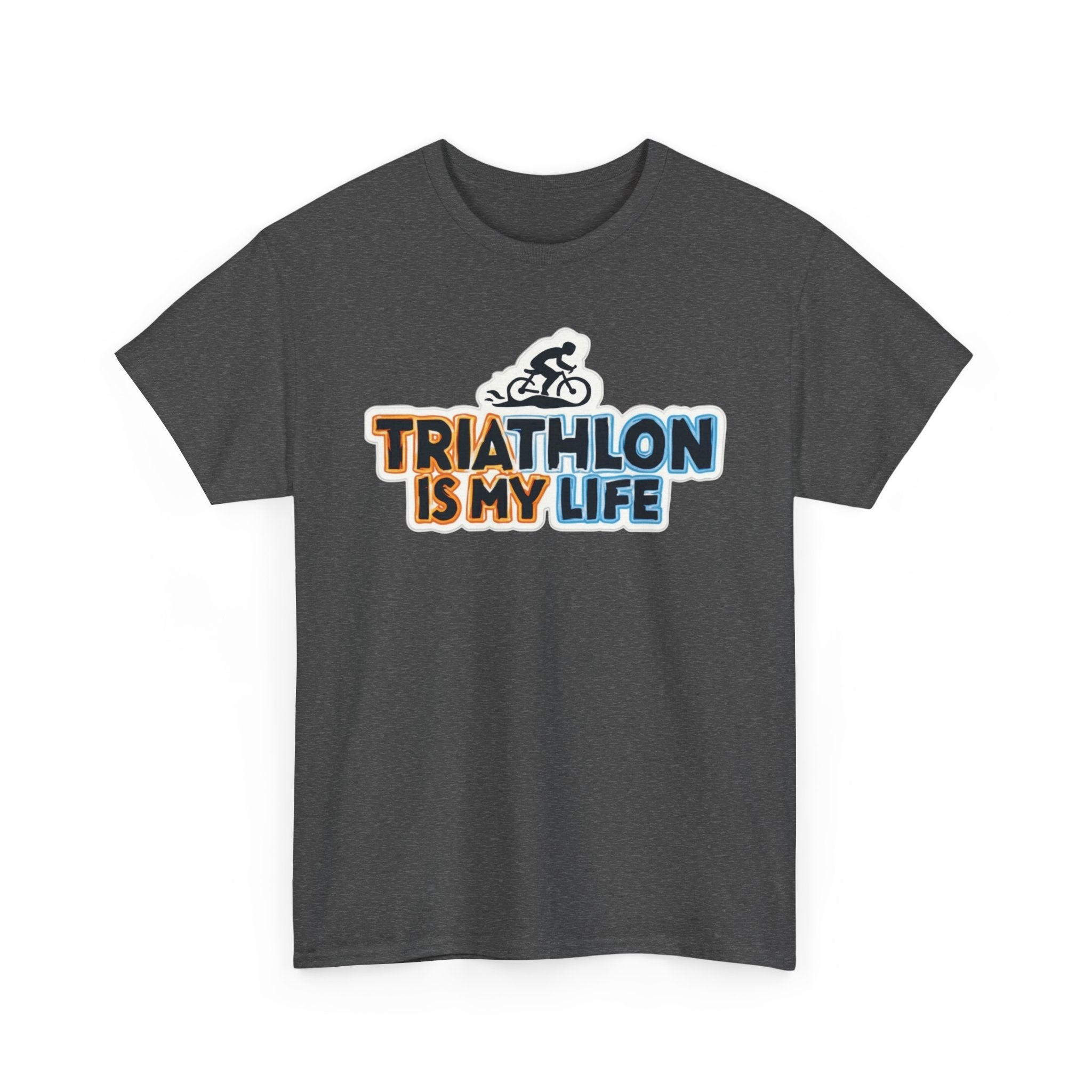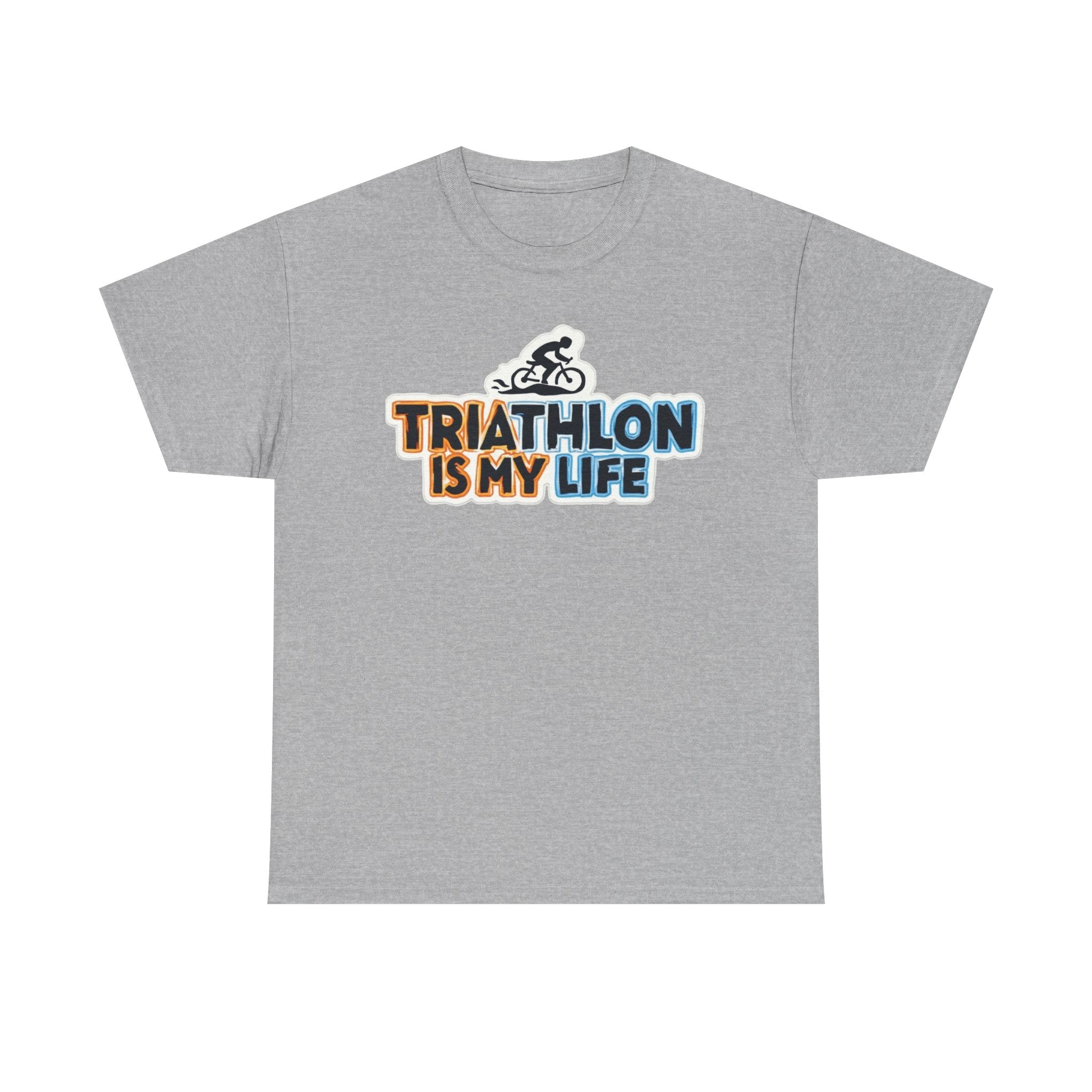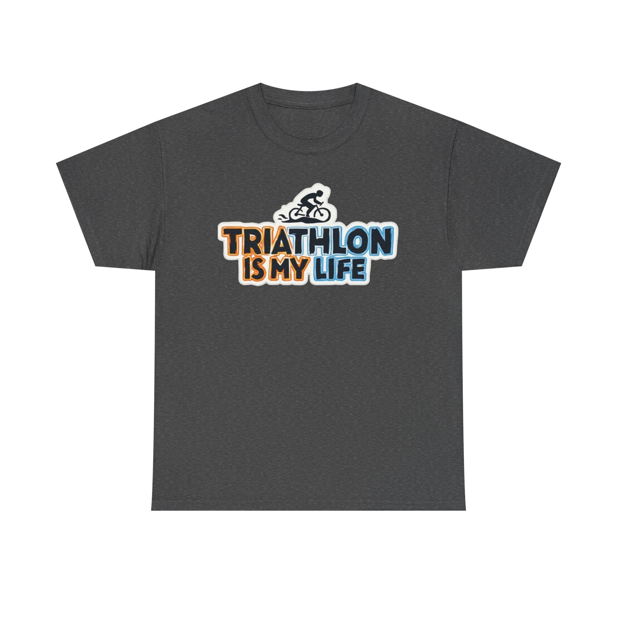 Triathlon Life Unisex Heavy Cotton Tee for Athletes - Classic Fit Athletic & Active Lifestyle Shirt, Triathlon Apparel & Fitness Clothing Gift for Triathletes and Runners