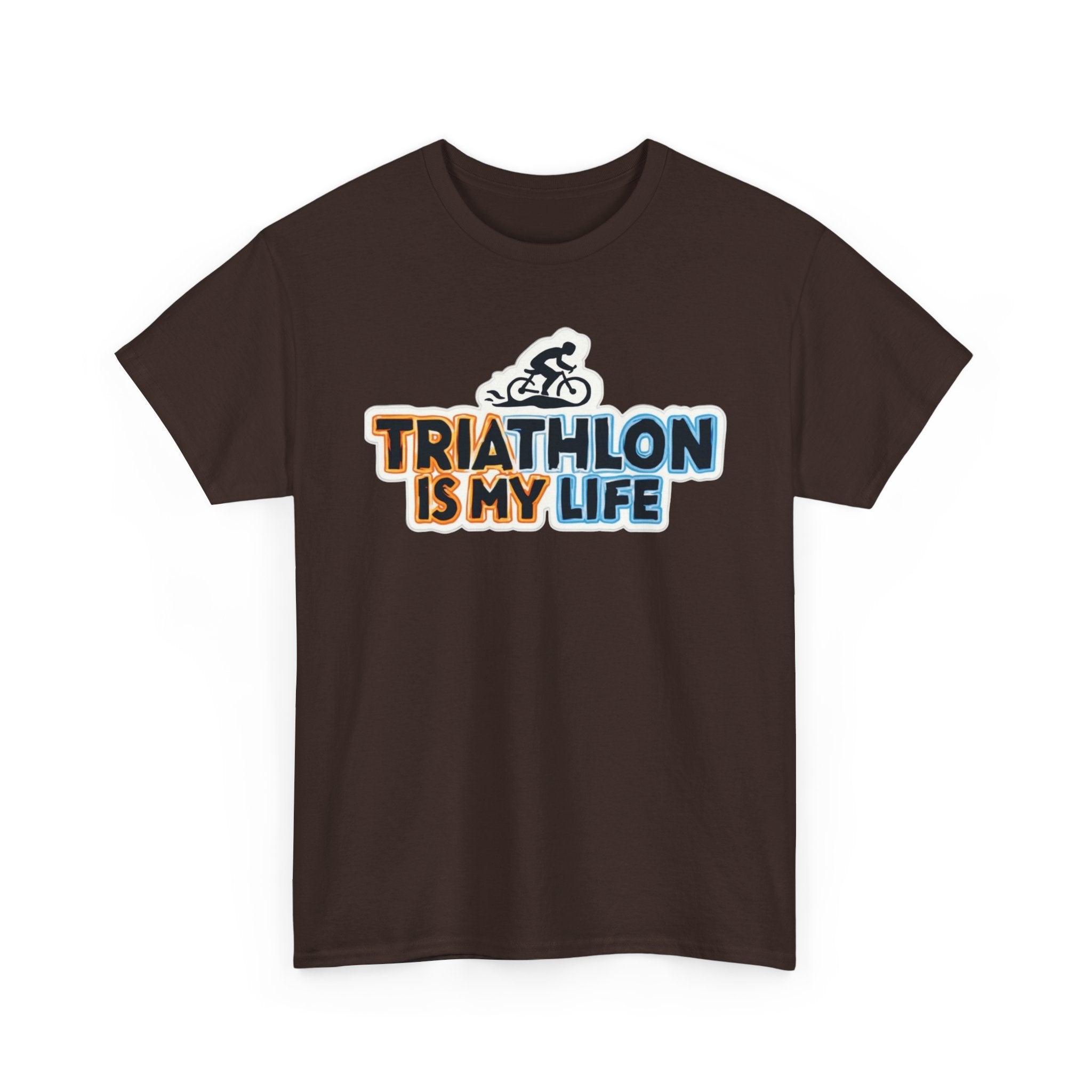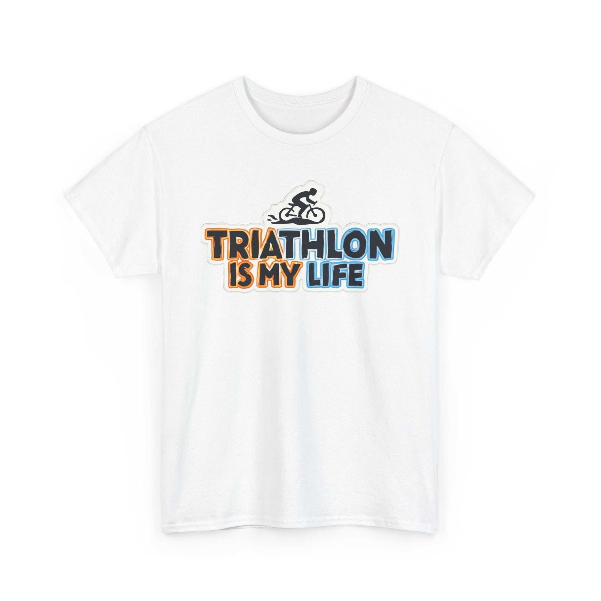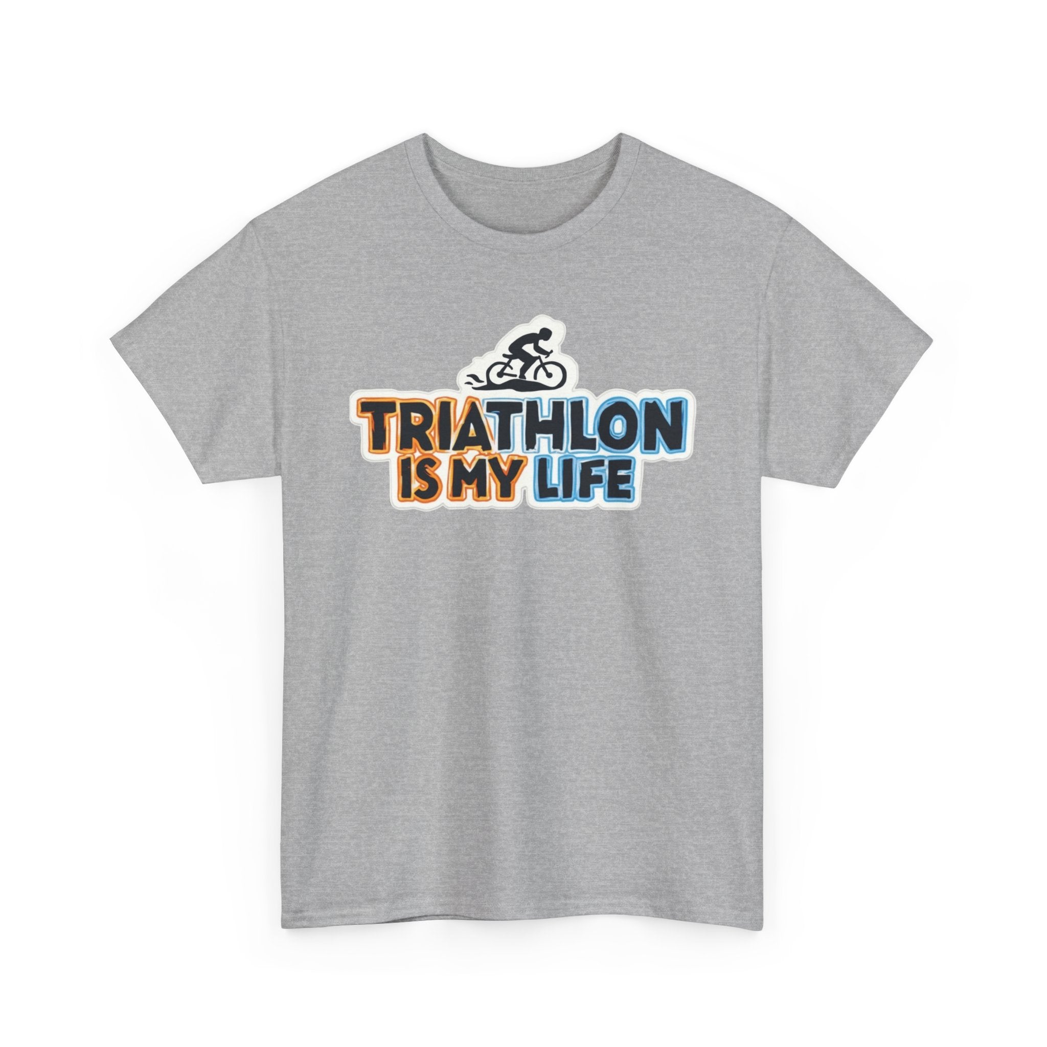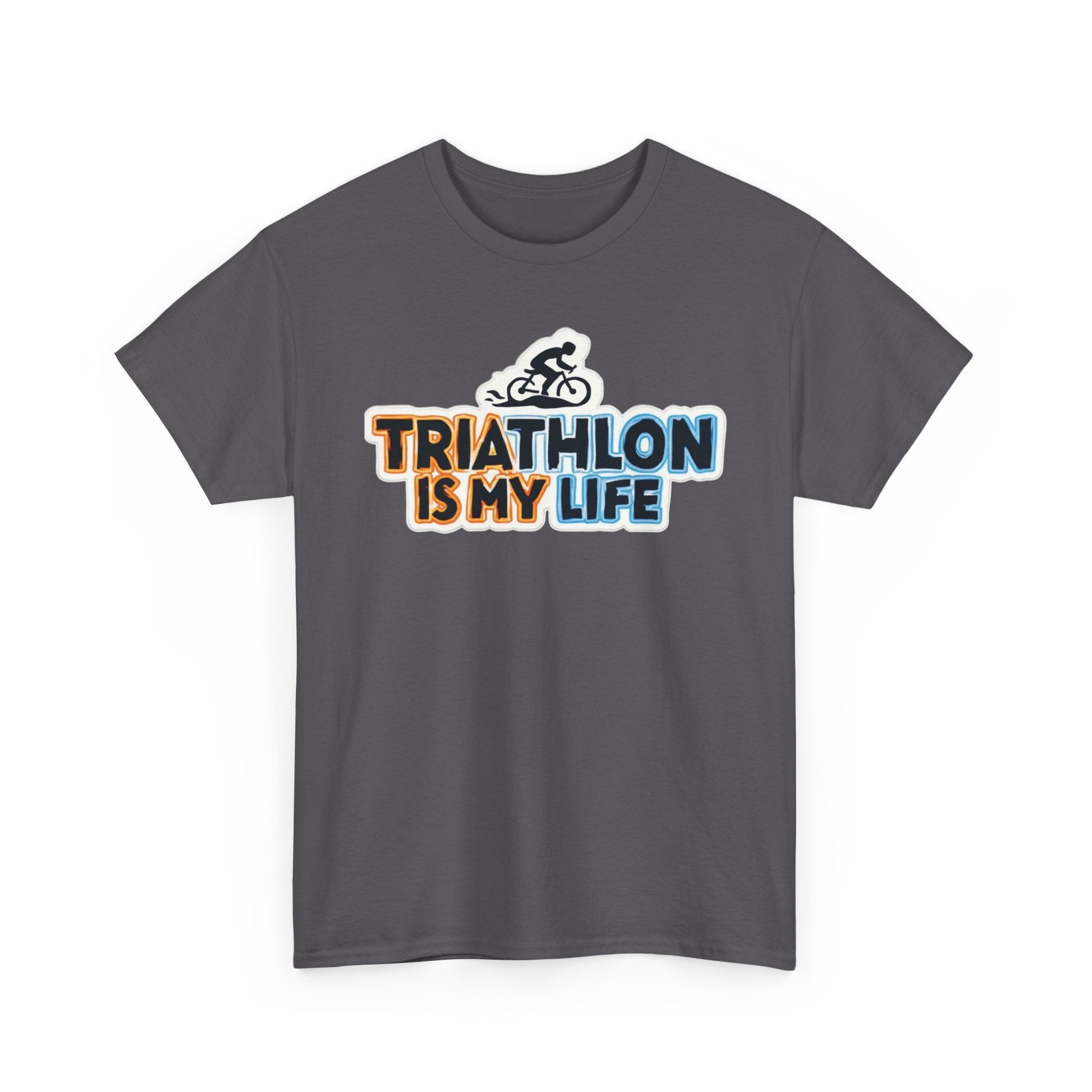 Triathlon Life Unisex Heavy Cotton Tee for Athletes - Classic Fit Athletic & Active Lifestyle Shirt, Triathlon Apparel & Fitness Clothing Gift for Triathletes and Runners