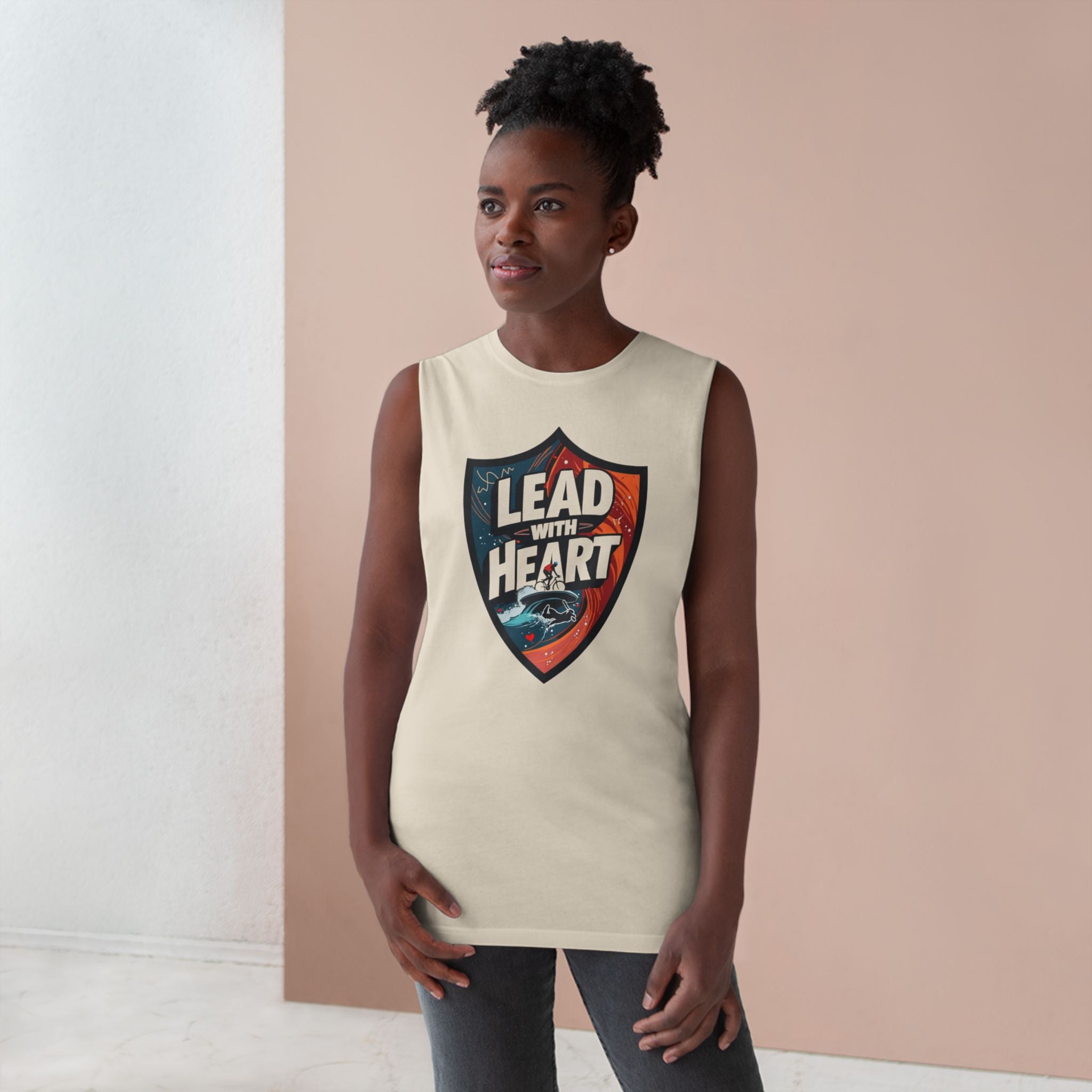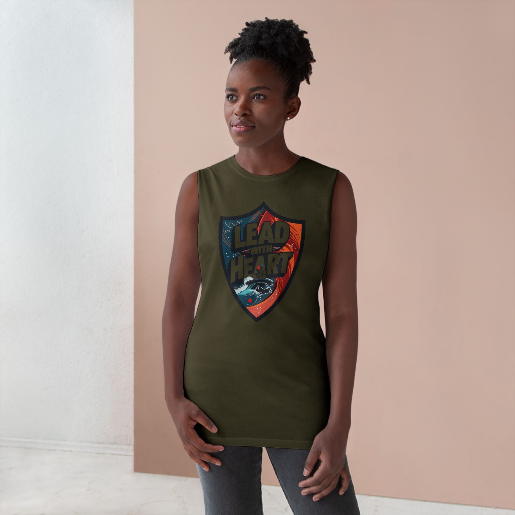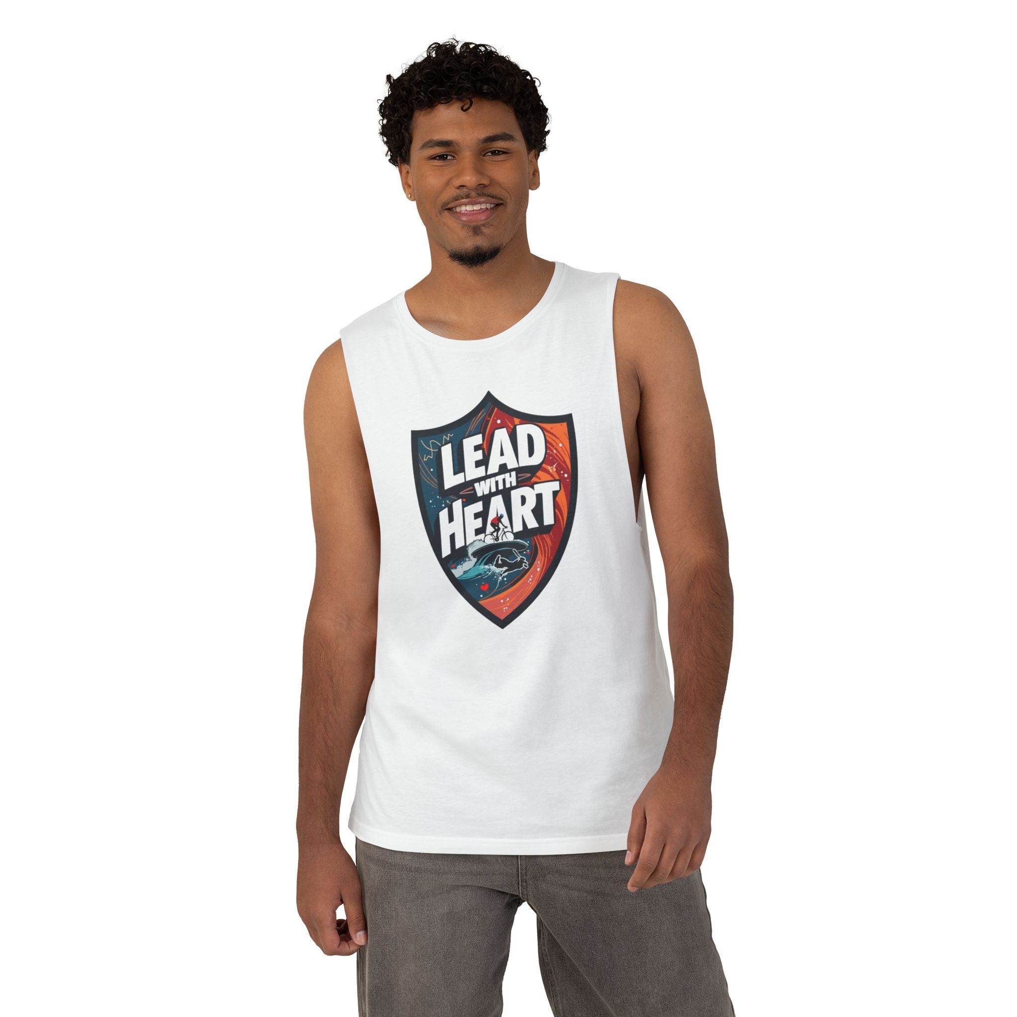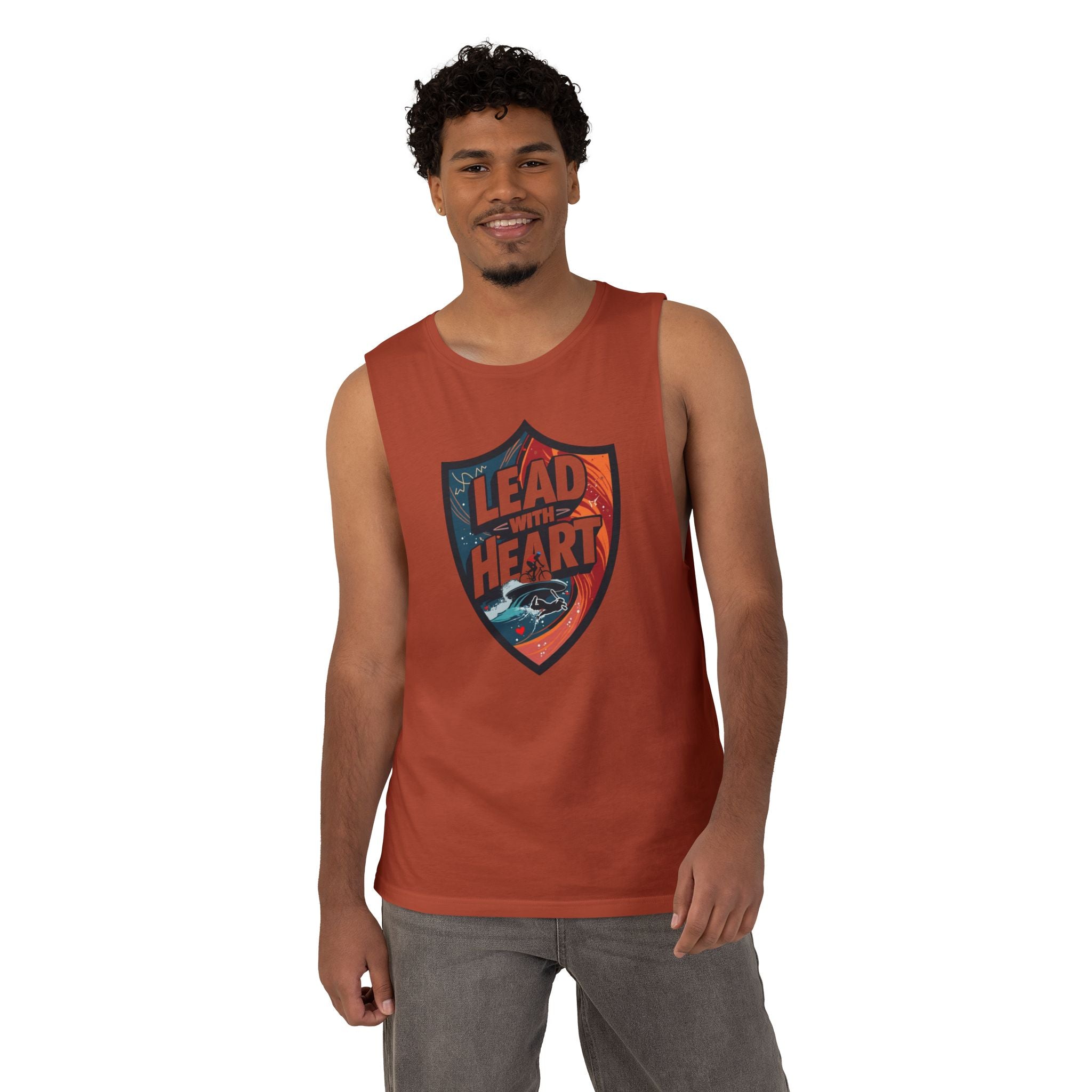 Lead With Heart Tank Top — Inspirational Shield Graphic Sleeveless Shirt