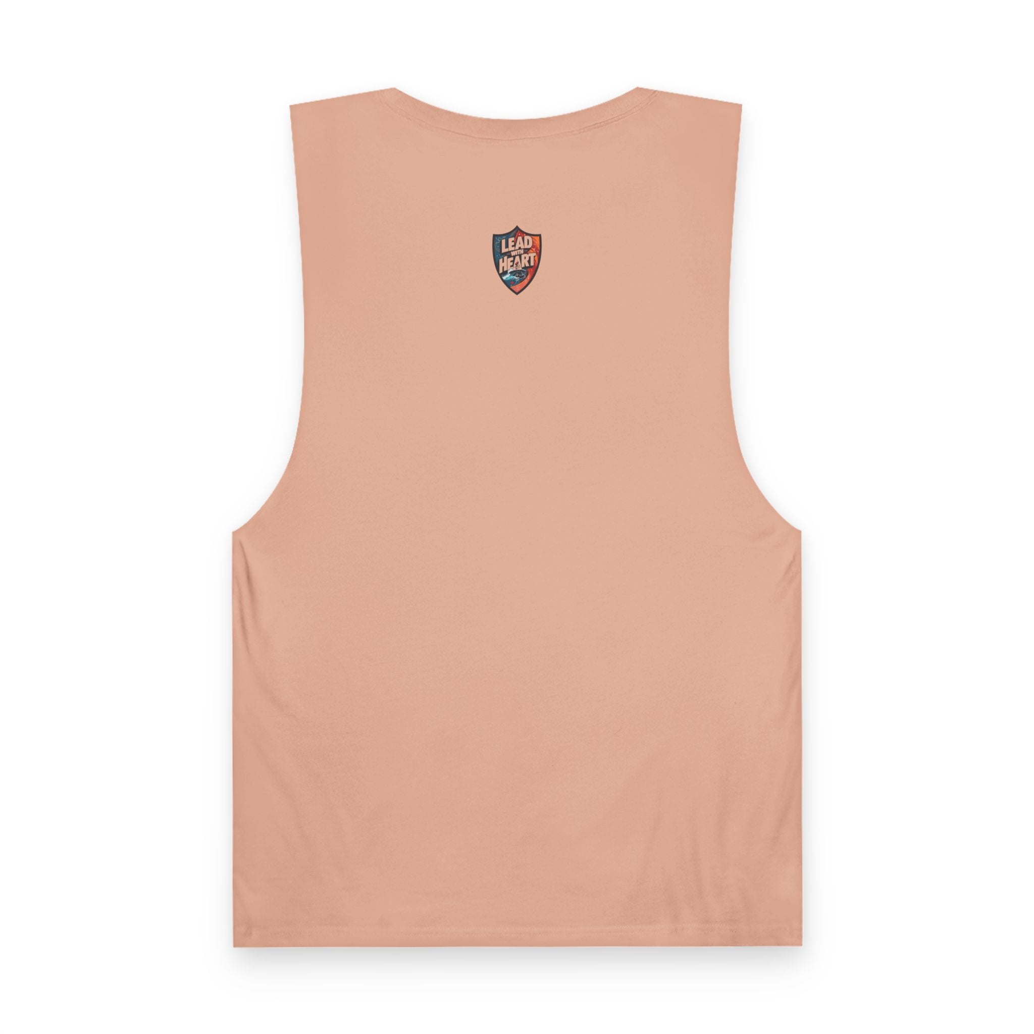 This lightweight tank is for people who move with intention and want their clothing to reflect the same energy. The sleeveless, raw-edge design feels lived-in from the first wear — breathable, soft, and ready for warm-weather adventures. A bold shield graphic reading “Lead With Heart” sits on the chest, split into cool blues and warm oranges that suggest both calm focus and fierce courage. It layers easily over a long sleeve on cooler mornings or stands alone during workouts, park hangs, or festival days. The ribbed collar keeps the neckline from stretching out, while the relaxed cut and soft combed ringspun cotton let you stay comfortable through long days of leading, creating, and exploring.