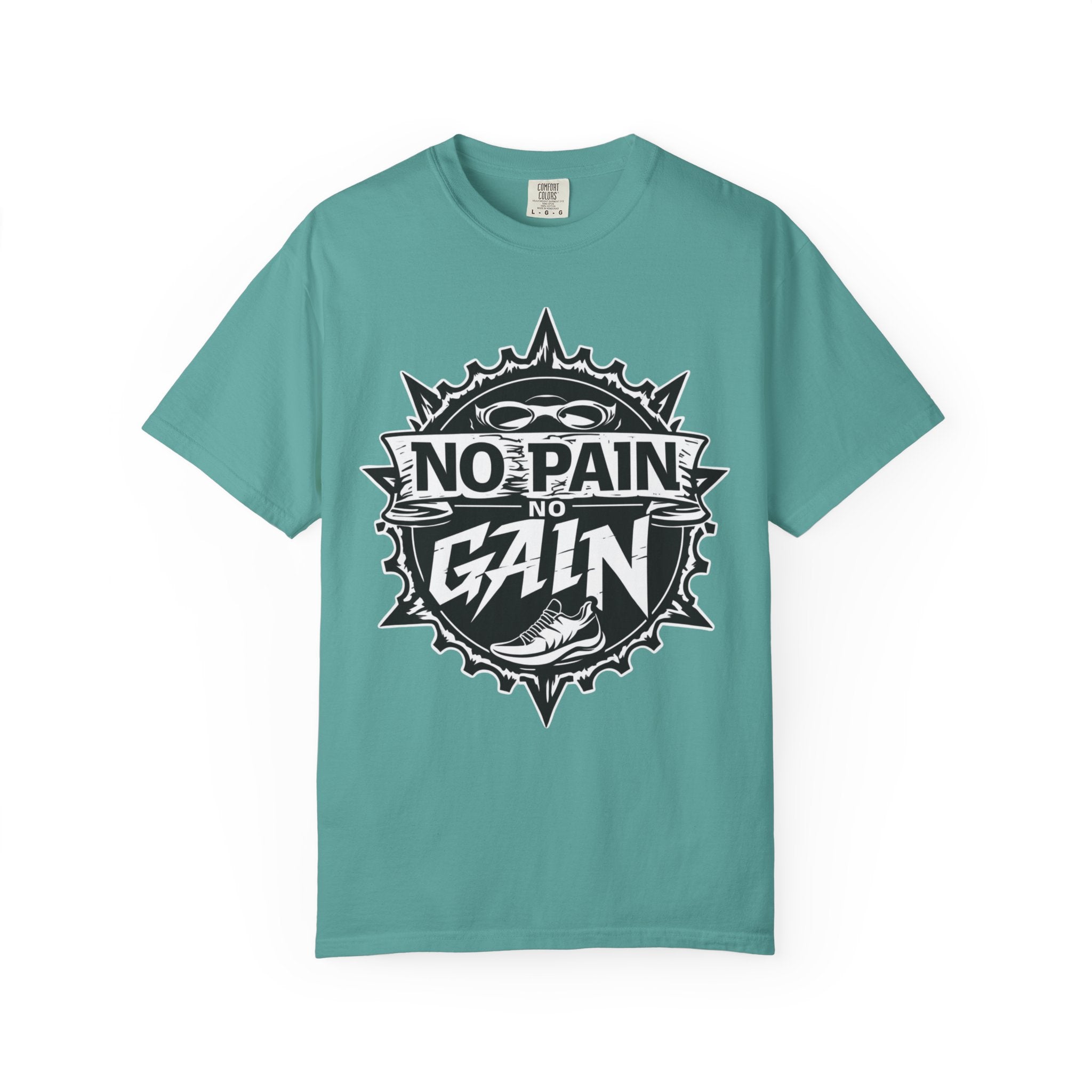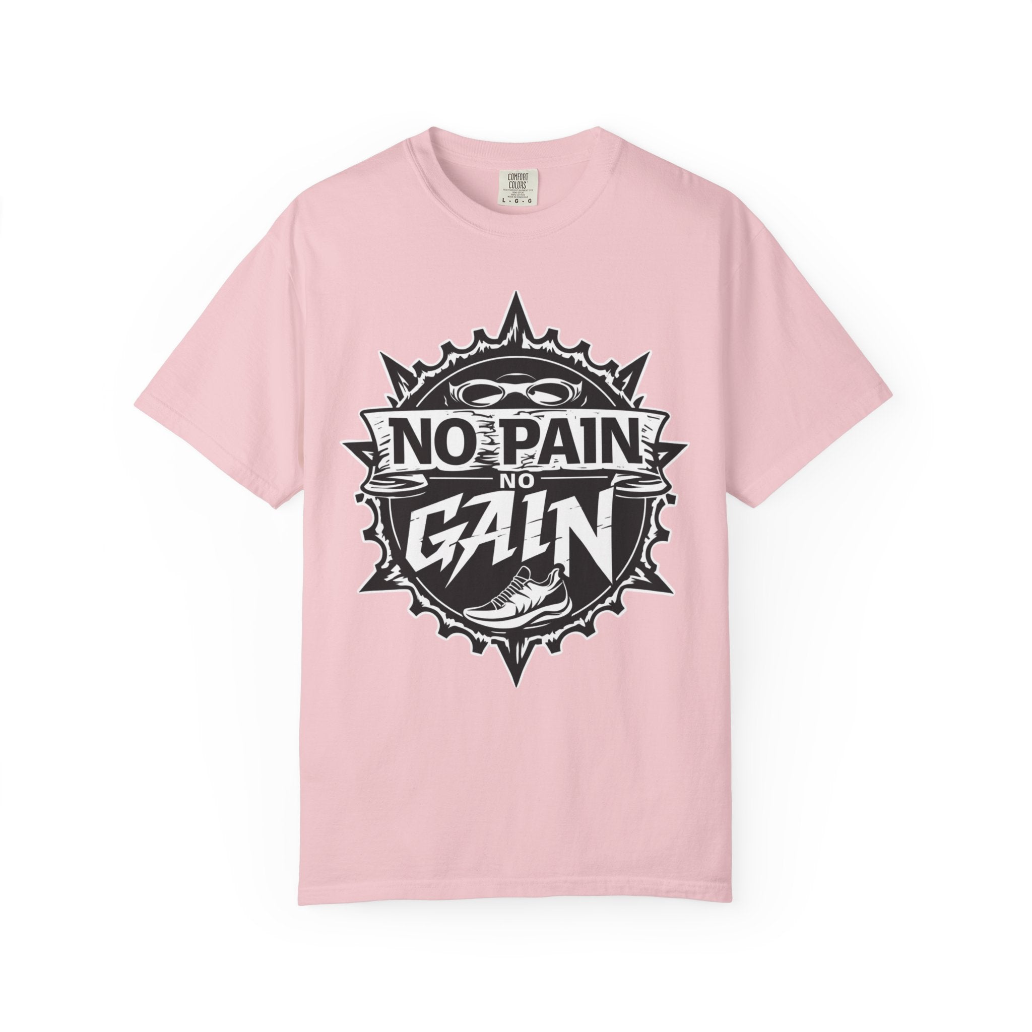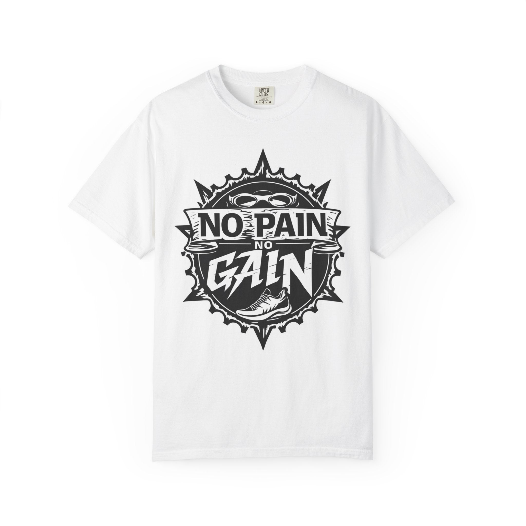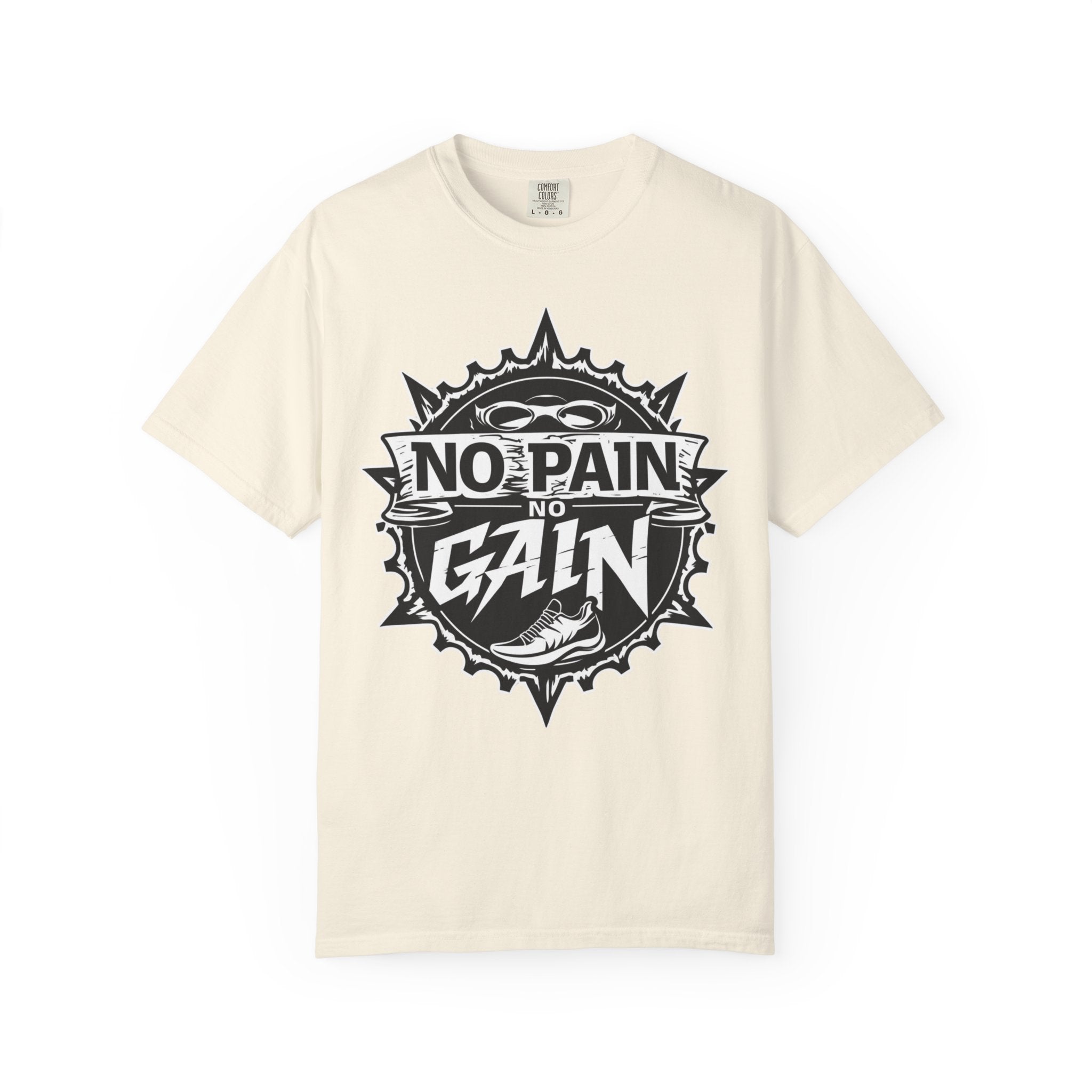 Heavyweight Ring-Spun Cotton T-Shirt - Garment-Dyed 6.1oz No Pain No Gain Distressed Gym Tee, Relaxed Fit (S-4XL)