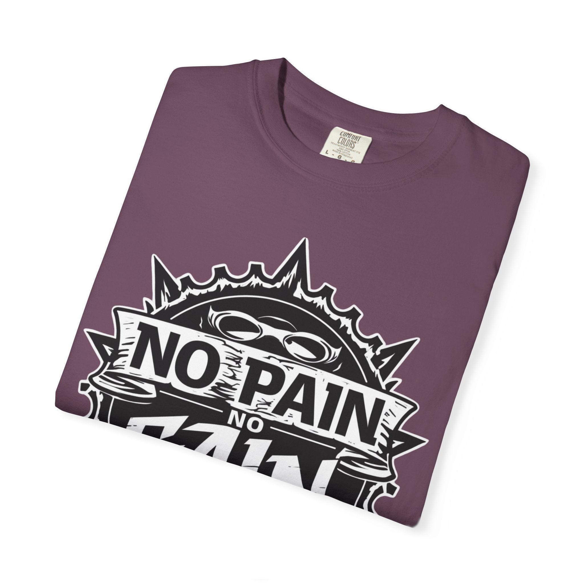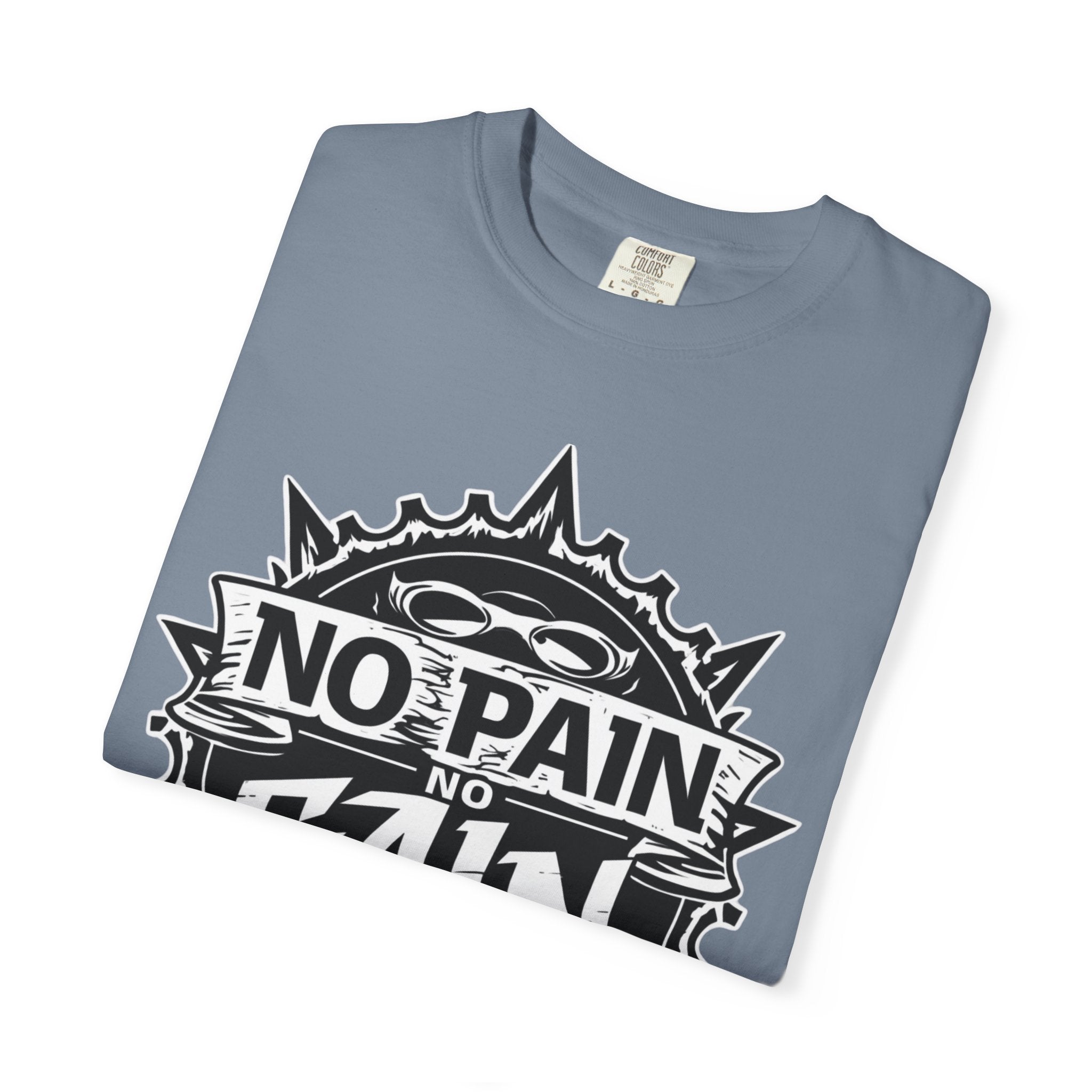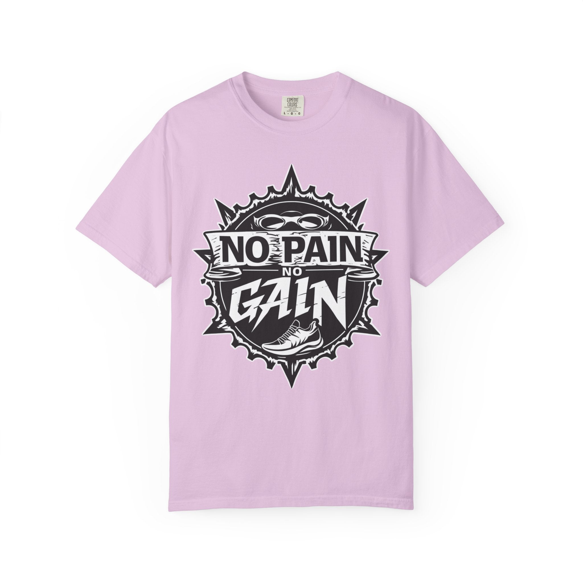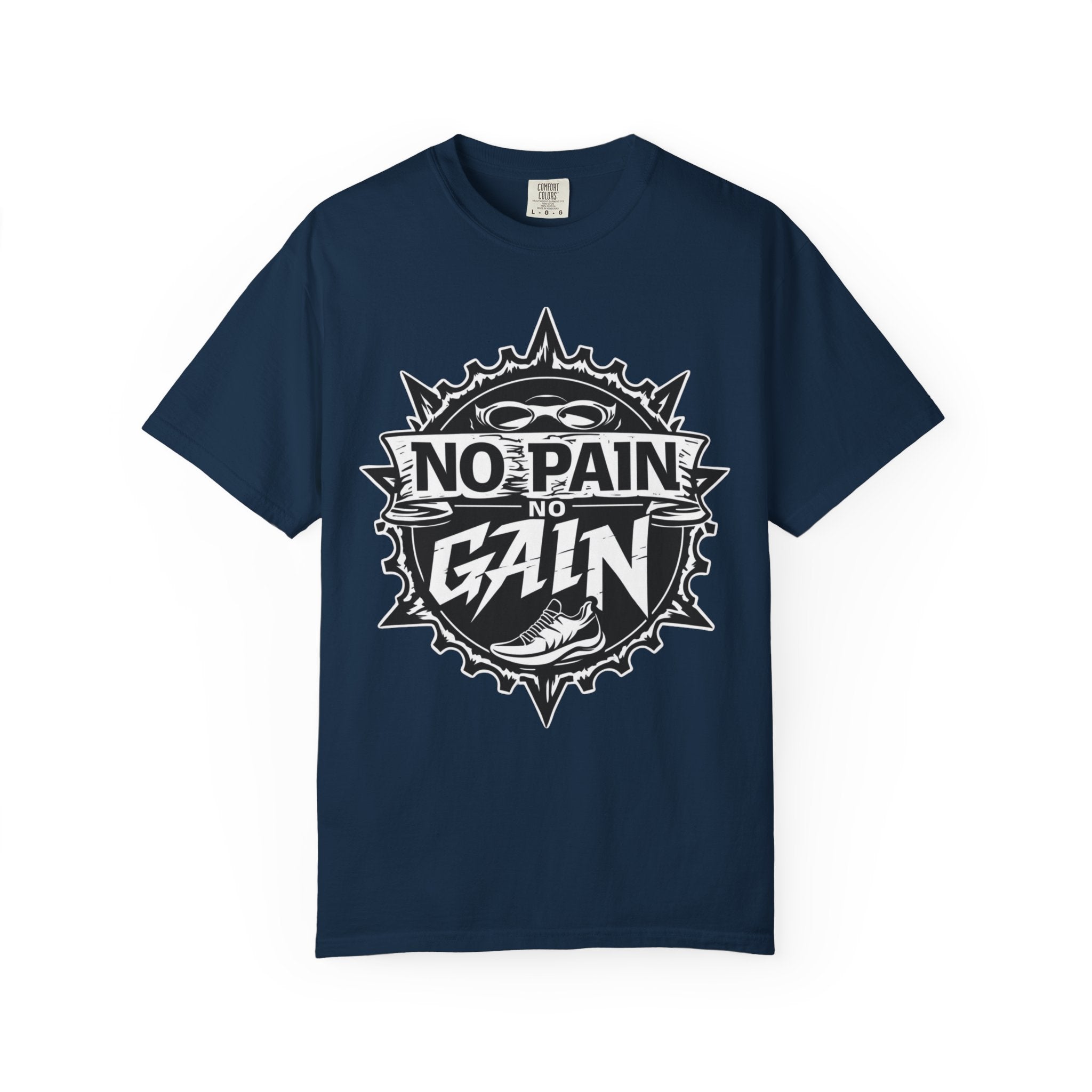 Heavyweight Ring-Spun Cotton T-Shirt - Garment-Dyed 6.1oz No Pain No Gain Distressed Gym Tee, Relaxed Fit (S-4XL)