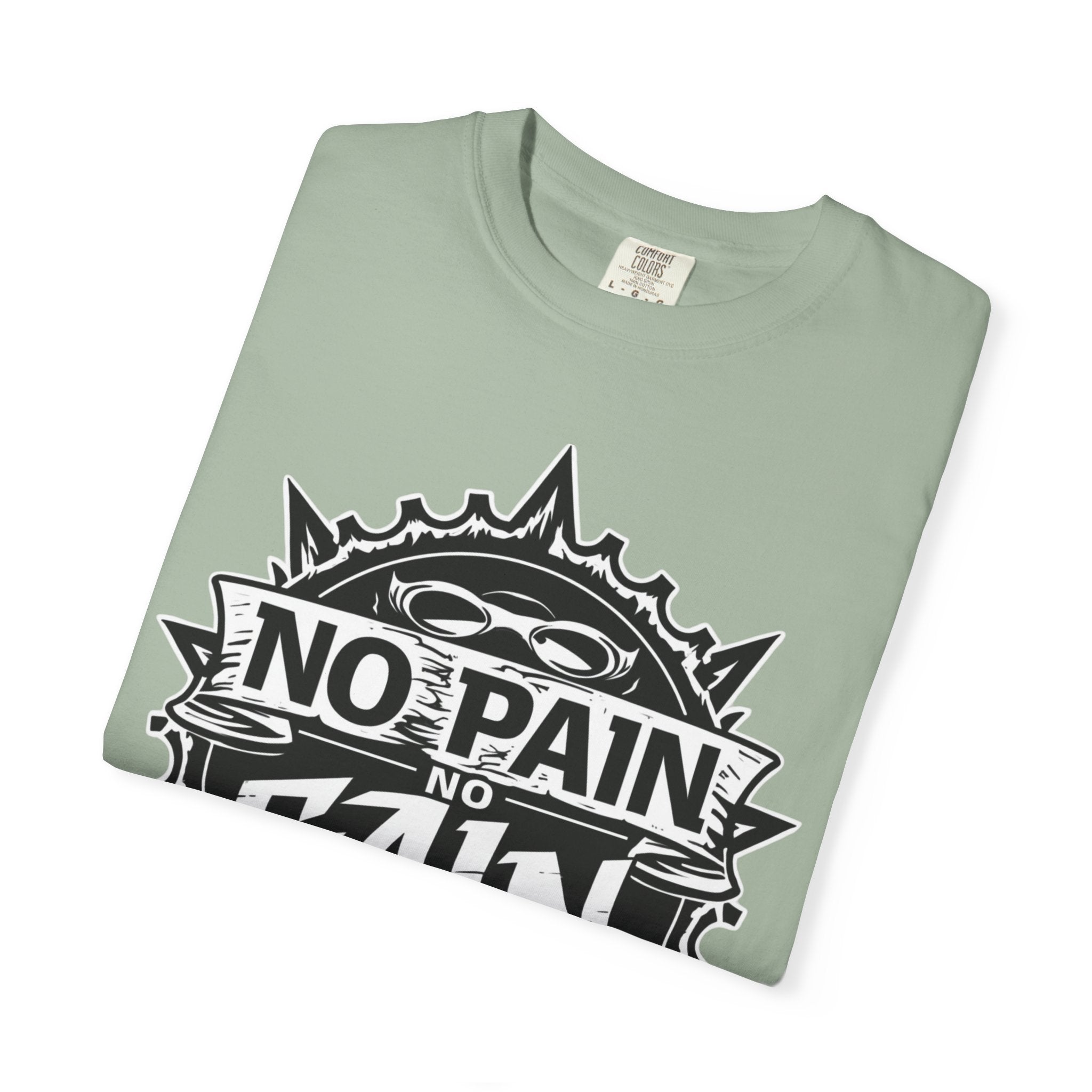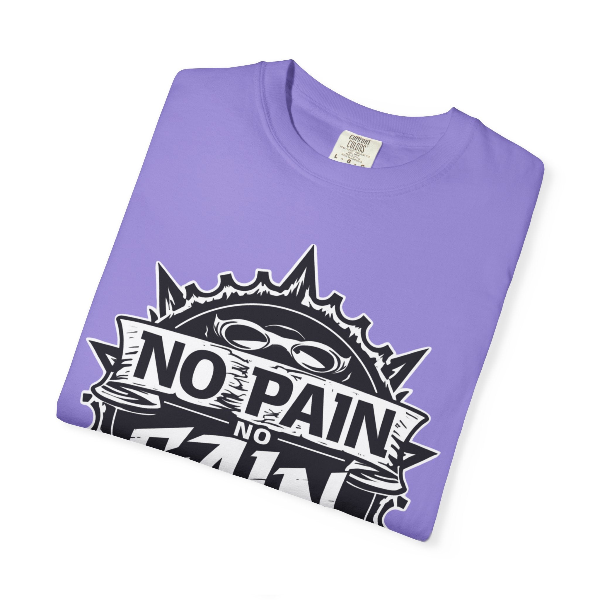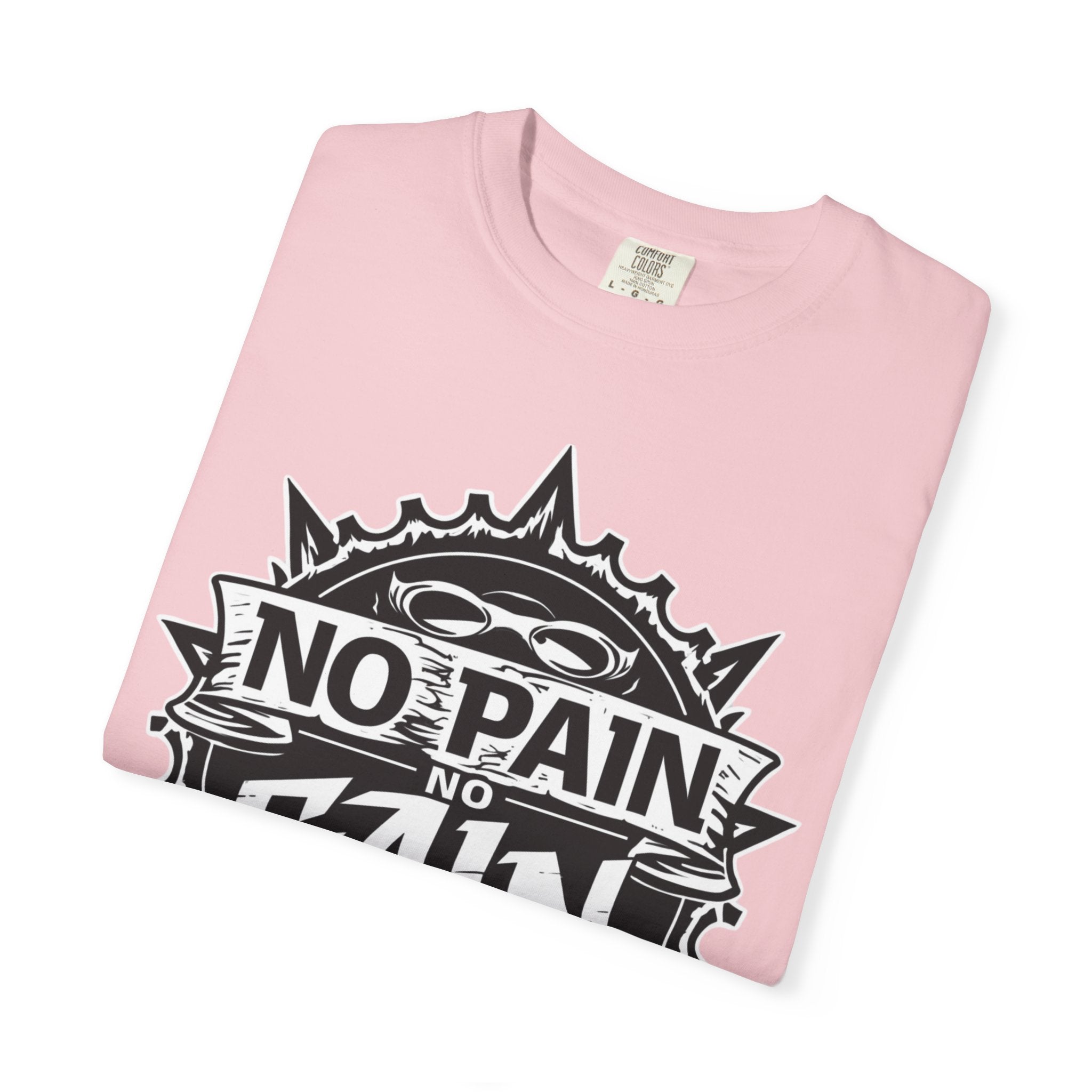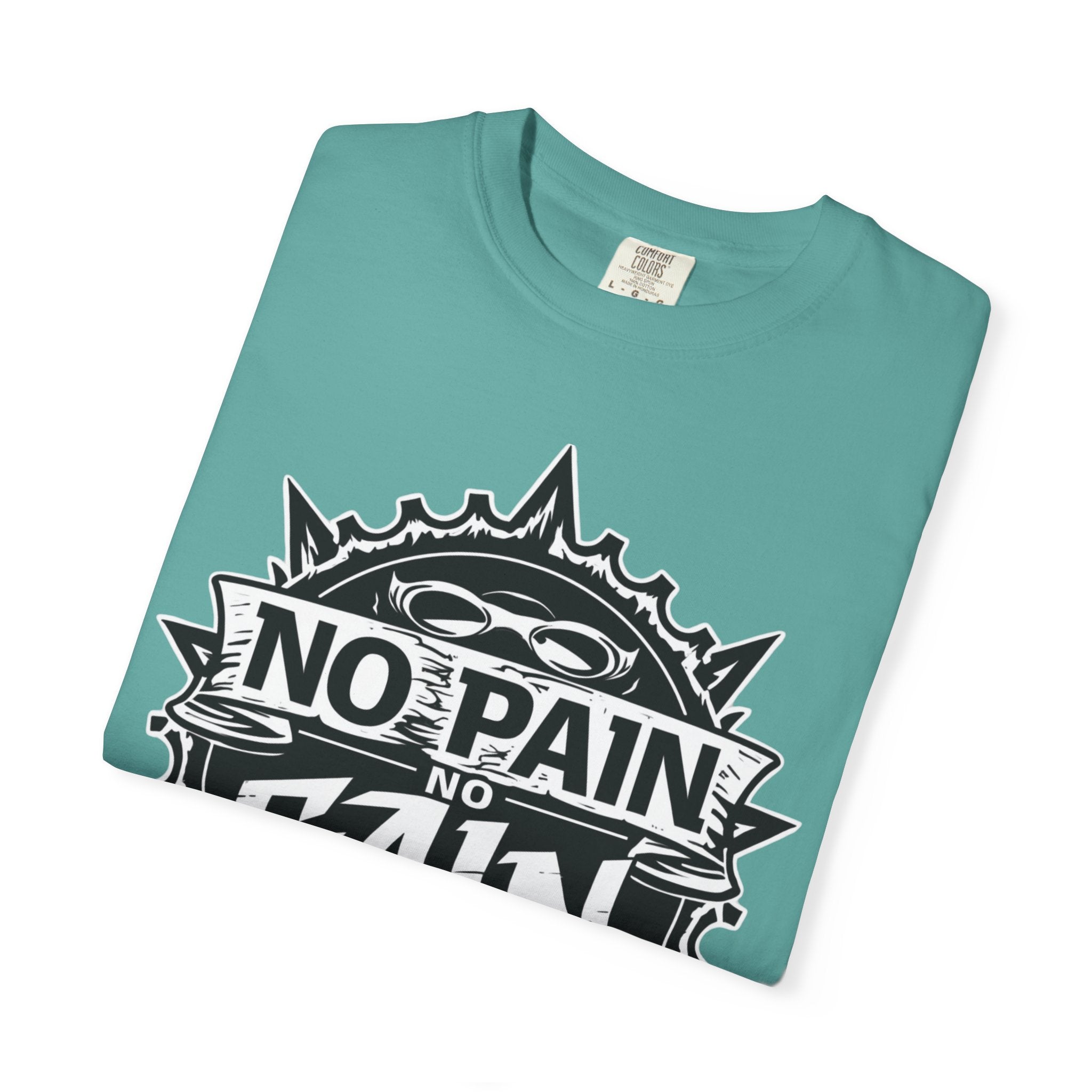 Heavyweight Ring-Spun Cotton T-Shirt - Garment-Dyed 6.1oz No Pain No Gain Distressed Gym Tee, Relaxed Fit (S-4XL)