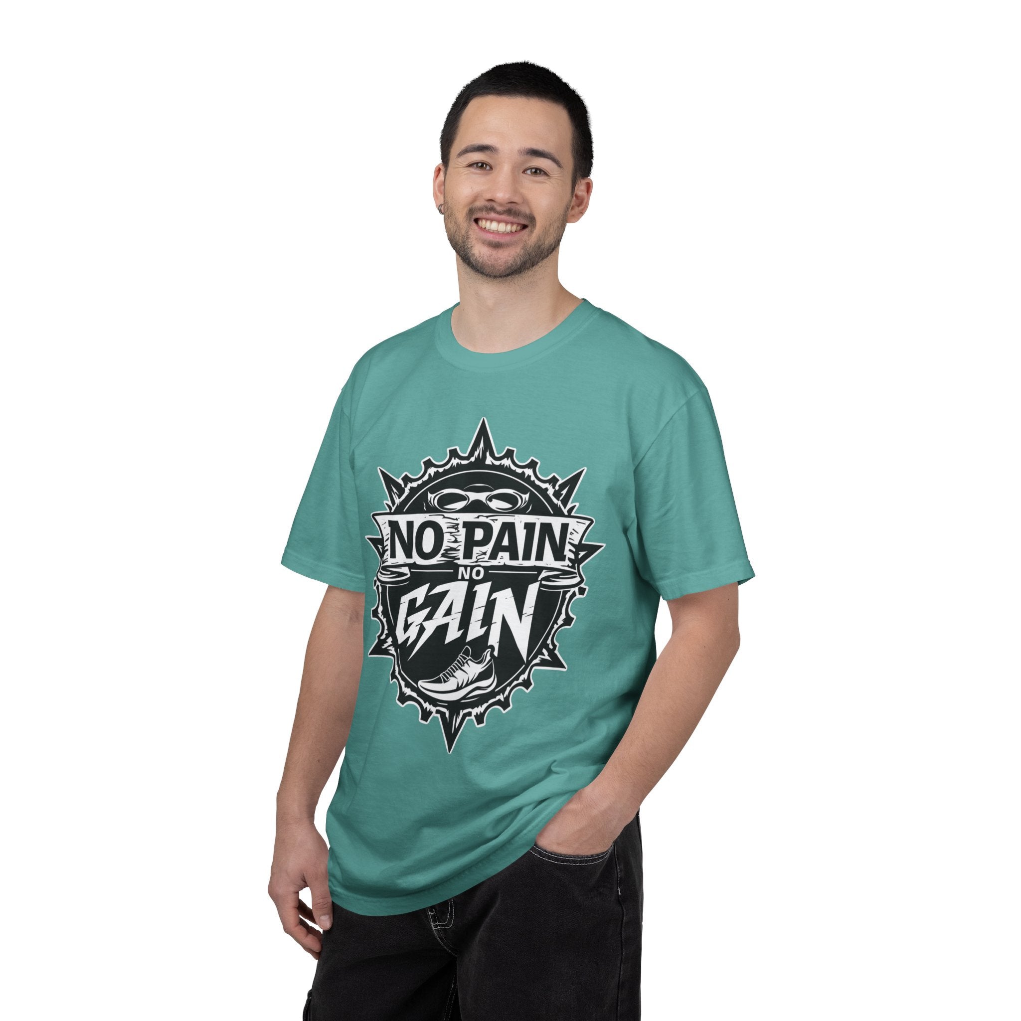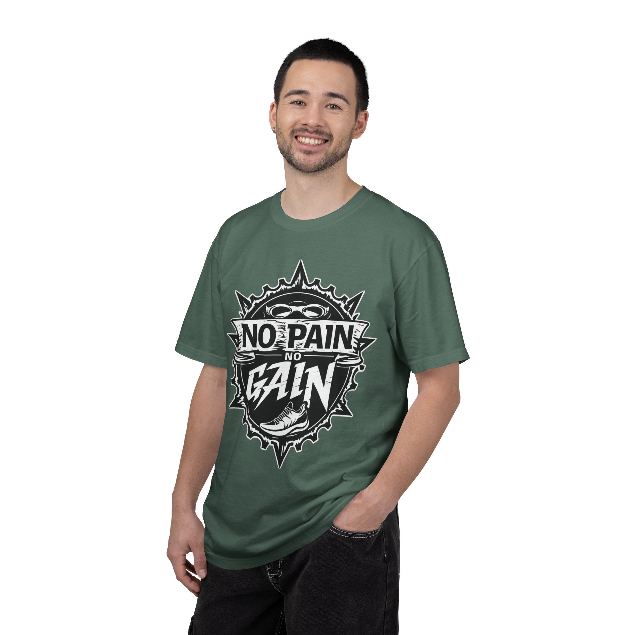 Perfect for the triathlete who lives the life year-round, beyond race day. The 'No Pain No Gain' Compass Sunburst T-Shirt combines heavyweight comfort with bold branding that signals your endurance grind — a must-have for newbie triathletes stepping into the swim-bike-run community.