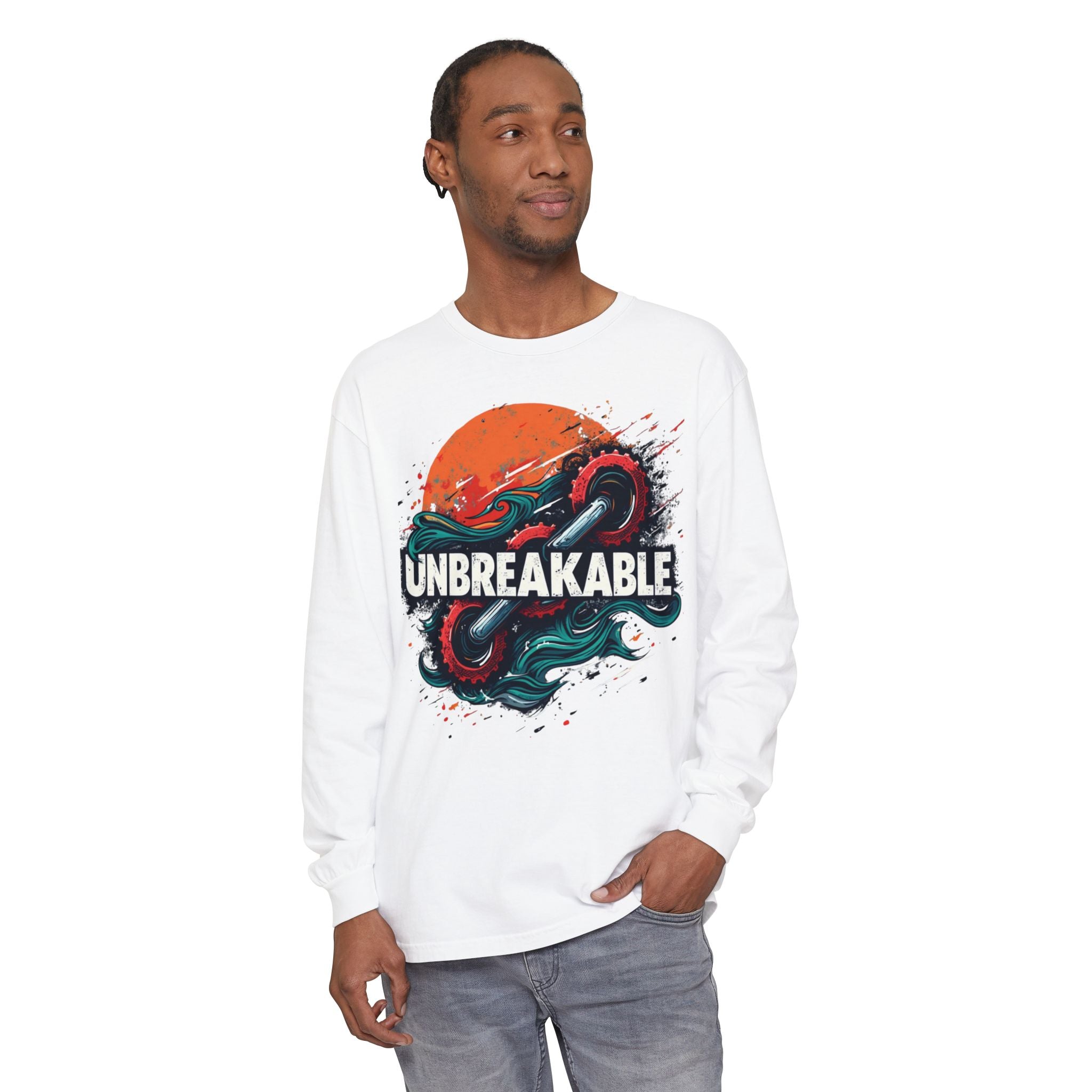 Long Sleeve Cotton Tee for Triathlon Training - Nautical Design & Durability