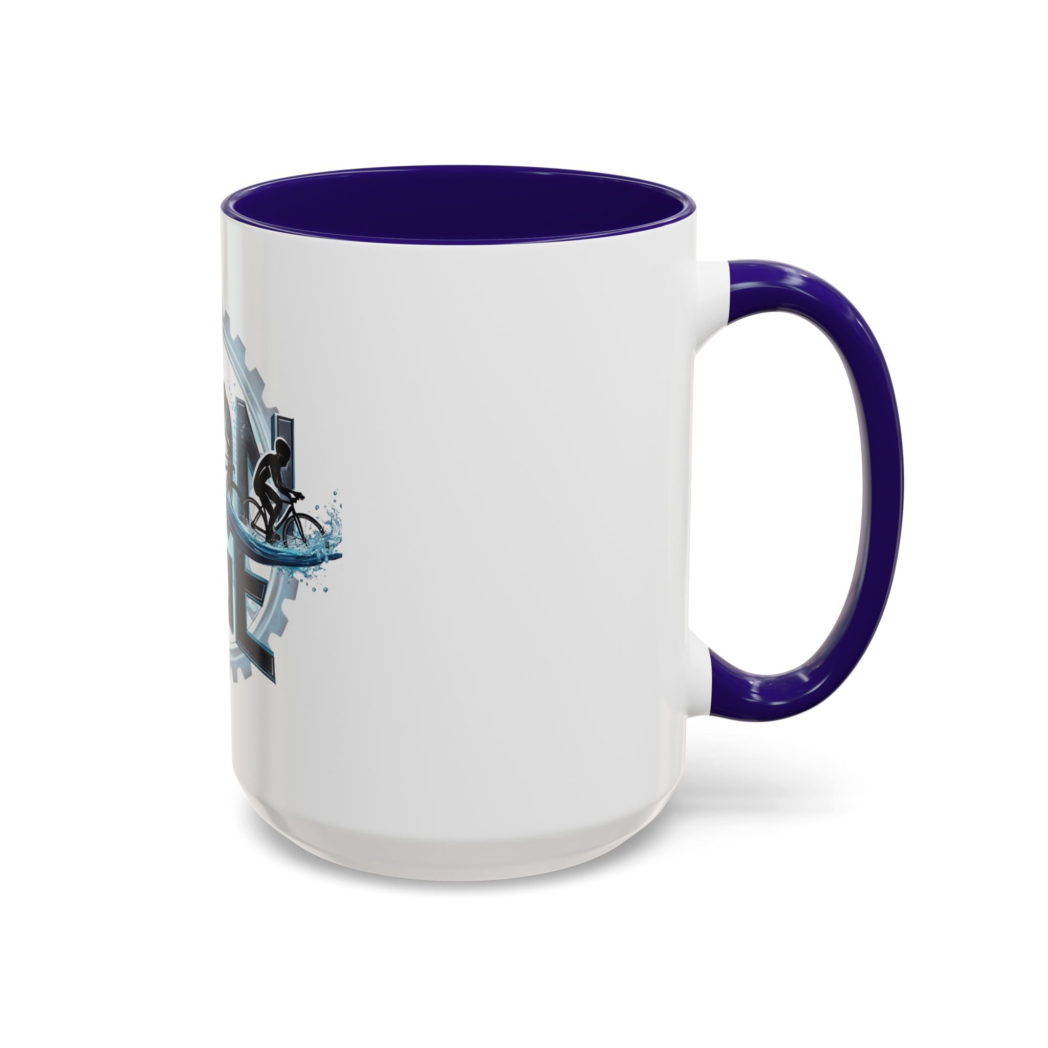 Picture yourself on race week, sipping a warm drink from this lightweight ceramic cup as the sun rises—its subtle gear accents inspiring focus and confidence. Available in 11oz or 15oz sizes with 12 accent colors, it matches your style while holding up to the hustle of training schedules and busy professional lives. The microwave-safe design means quick reheats for that energizing caffeine hit, keeping you ready for brick workouts or long training days.