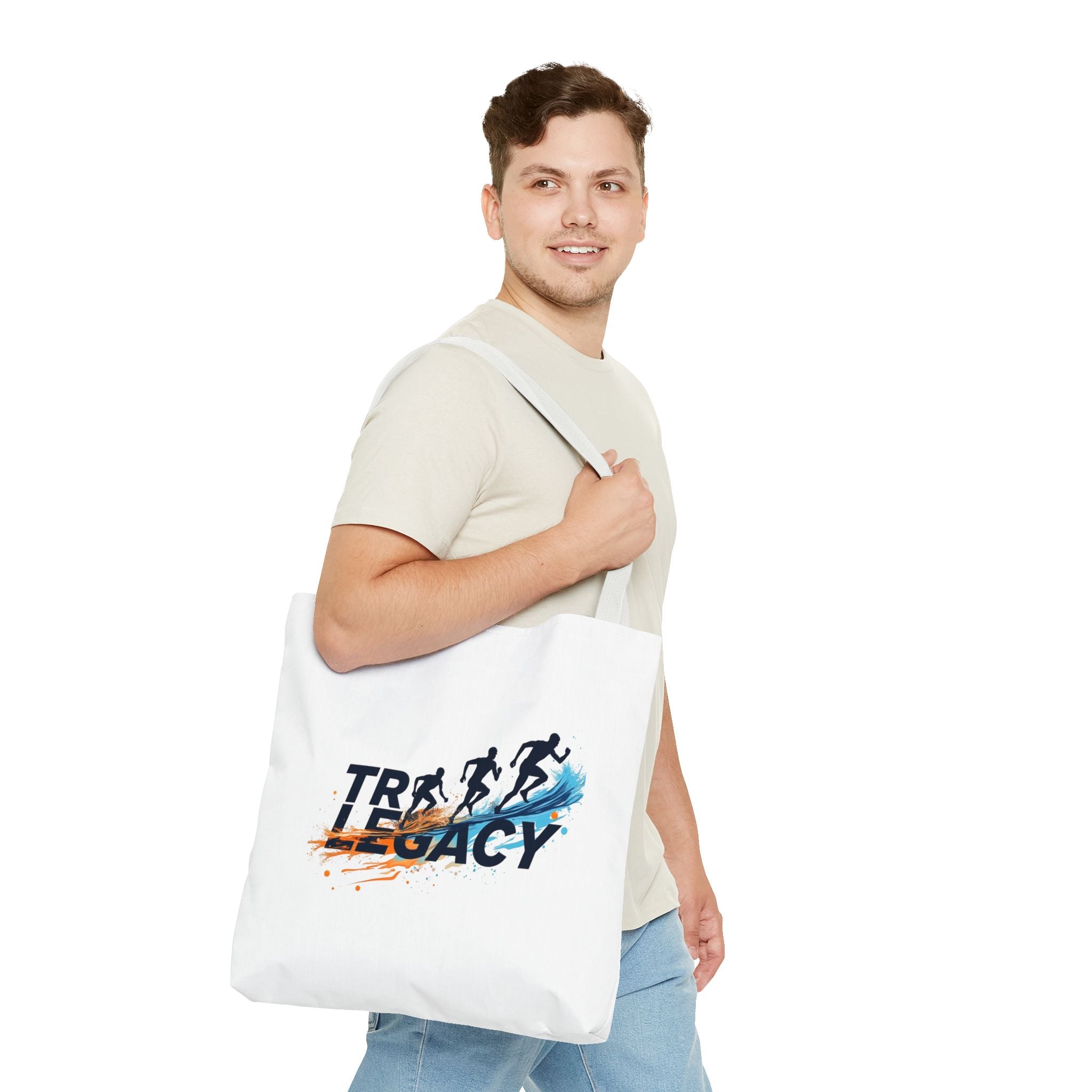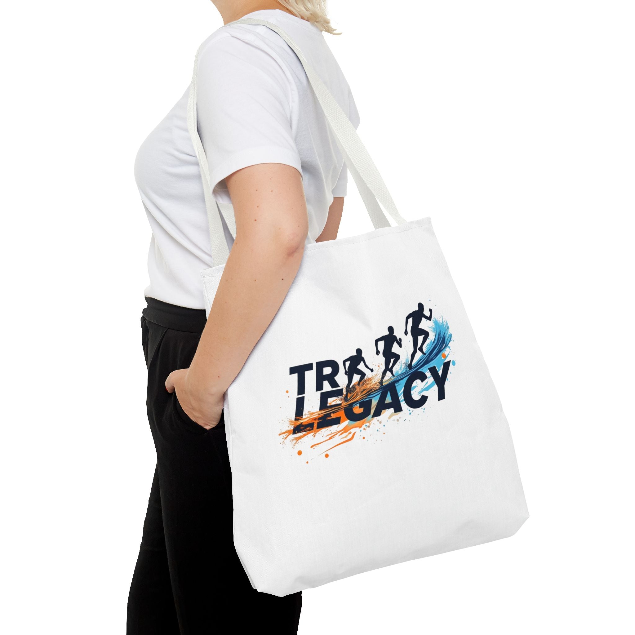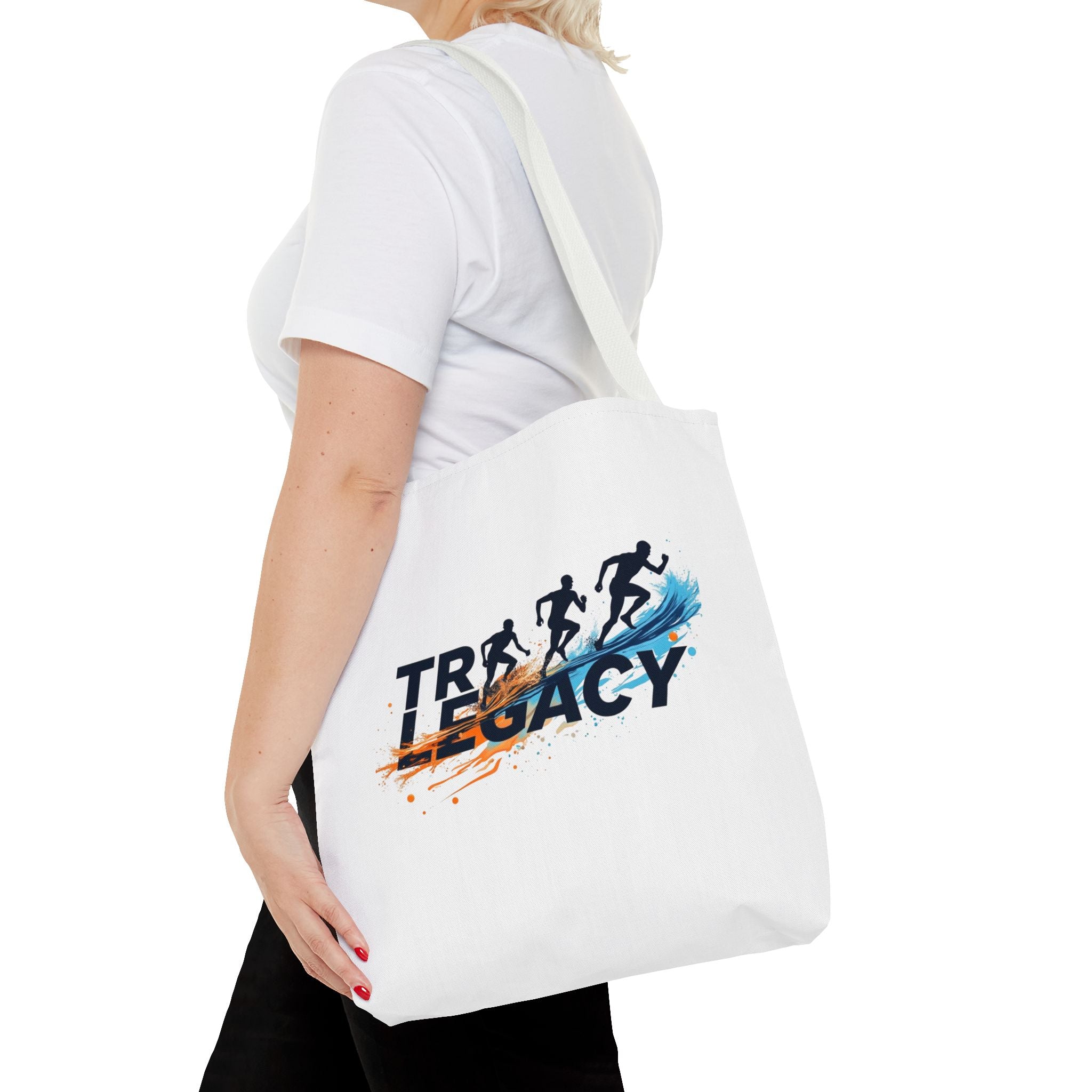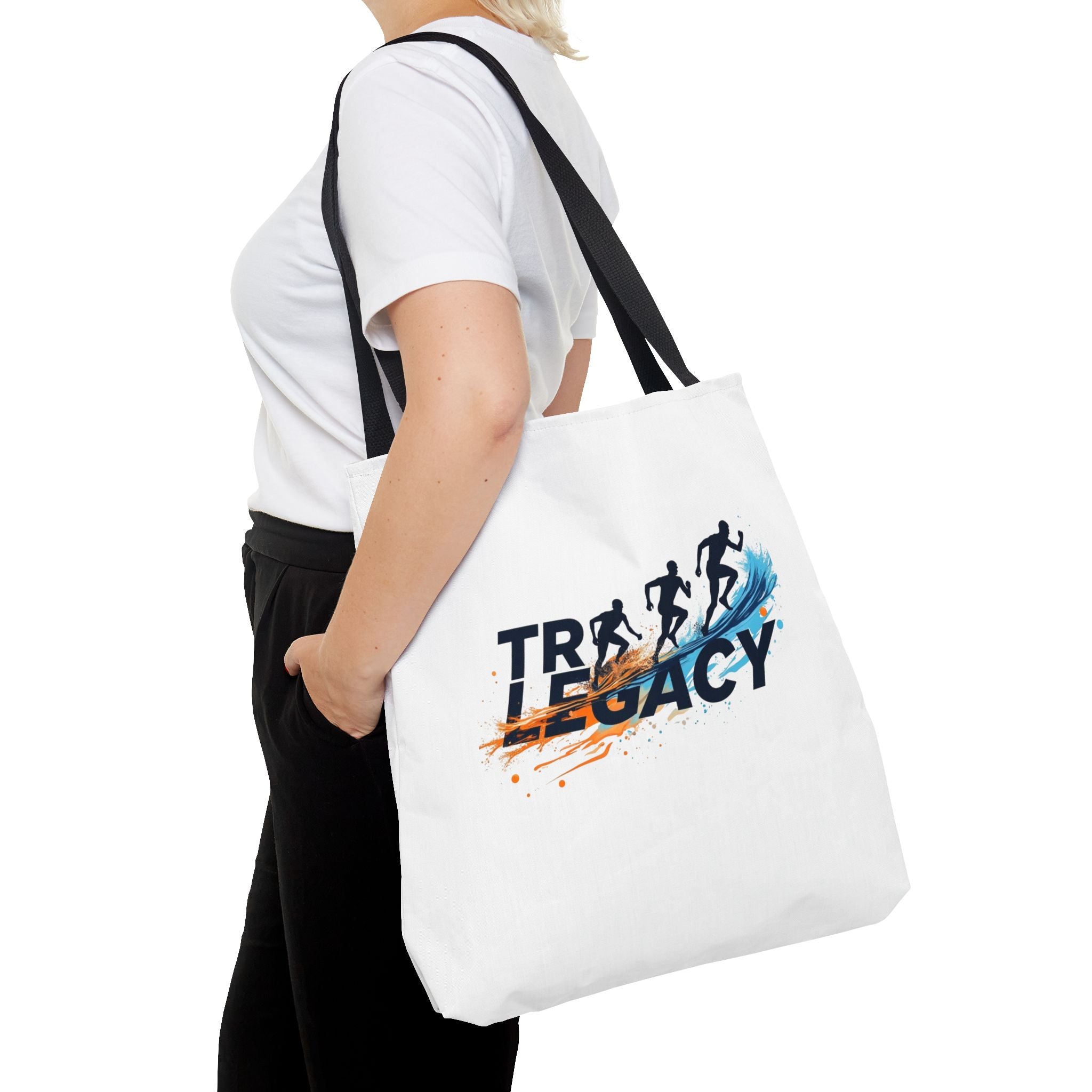 Picture this: You dive out of the water, stride to your bike, and everything's right there—goggles off, towel dry, shoes ready—no digging or delays. Feel the momentum as this lively tote carries your gear effortlessly to the track, expo, or start line, with runners-in-stride graphics reminding you progress comes from consistent steps.