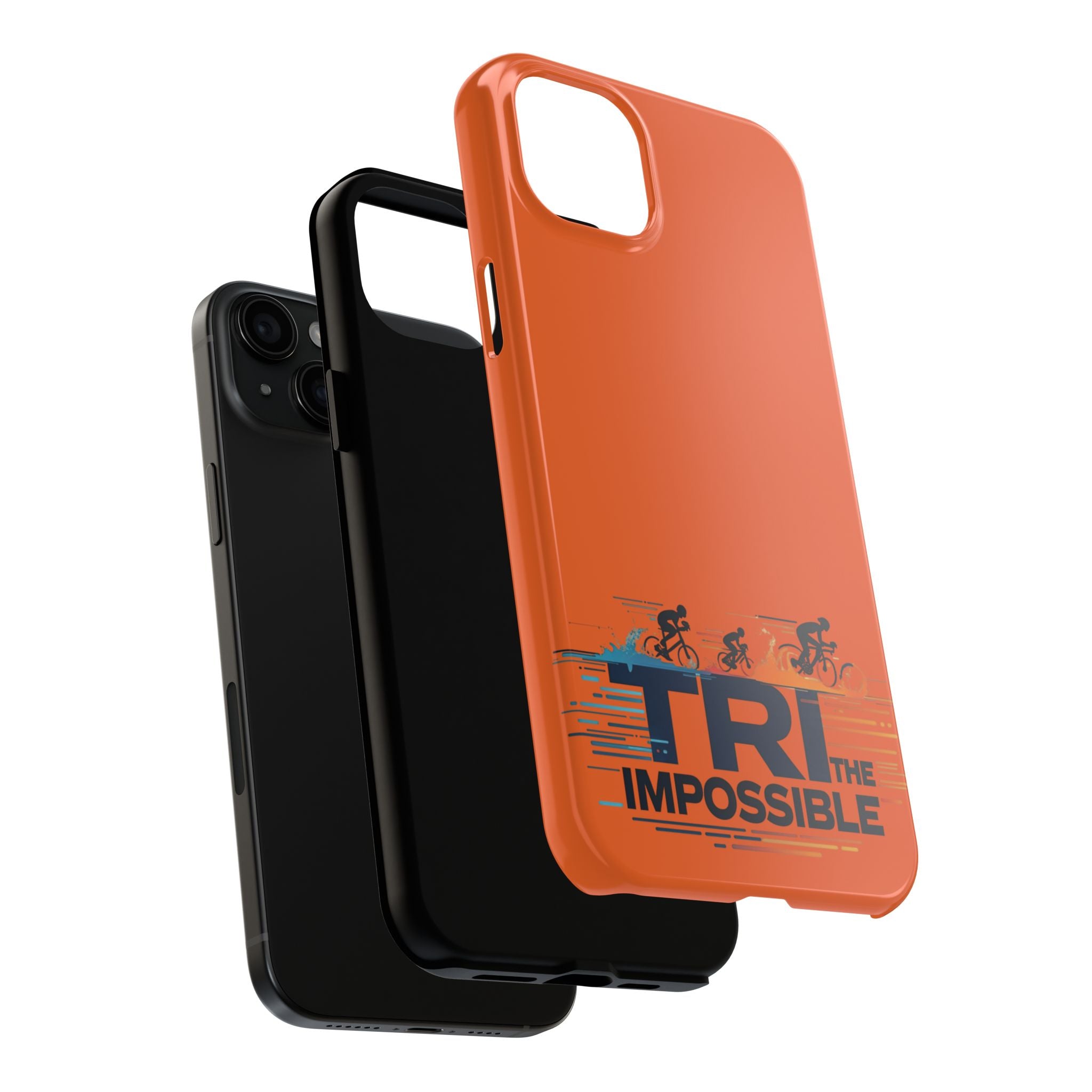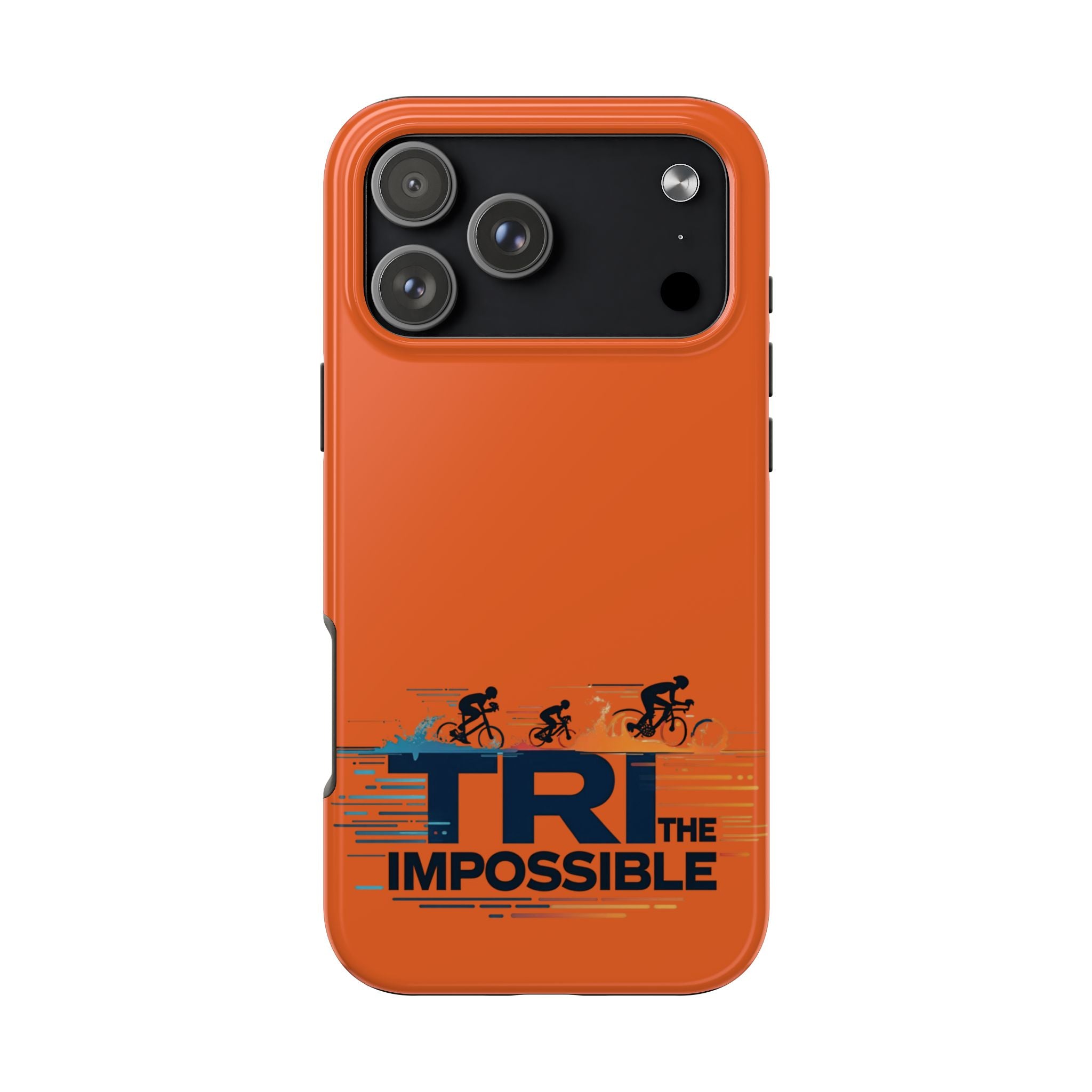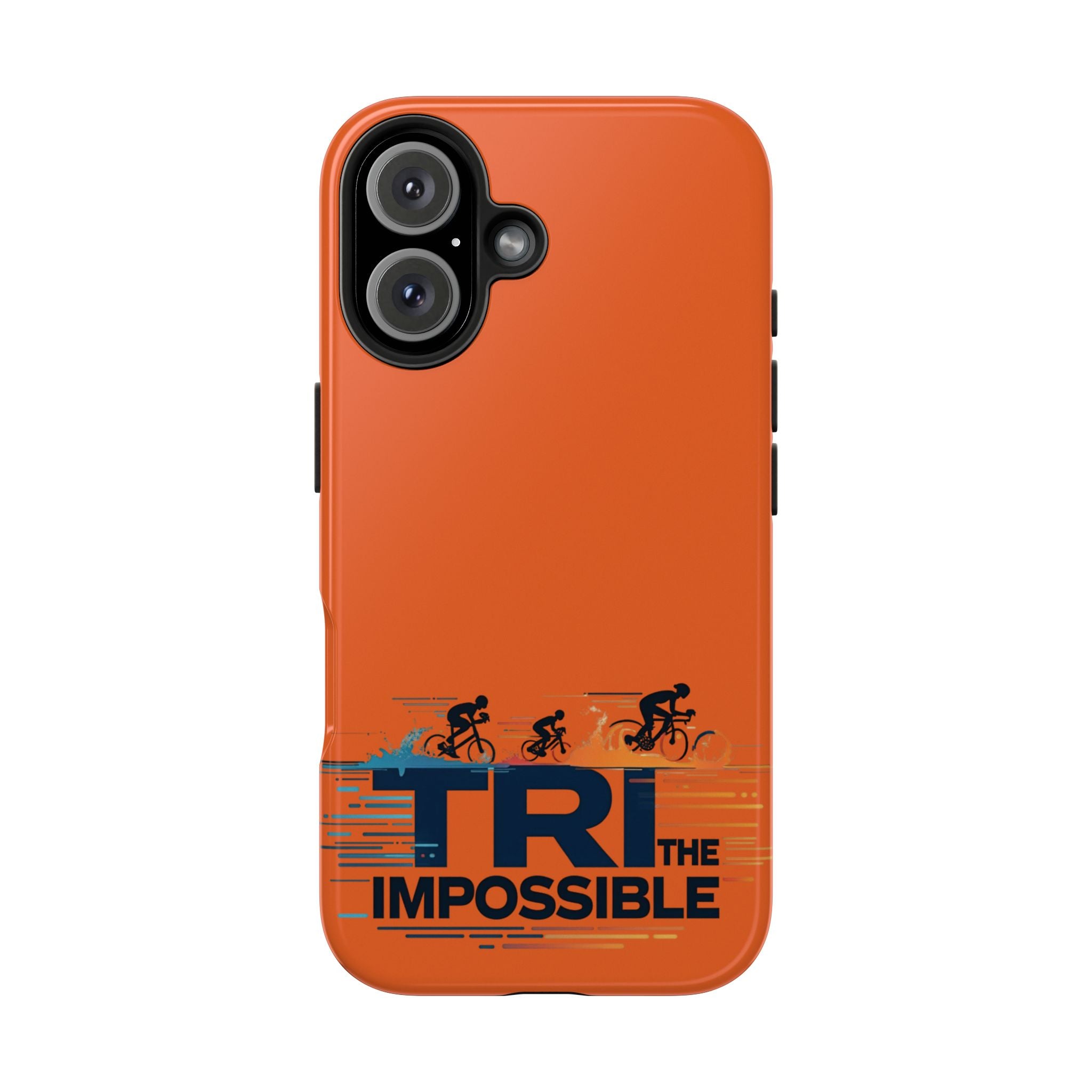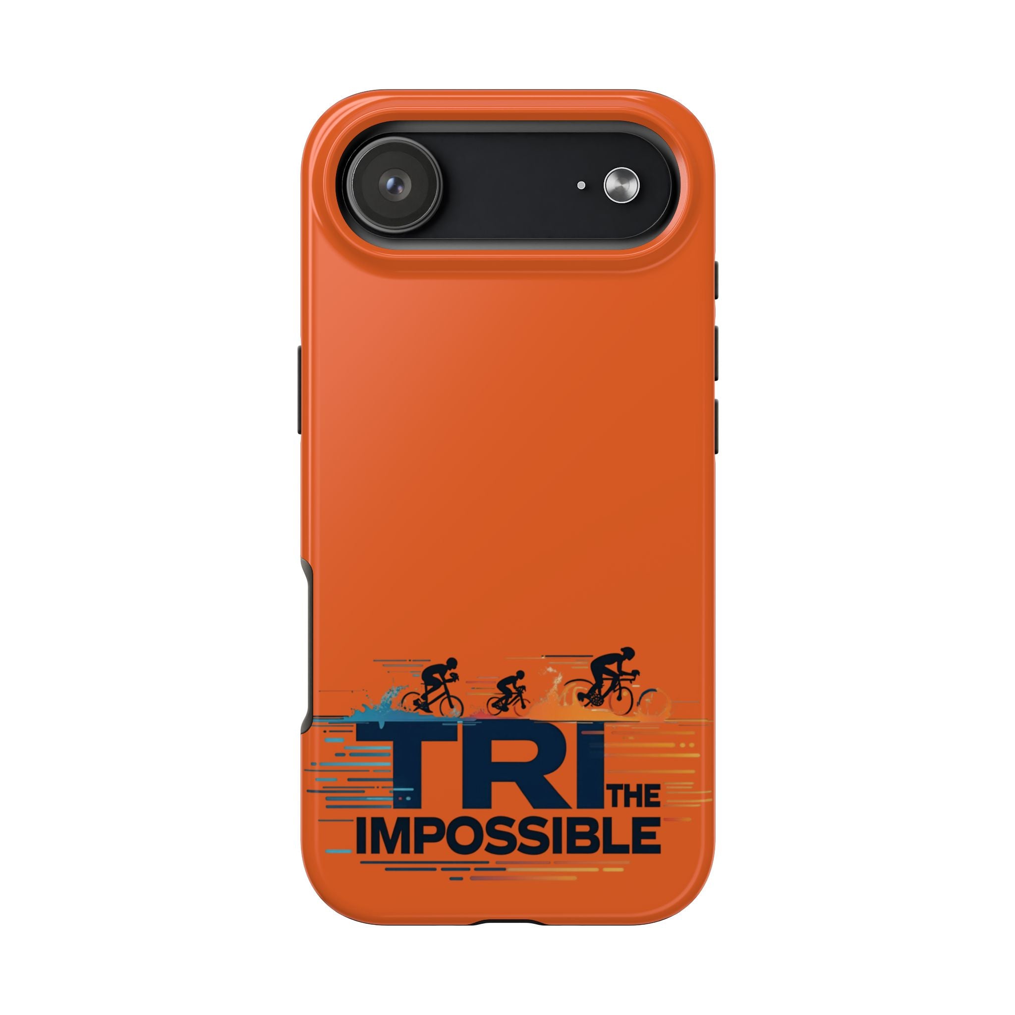 Sleek, tough phone protection with a bold triathlon-inspired print. This slim, two-piece case combines a rigid polycarbonate shell with a flexible TPU liner to absorb shocks and disperse impact, while the lay-flat bezel helps guard your screen. The glossy, UV-protected finish keeps the vivid orange color and detailed “Tri the Impossible” artwork looking sharp through outdoor use. Lightweight and responsive to wireless charging, it balances everyday practicality with athletic attitude — made for adults who push limits and want their gear to keep up.