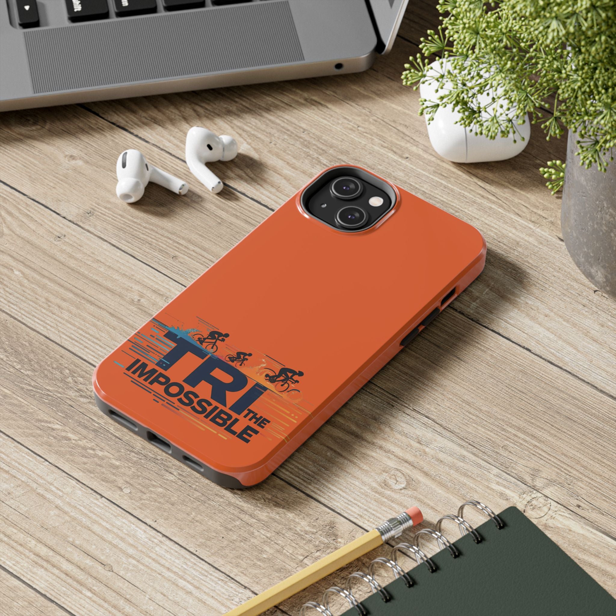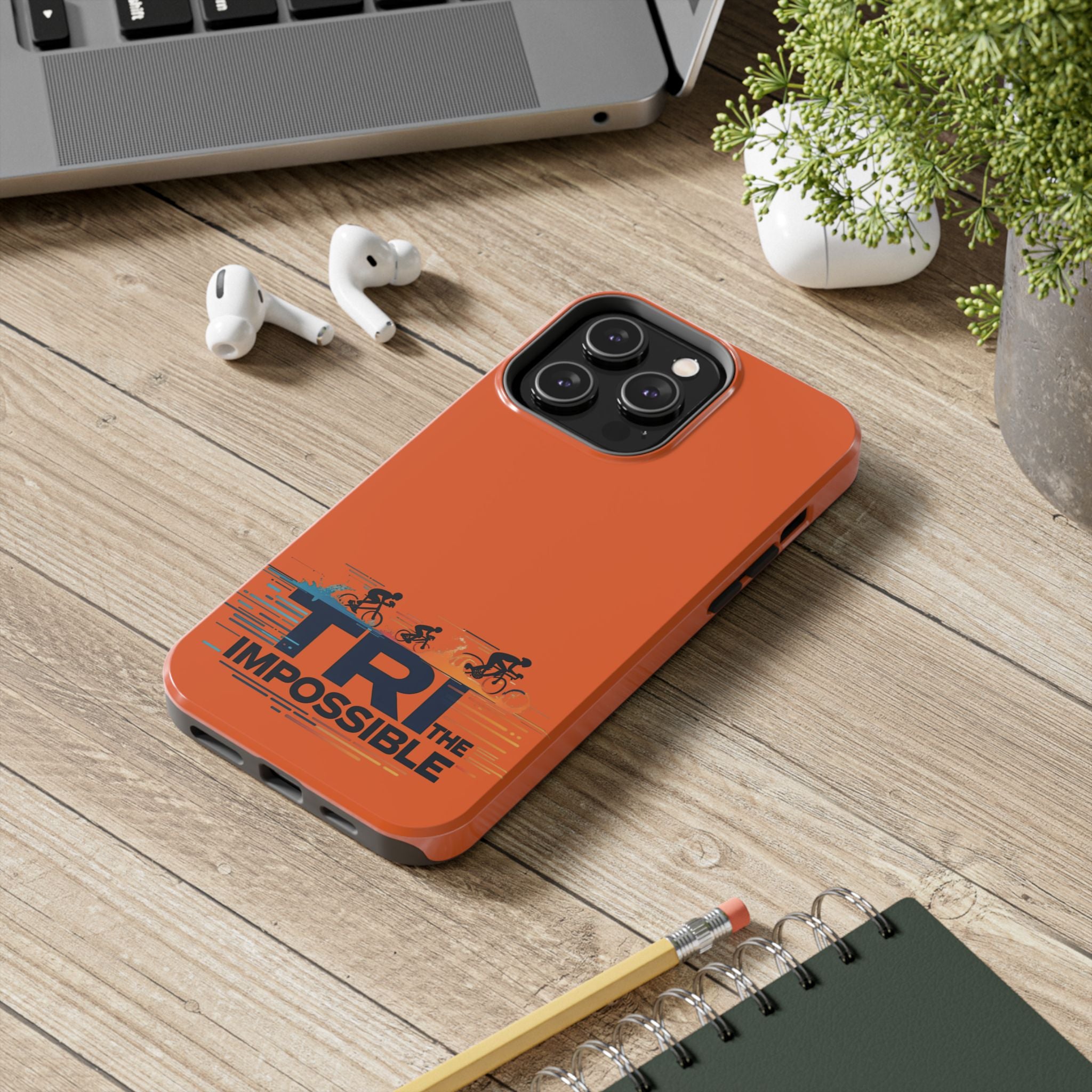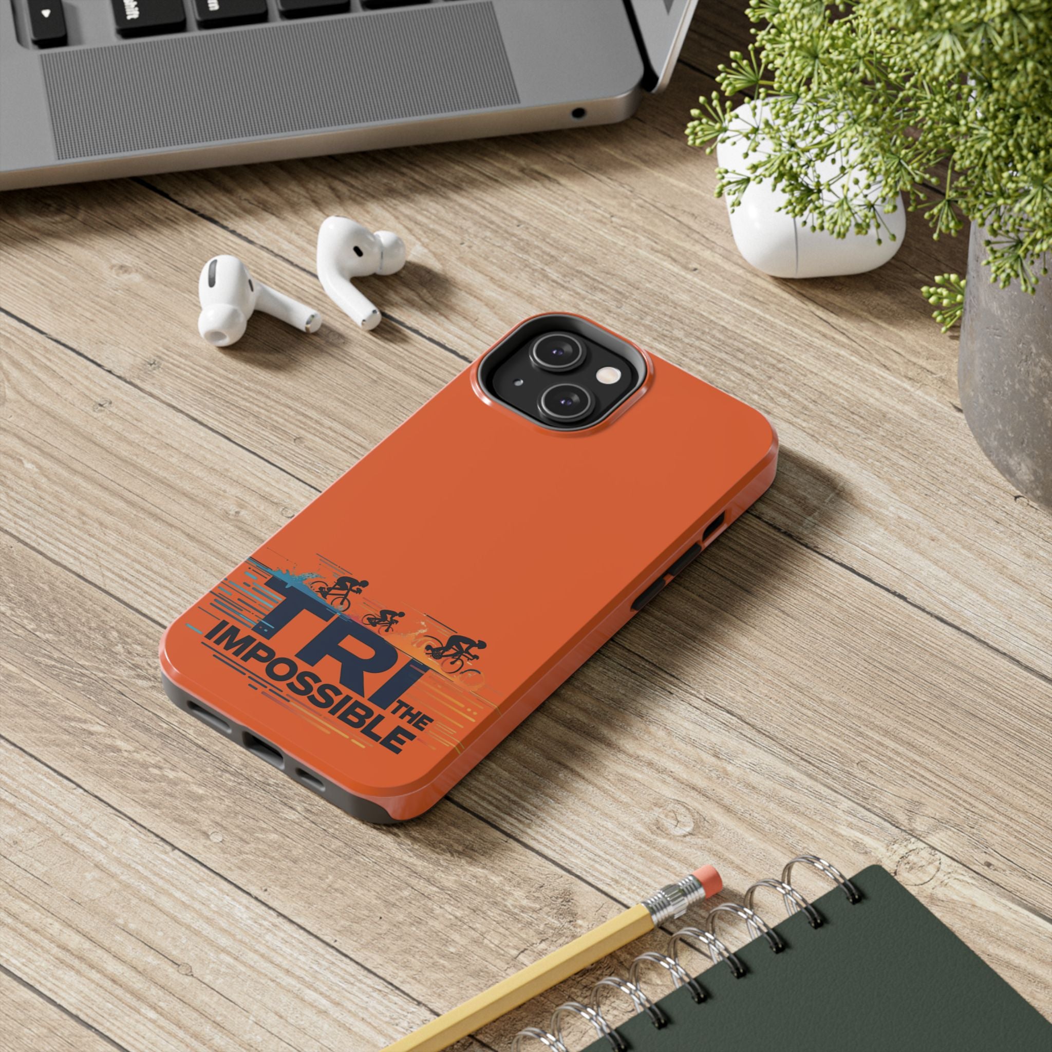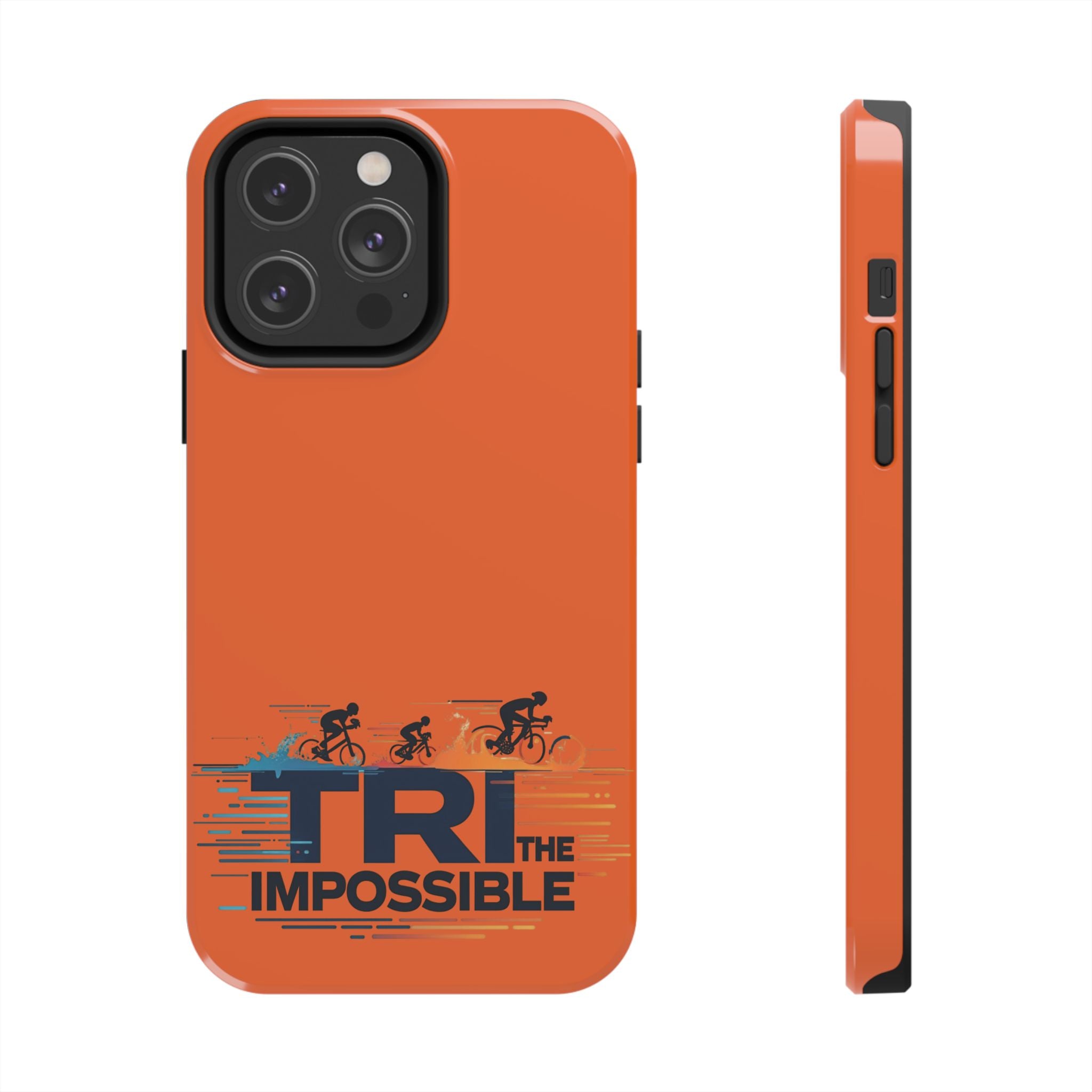 Sleek, tough phone protection with a bold triathlon-inspired print. This slim, two-piece case combines a rigid polycarbonate shell with a flexible TPU liner to absorb shocks and disperse impact, while the lay-flat bezel helps guard your screen. The glossy, UV-protected finish keeps the vivid orange color and detailed “Tri the Impossible” artwork looking sharp through outdoor use. Lightweight and responsive to wireless charging, it balances everyday practicality with athletic attitude — made for adults who push limits and want their gear to keep up.