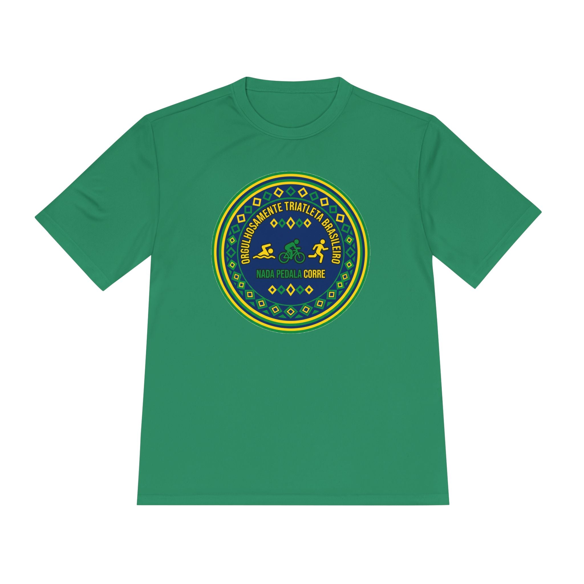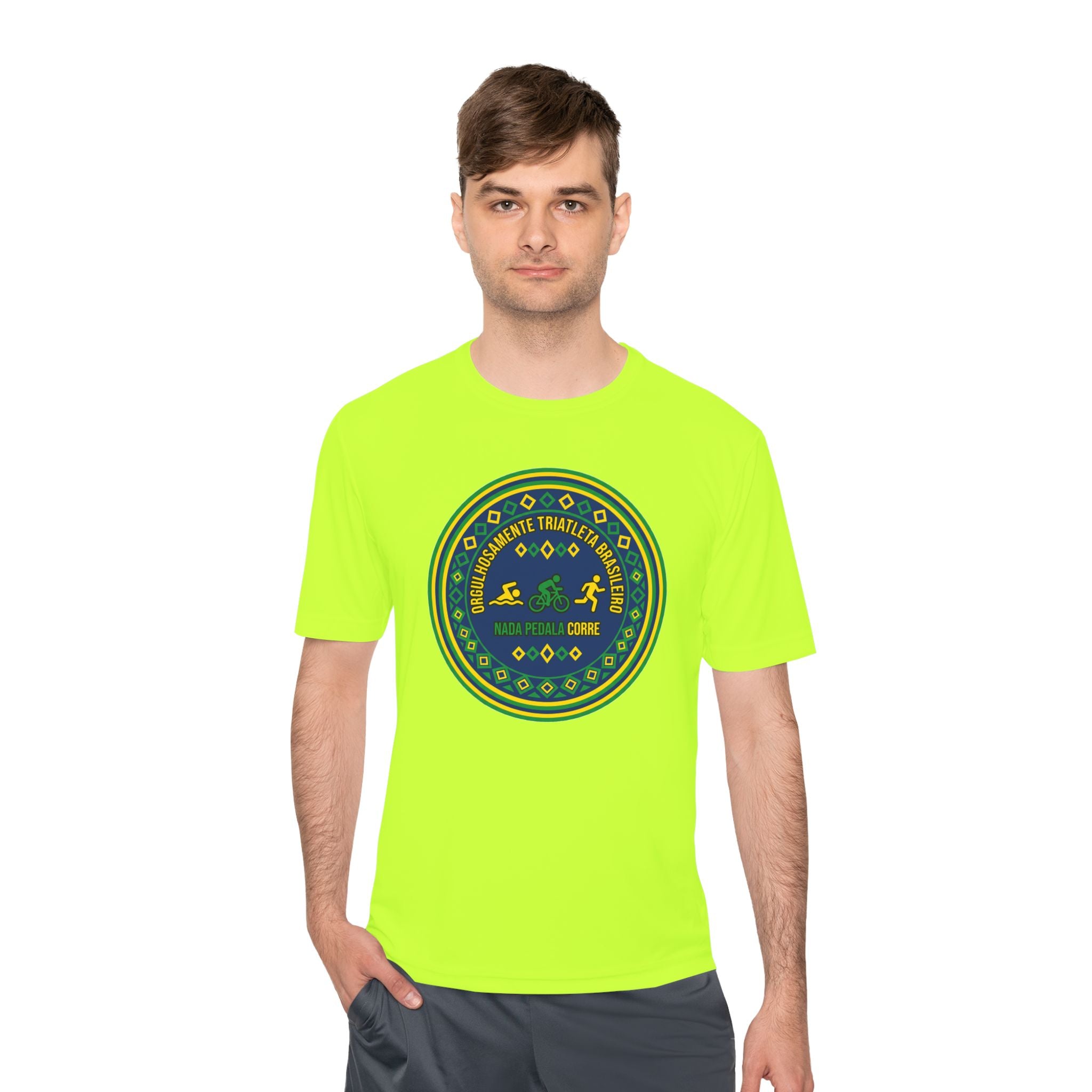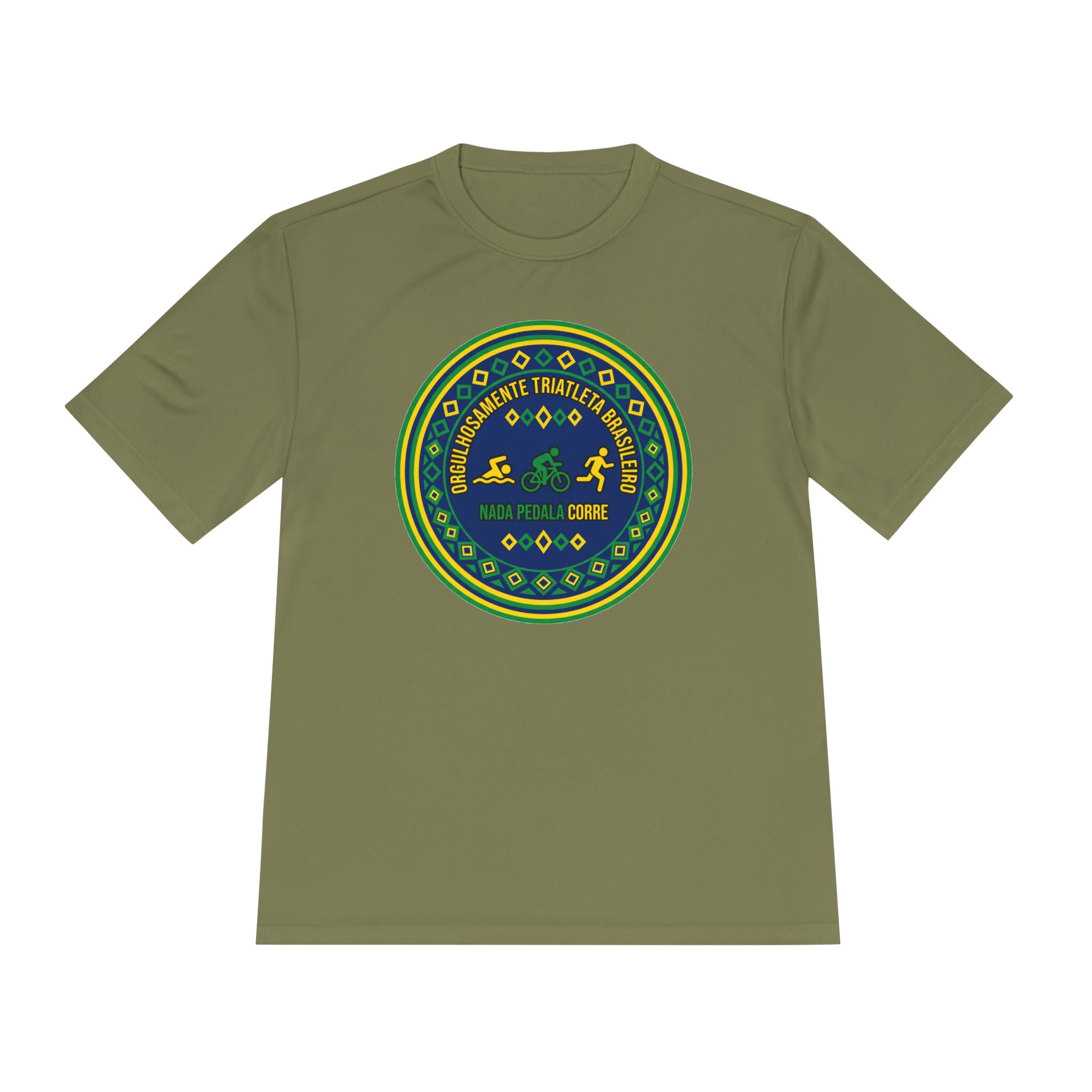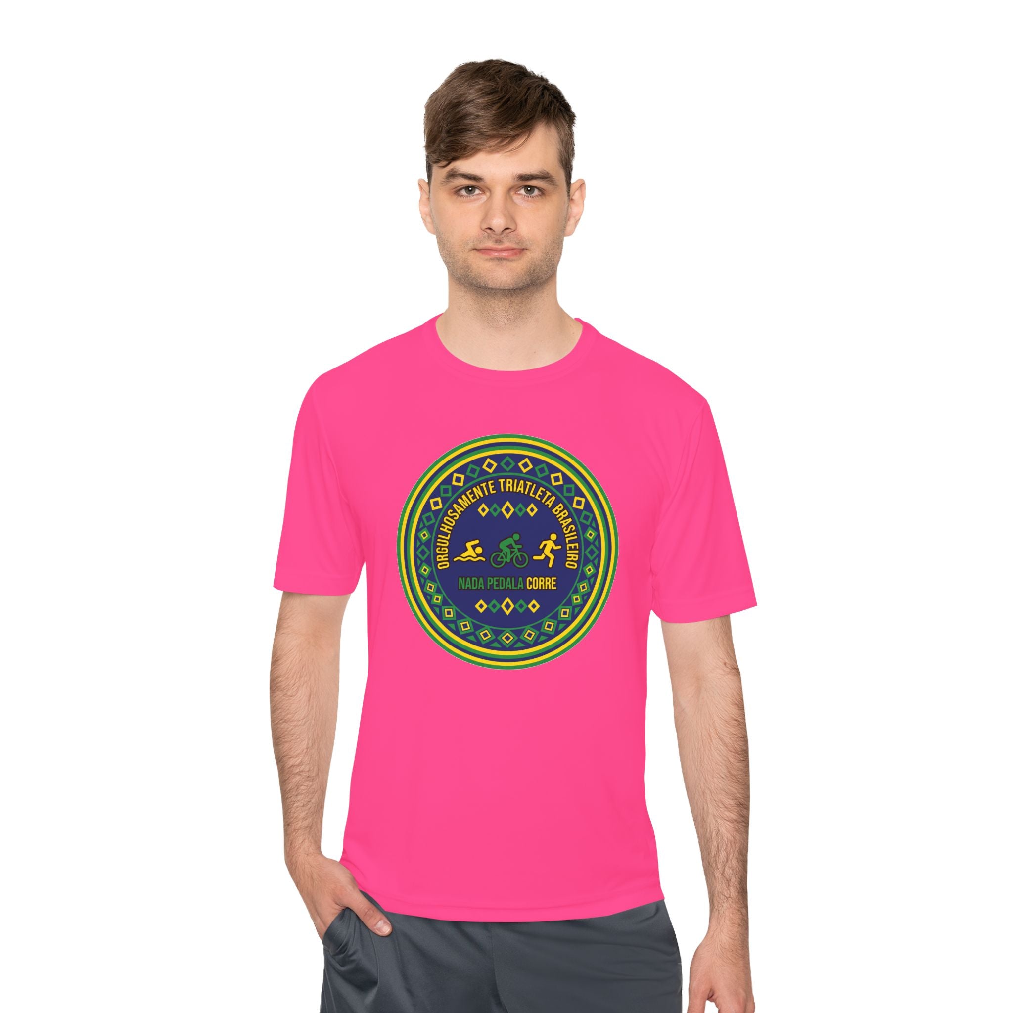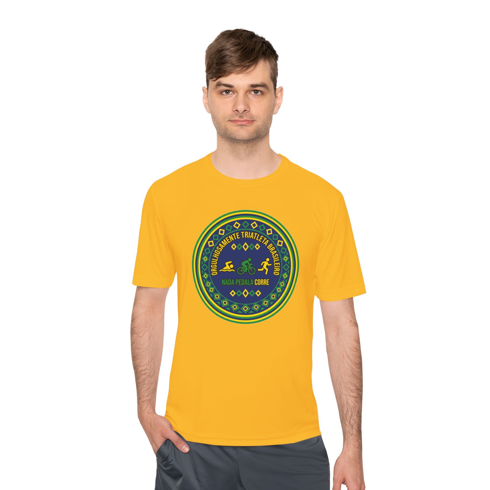 Orgulhosamente Triatleta Brasileiro Moisture-Wicking Performance Tee — Swim Bike Run Brazilian Triathlete Gear
