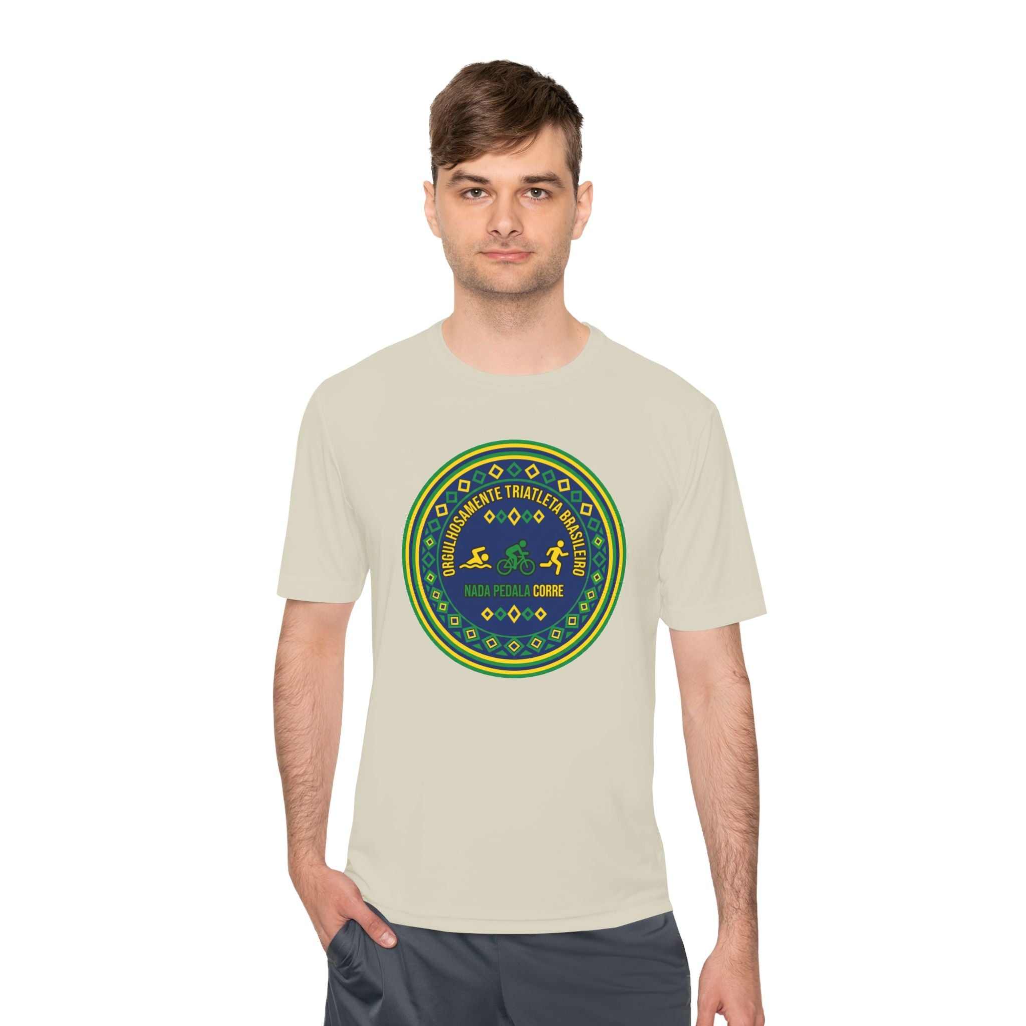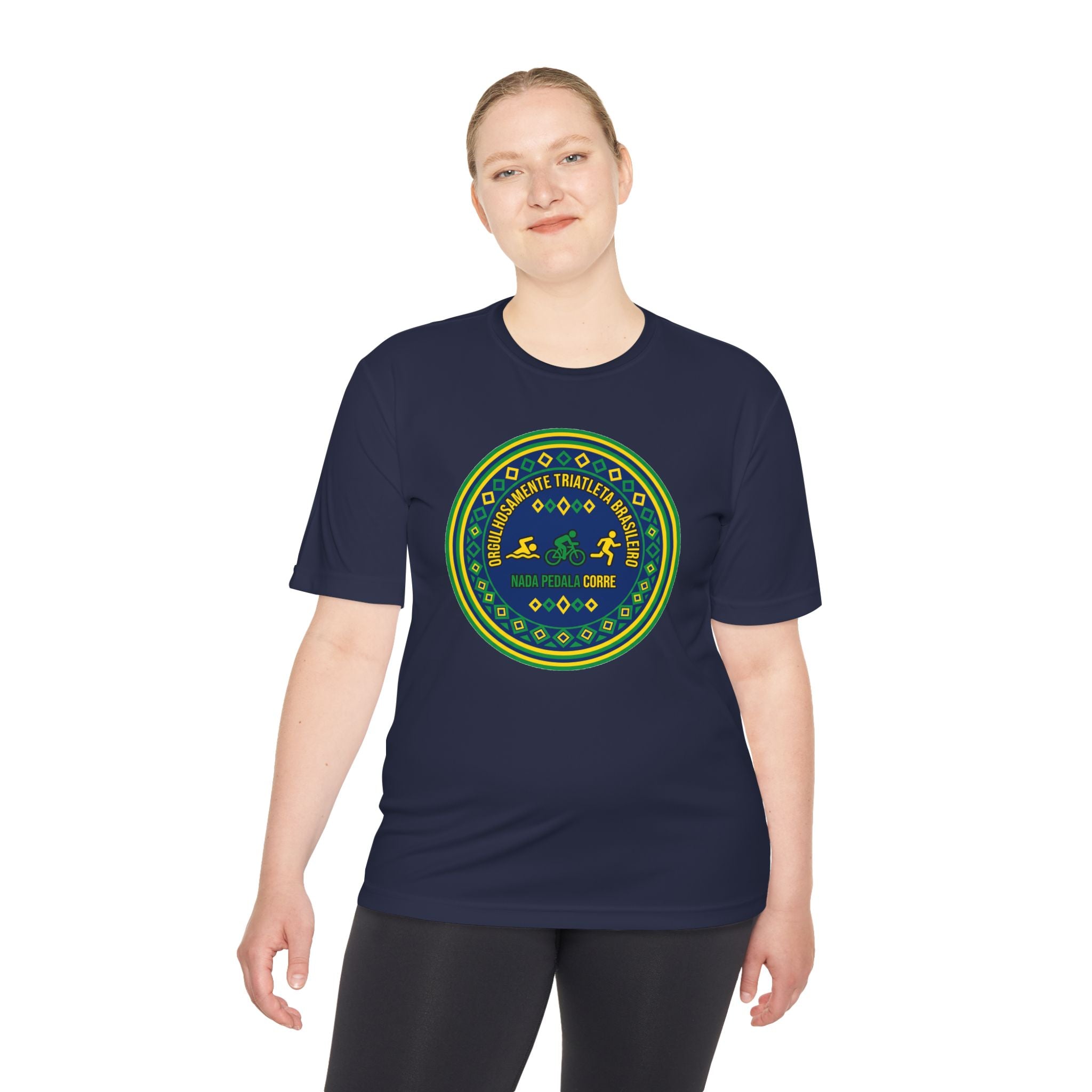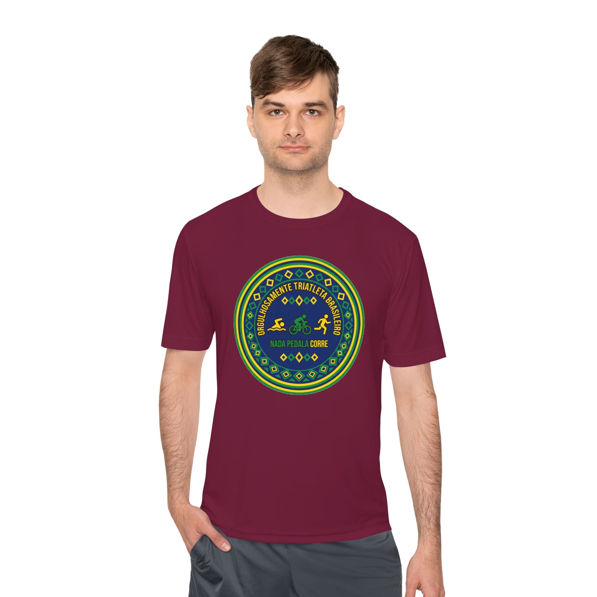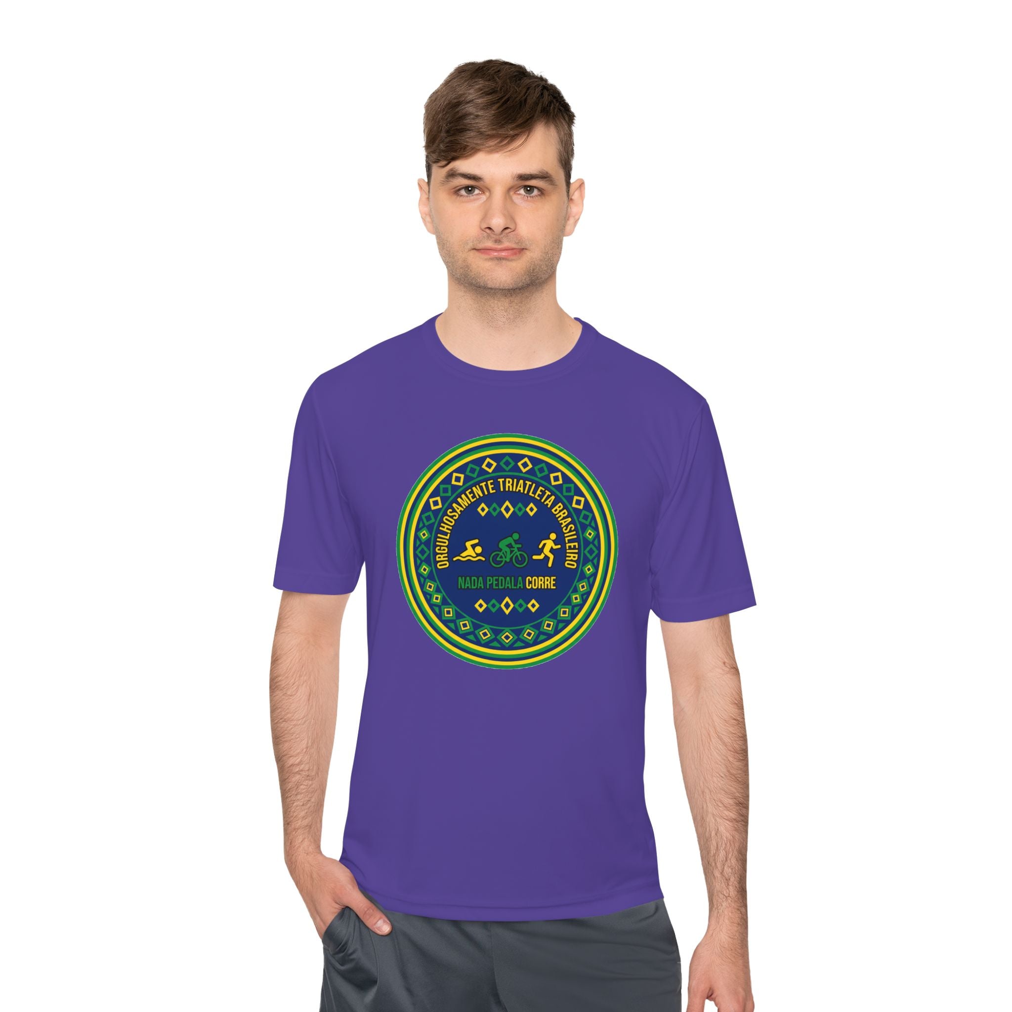Orgulhosamente Triatleta Brasileiro Moisture-Wicking Performance Tee — Swim Bike Run Brazilian Triathlete Gear