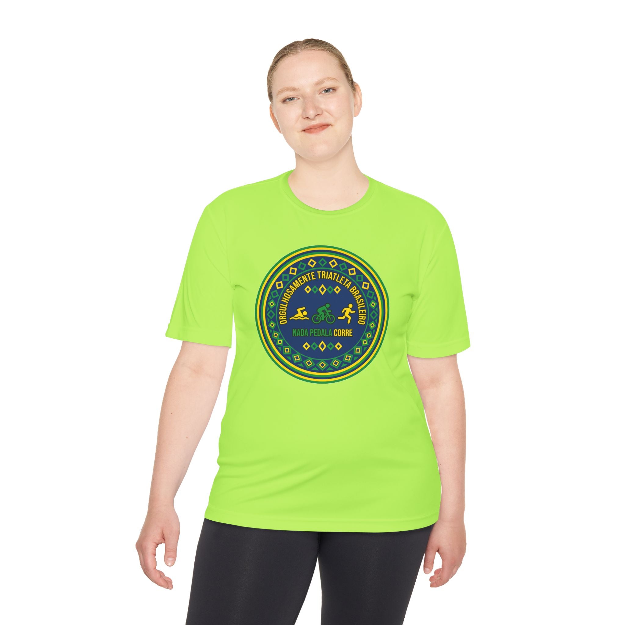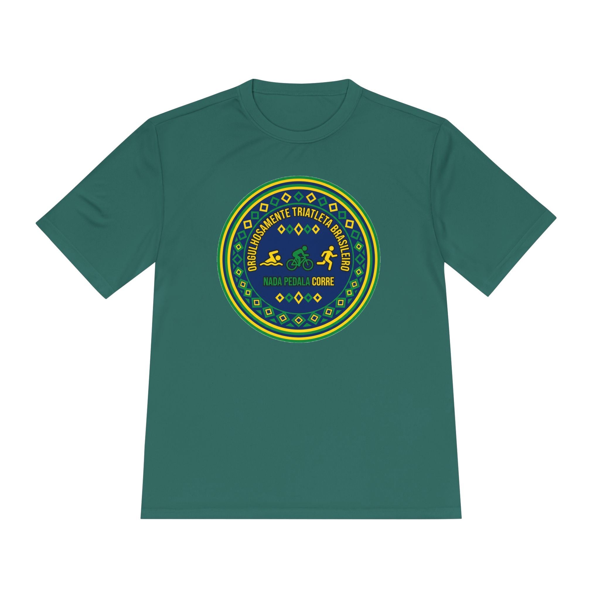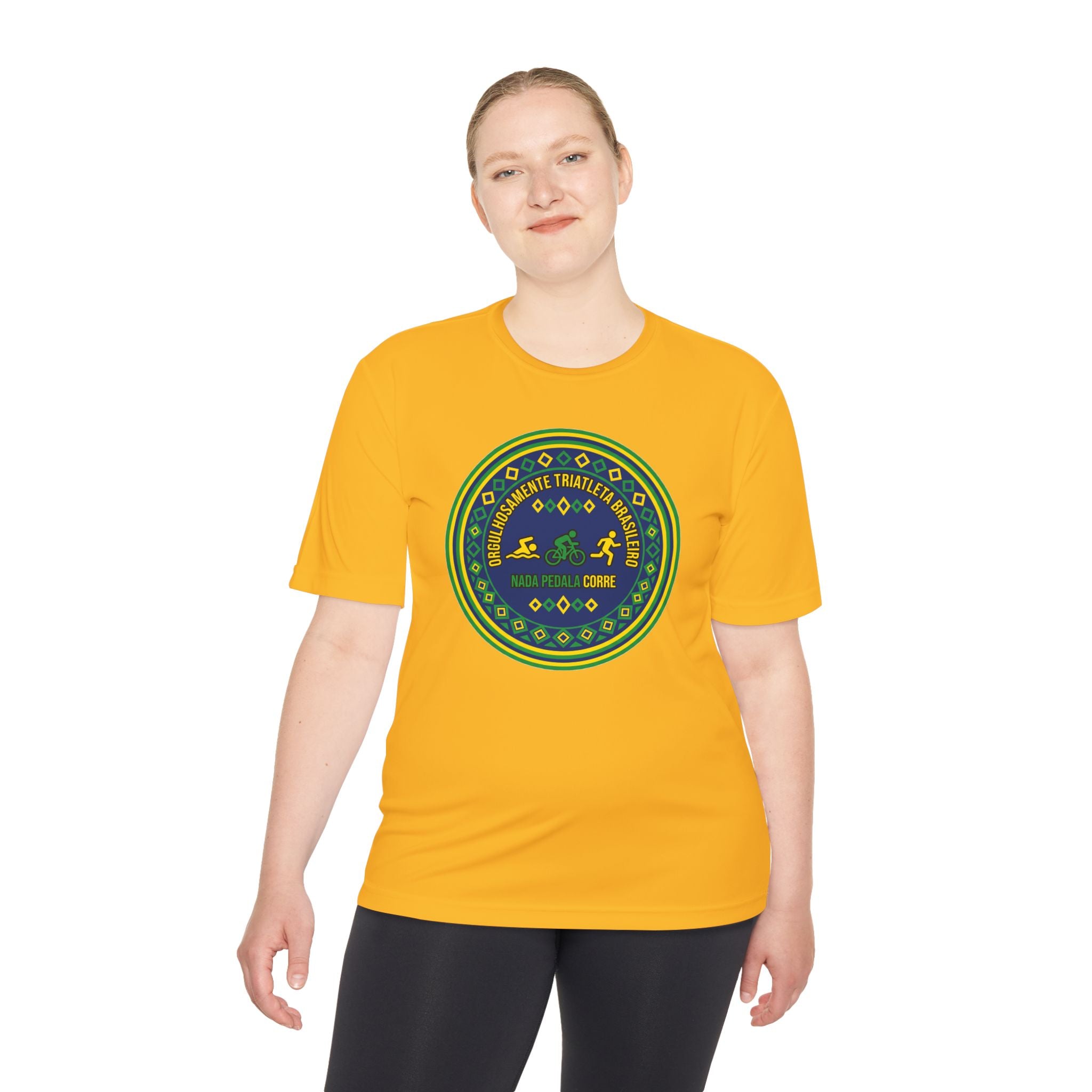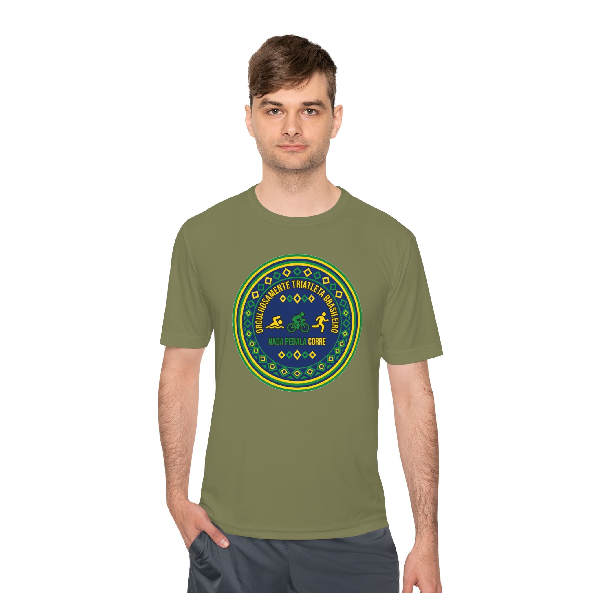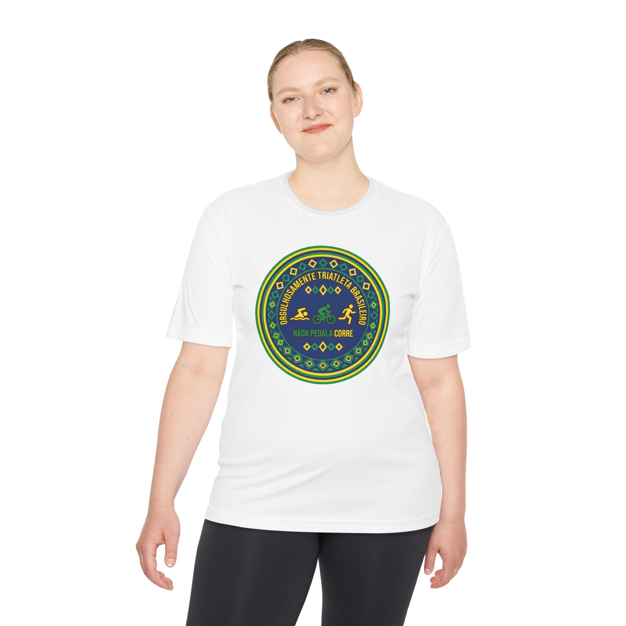 Orgulhosamente Triatleta Brasileiro Moisture-Wicking Performance Tee — Swim Bike Run Brazilian Triathlete Gear