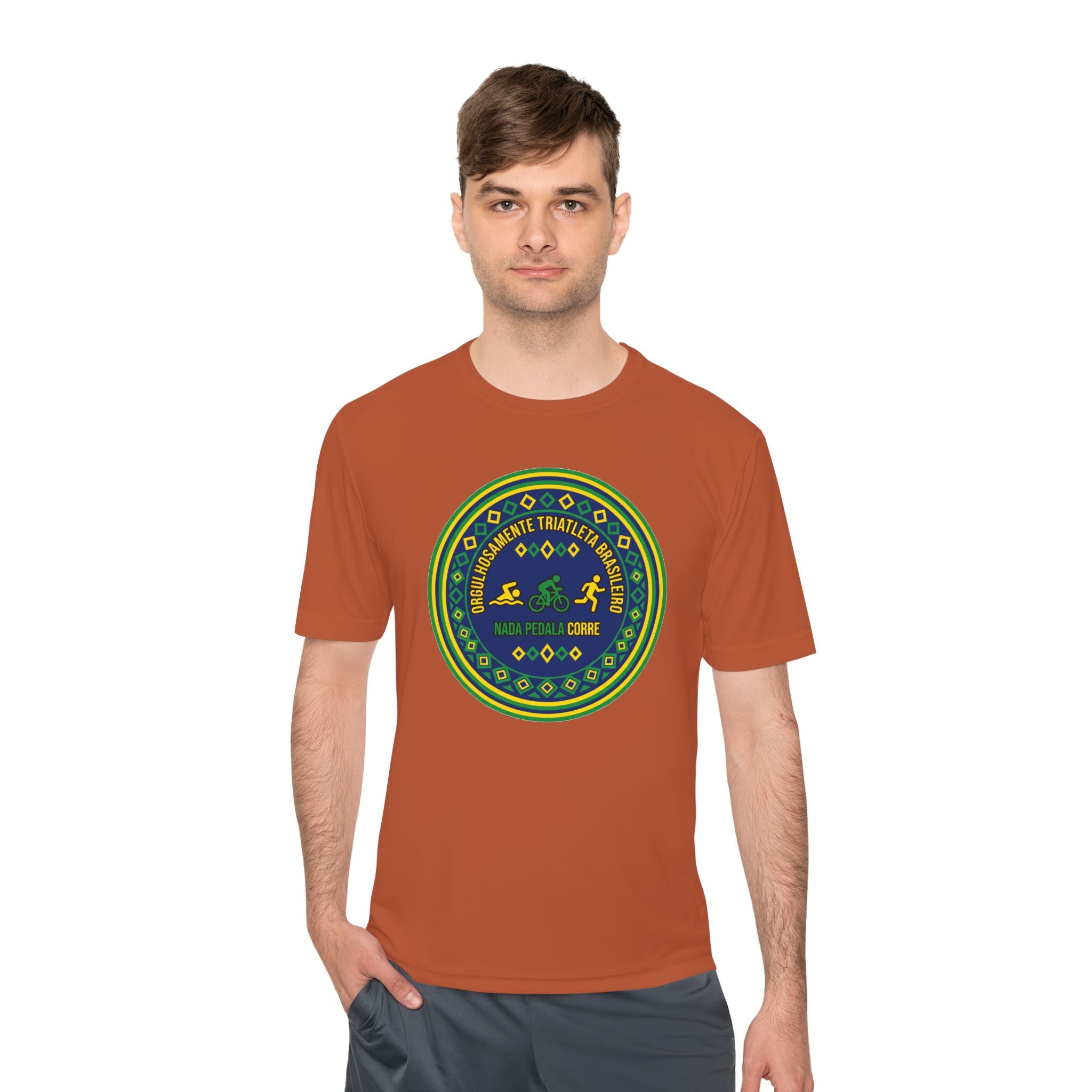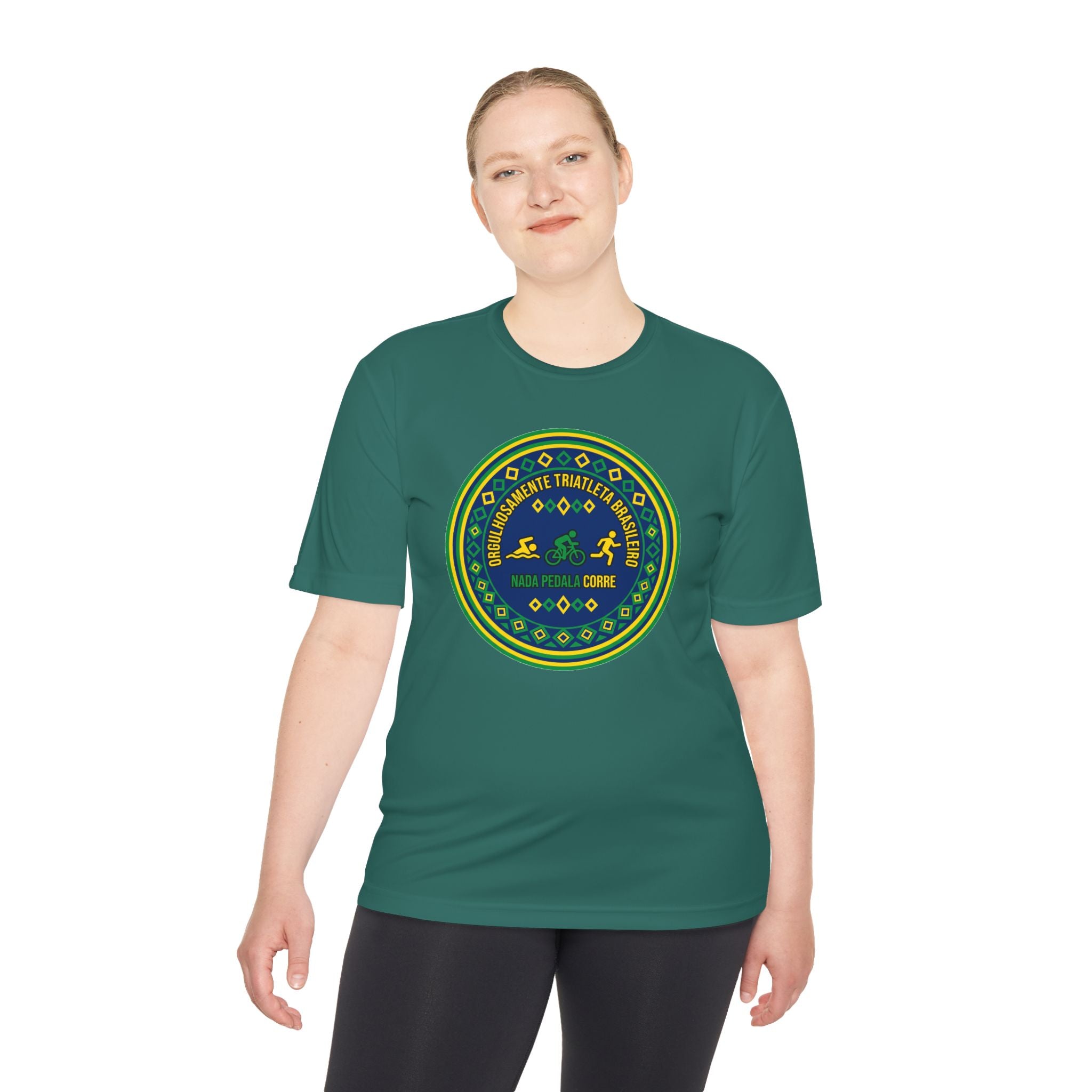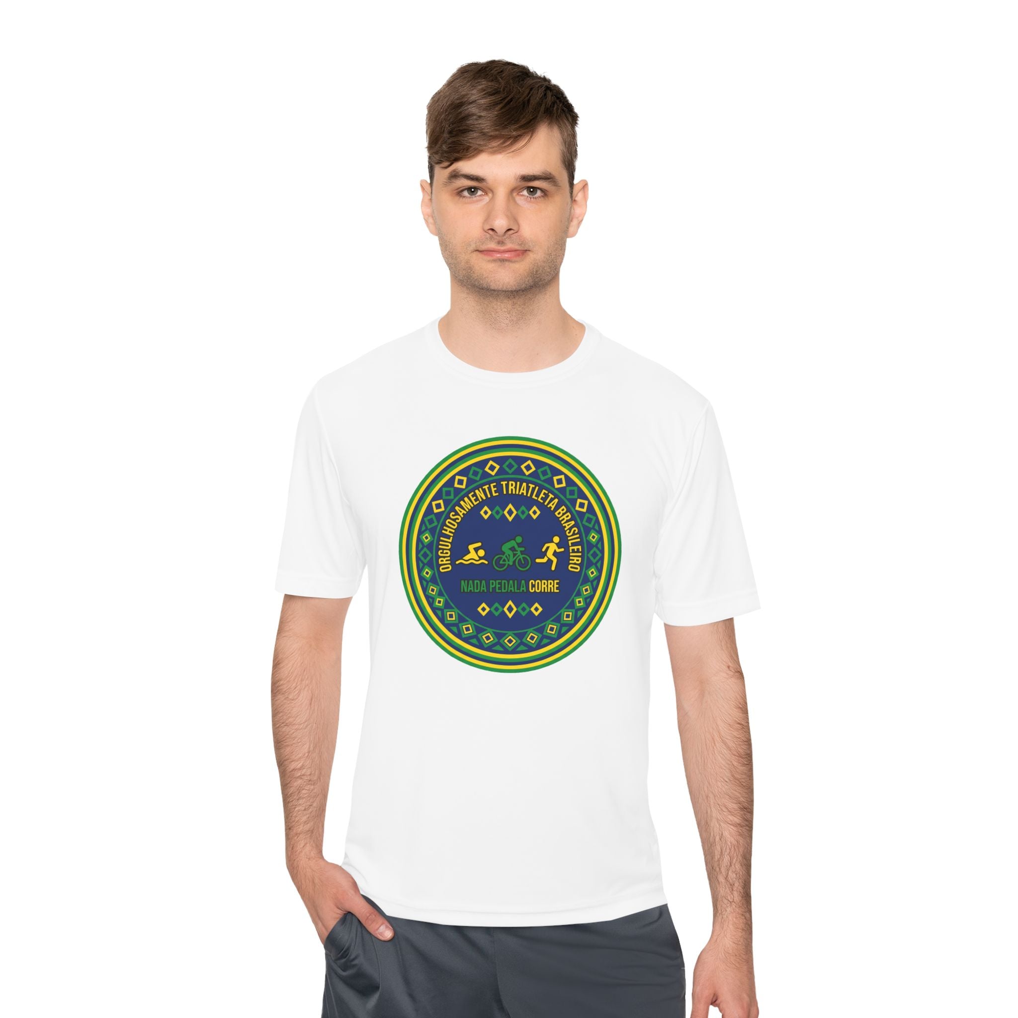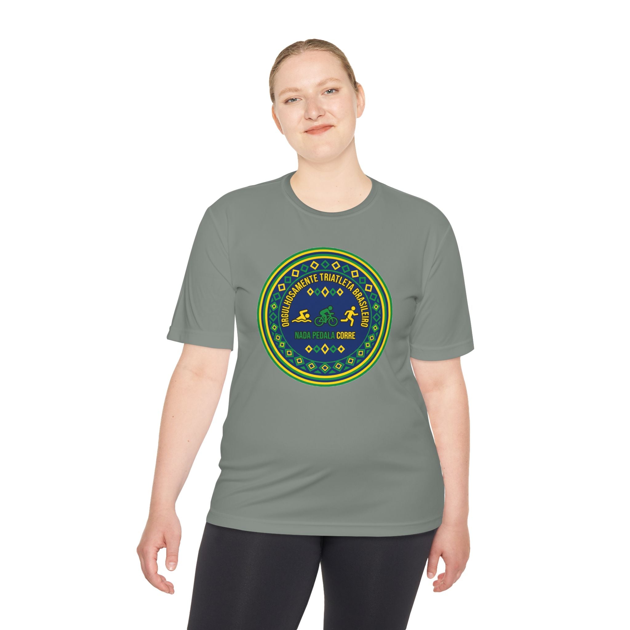 Orgulhosamente Triatleta Brasileiro Moisture-Wicking Performance Tee — Swim Bike Run Brazilian Triathlete Gear