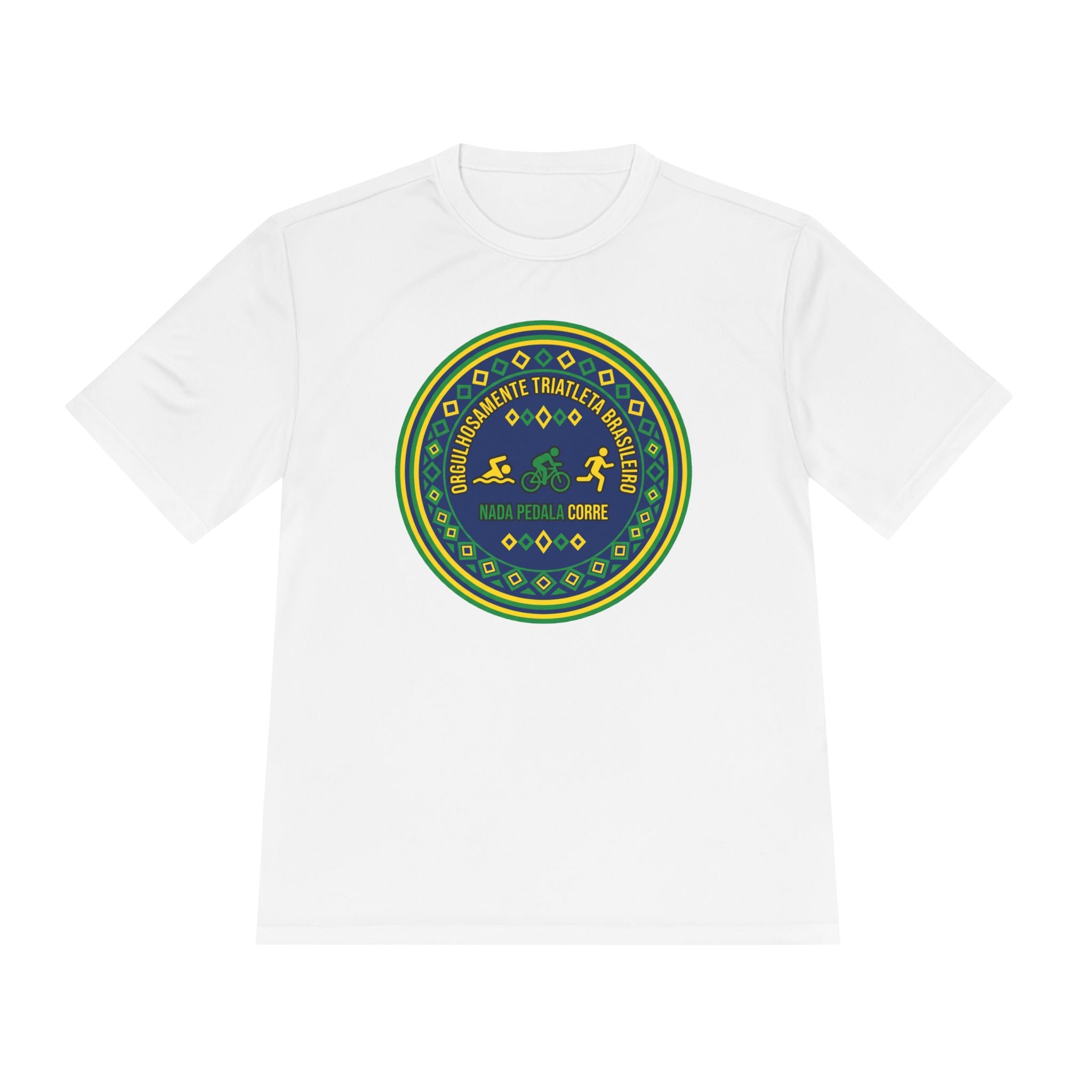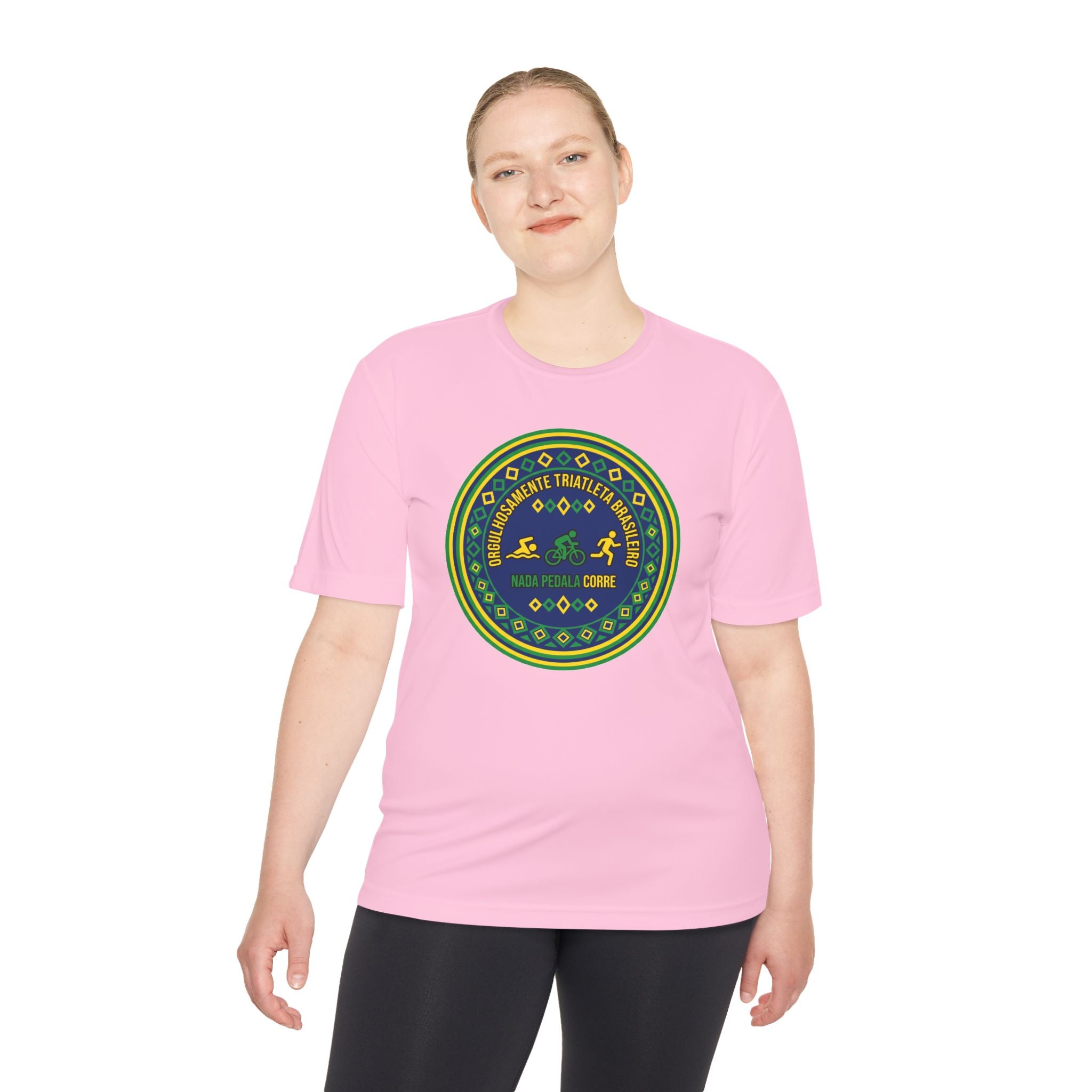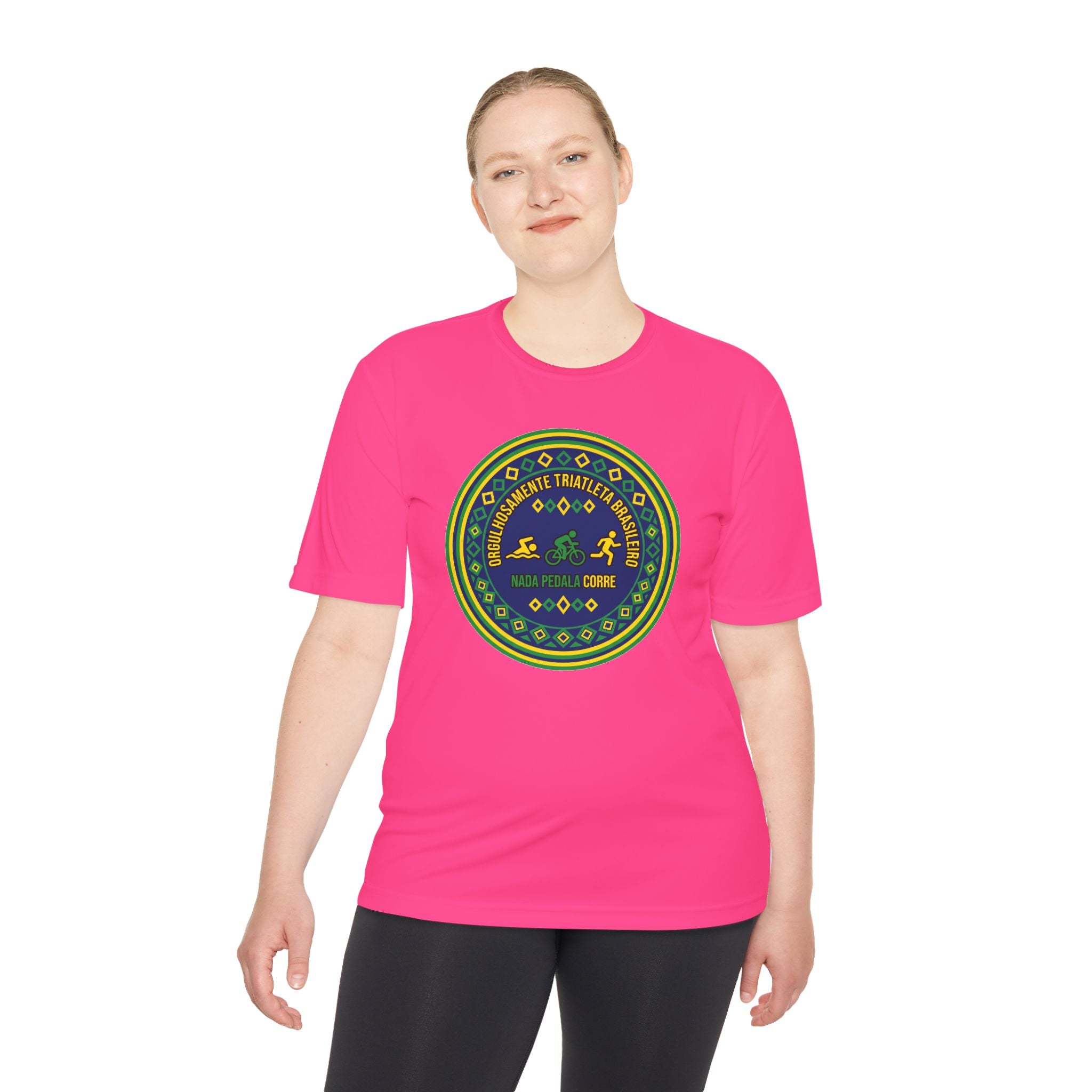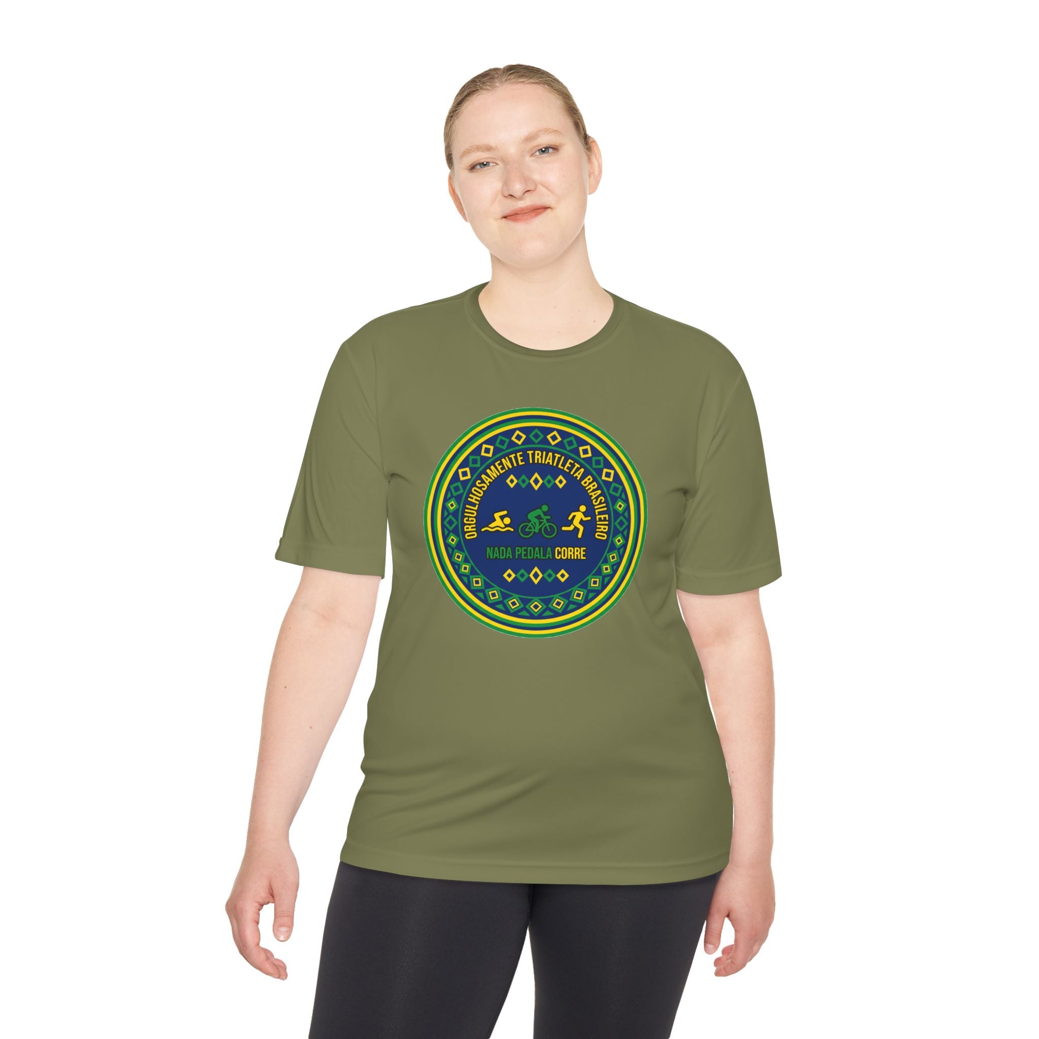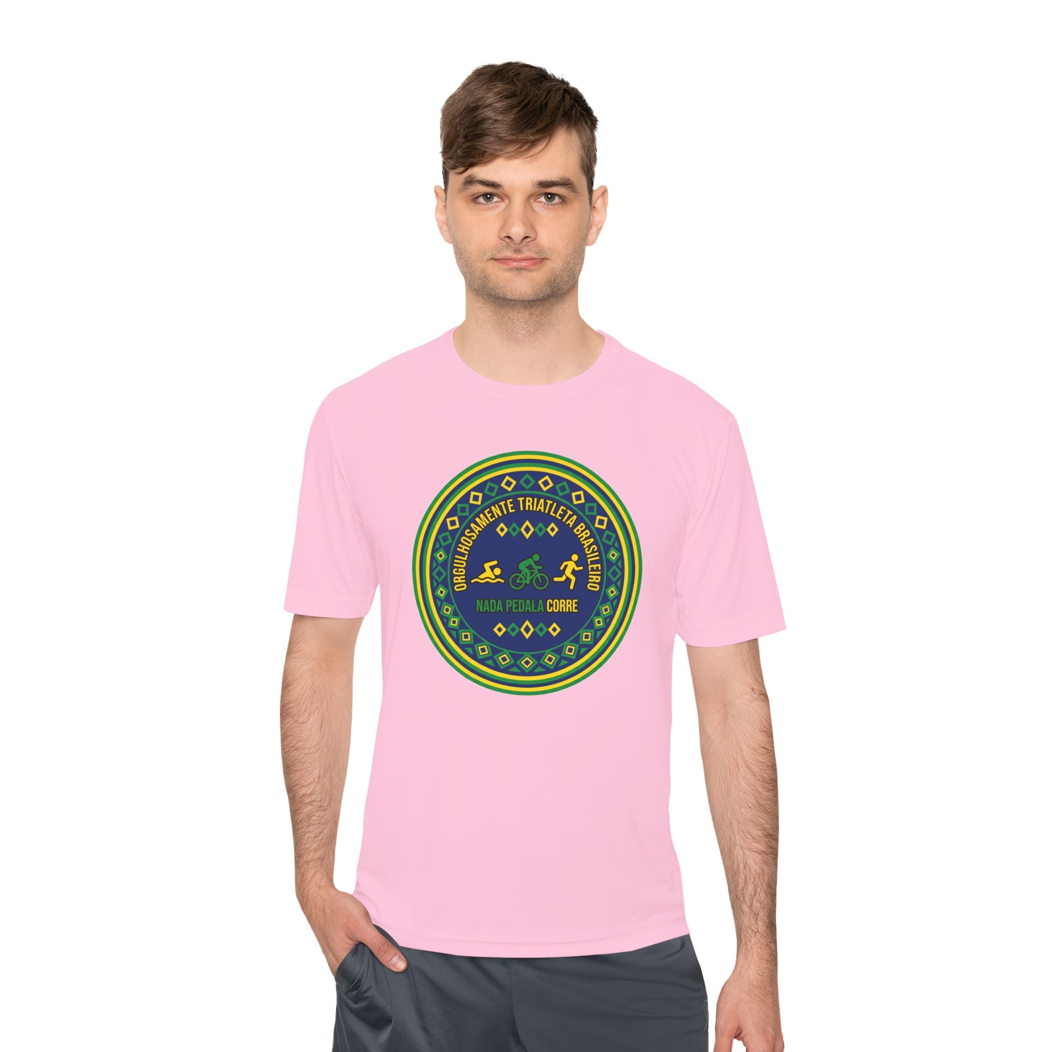 Orgulhosamente Triatleta Brasileiro Moisture-Wicking Performance Tee — Swim Bike Run Brazilian Triathlete Gear
