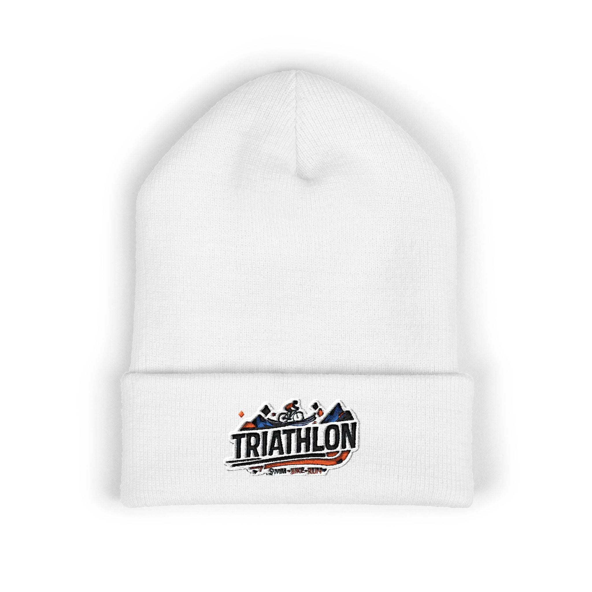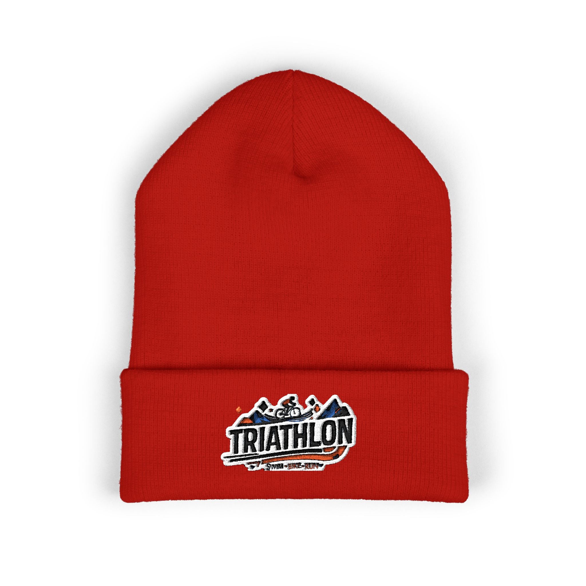 Triathlon Embroidered Cuffed Beanie — Athletic Race Running Swimming Cycling Winter Hat