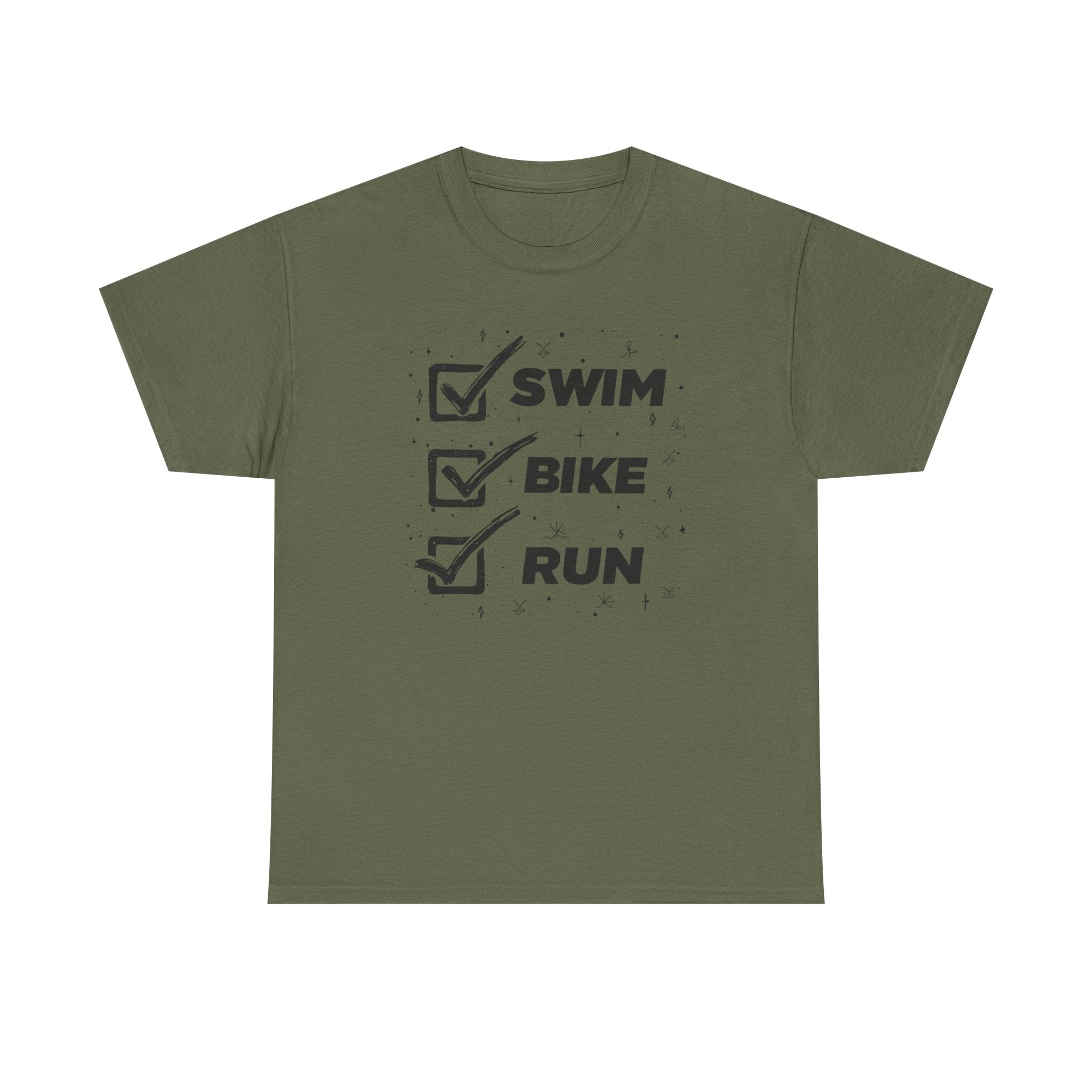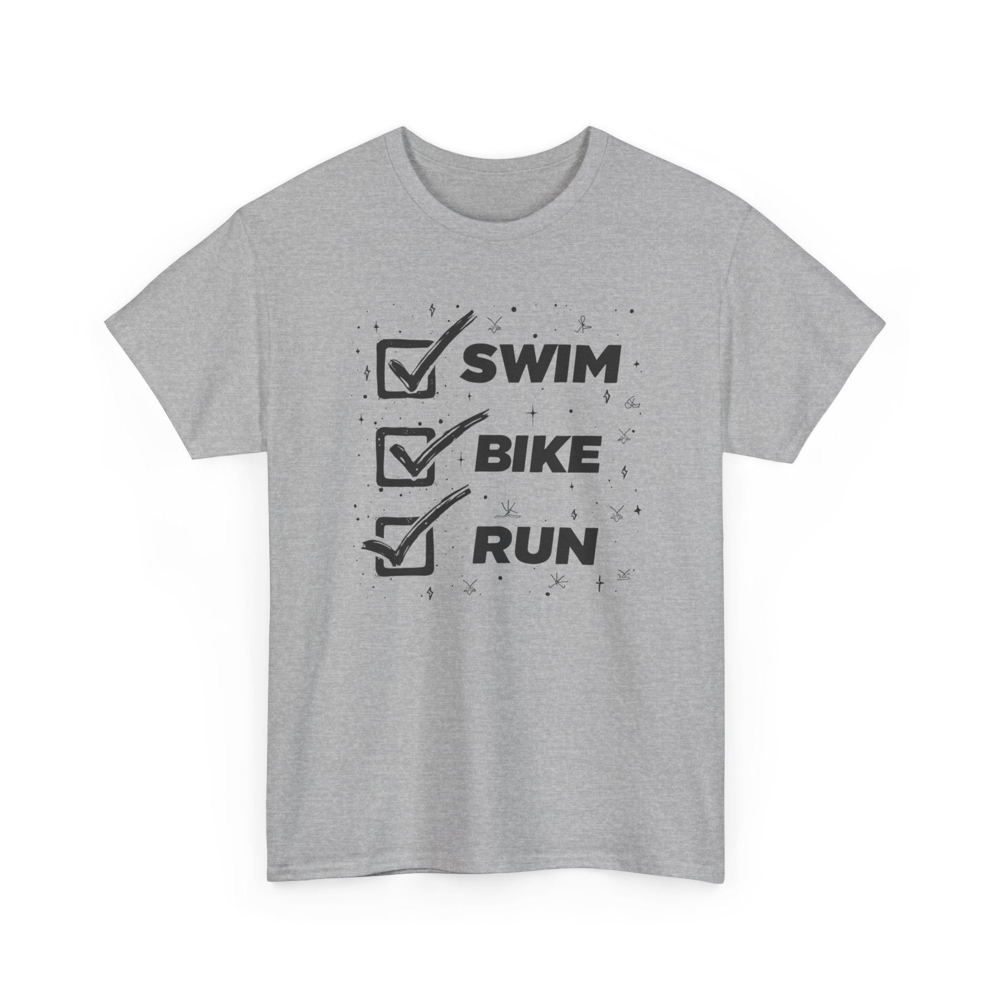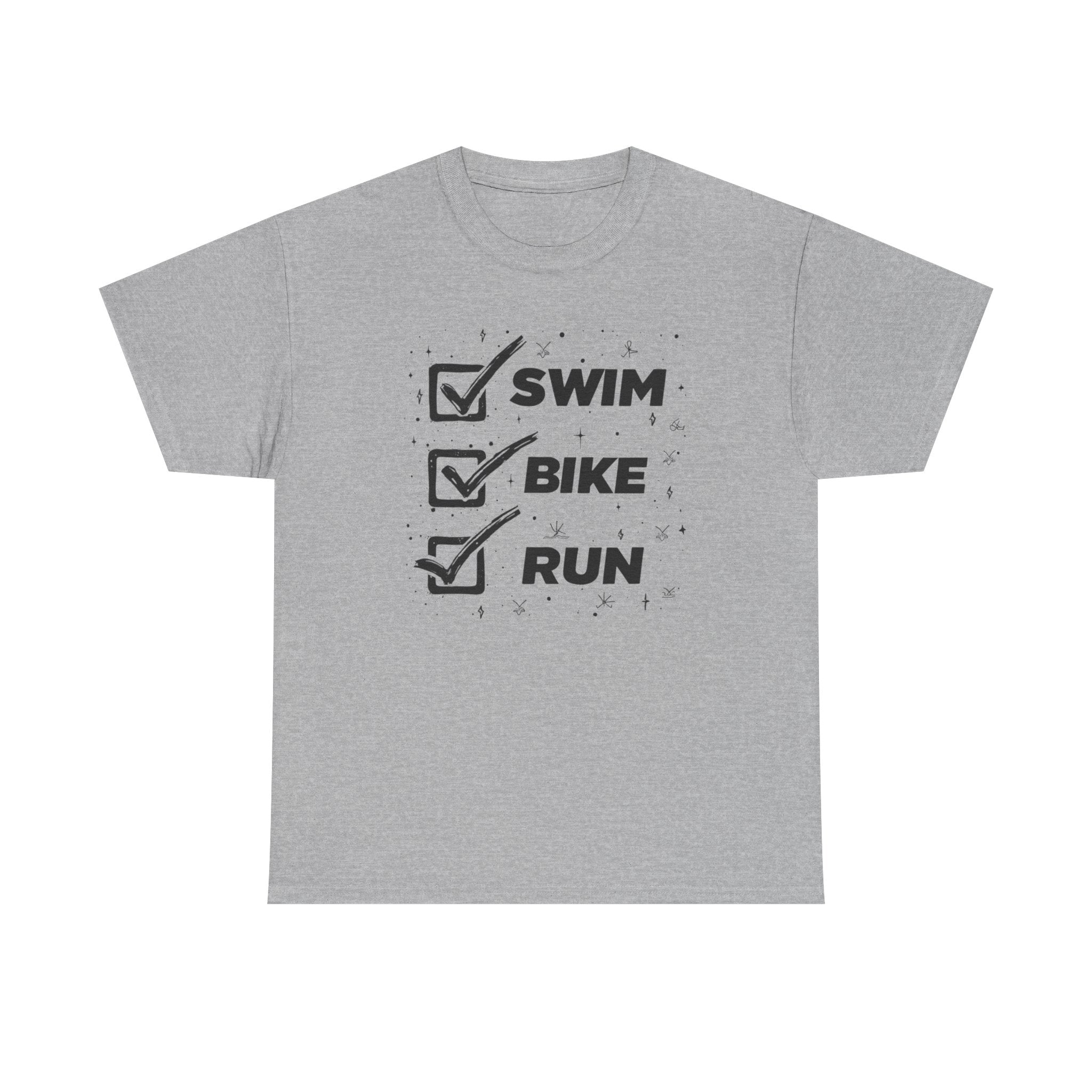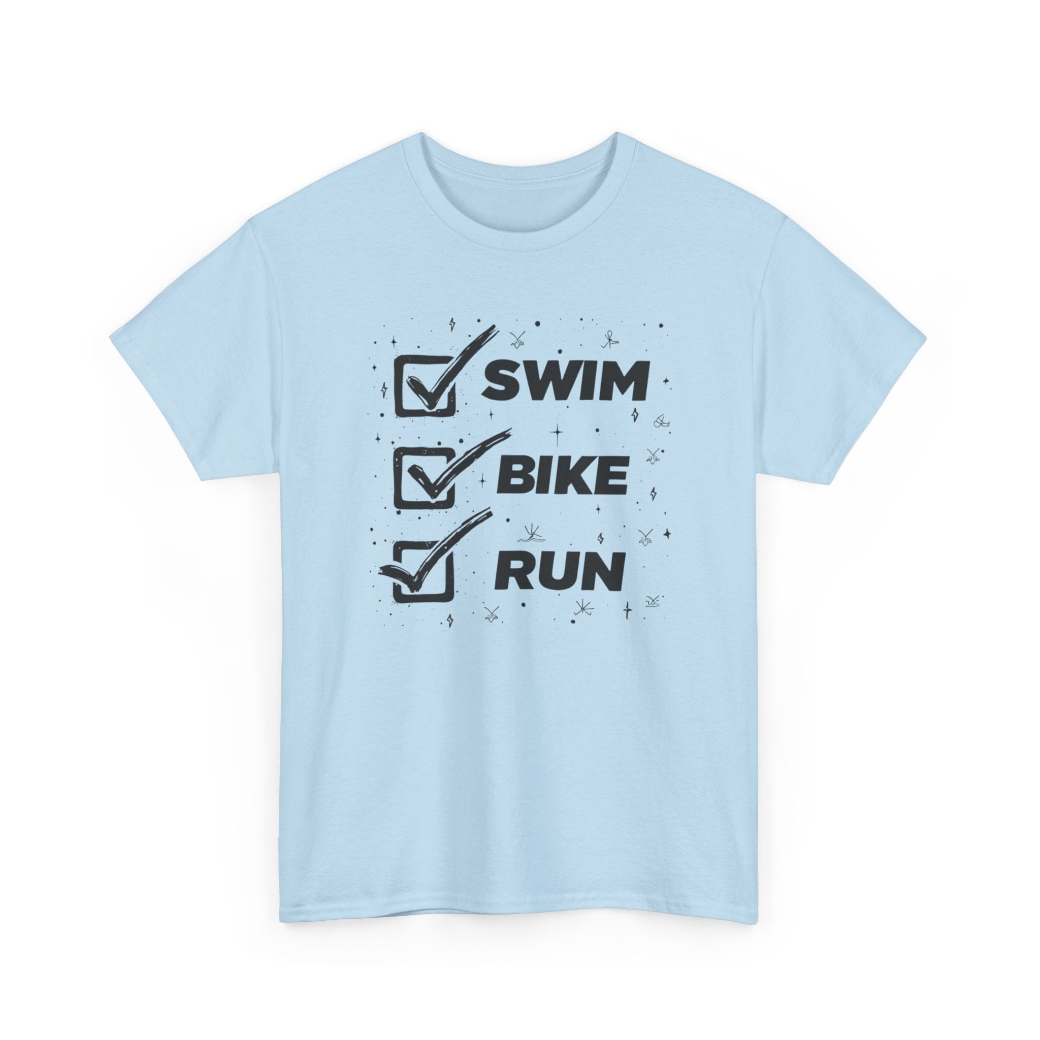 Active Lifestyle Checkliste T-Shirt – Schwimmen, Radfahren, Laufen, Fitness-Shirt, Sportbekleidung, Fitnessbekleidung, Geschenk für Sportler