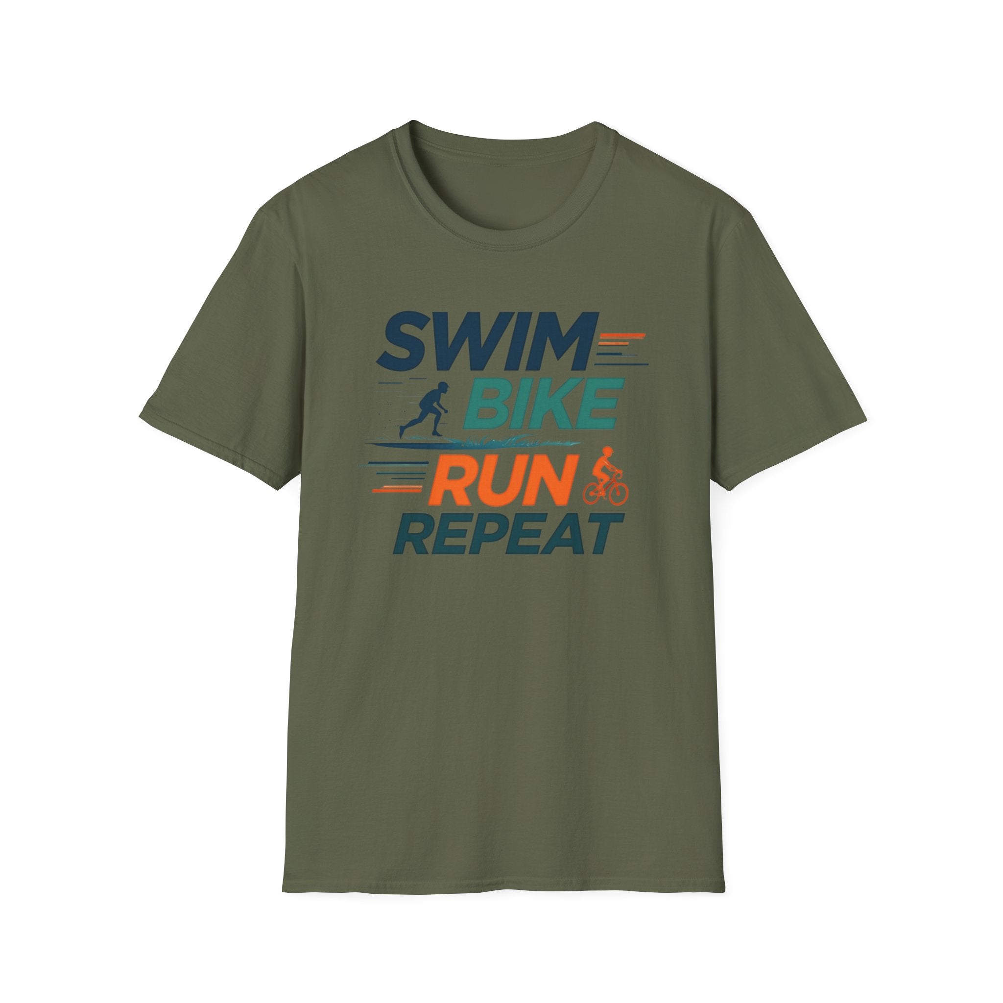 Active Lifestyle Unisex T-Shirt - "Swim Bike Run Repeat" - Sportbekleidung, Fitnessbekleidung, Workout-Shirt, Geschenke für Sportler