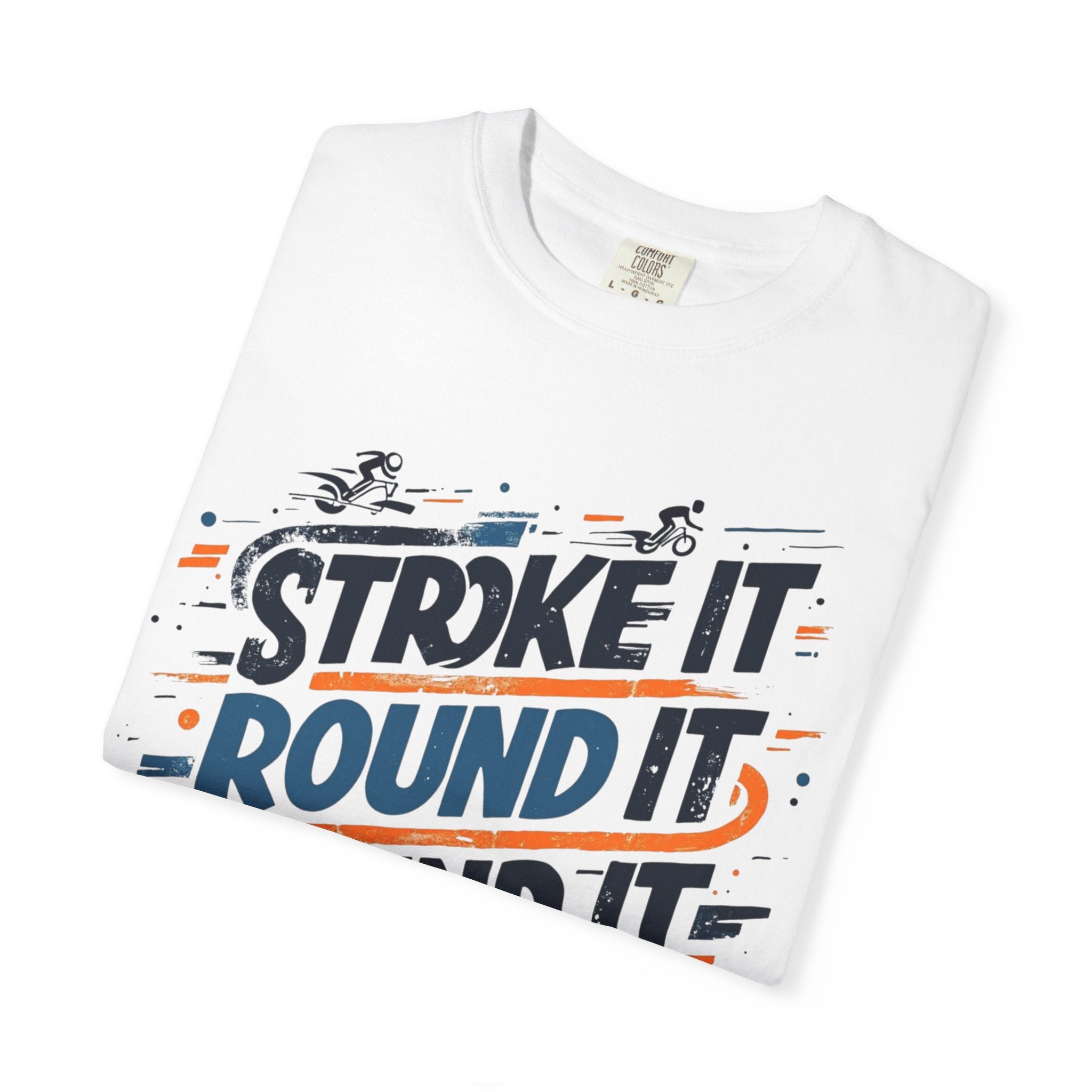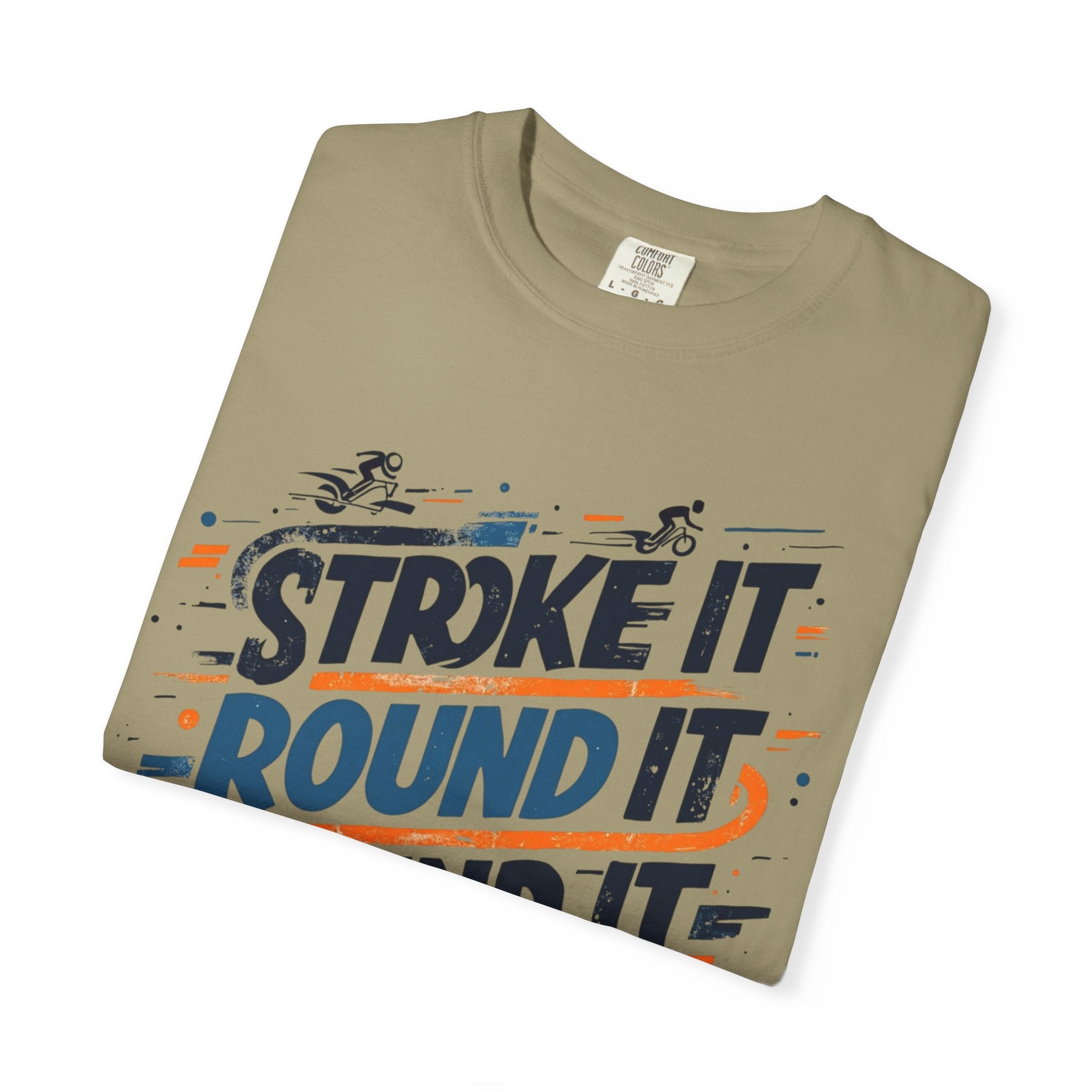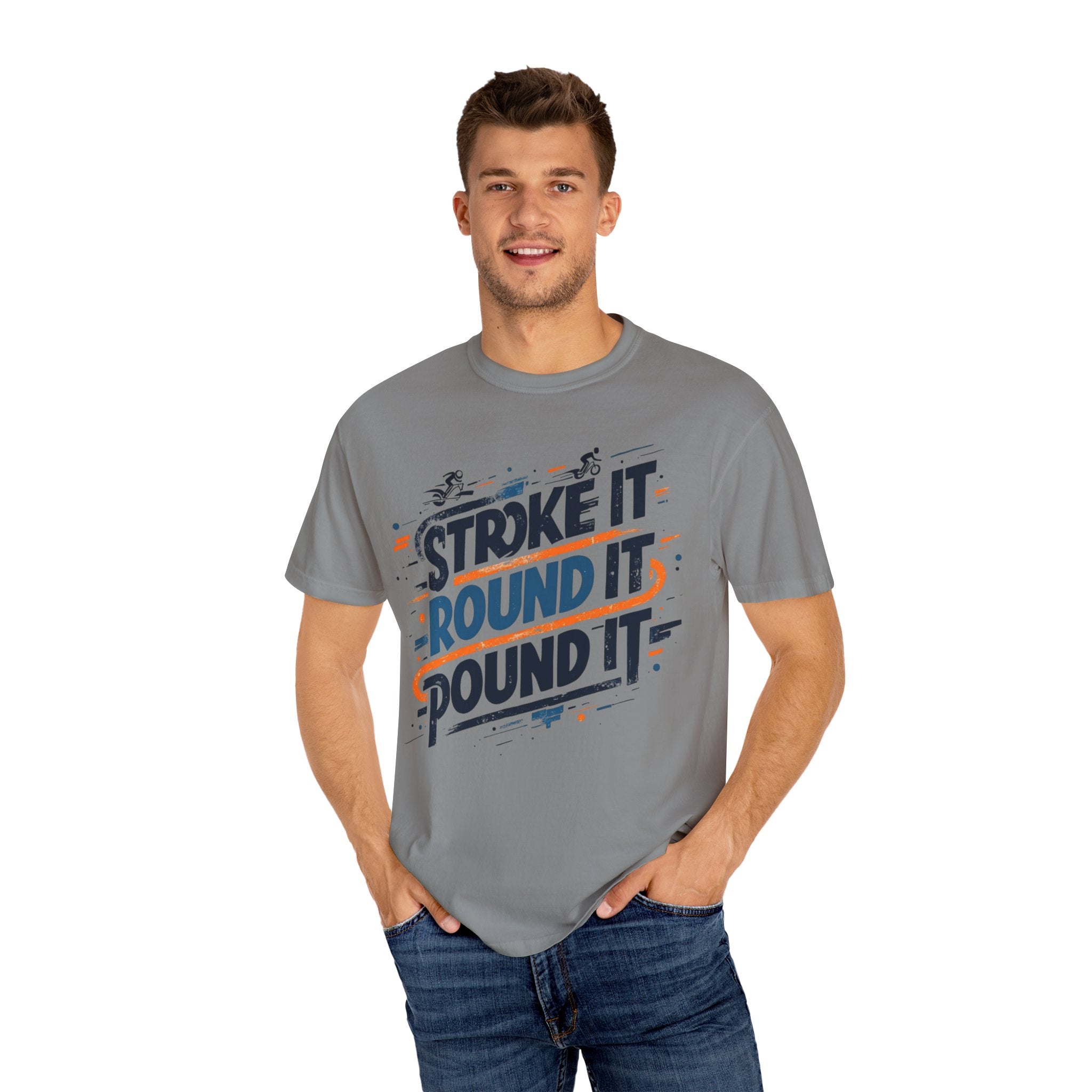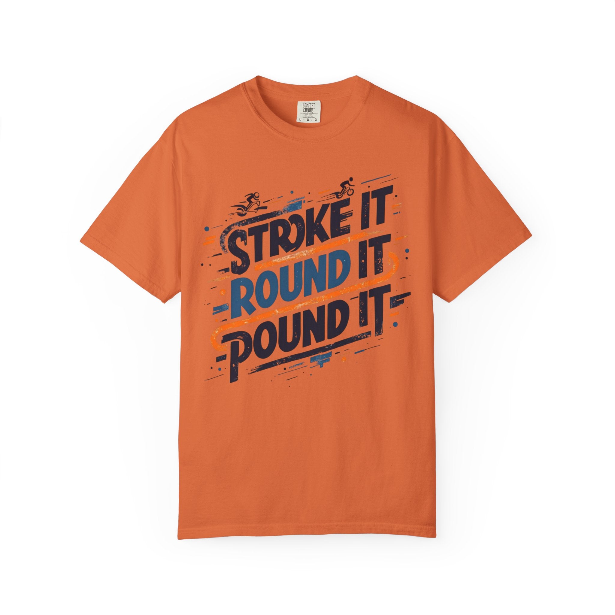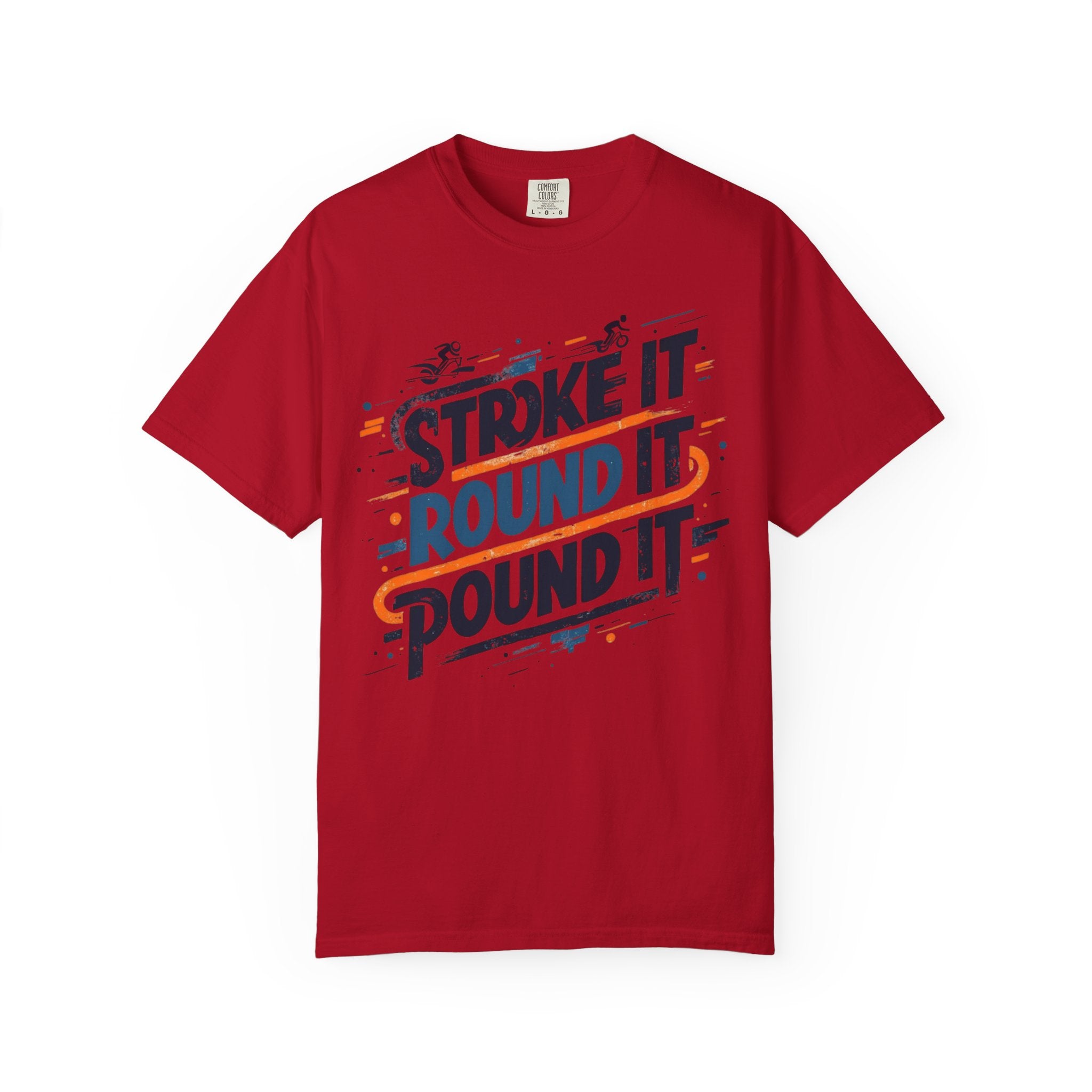 Stückgefärbtes T-Shirt mit „Strike It, Round It, Pound It“-Design – perfekt für Sportfans, Freizeitkleidung, Geschenke, Geburtstagsfeiern, [...]