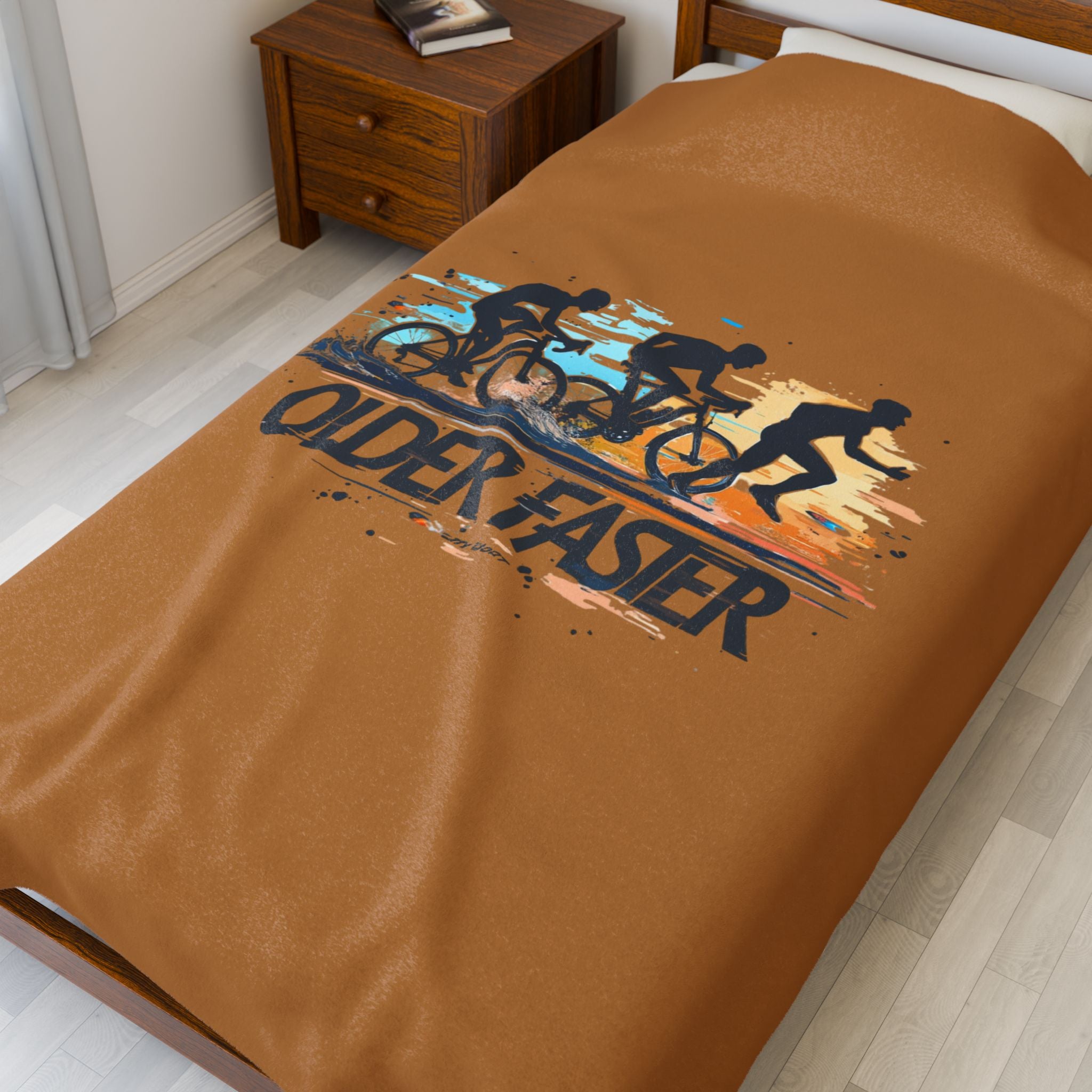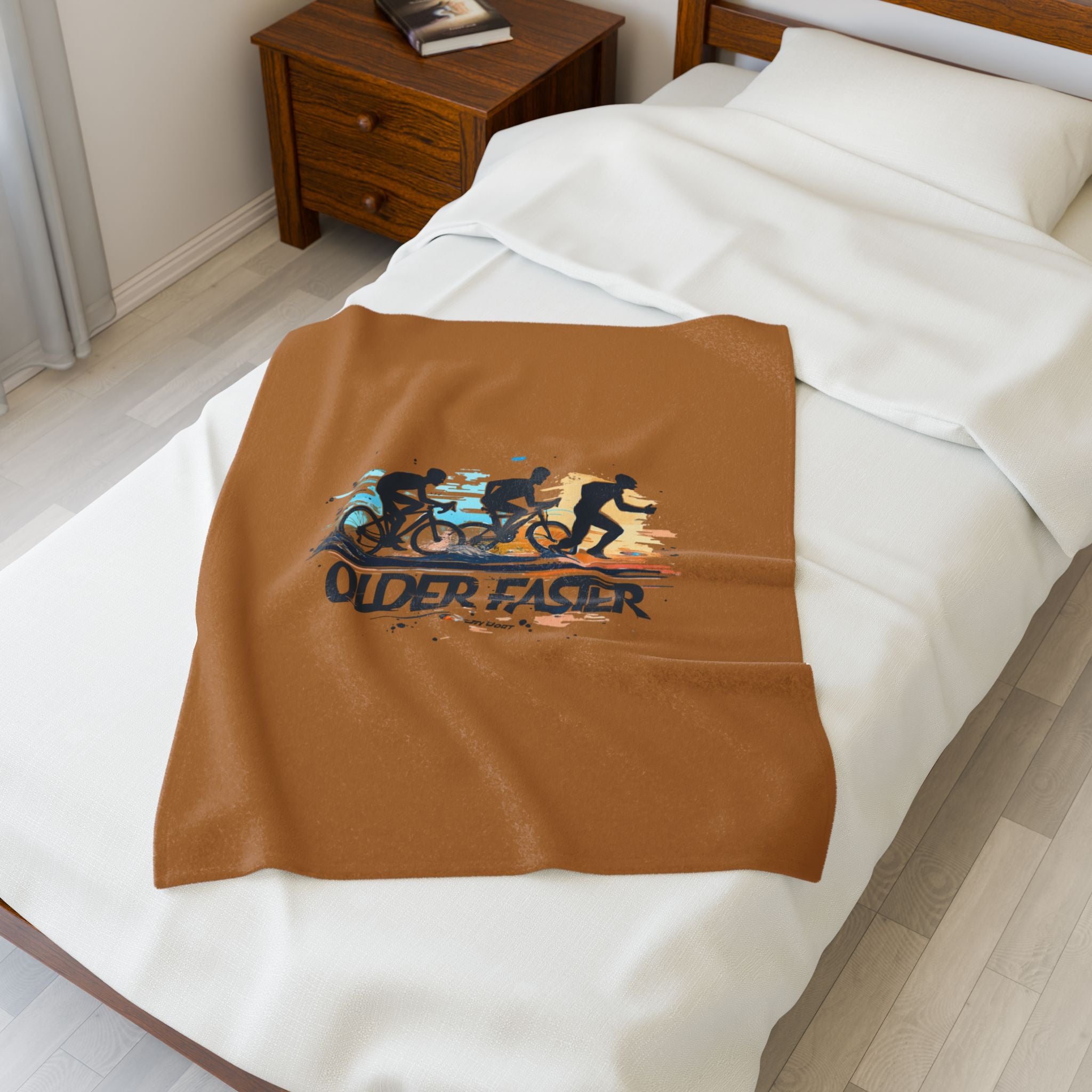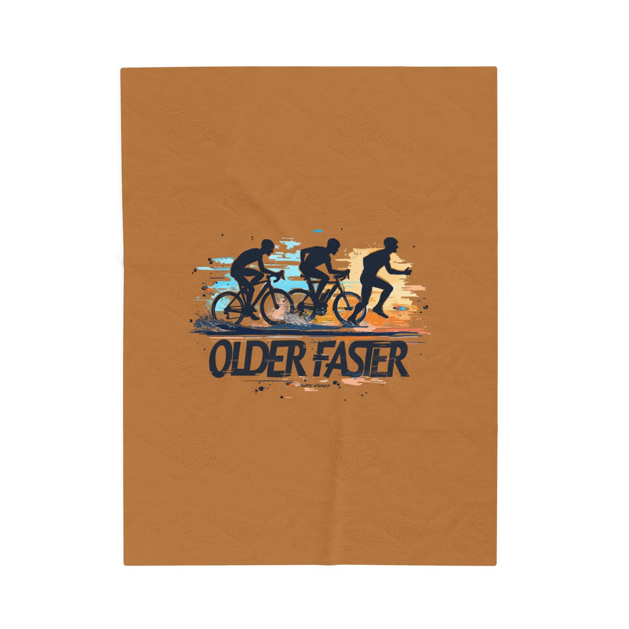 Older Faster Cycling Velveteen Plush Blanket — Funny Retro Bike Quote Throw