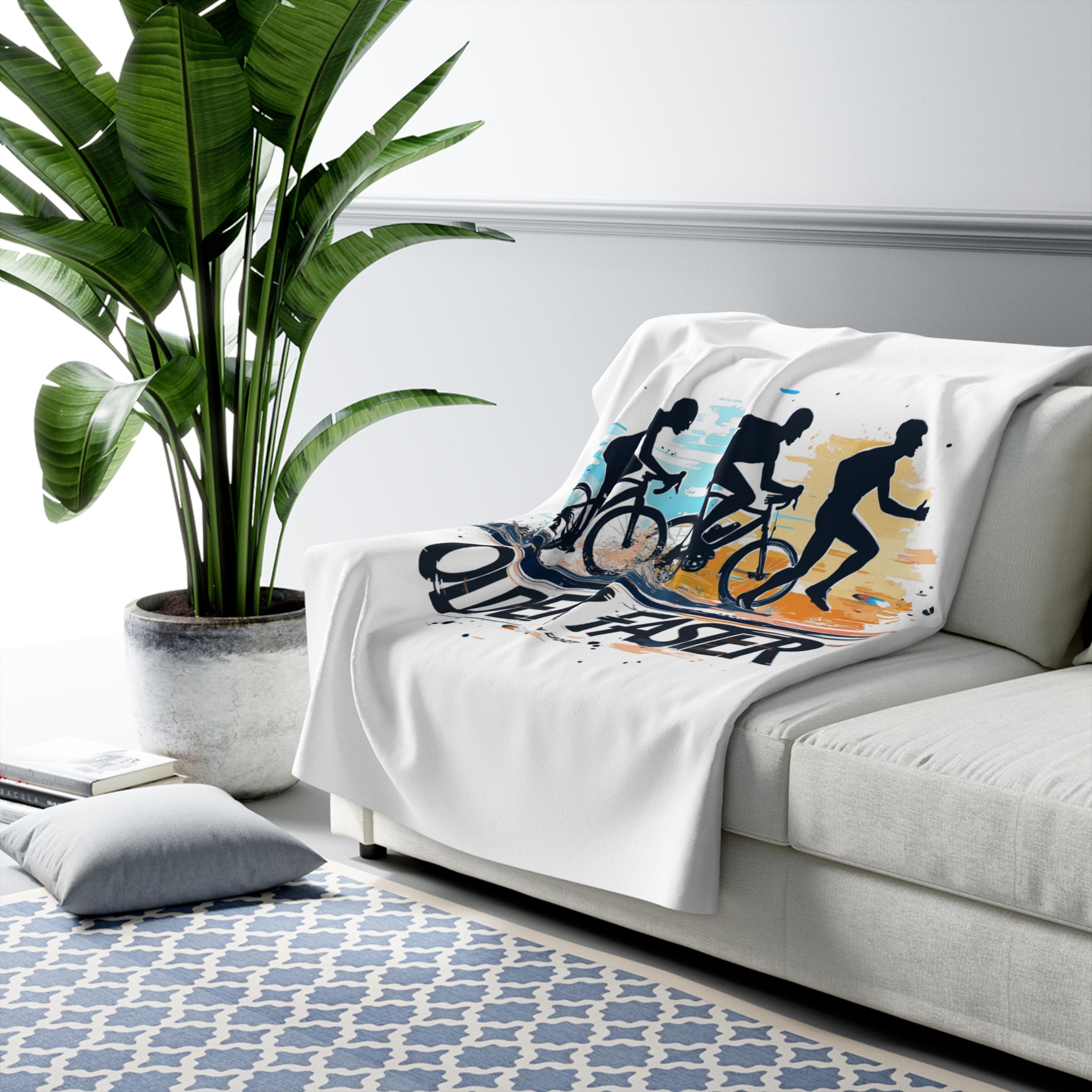 Wrap up in a warm, spirited moment. This sherpa fleece blanket pairs a soft, velvety plush backside with a one-sided graphic that celebrates movement and grit—three silhouettes racing across a sunrise-smeared backdrop with the bold slogan "OLDER FASTER." It's made from thick 100% polyester for lasting softness and thermal comfort, with hemmed edges for durability and a cozy 3mm pile that invites evening rides, post-race recovery, or slow mornings on the couch. The neutral sherpa interior and vibrant print make it feel lived-in right away—an honest companion for anyone who measures life in miles and milestones.