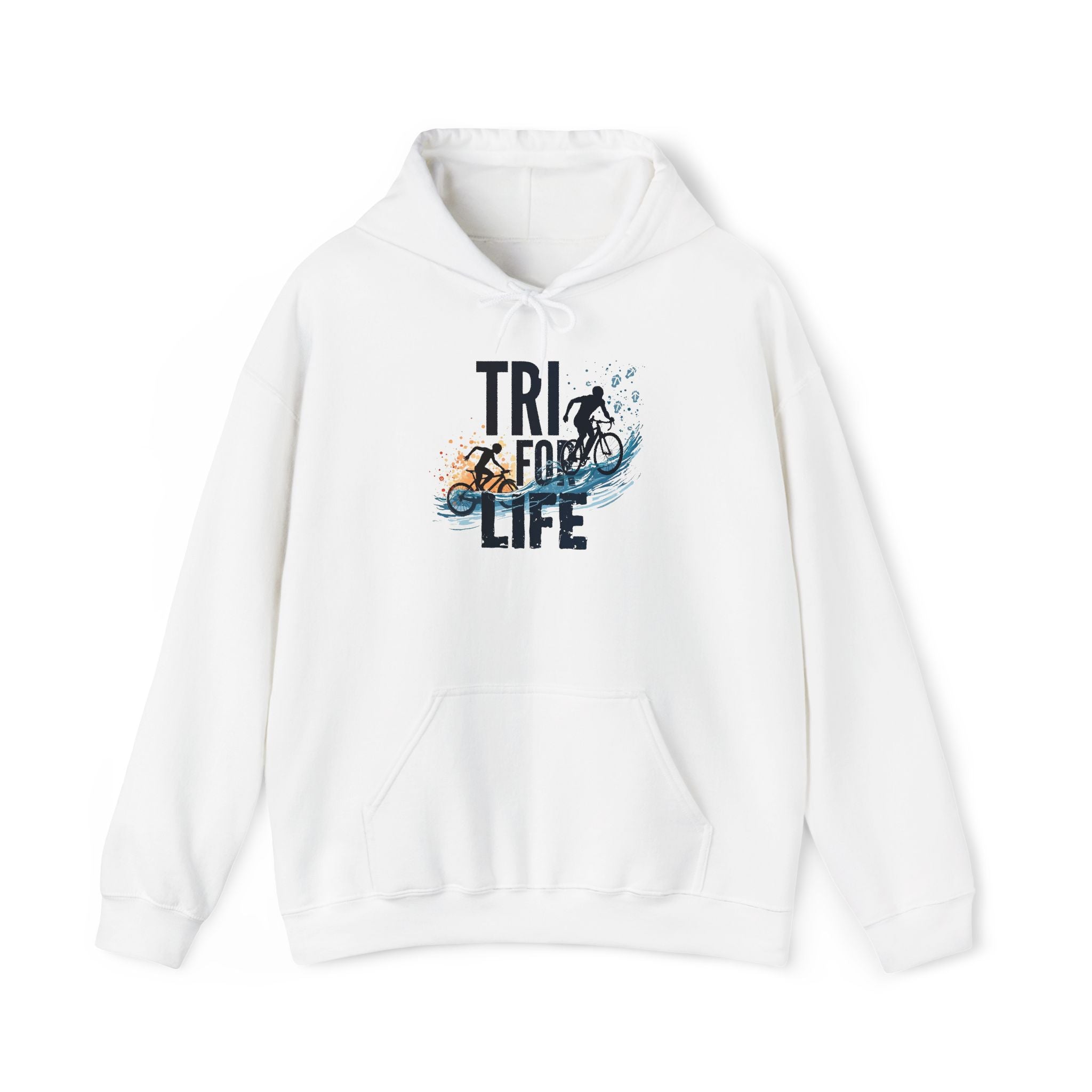 Sudadera con capucha de entrenamiento de triatlón: 50/50 algodón y poliéster con gráfico de natación, ciclismo y carrera.