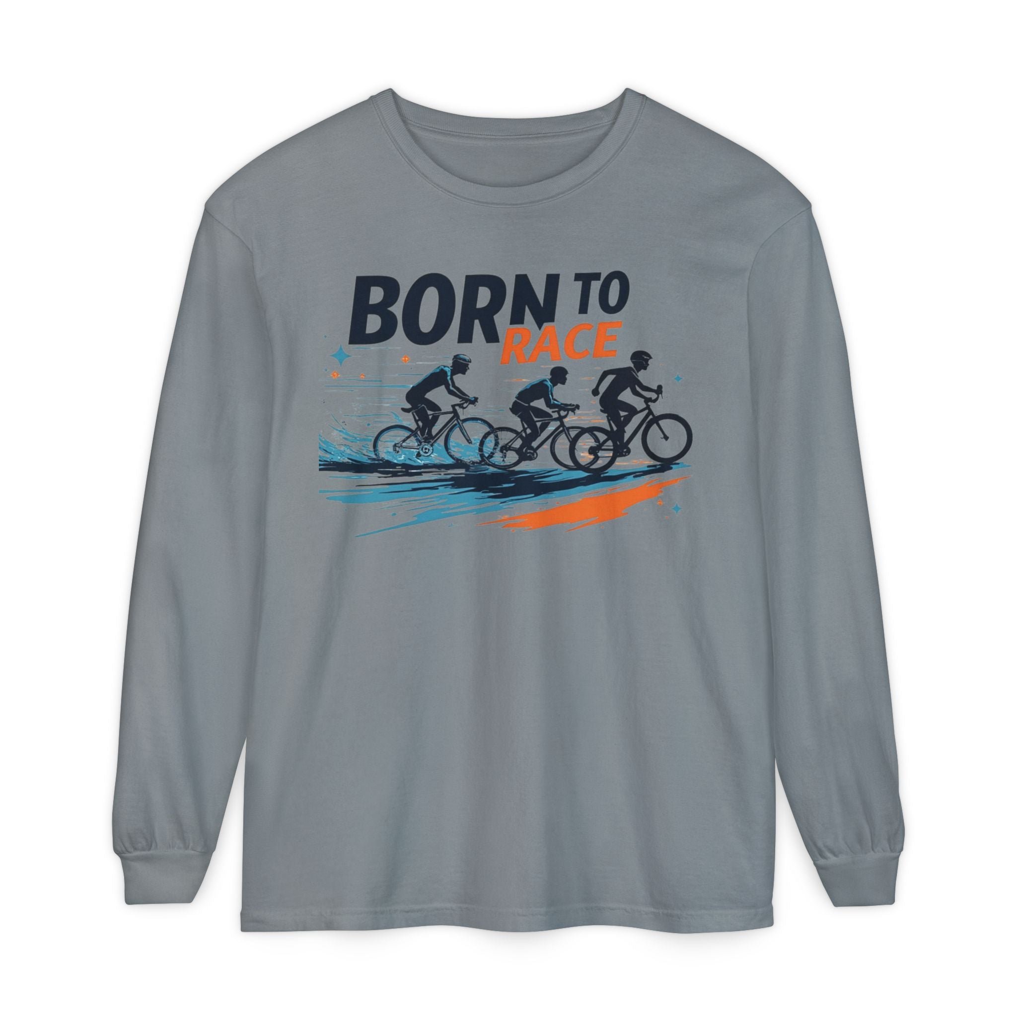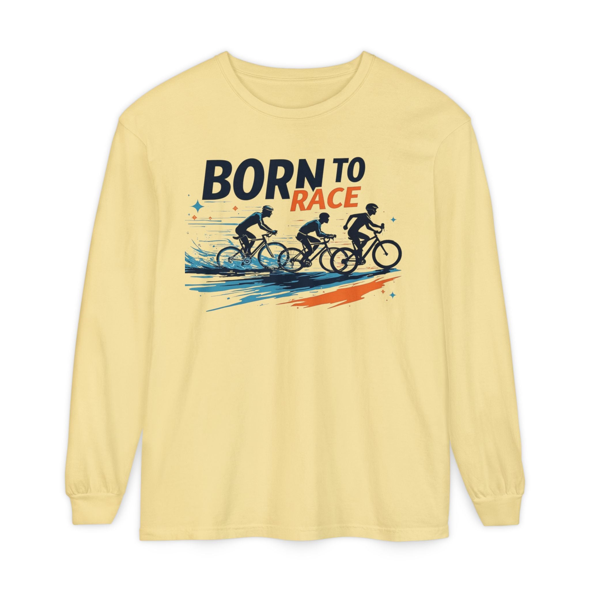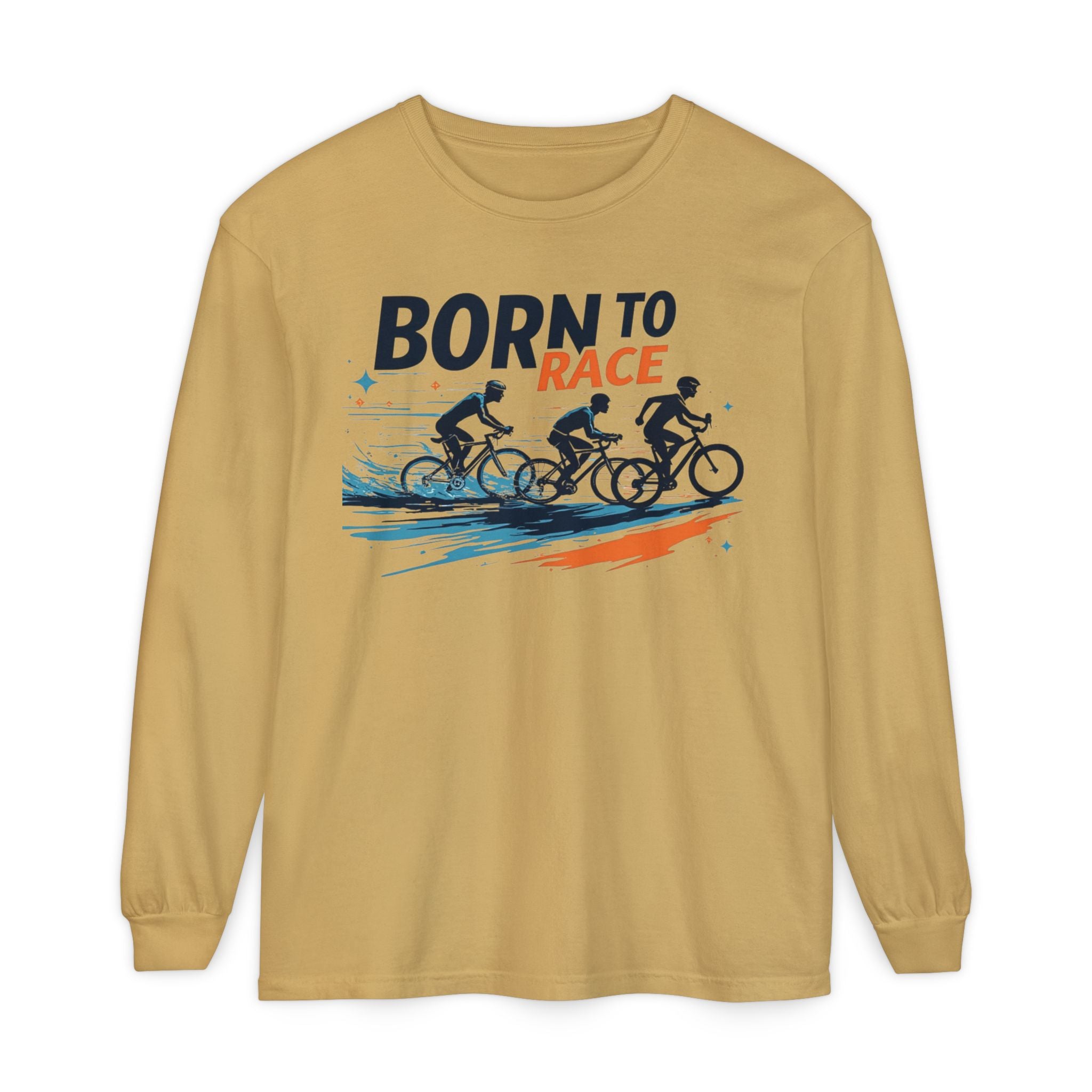 Born to Race Vintage Cycling Long Sleeve Shirt - 100% Ring-Spun Cotton, Lightweight Training Top for Cyclists, Comfort Colors Classic Fit with Ribbed Cuffs