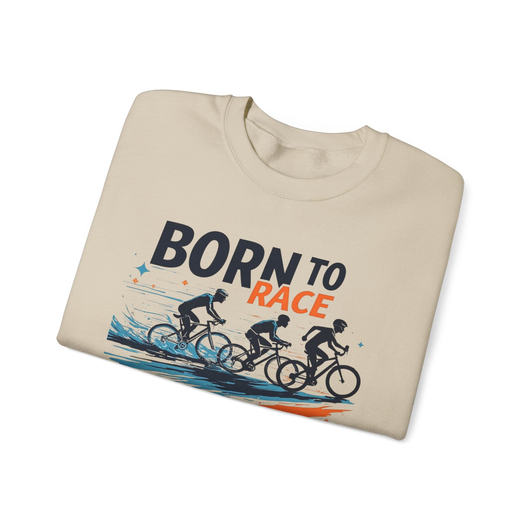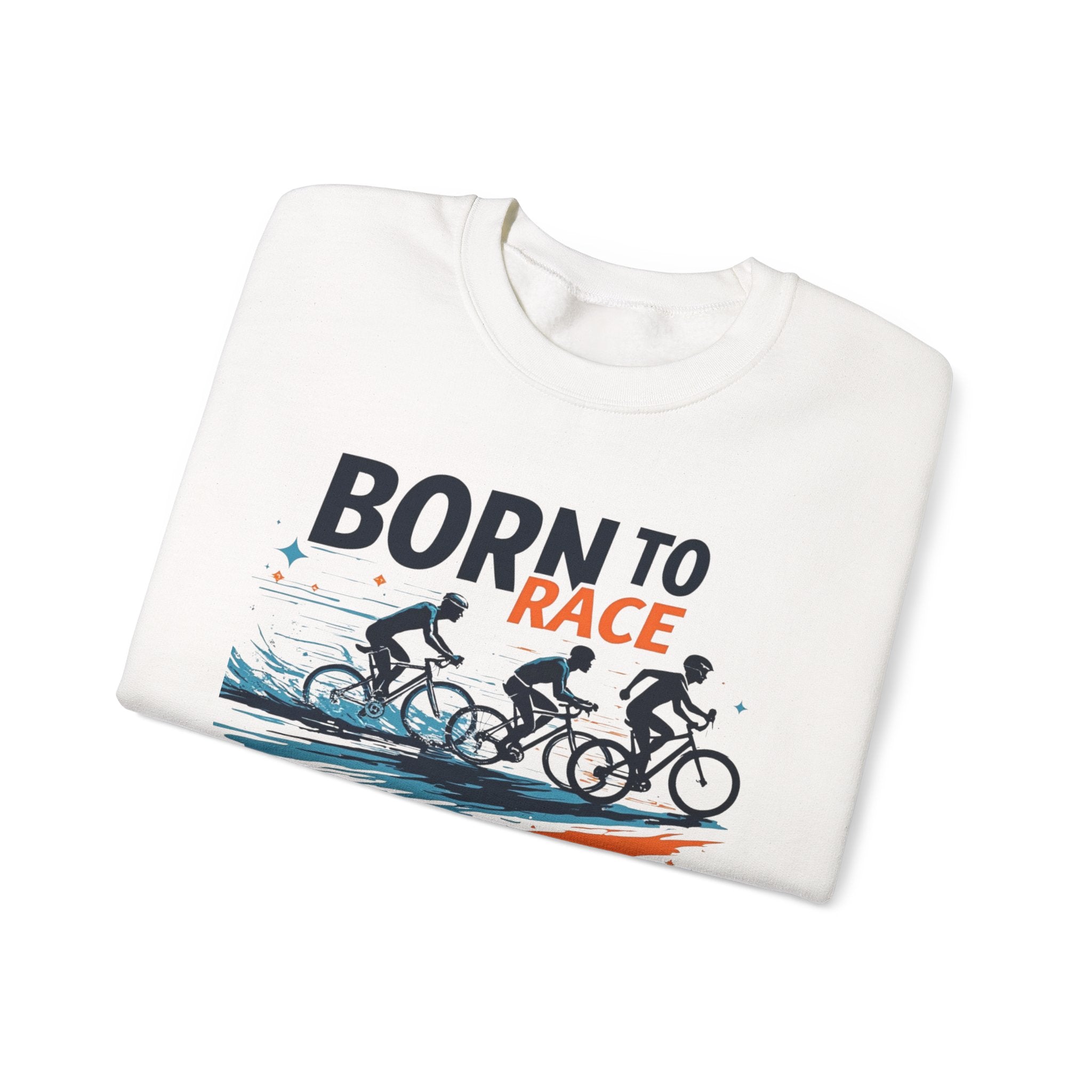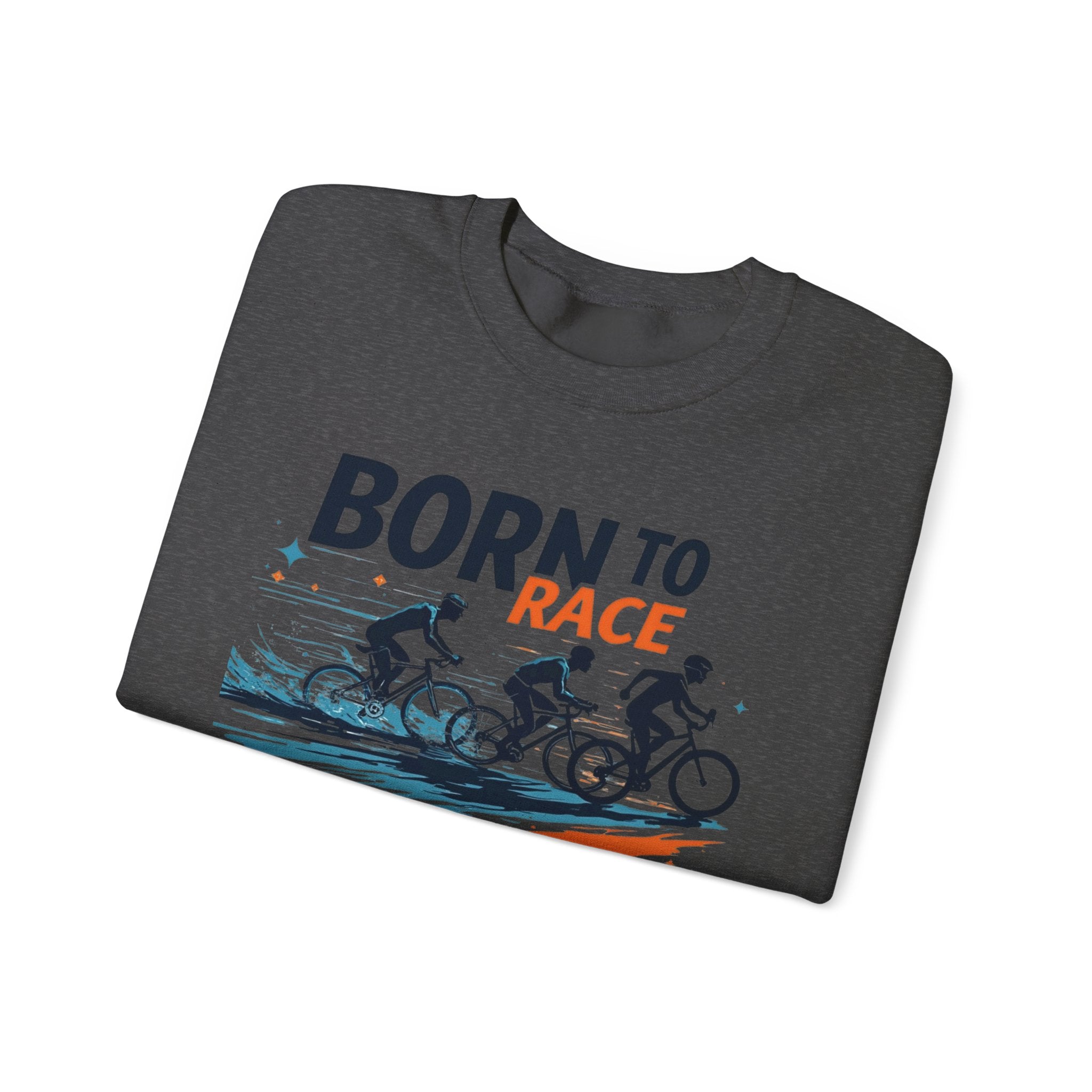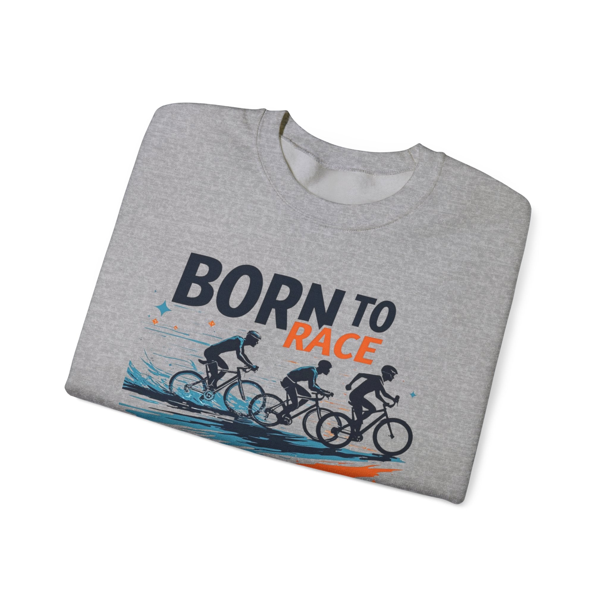 Eco-Conscious Crewneck Sweatshirt "Born to Race" Cycling Graphic - Triathlon Training Pullover 50/50 Cotton-Poly Blend Durable Breathable Apparel