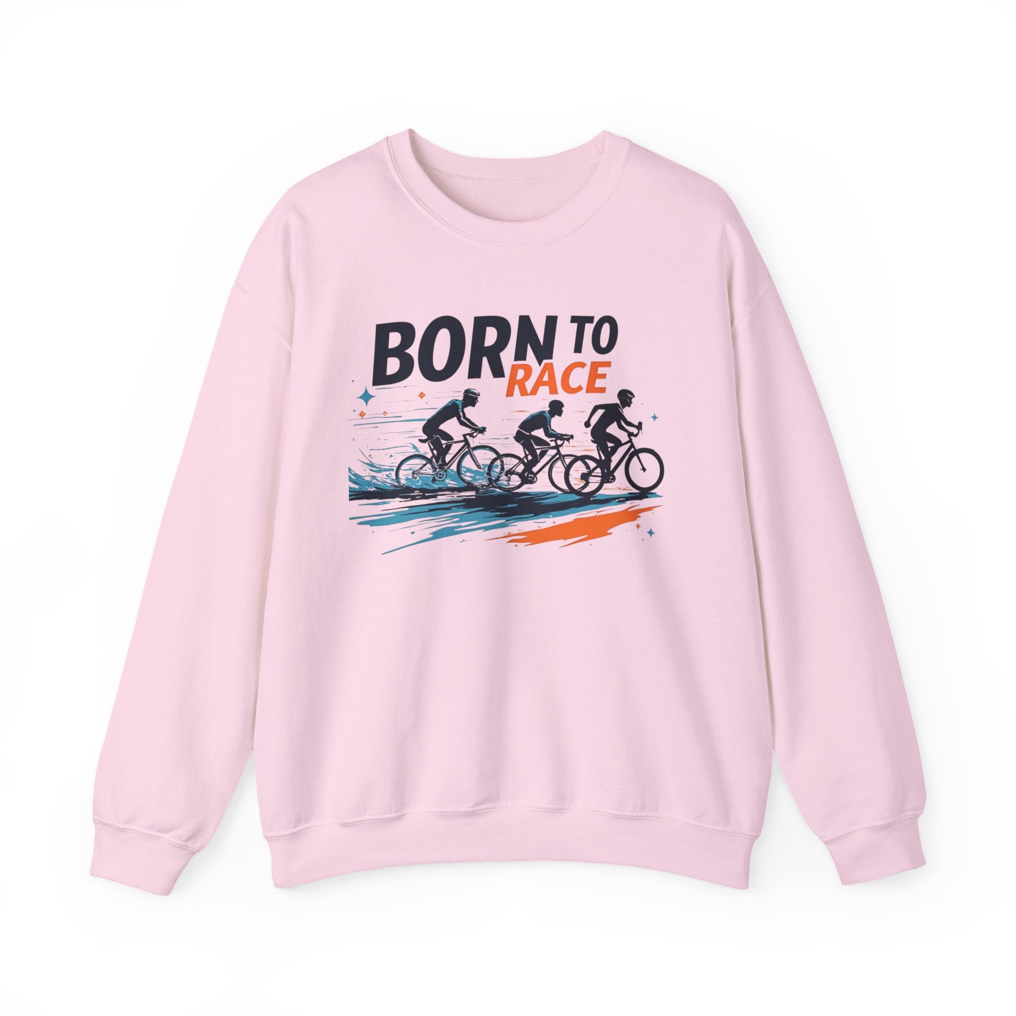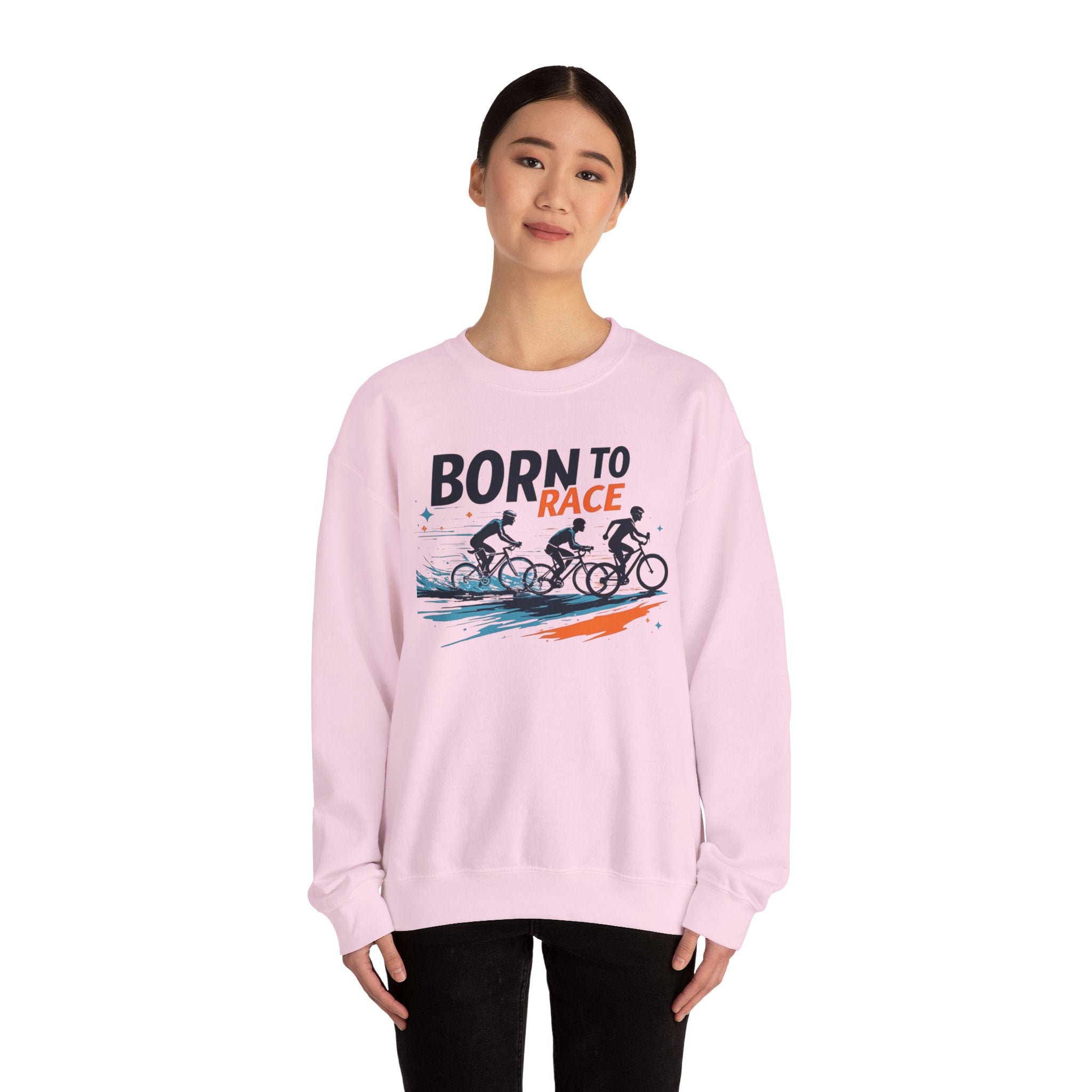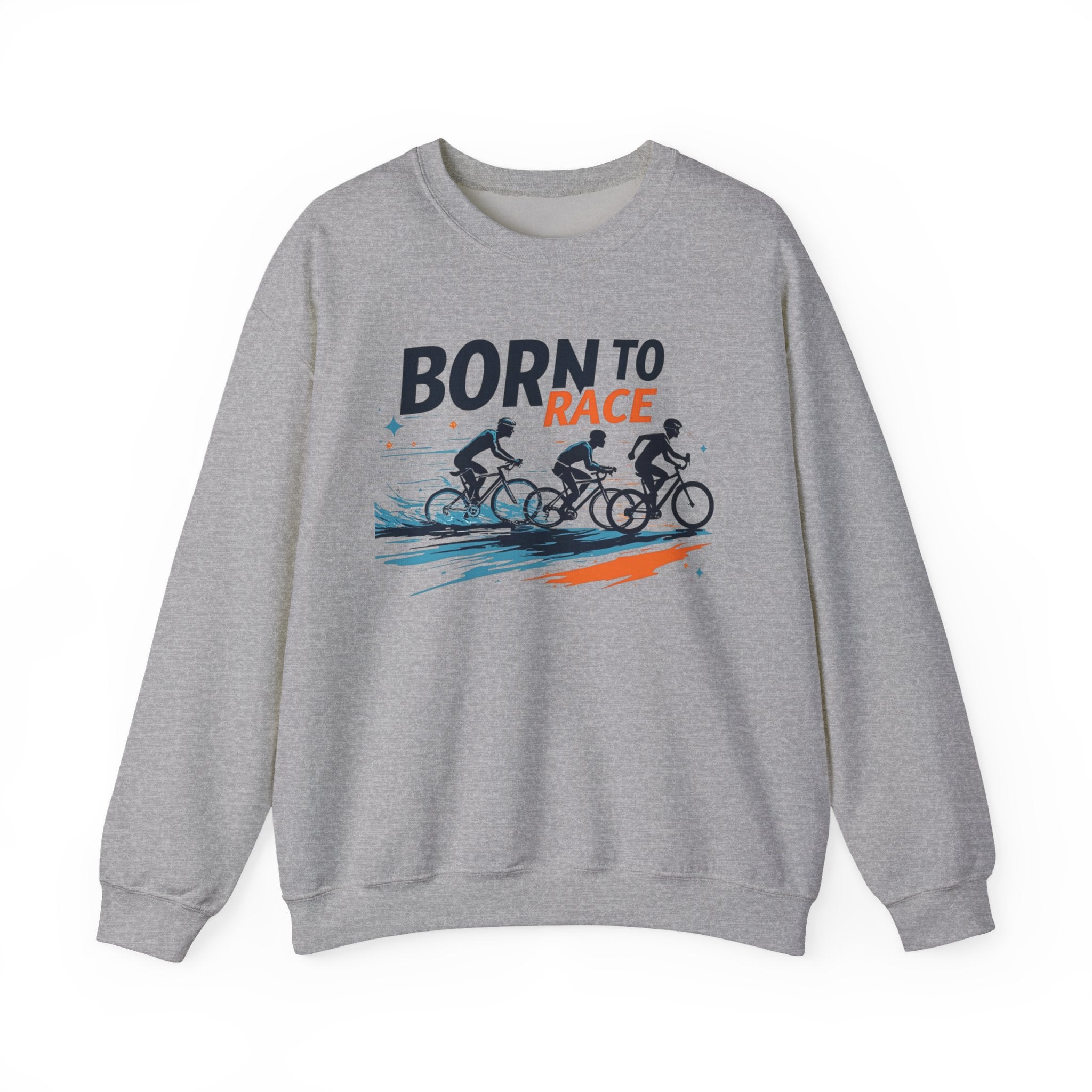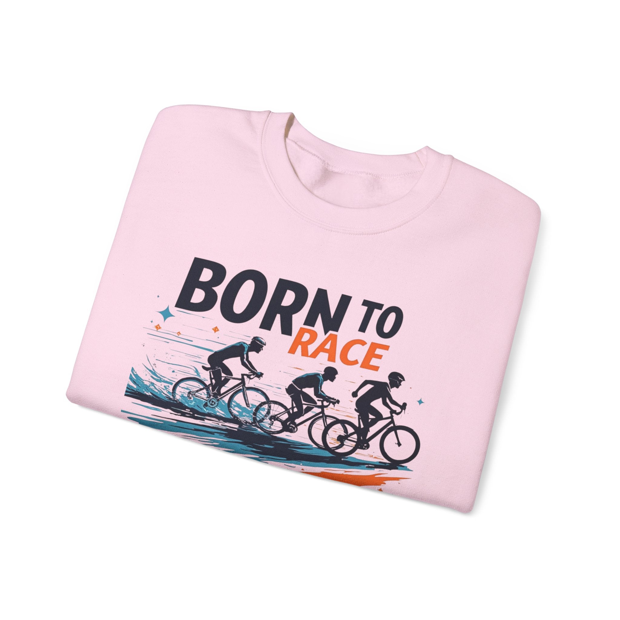 Eco-Conscious Crewneck Sweatshirt "Born to Race" Cycling Graphic - Triathlon Training Pullover 50/50 Cotton-Poly Blend Durable Breathable Apparel