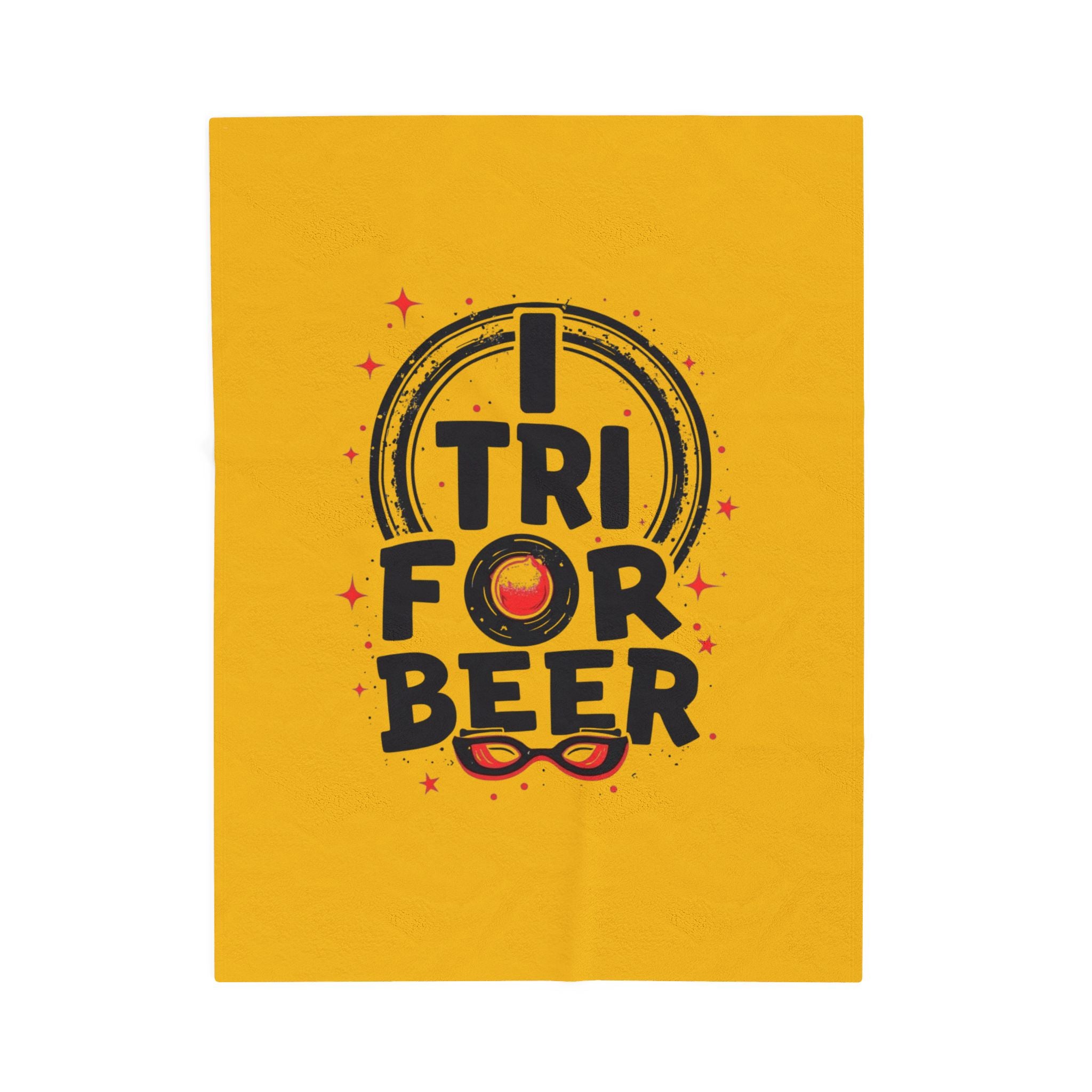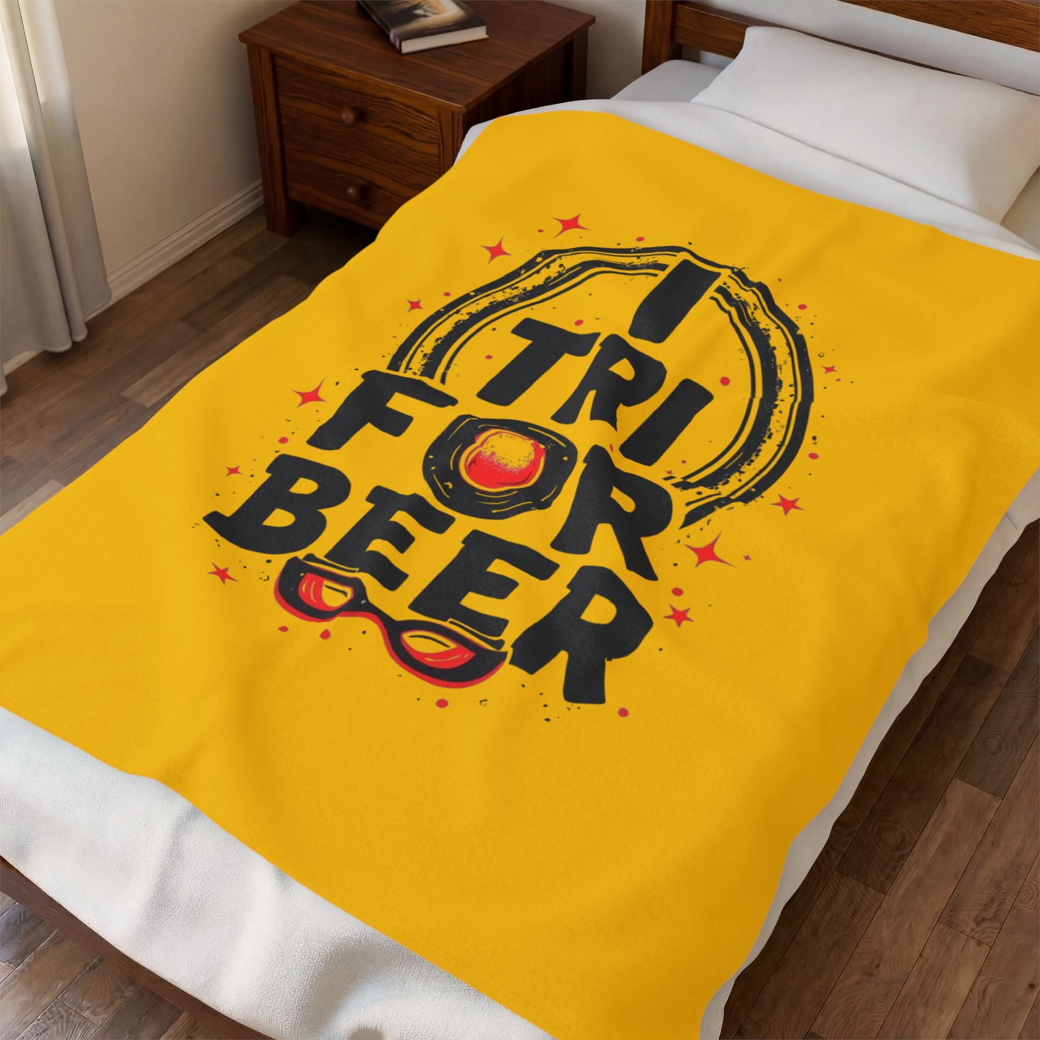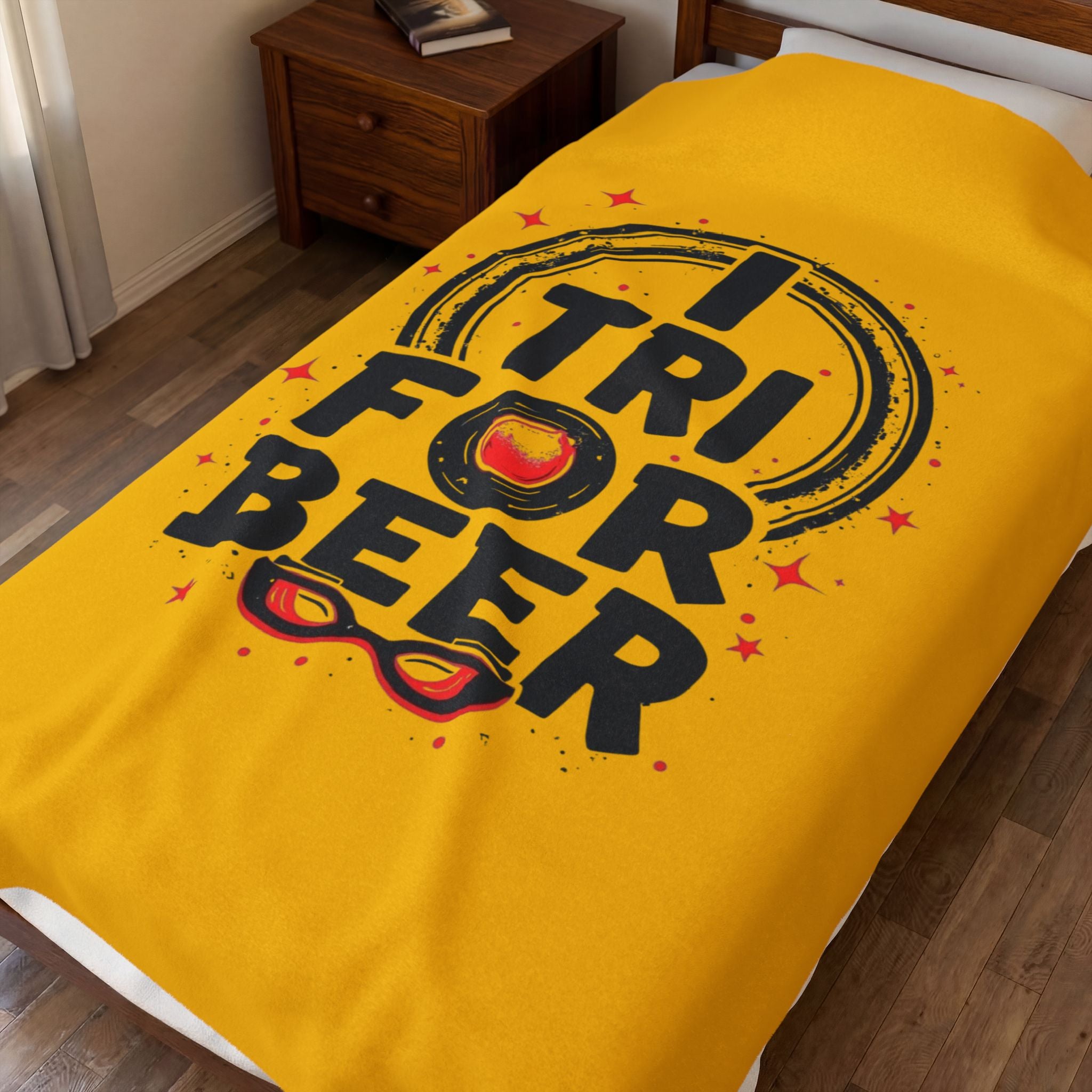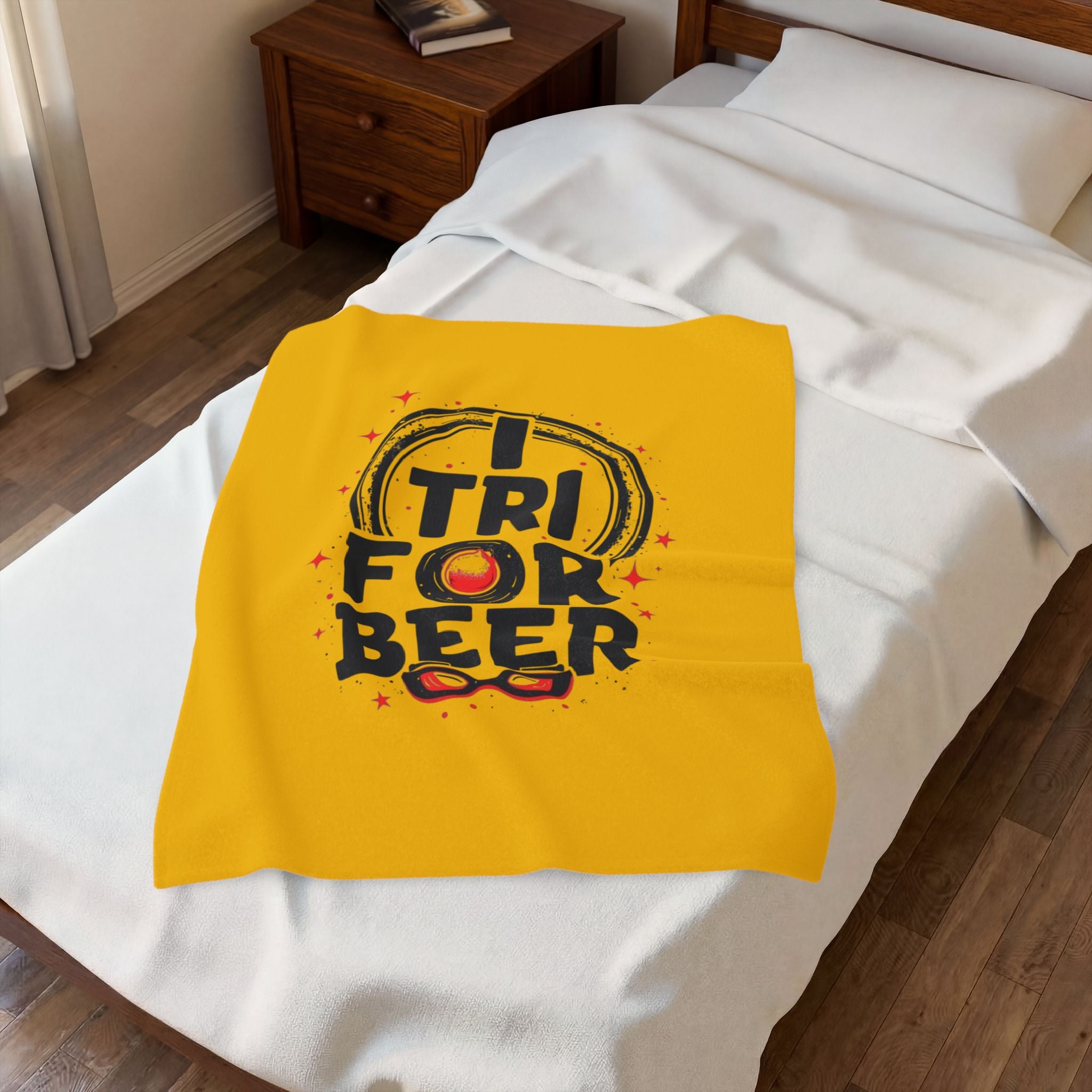 Velveteen Plush Throw Blanket - I Tri For Beer Graphic (Mustard) - Polyester Double-Stitched, Sizes 30 x 40 / 50 x 60 / 60 x 80