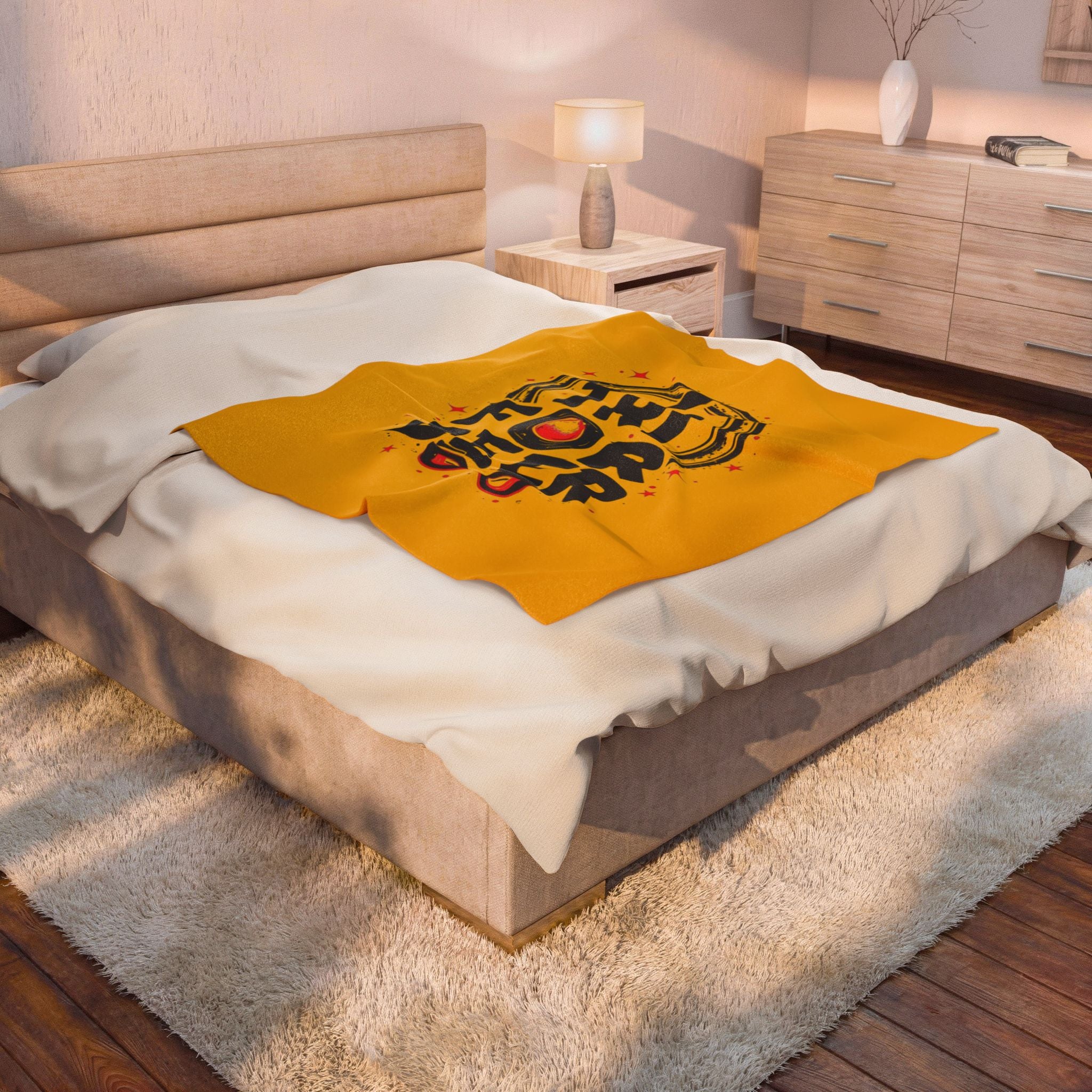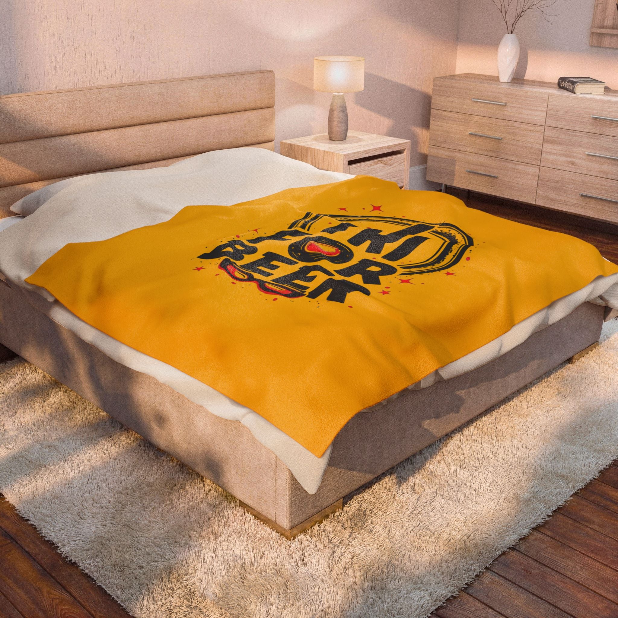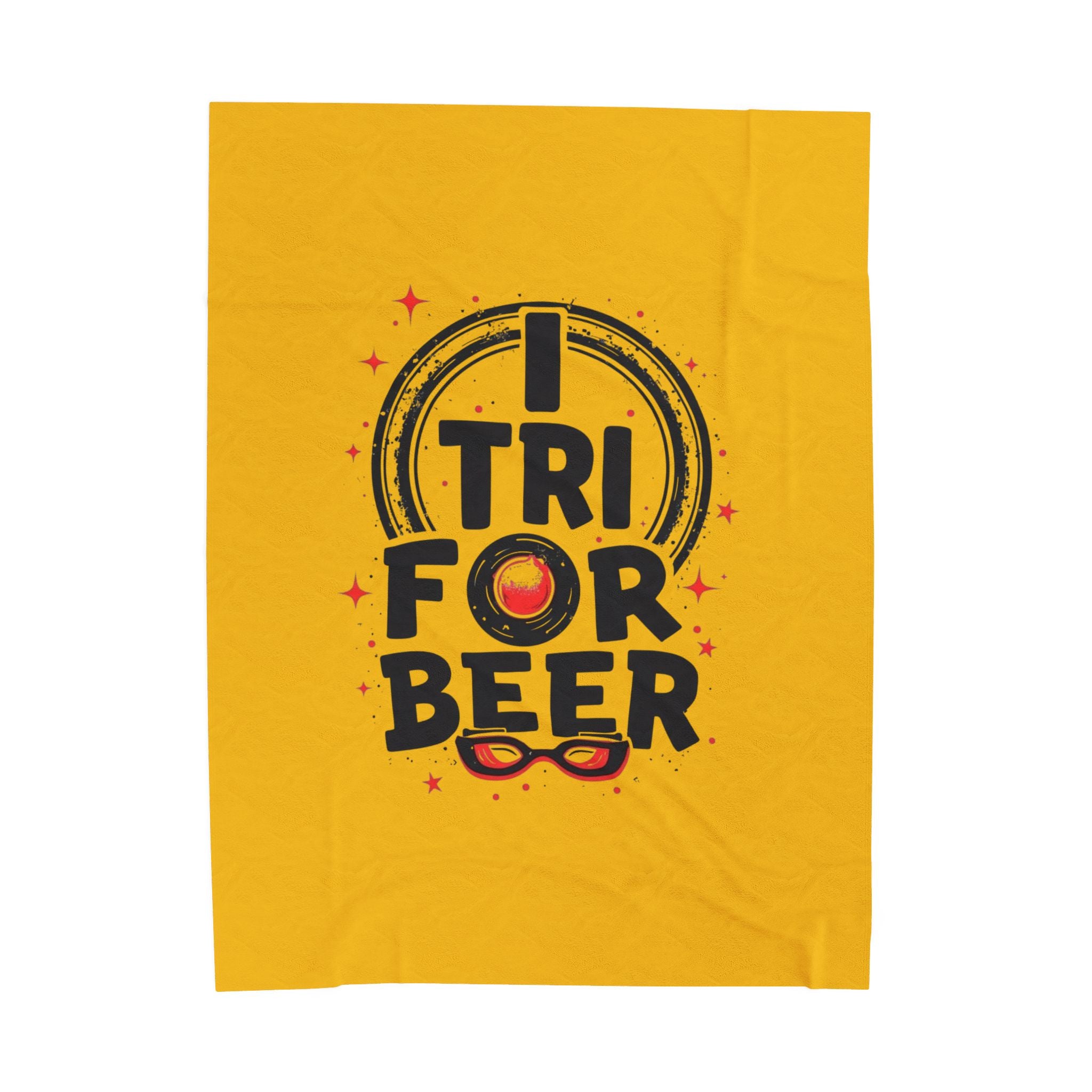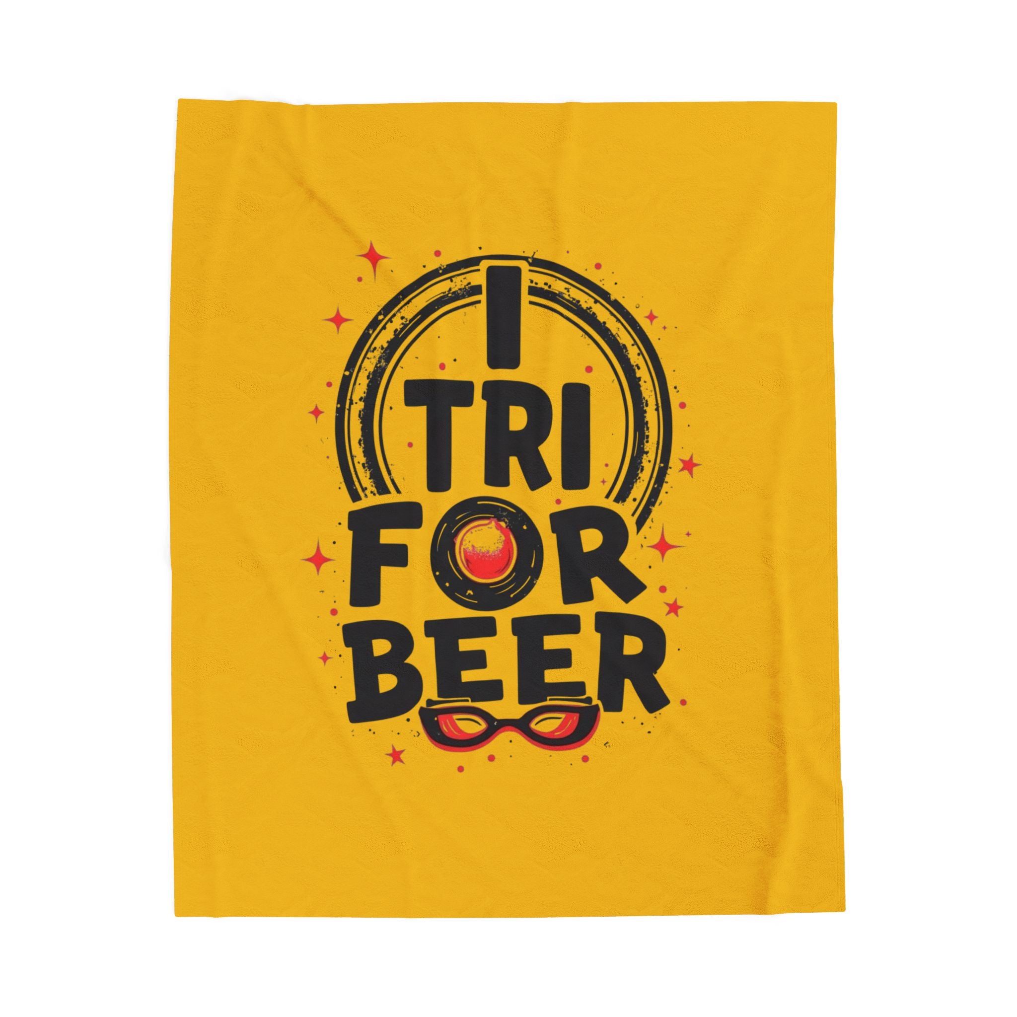 Velveteen Plush Throw Blanket - I Tri For Beer Graphic (Mustard) - Polyester Double-Stitched, Sizes 30 x 40 / 50 x 60 / 60 x 80