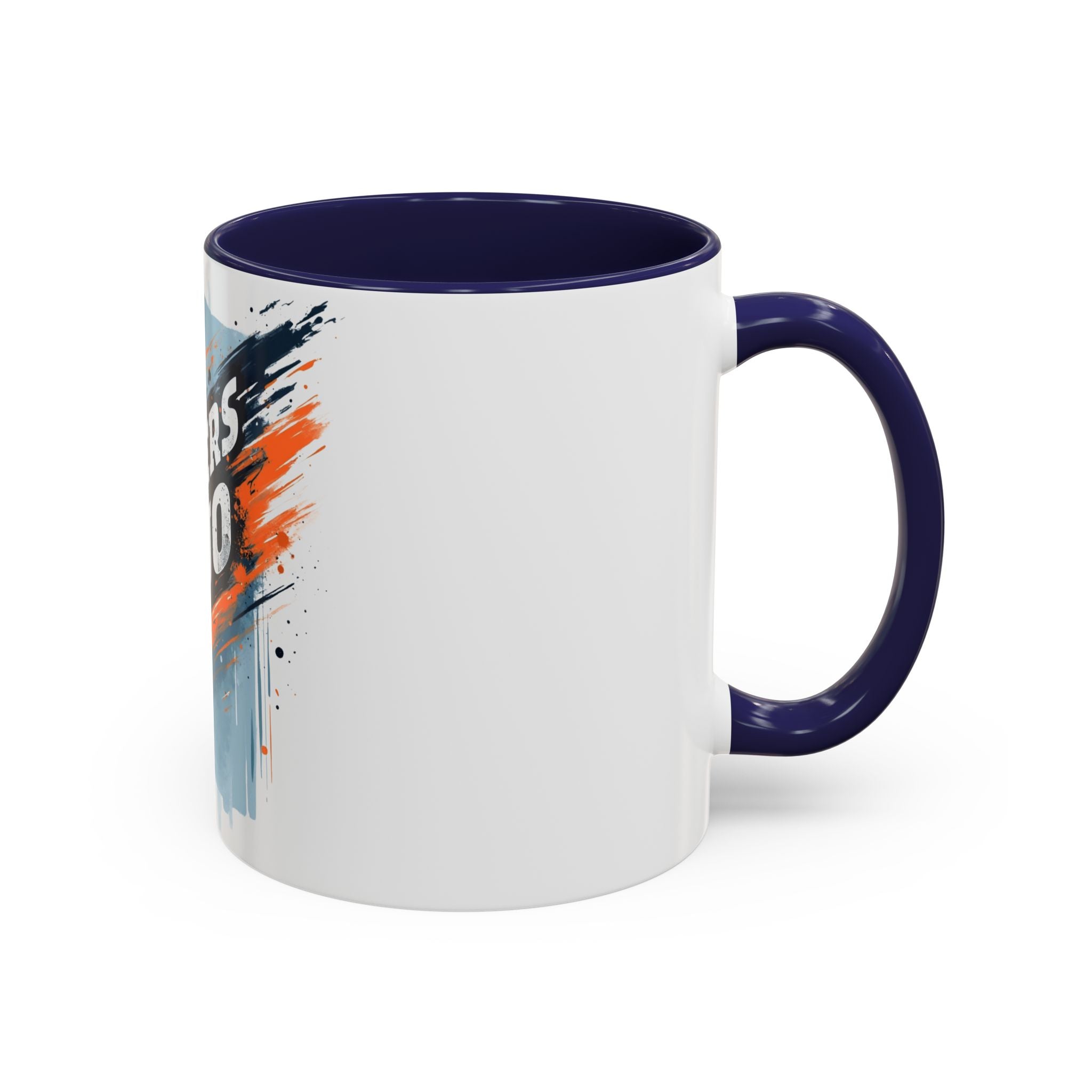 This bold ceramic mug brings ride-day energy to every sip. A splash of gritty brushstrokes frames a mountain biker silhouette and the rallying phrase “Masters Mojo,” catching the eye with high-contrast navy and orange accents. The colored interior and handle add personality while the glossy finish makes the design pop. Slide it into your morning routine to stoke focus before a trail session, keep at the desk for mid-ride daydreams, or set on the kitchen counter as a reminder of muddy climbs and sun-faded singletrack. It feels like a quick breath of crisp air and the click of gears — small, useful, and full of momentum.