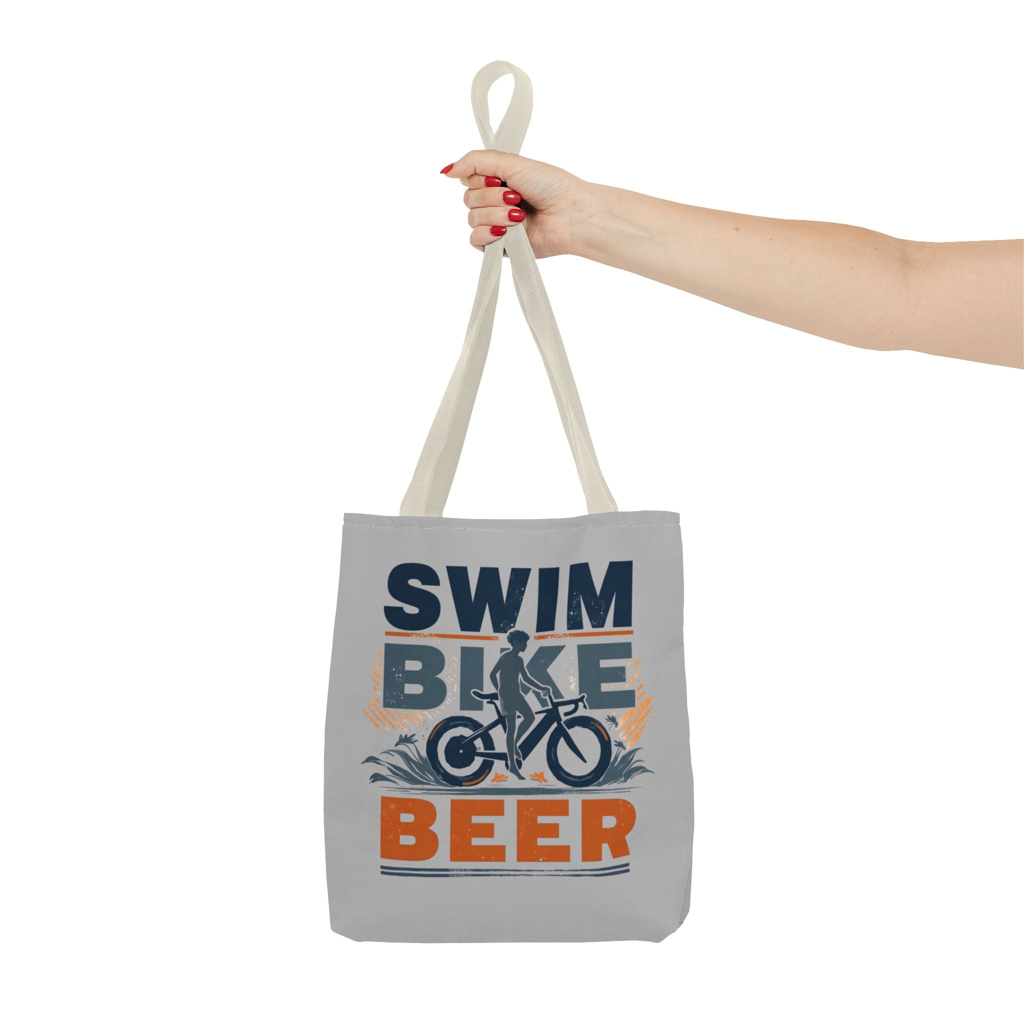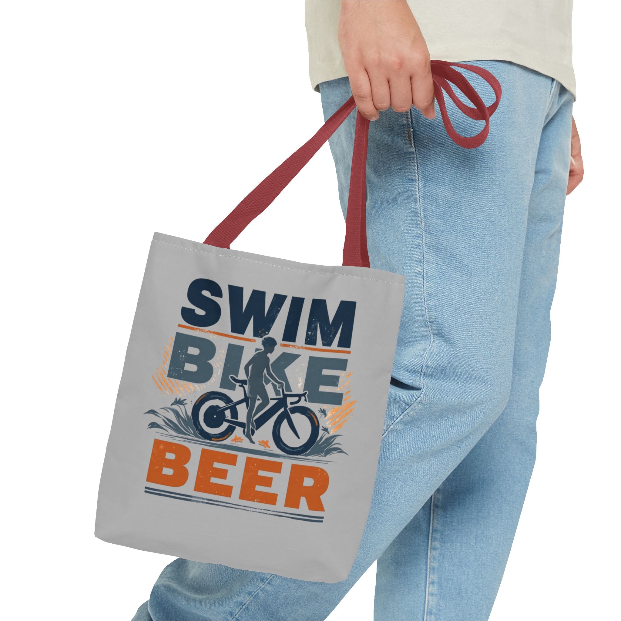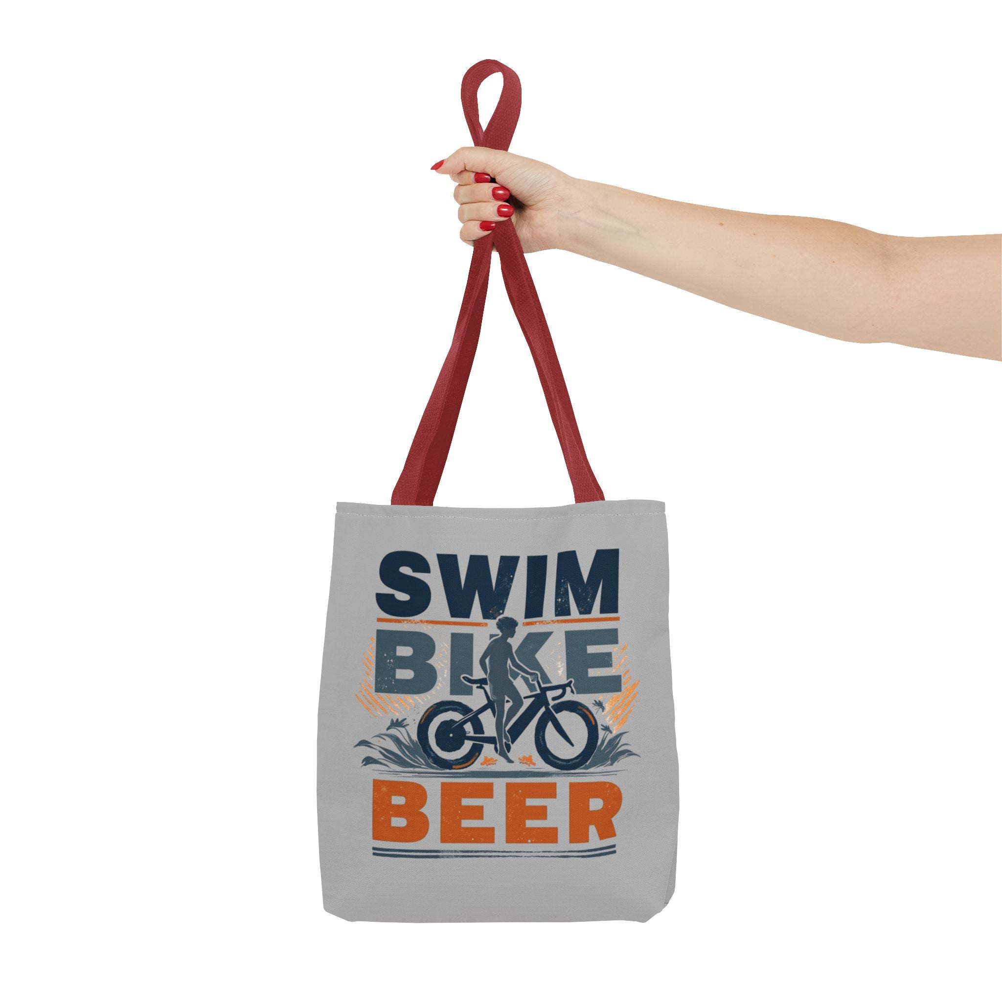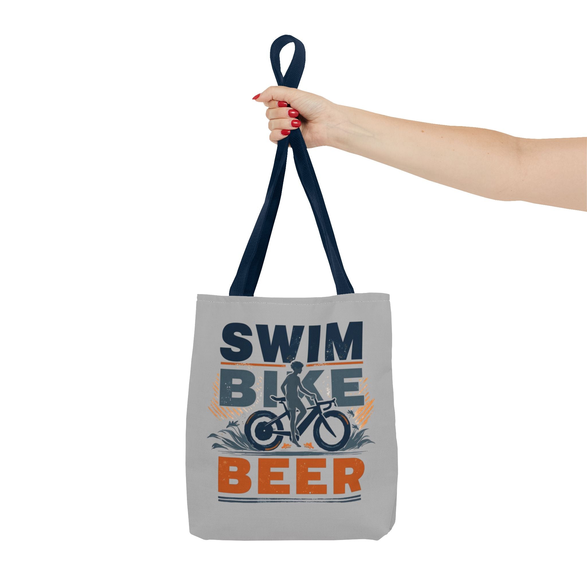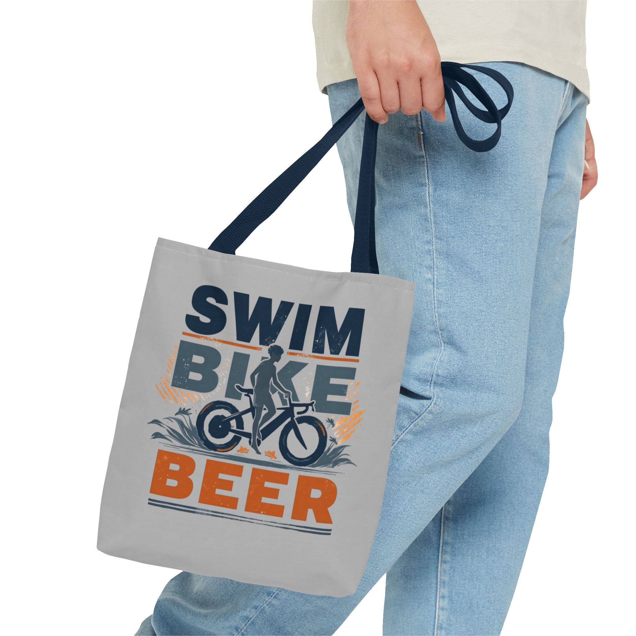 Triathlon Tote Bag - Swim Bike Beer Graphic 100% Polyester Gym & Beach Carryall (13x13x3) Non-Woven Laminated Interior